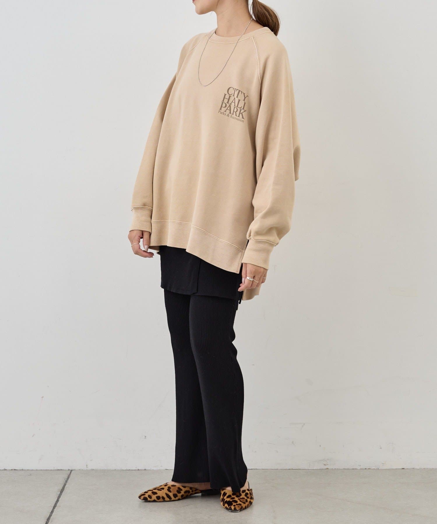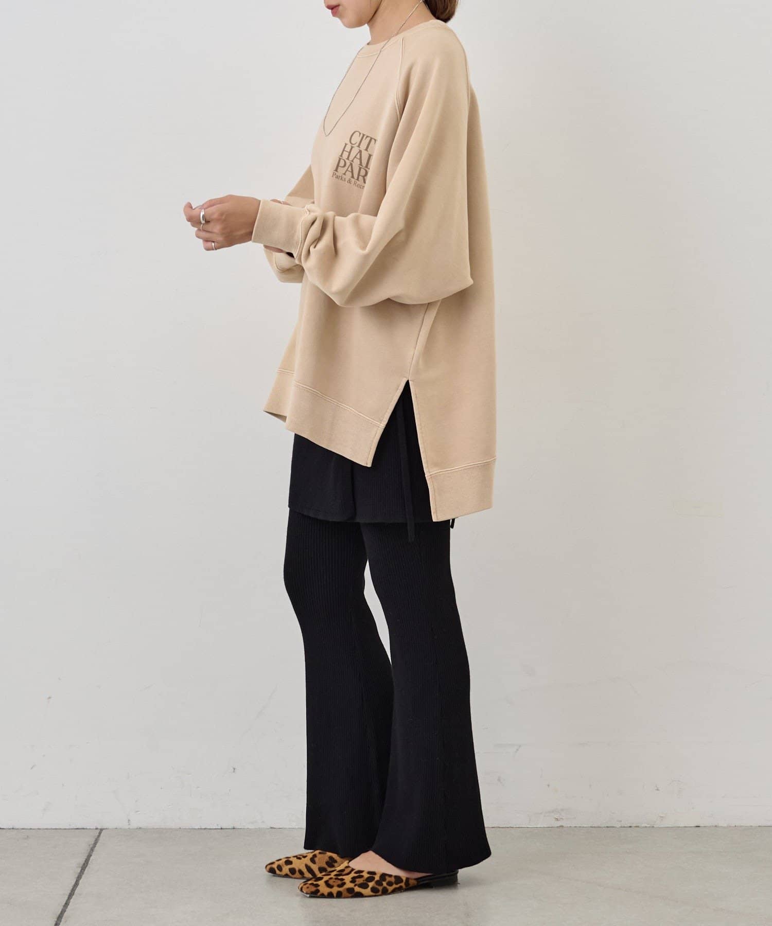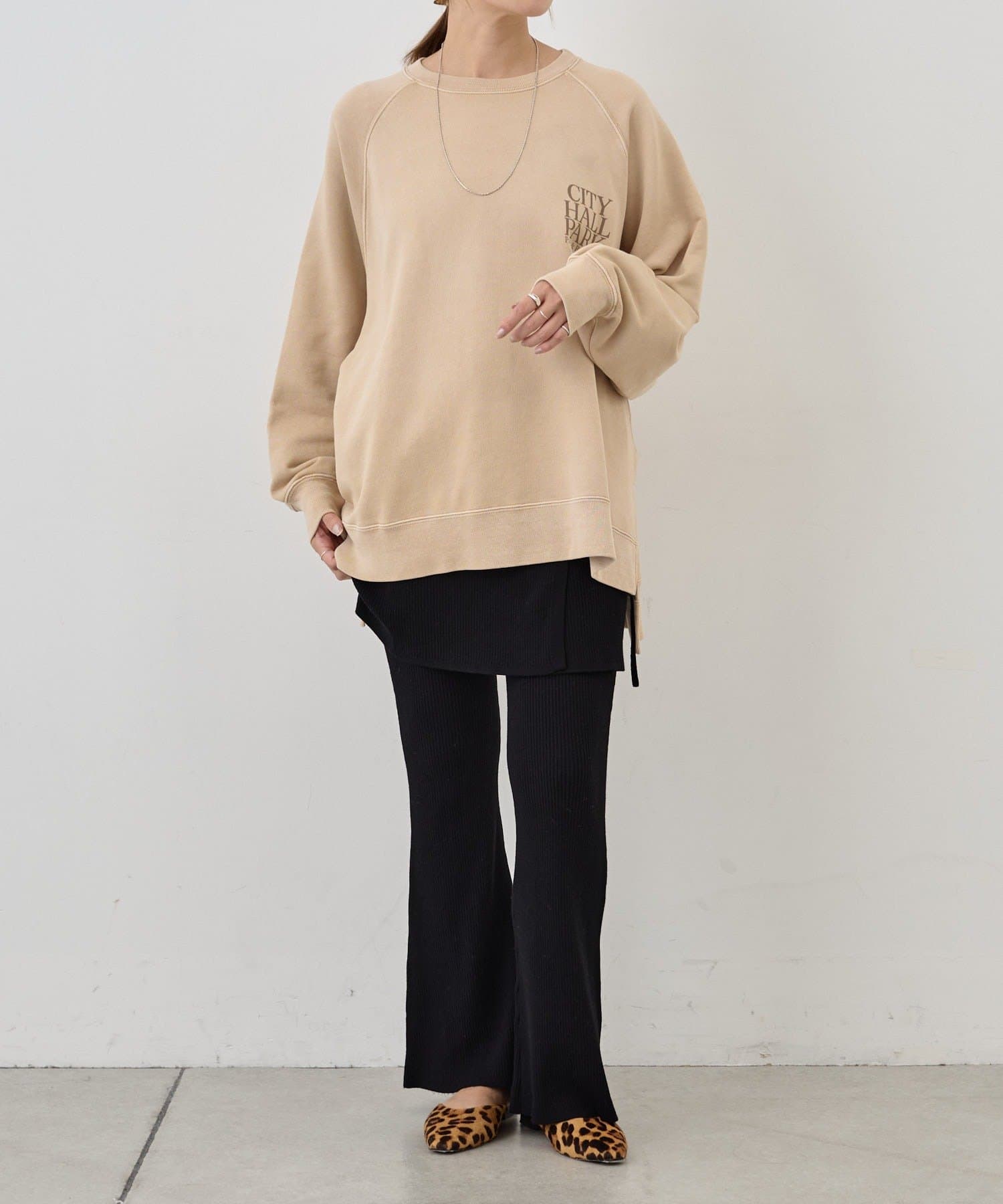 バックスタイルのロゴが目を惹くスウェット。