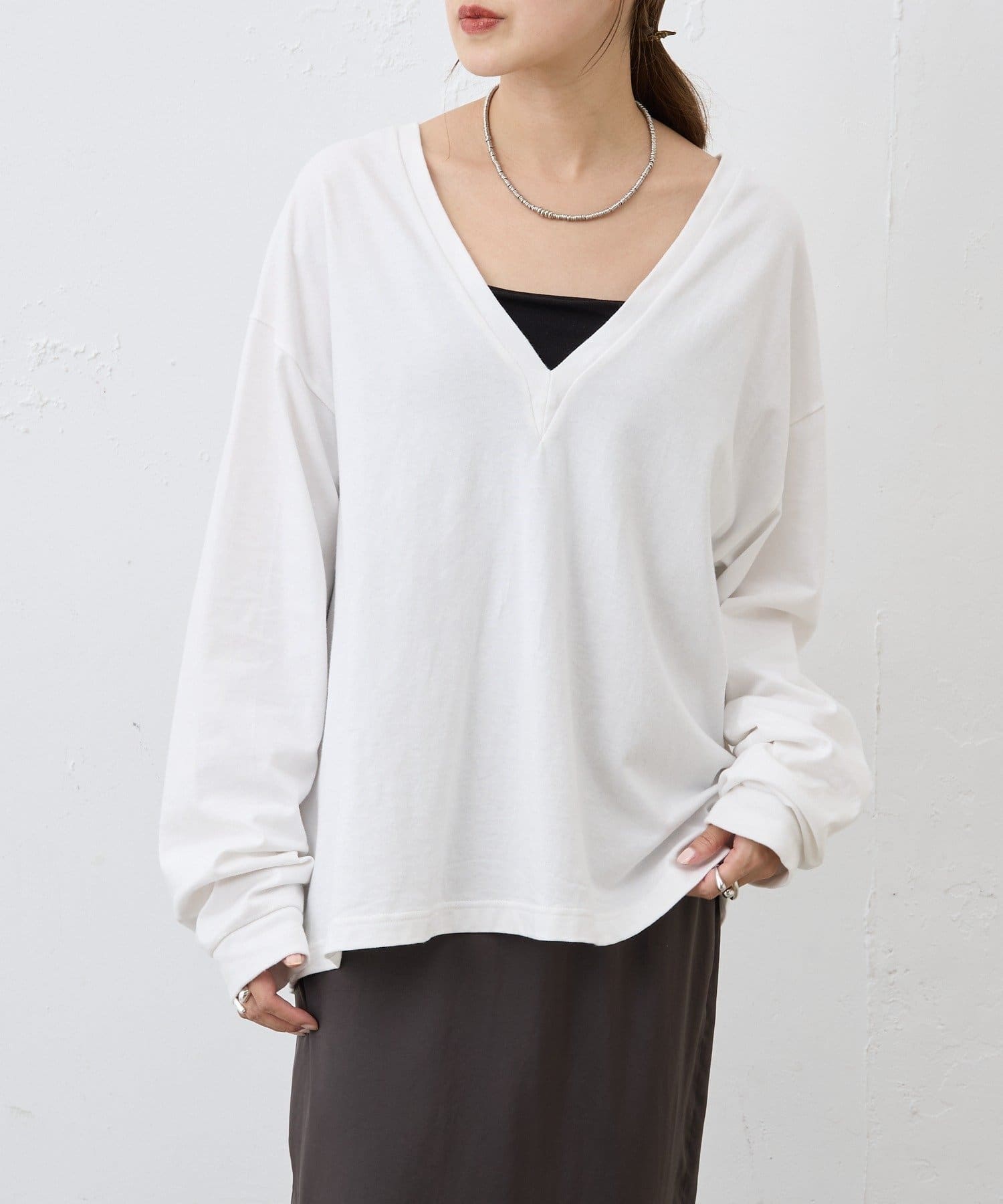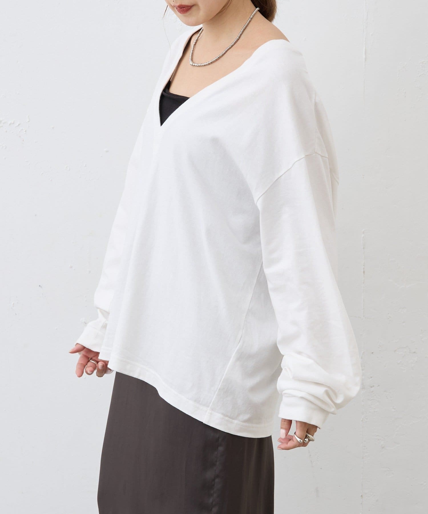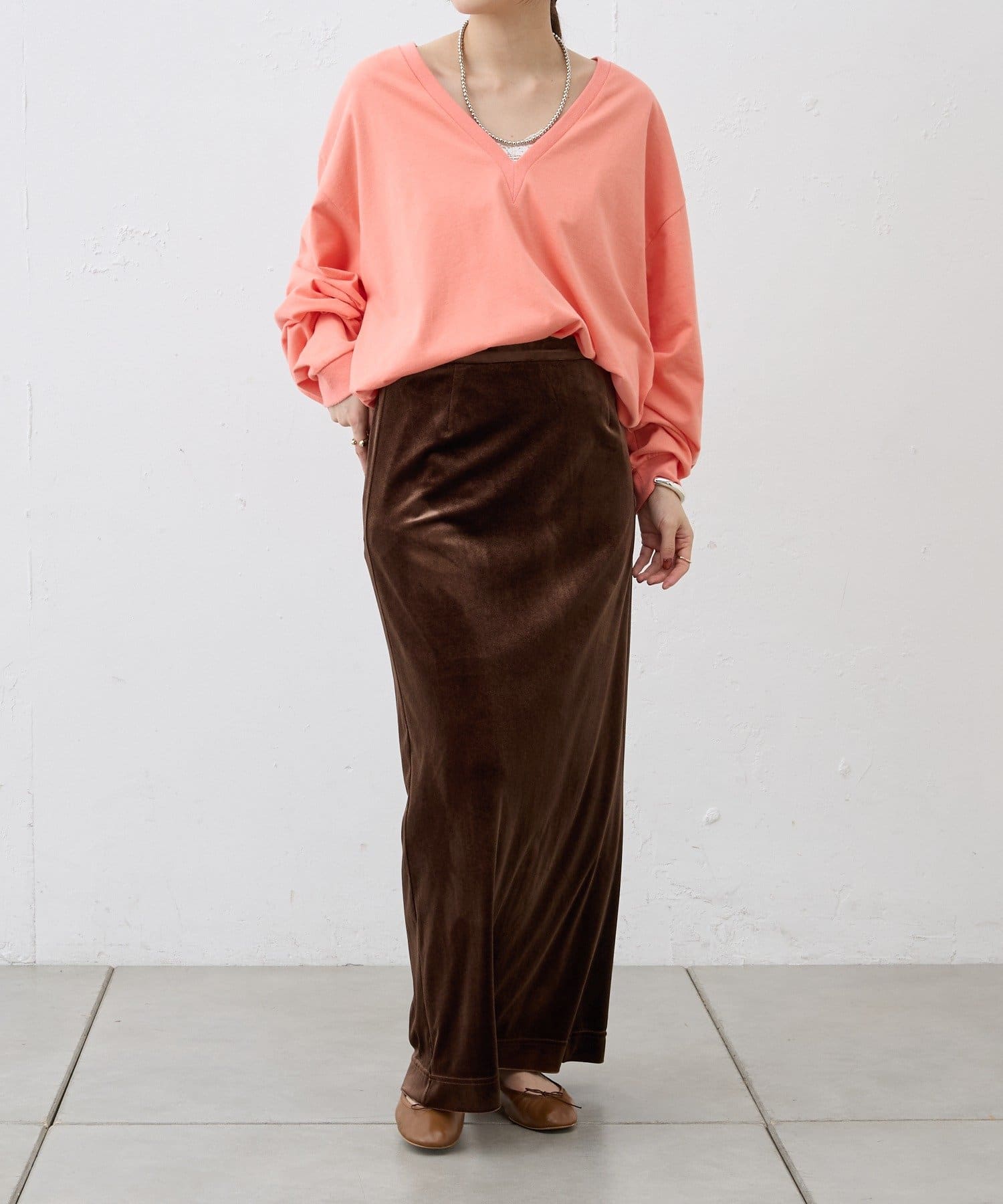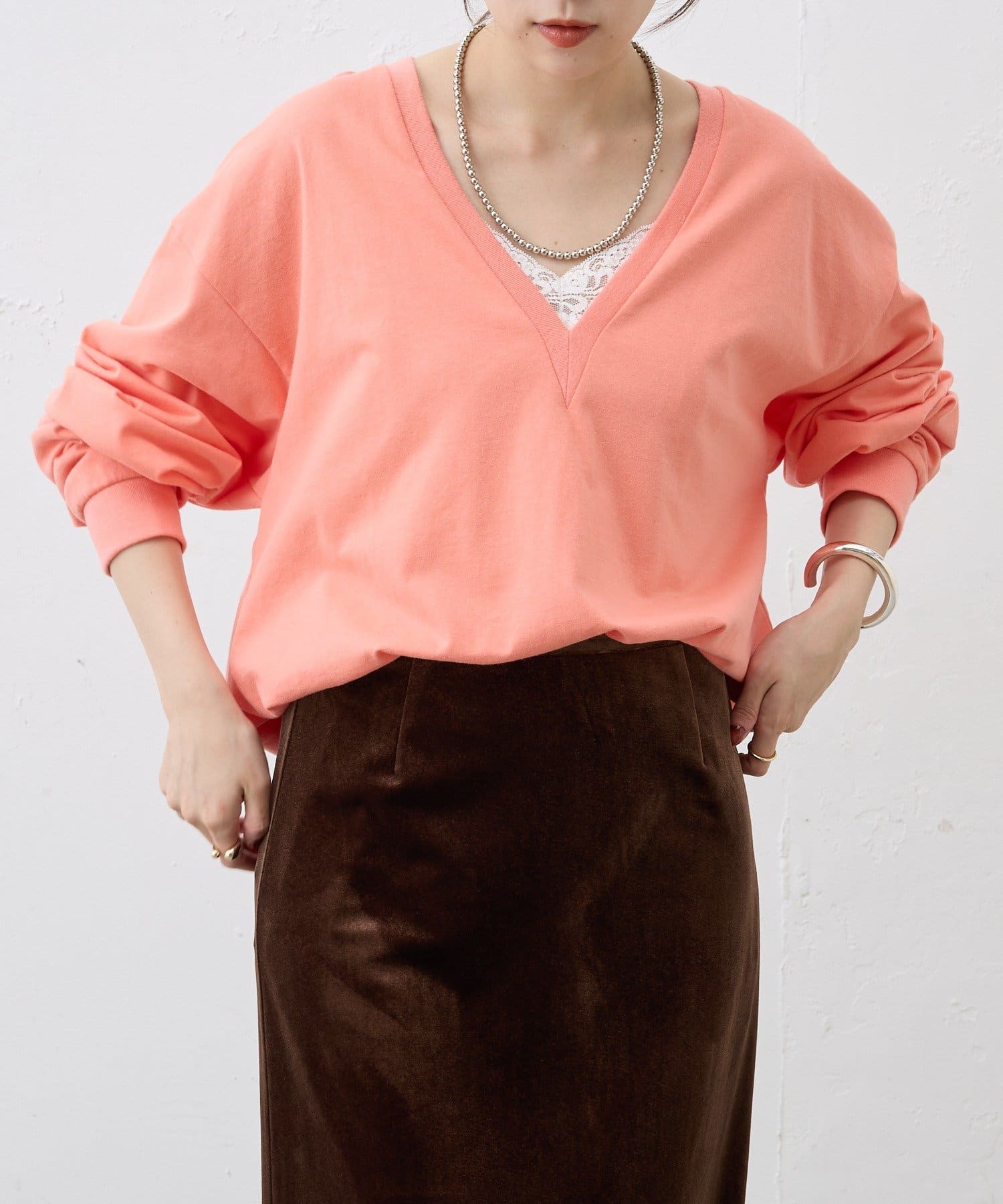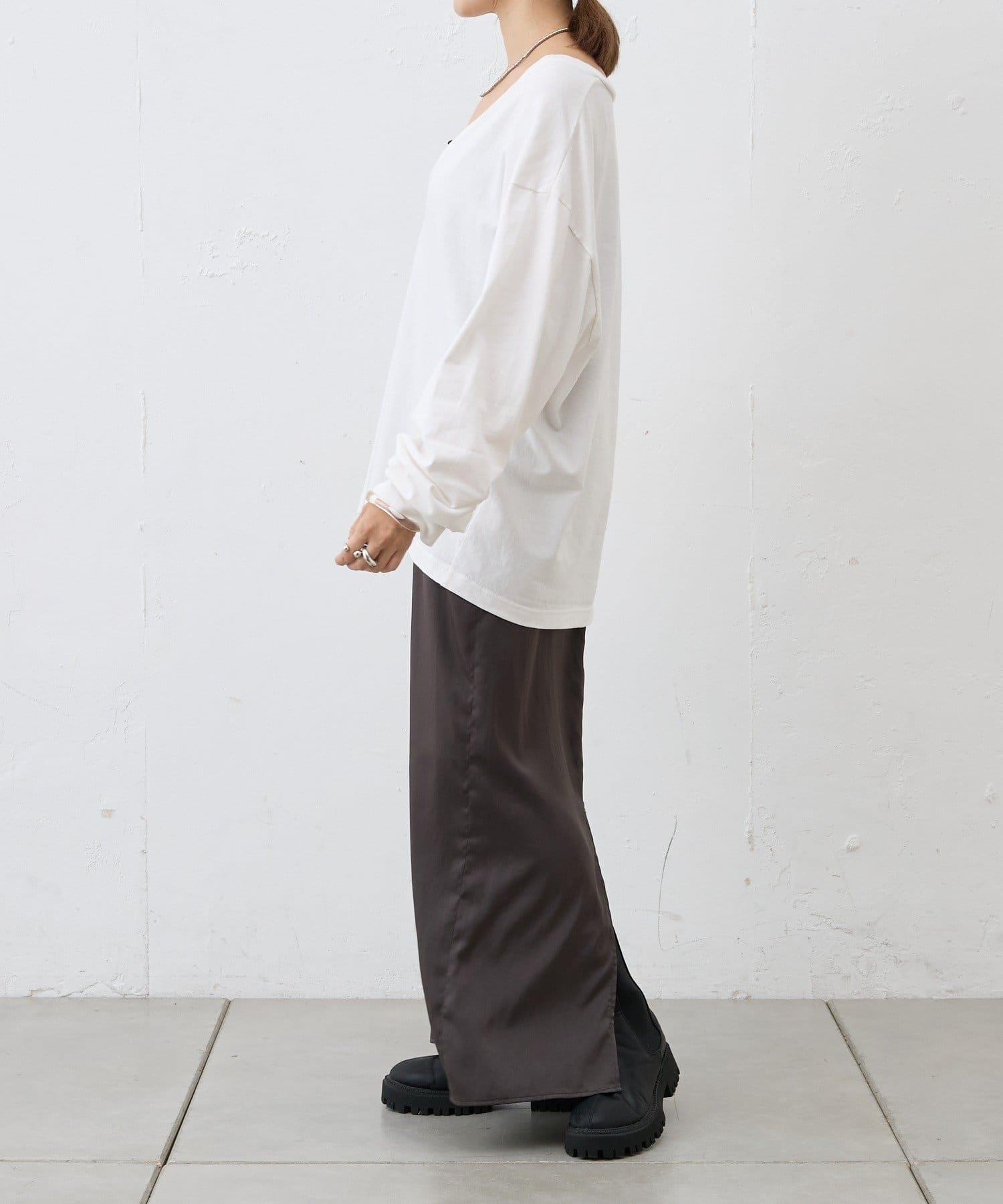 首まわりがすっきりとした印象で、抜け感のある絶妙なシルエットが女性らしさをプラスしてくれます。