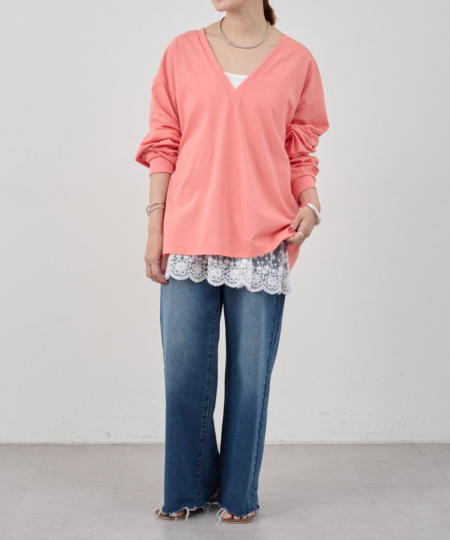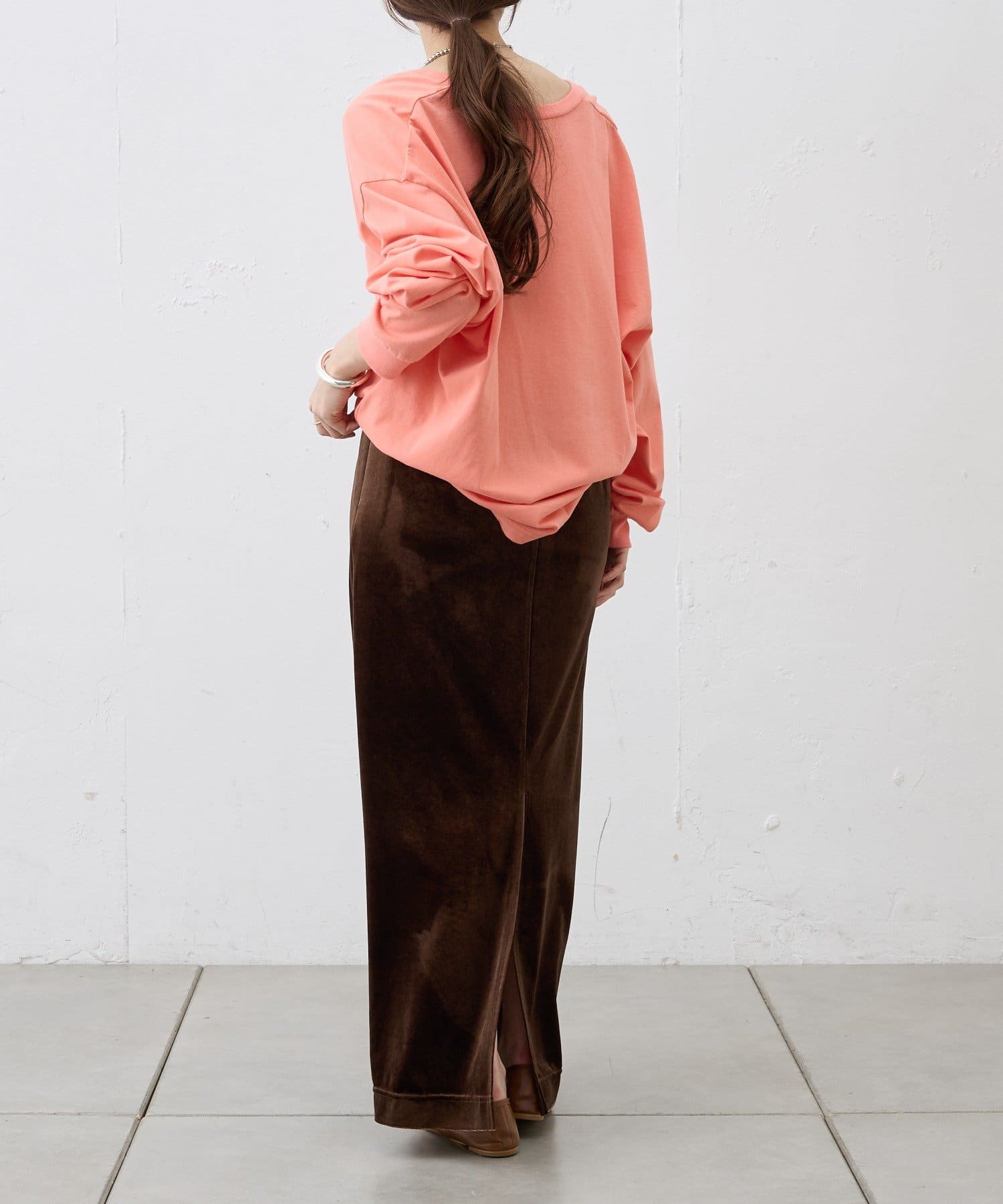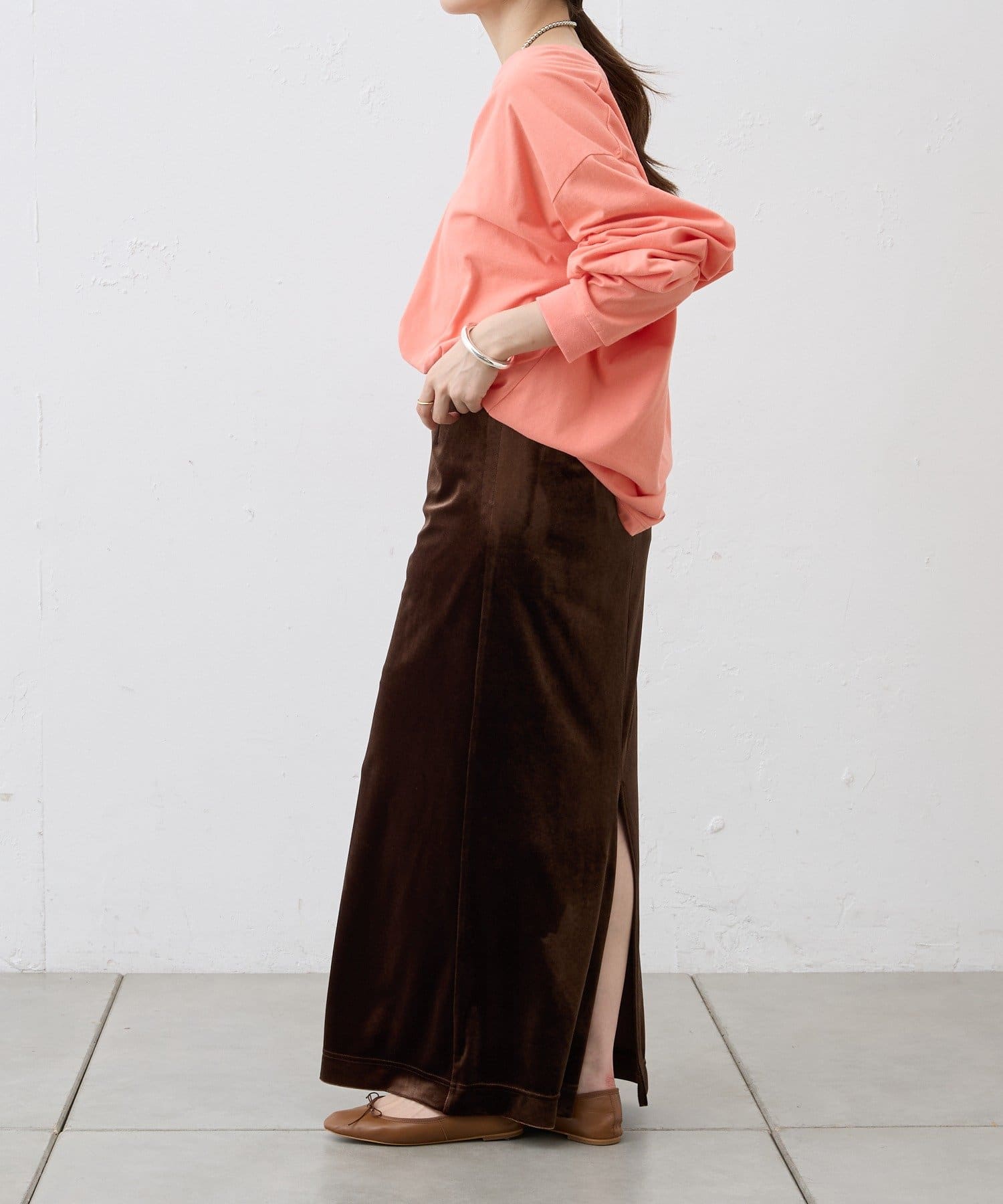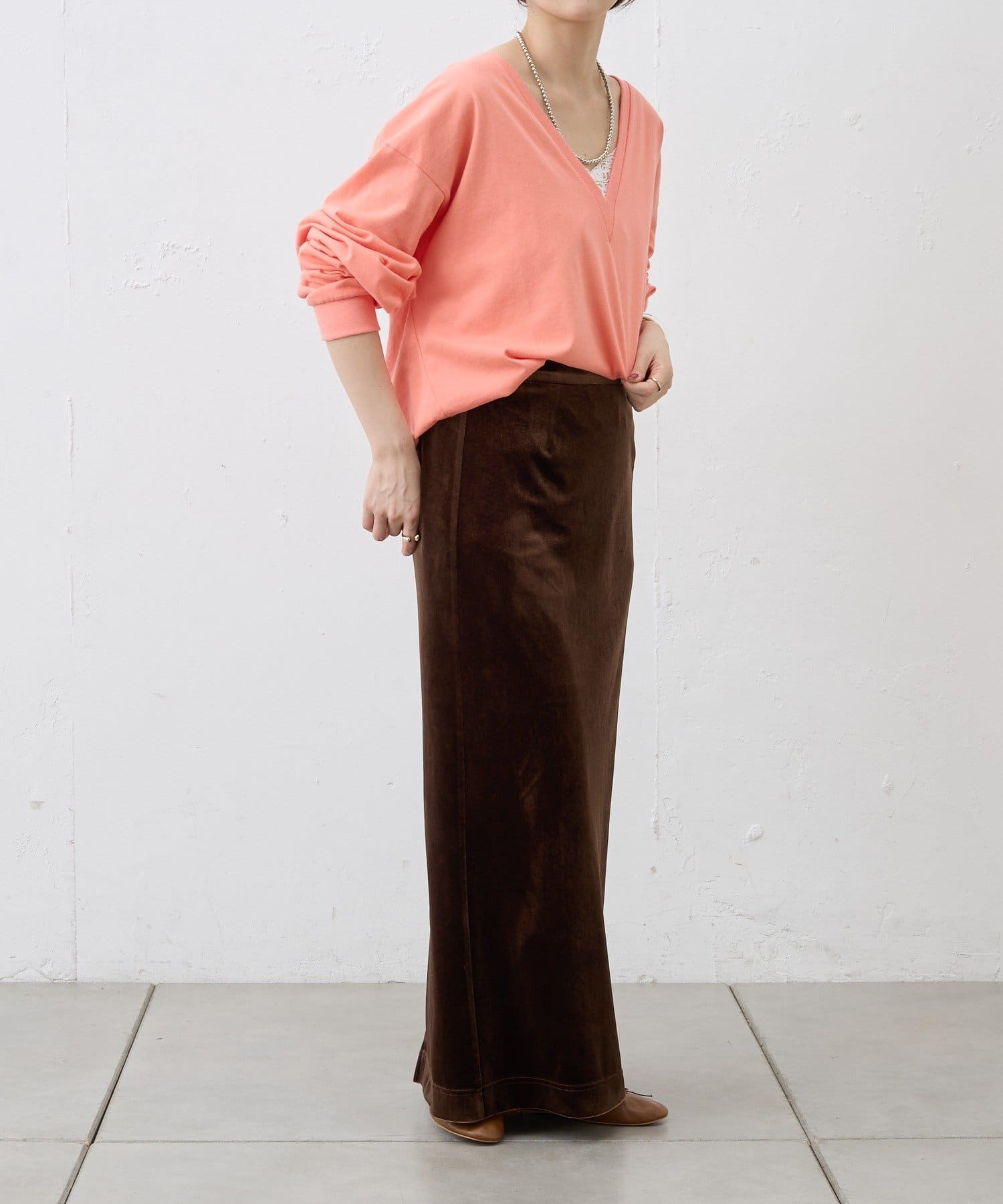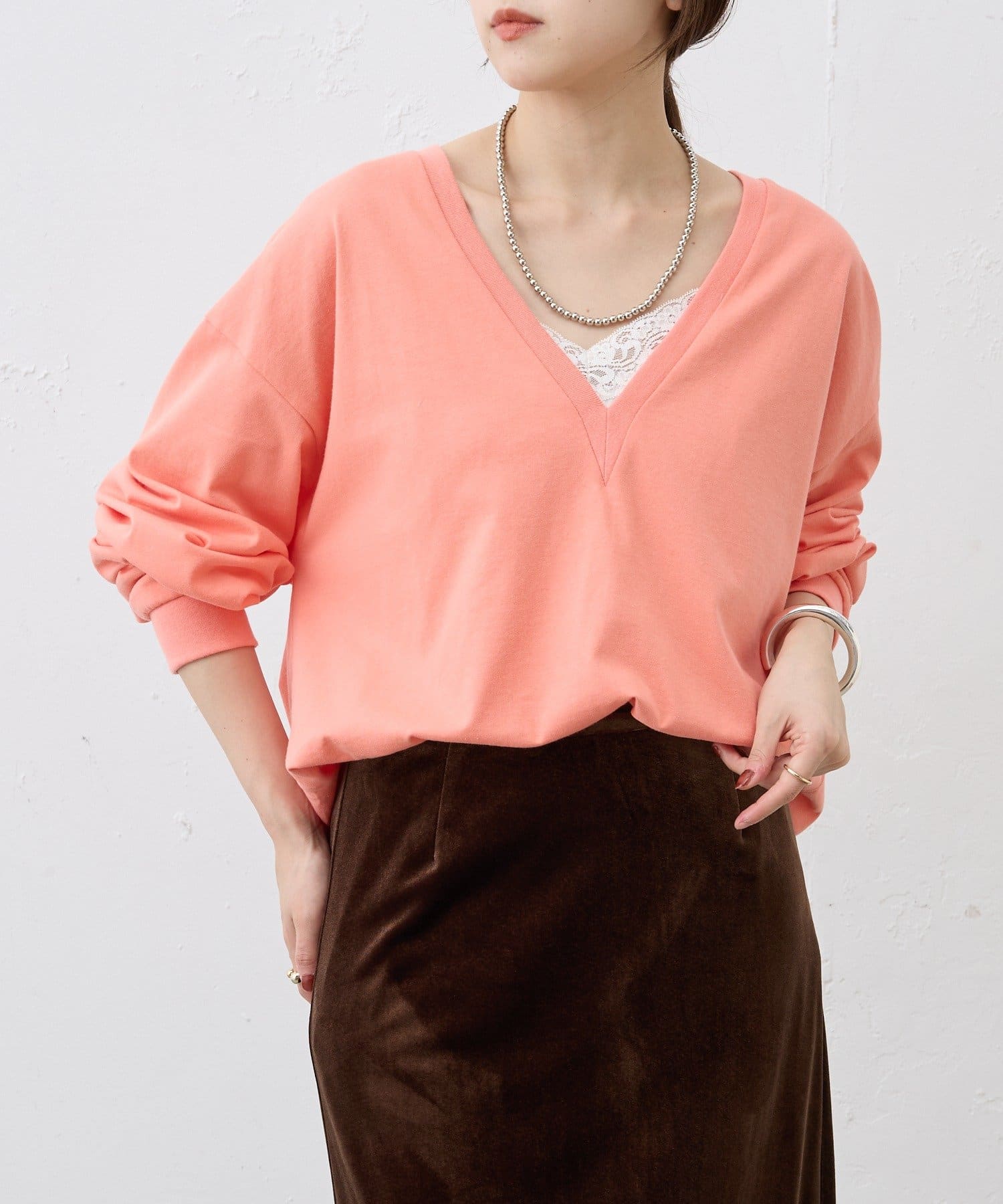 首まわりがすっきりとした印象で、抜け感のある絶妙なシルエットが女性らしさをプラスしてくれます。