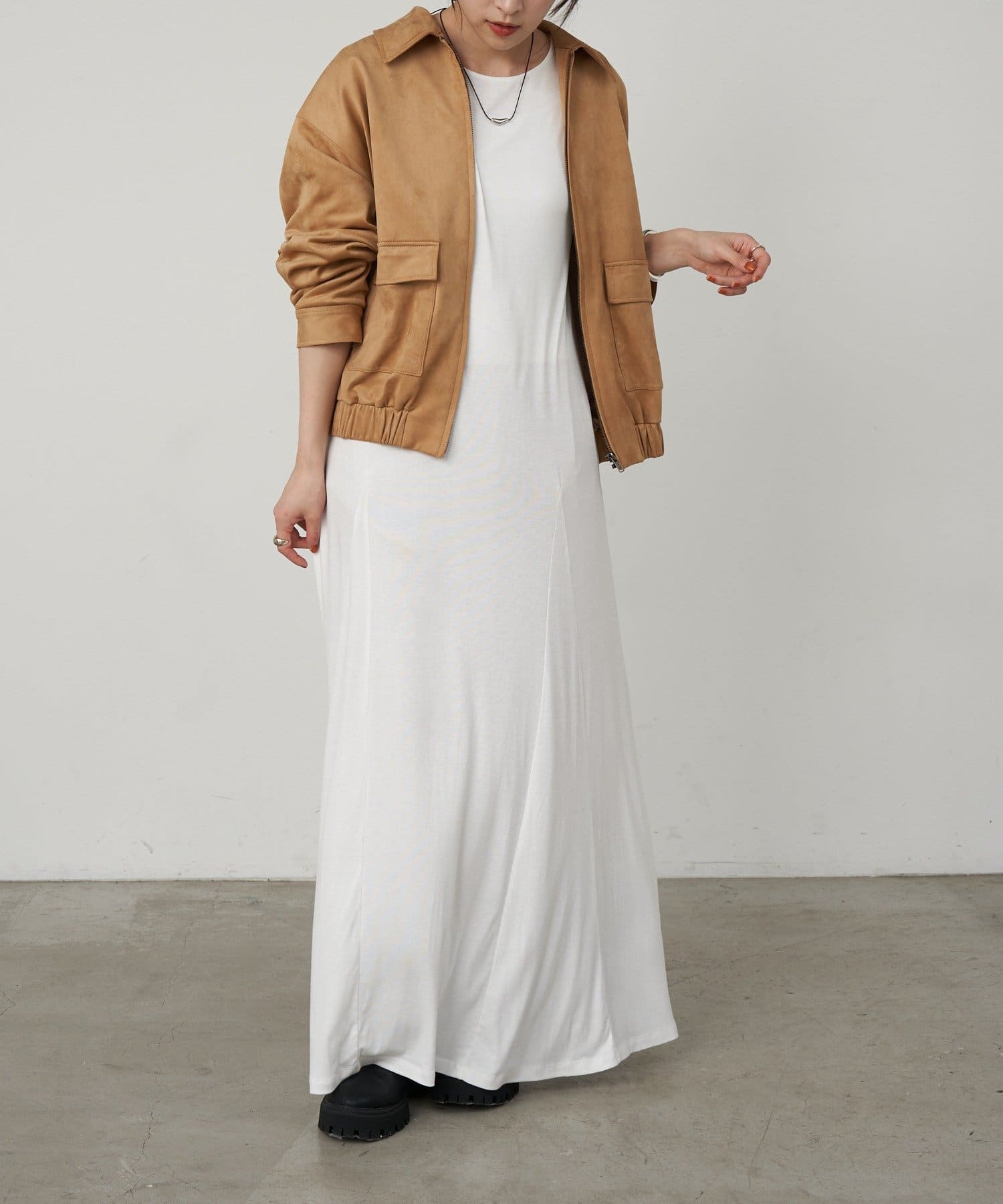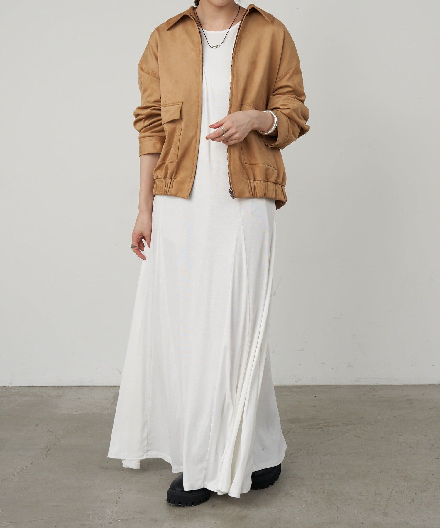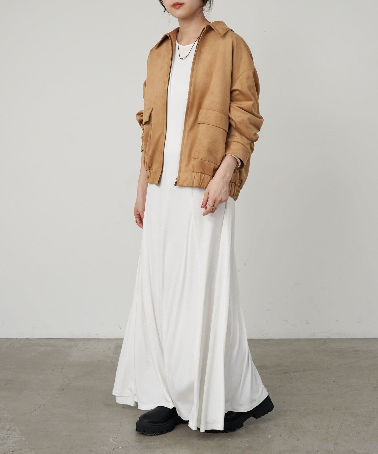 今年注目!トレンドのスウェード風素材を使ったブルゾン。
