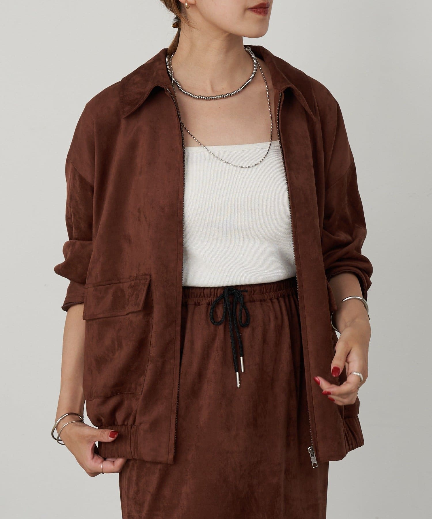 《セットアップ着用可能》フェイクスウェードブルゾン