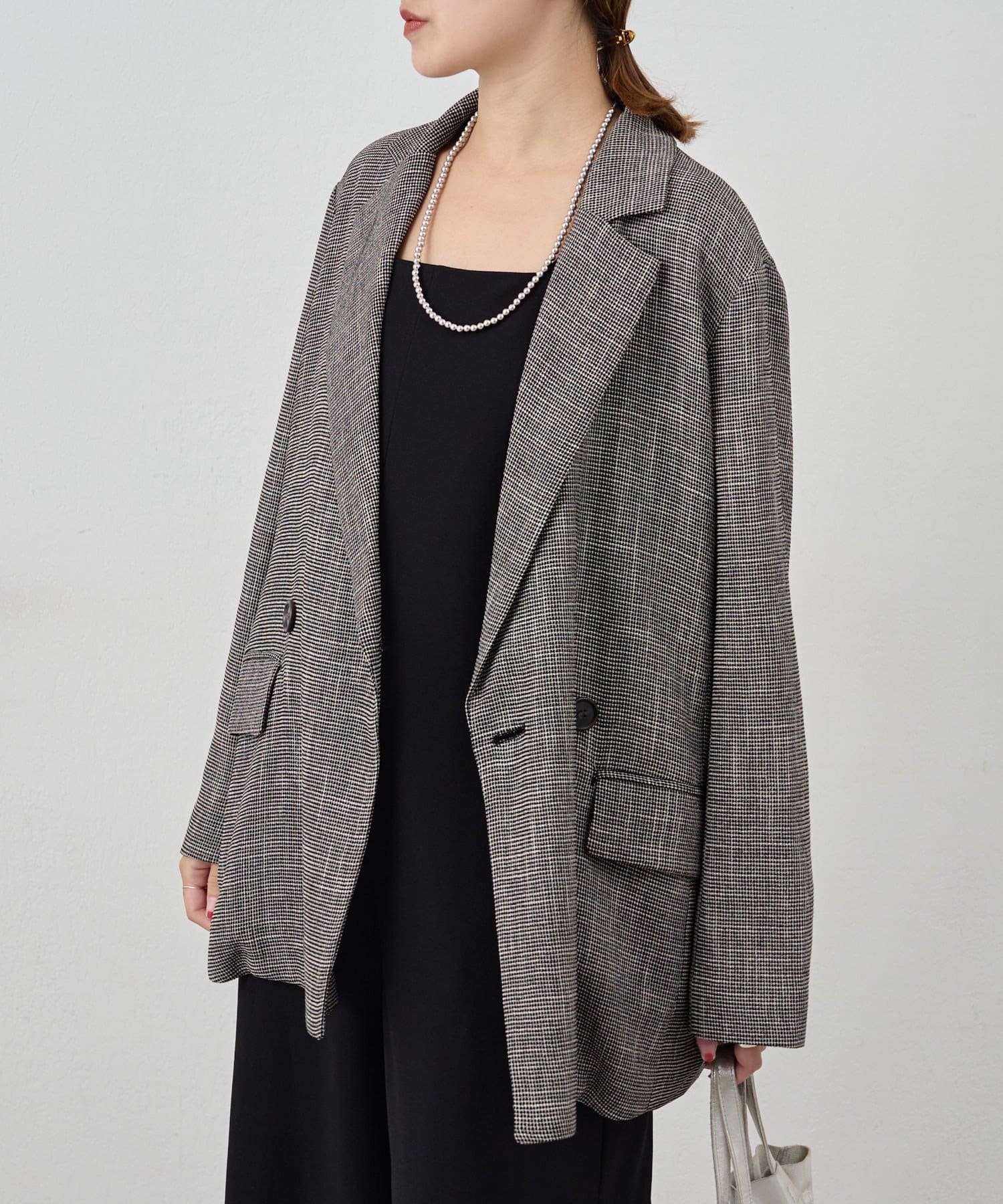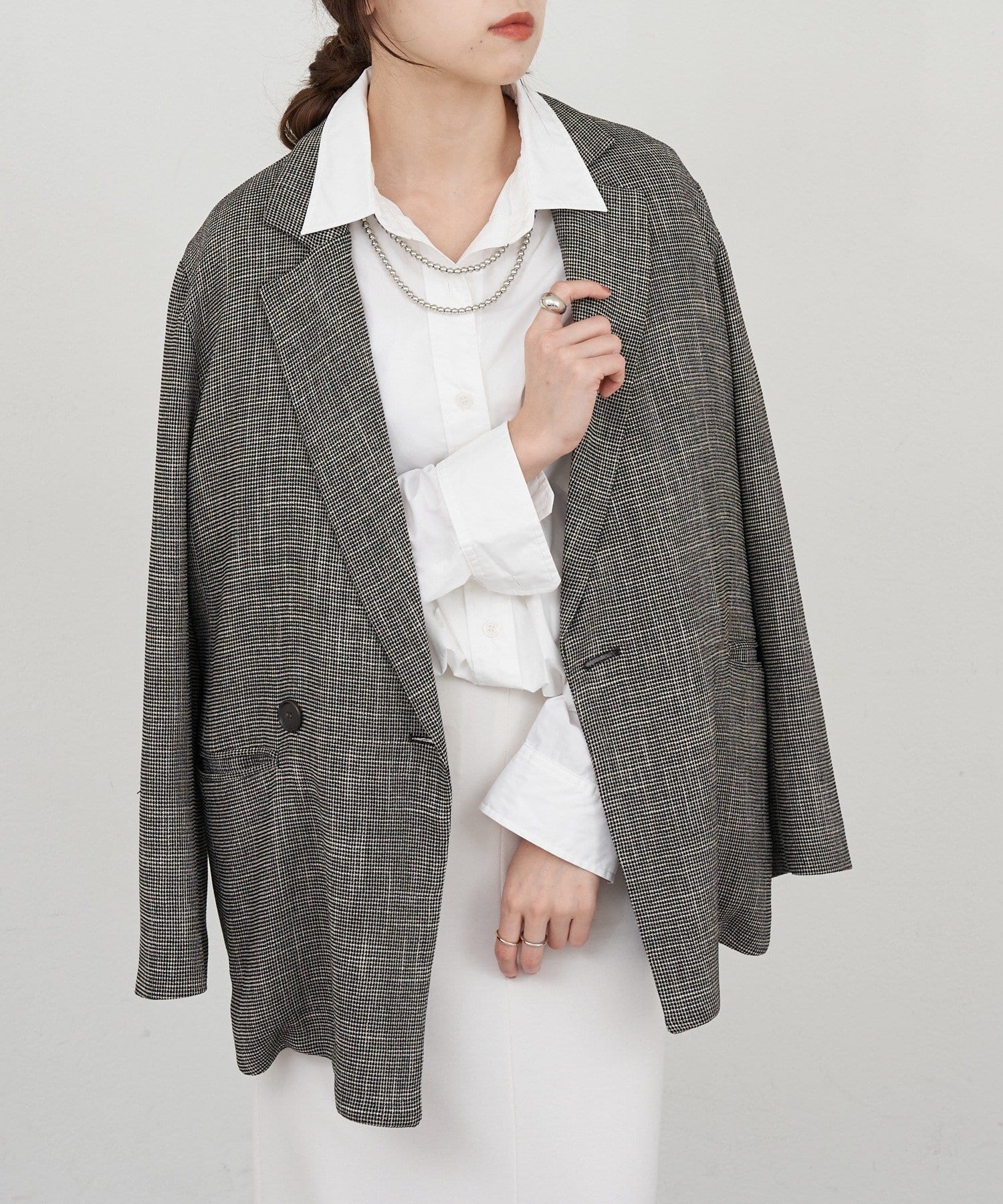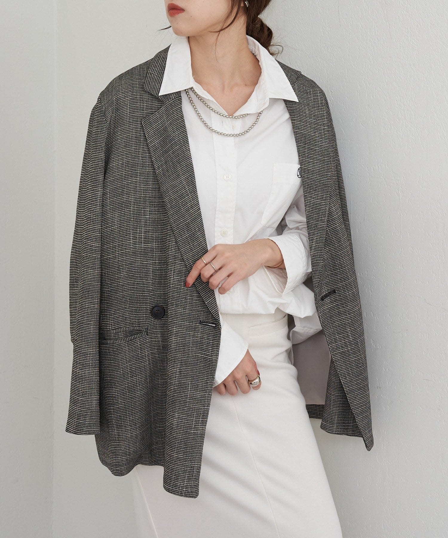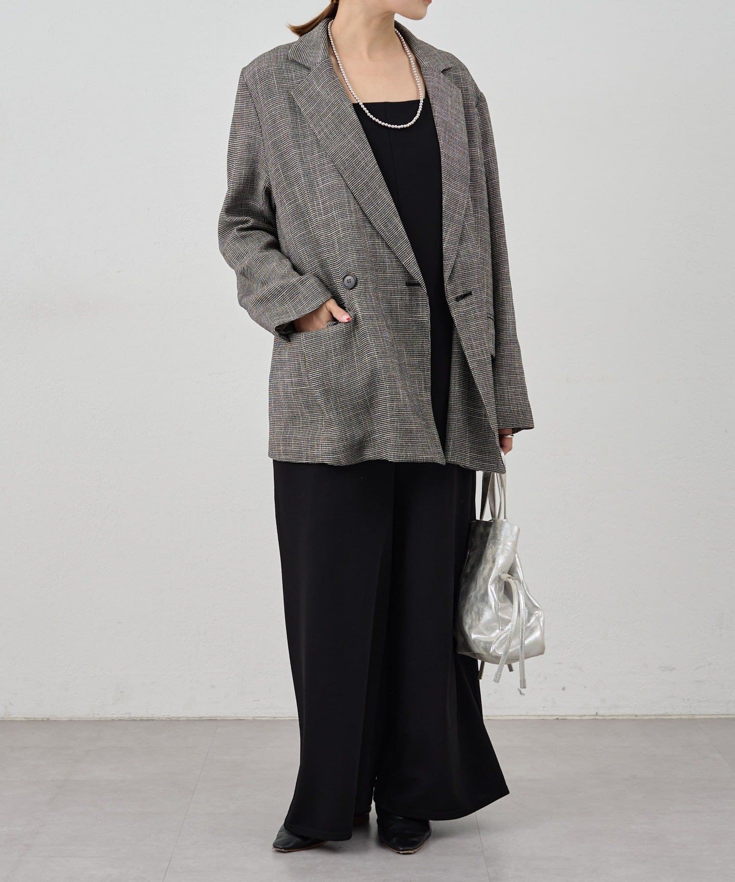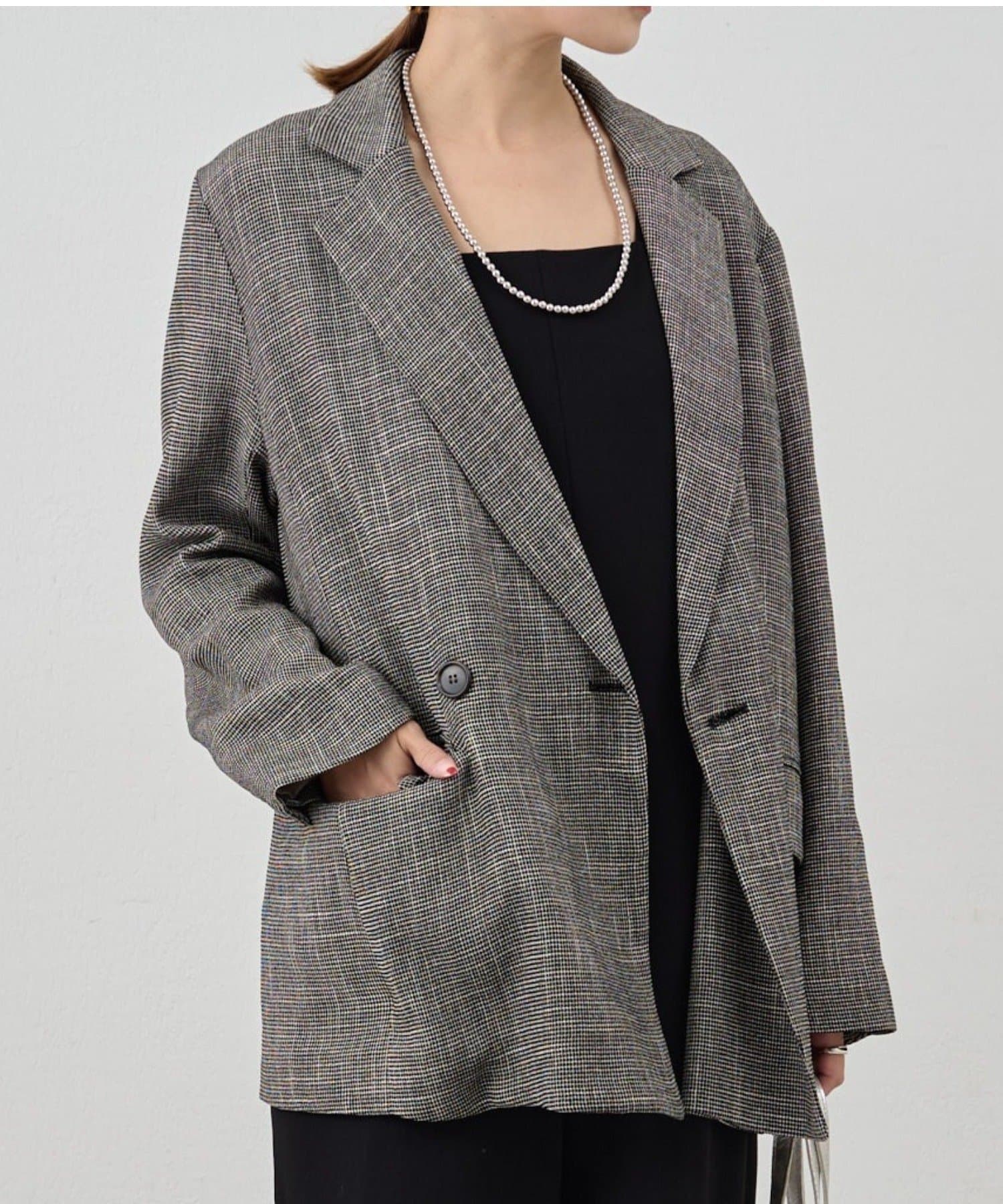 ダブル仕立てでメンズライクな雰囲気もありつつ、素材の落ち感が上品で女性らしく着れます。