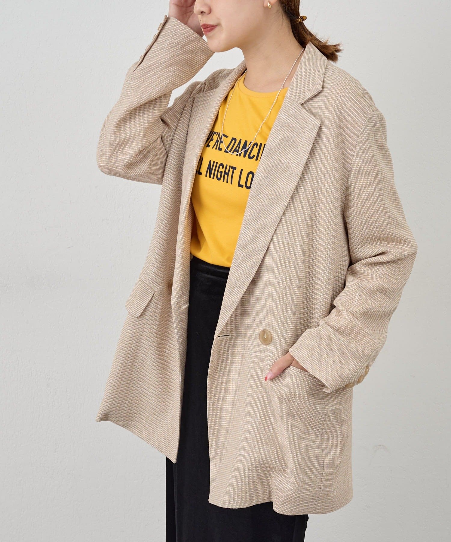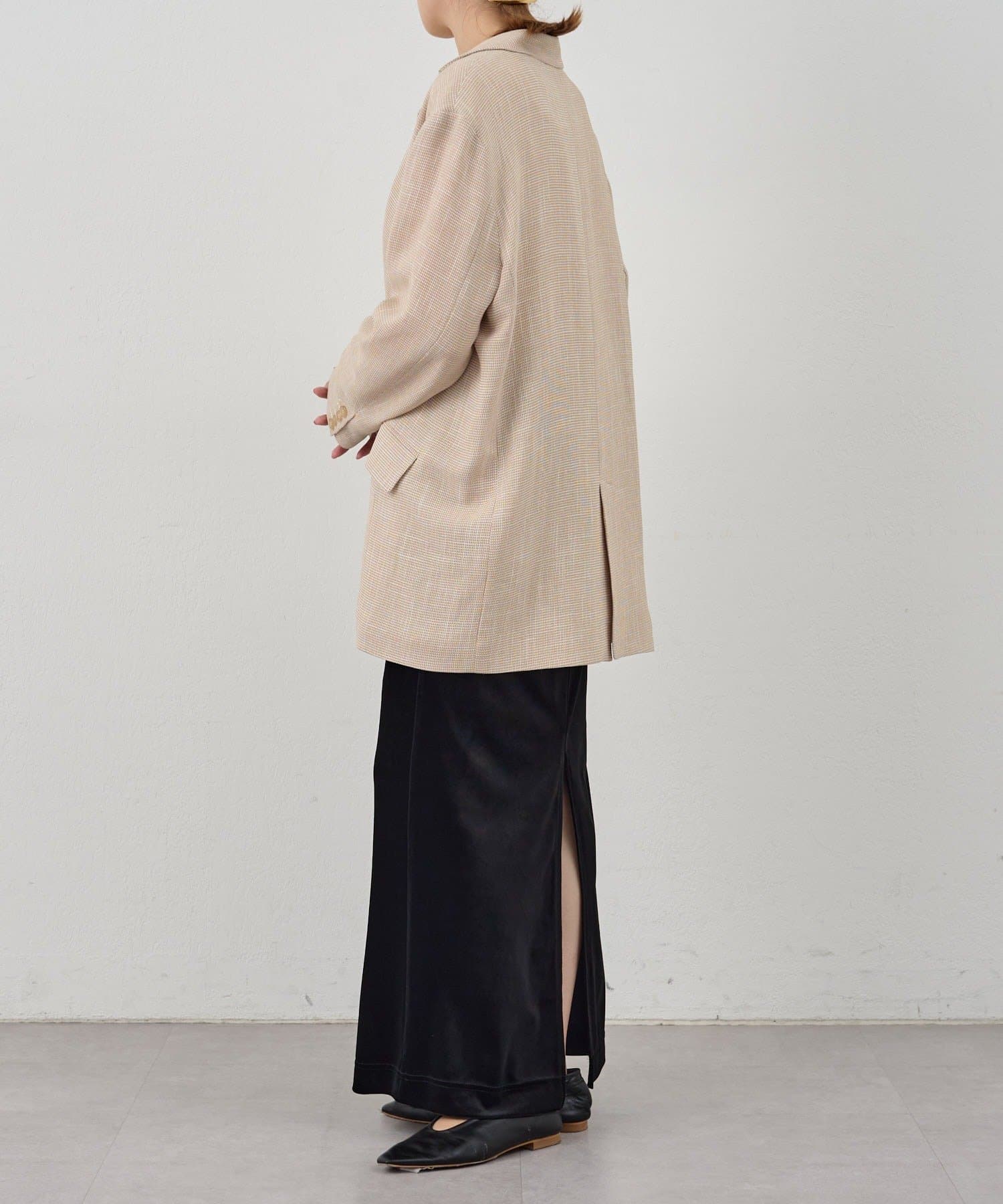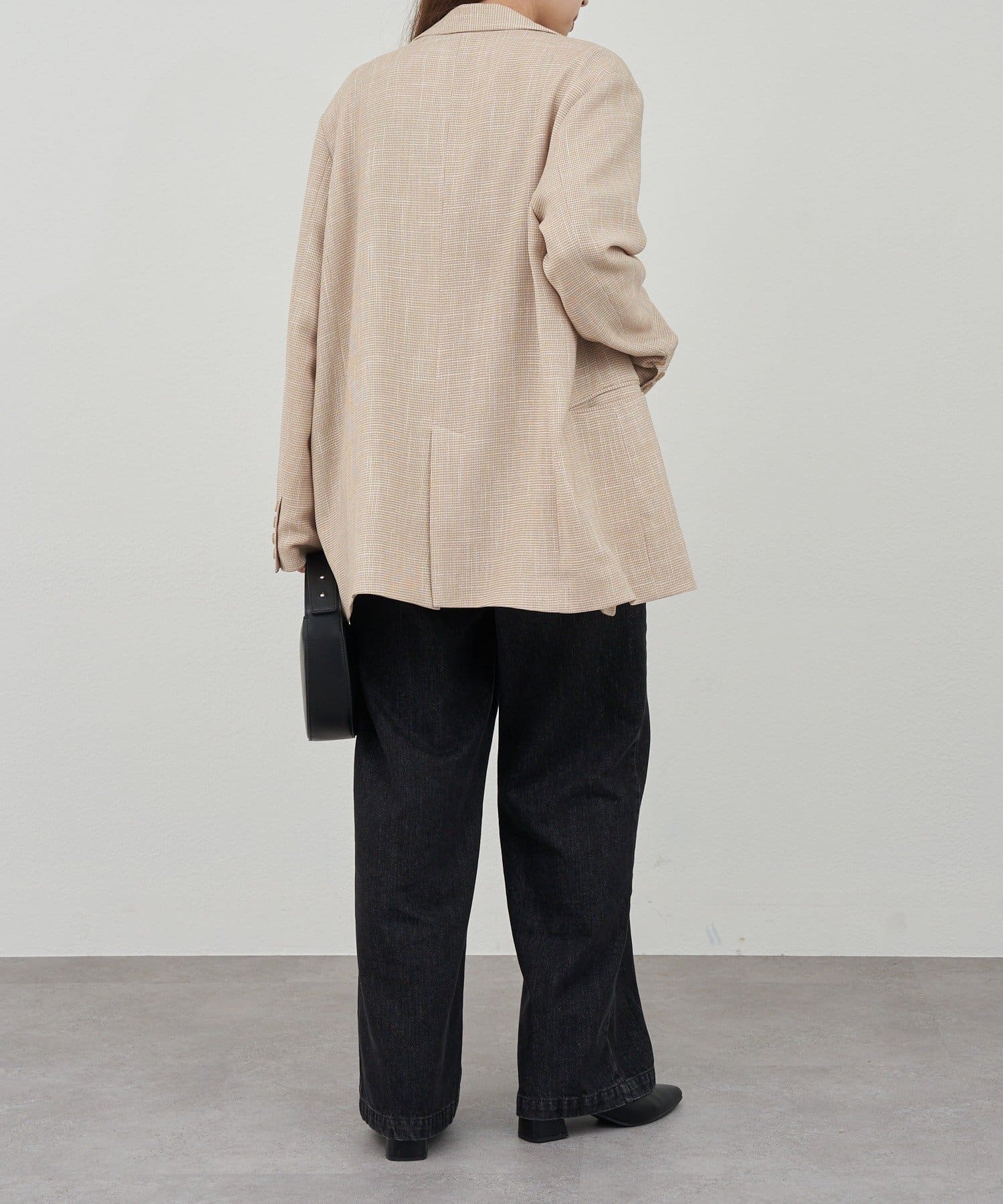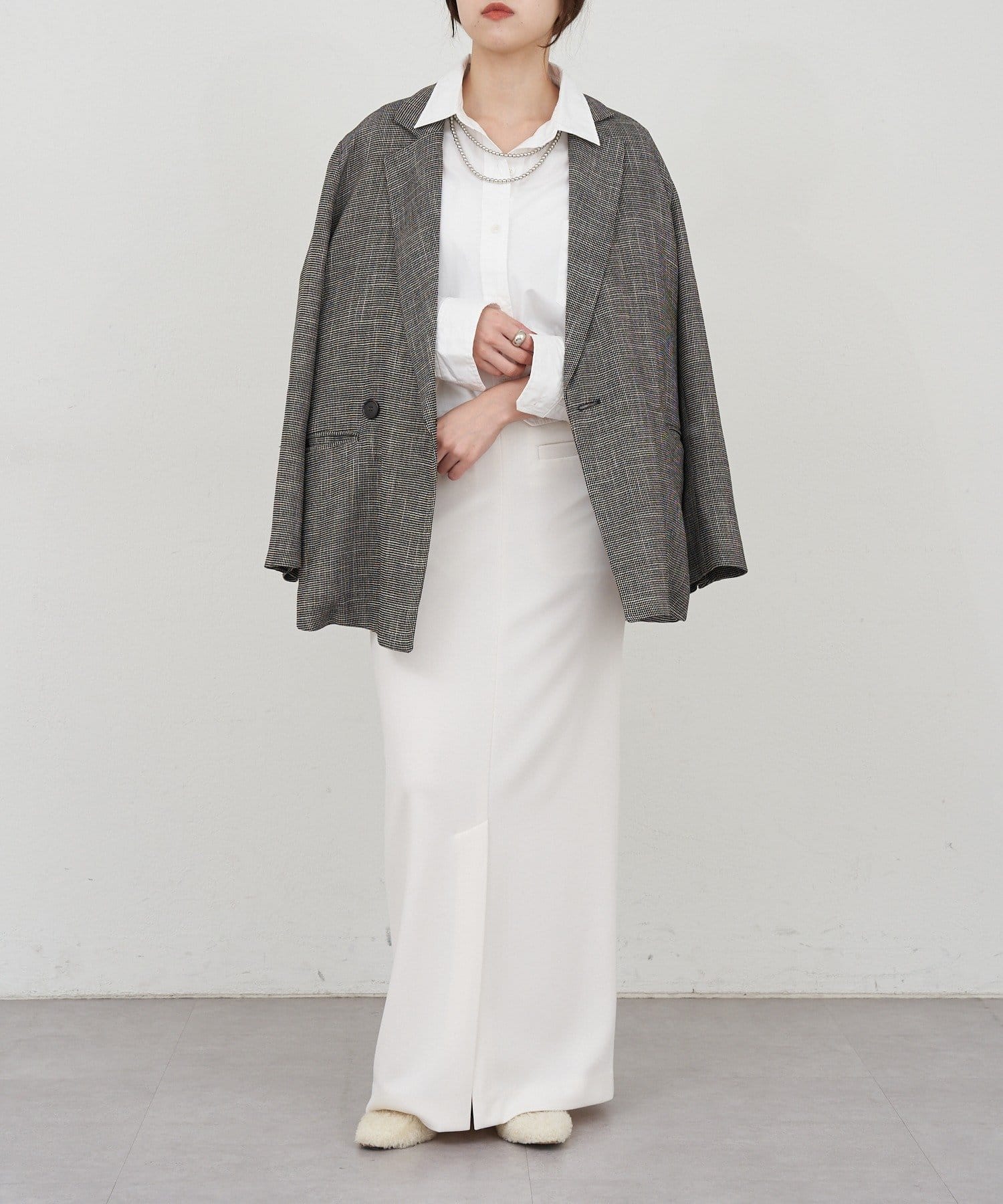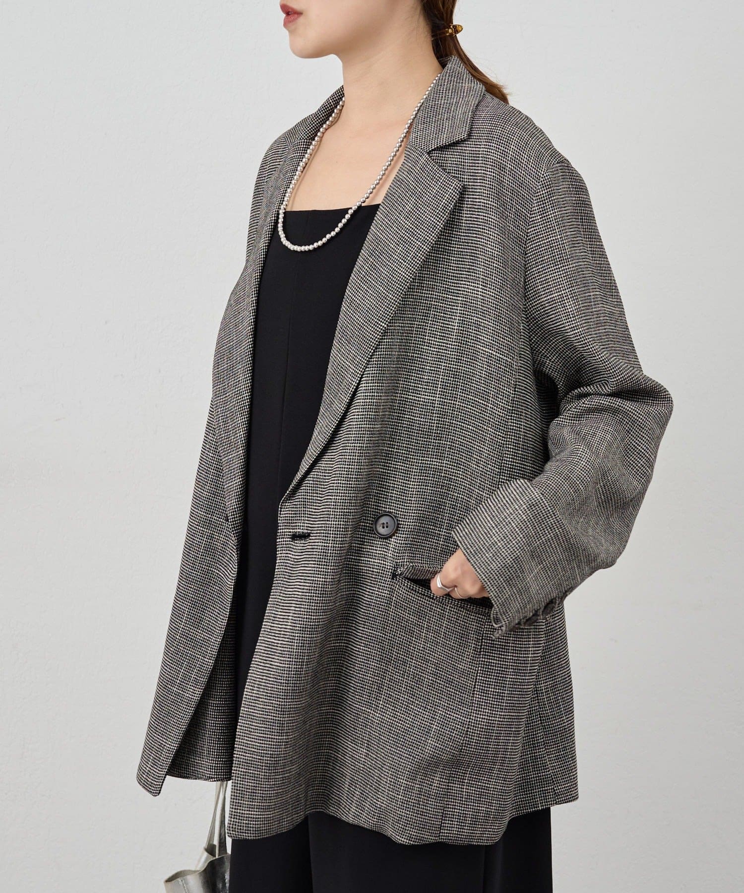 ダブル仕立てでメンズライクな雰囲気もありつつ、素材の落ち感が上品で女性らしく着れます。