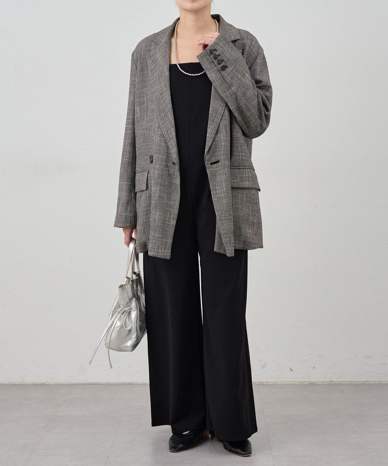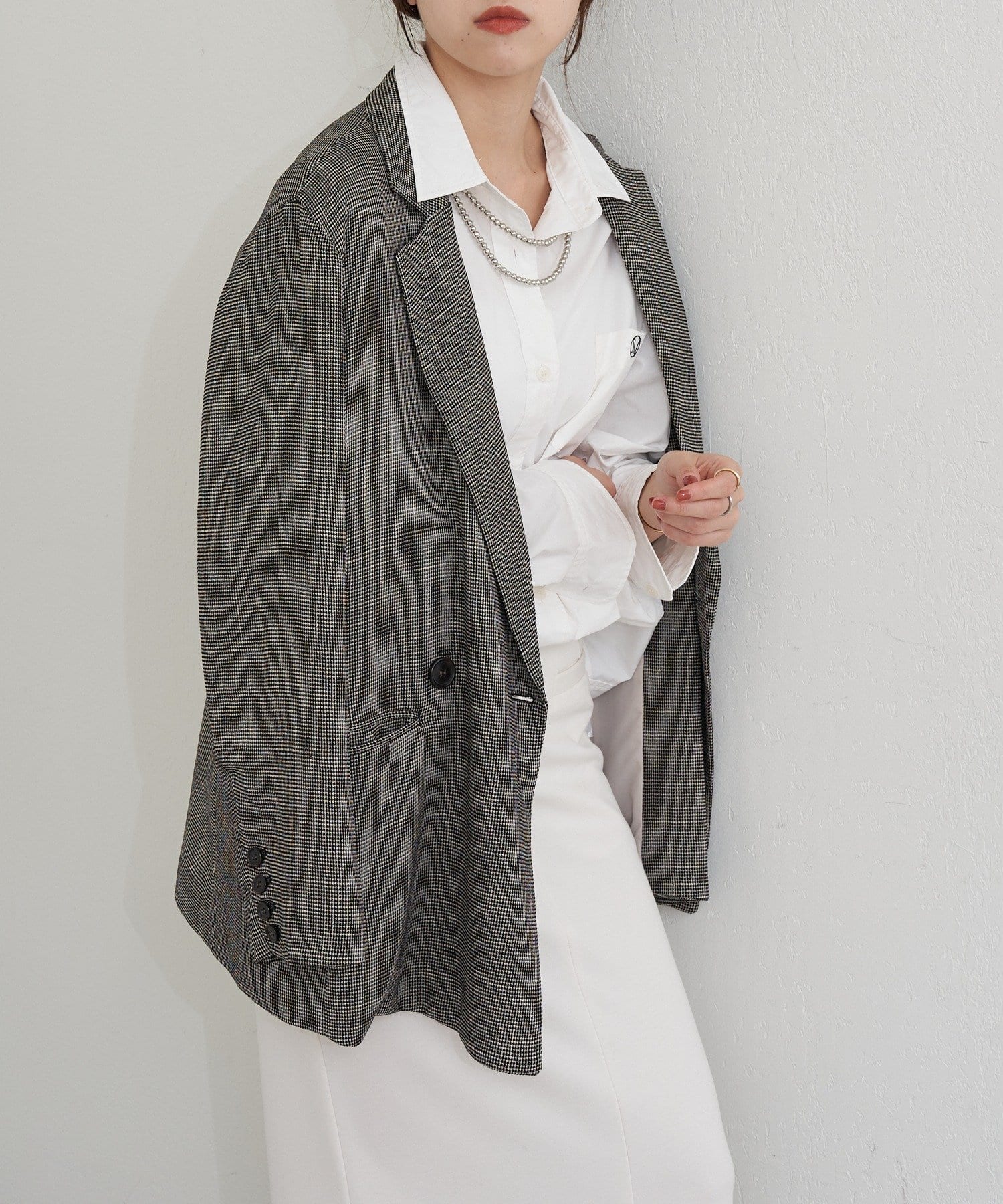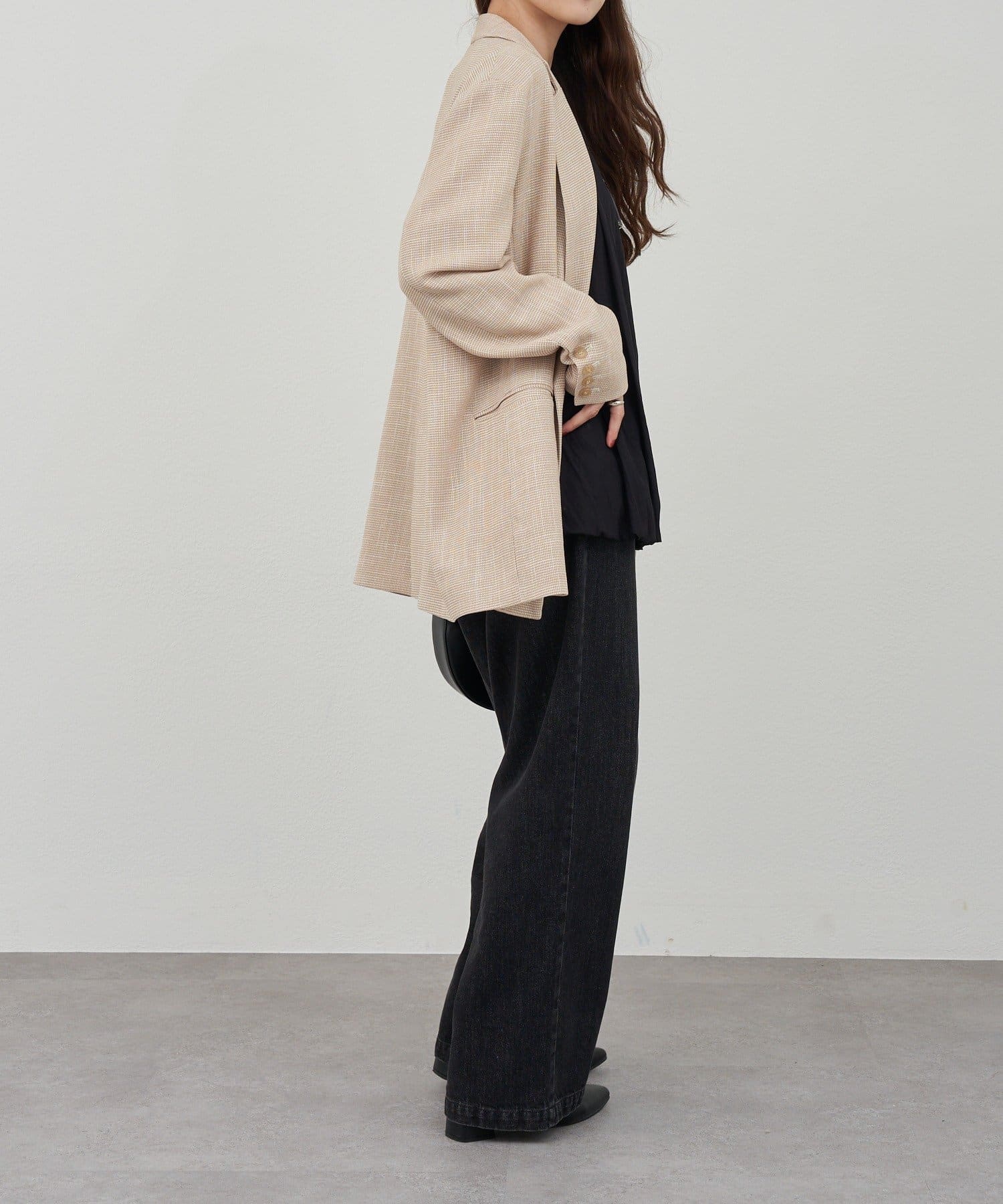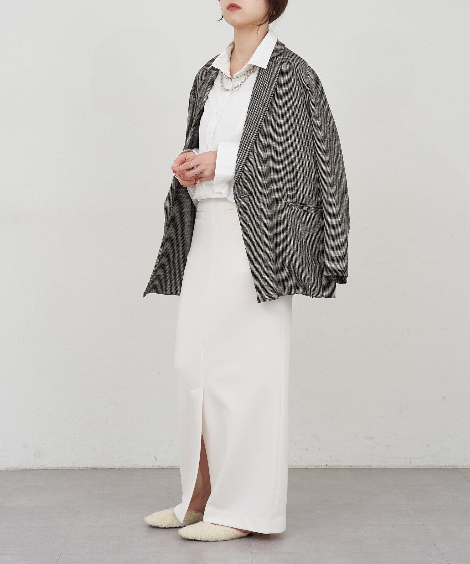 ダブル仕立てでメンズライクな雰囲気もありつつ、素材の落ち感が上品で女性らしく着れます。