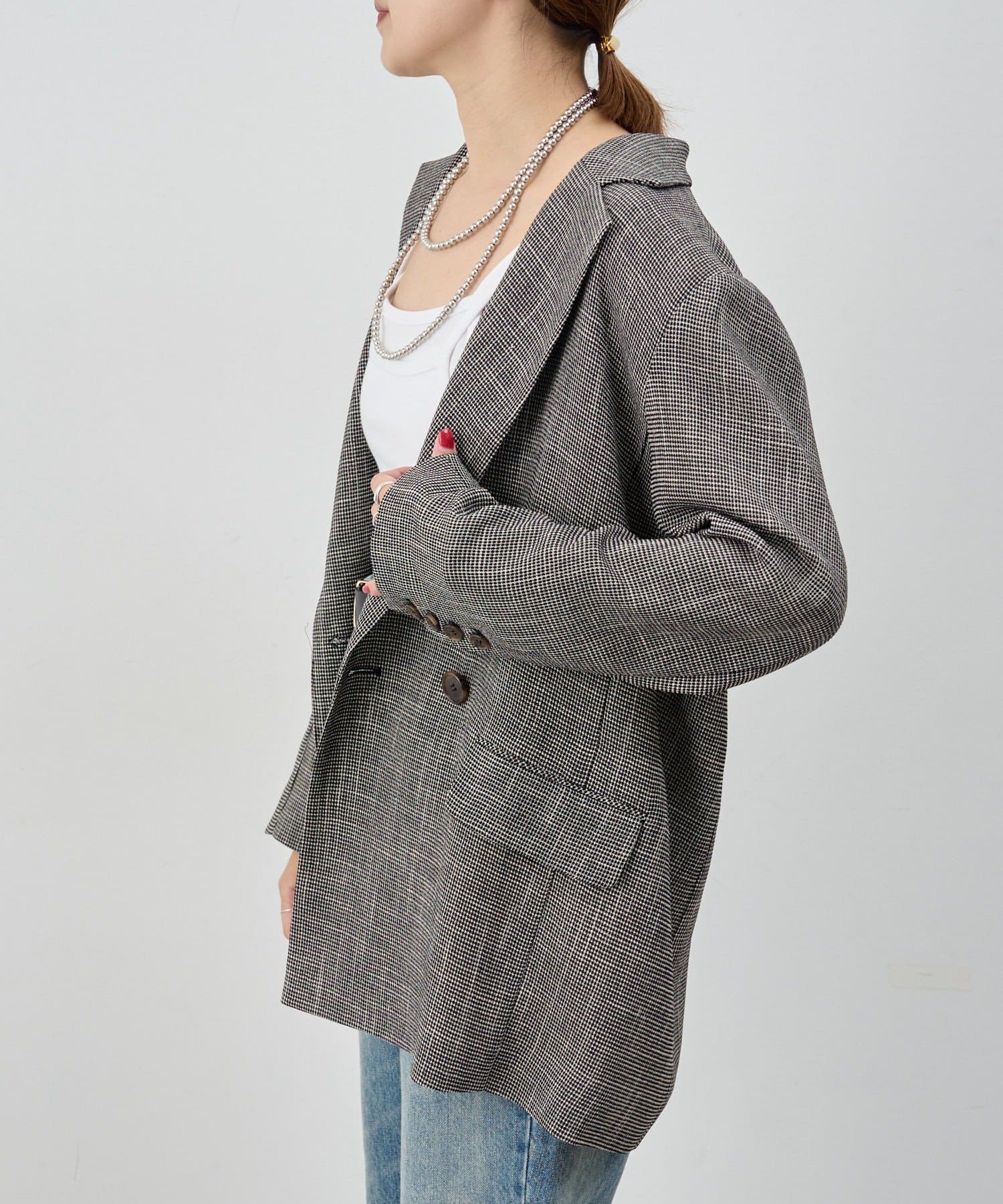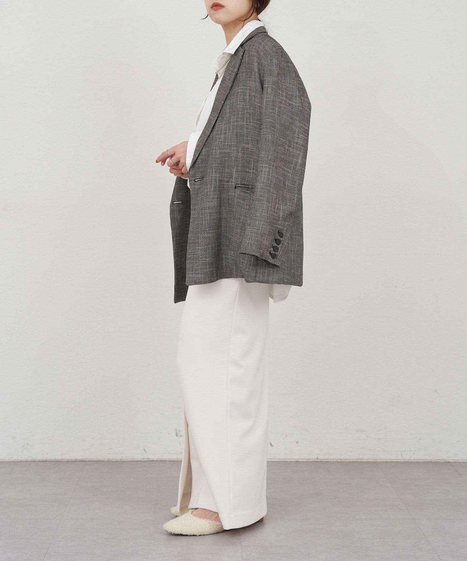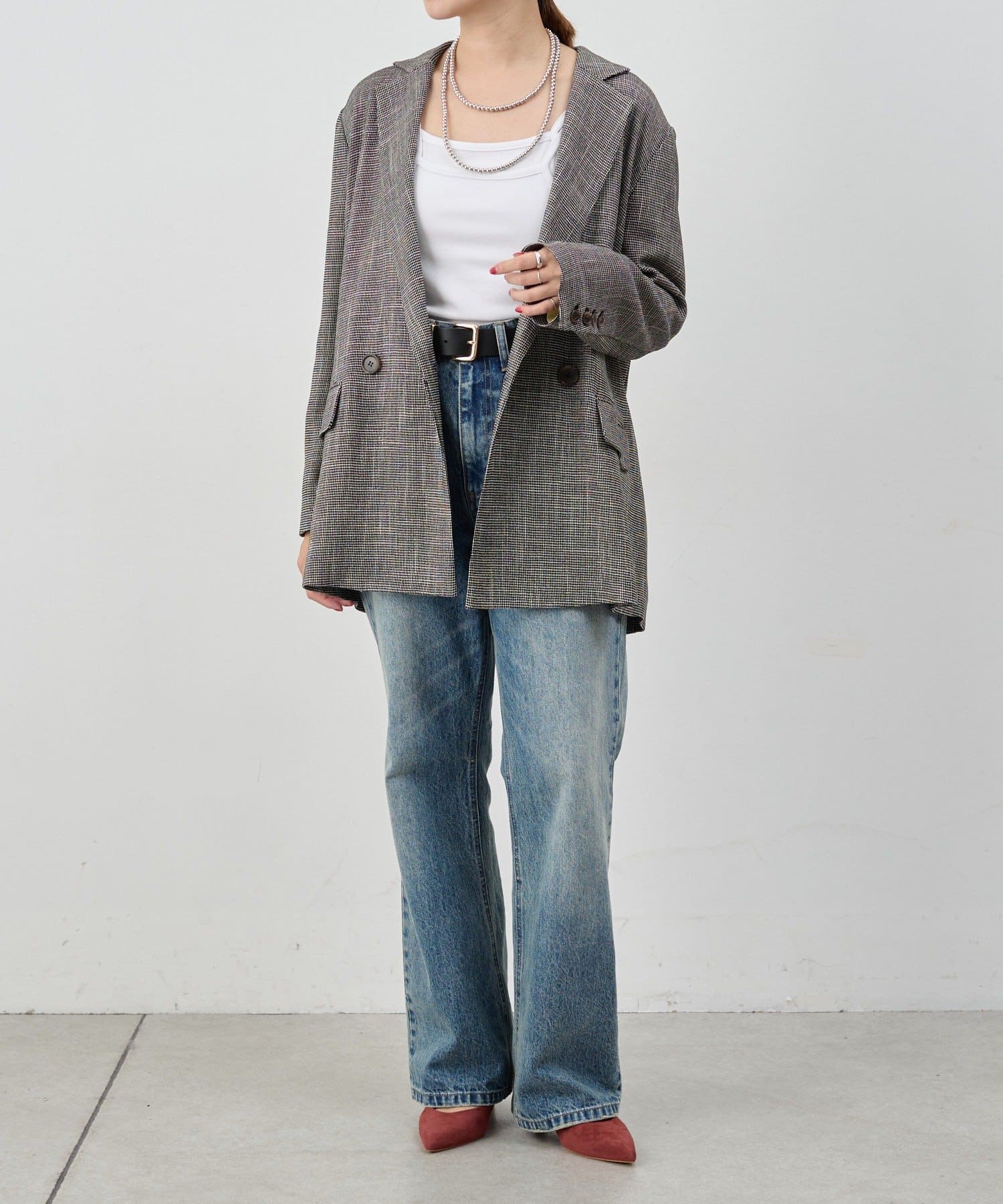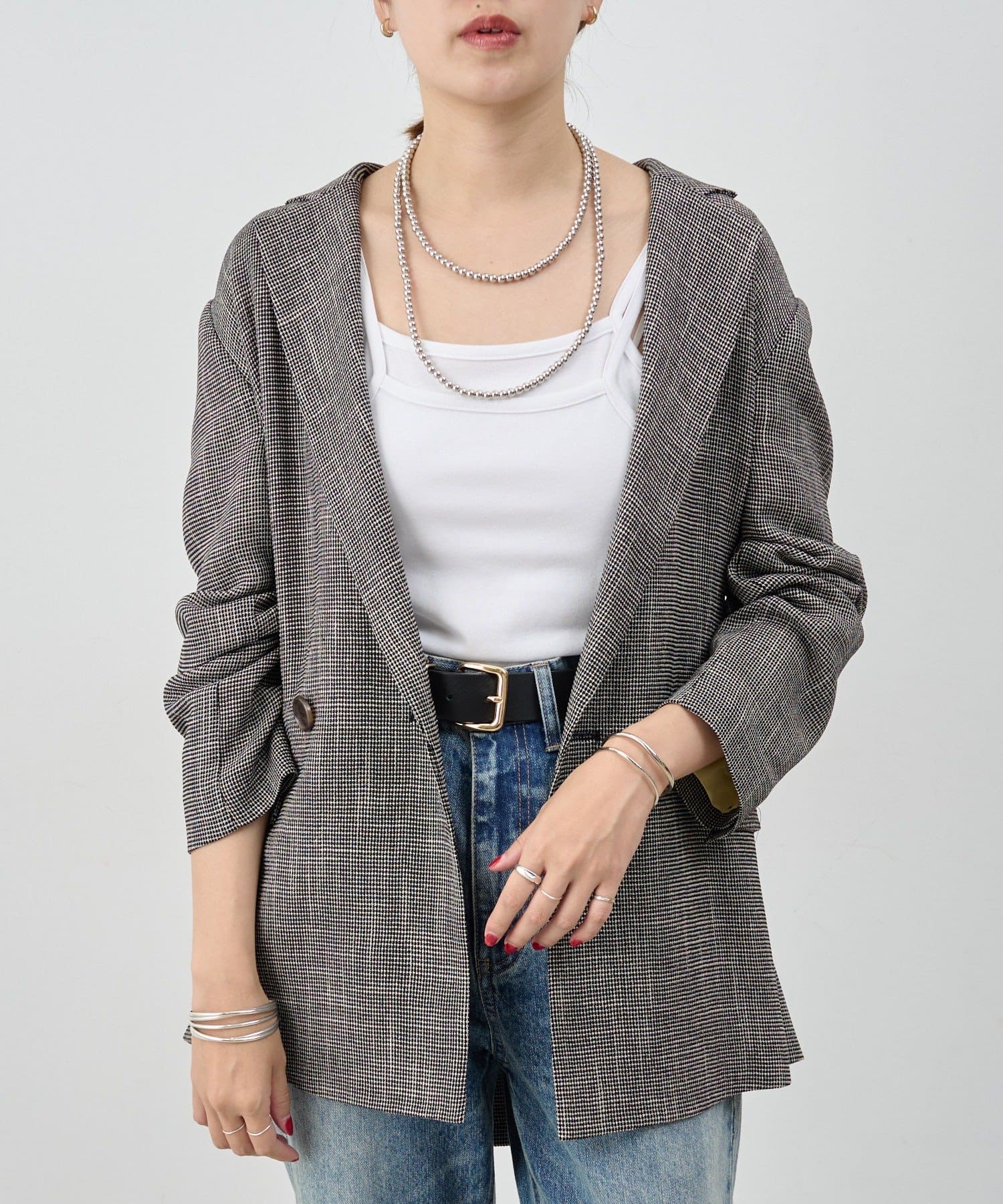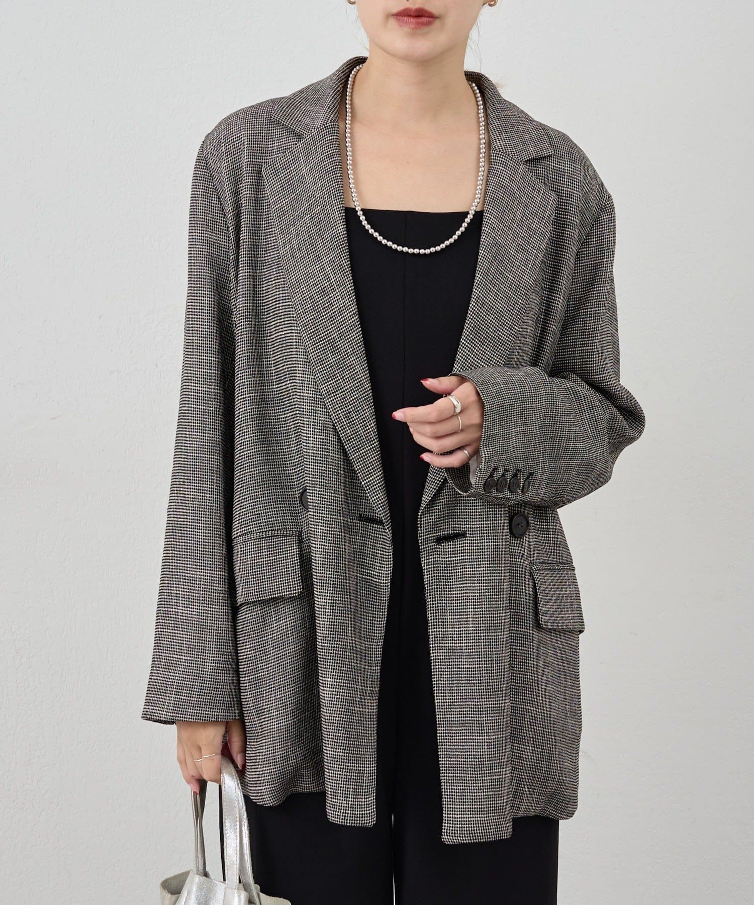 ダブル仕立てでメンズライクな雰囲気もありつつ、素材の落ち感が上品で女性らしく着れます。