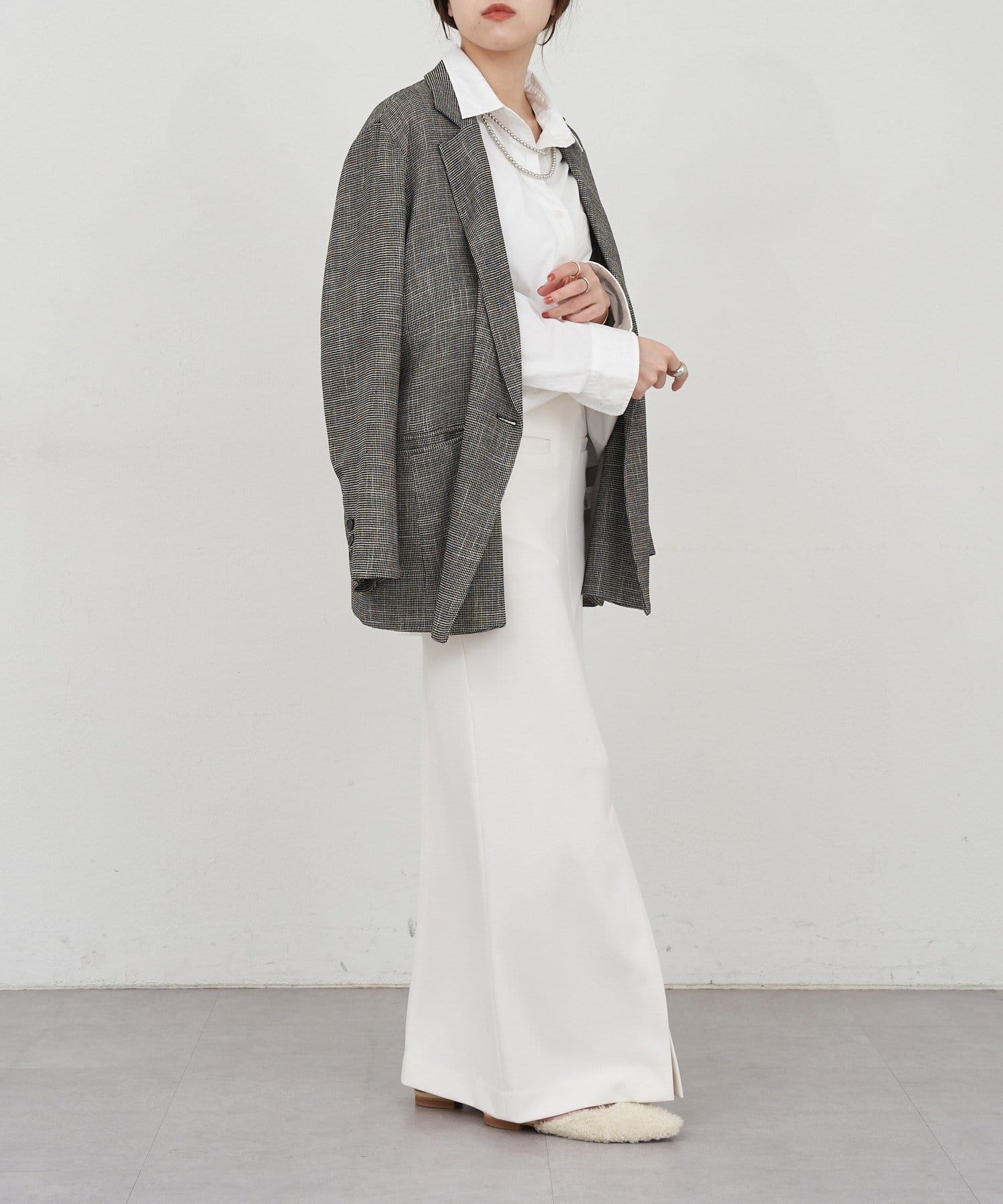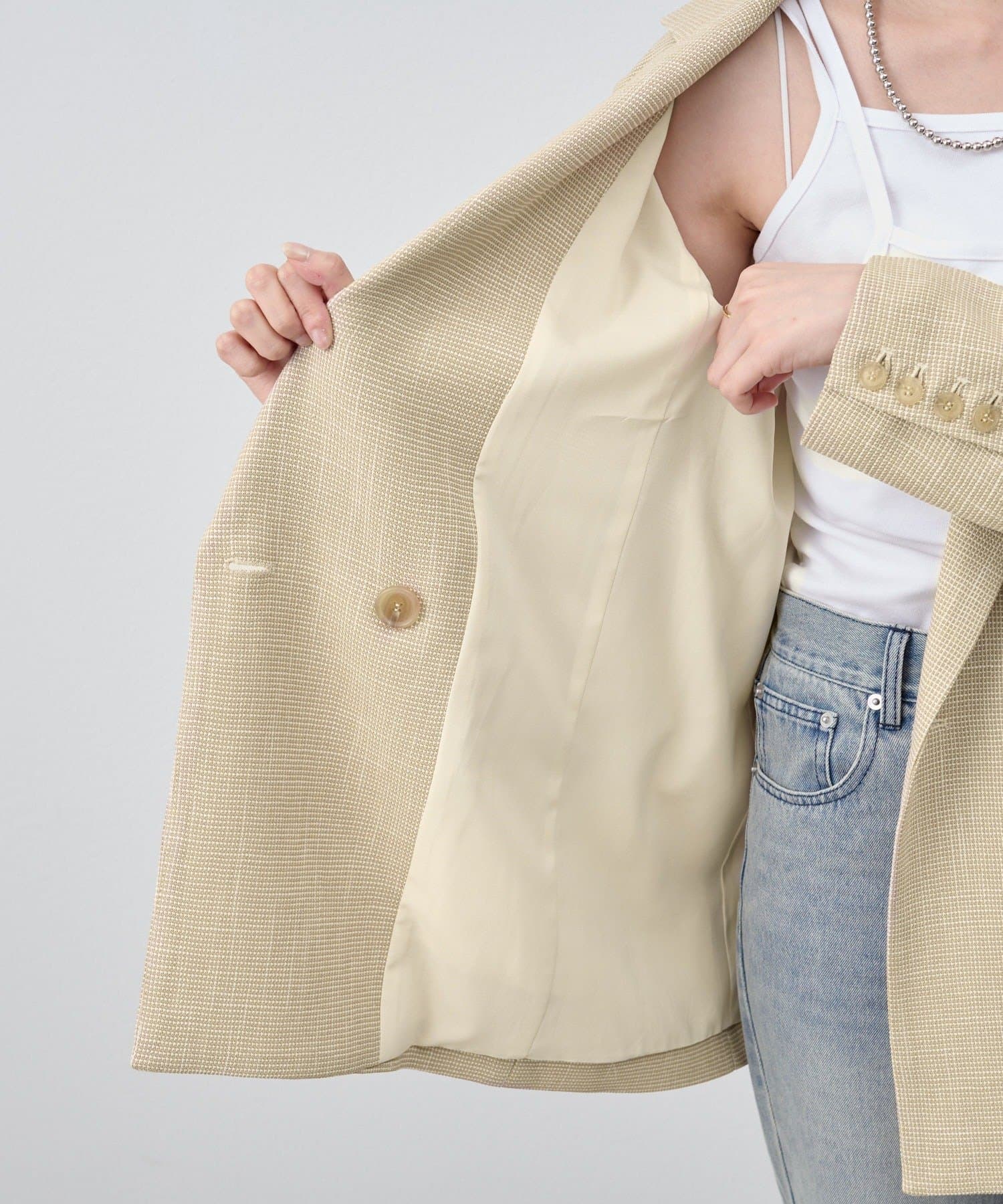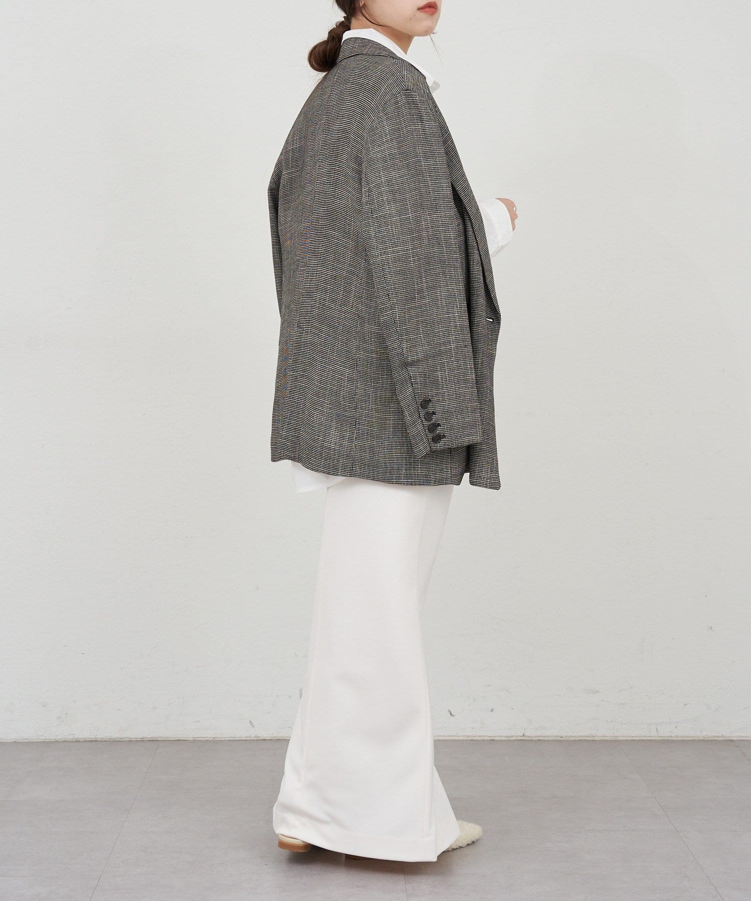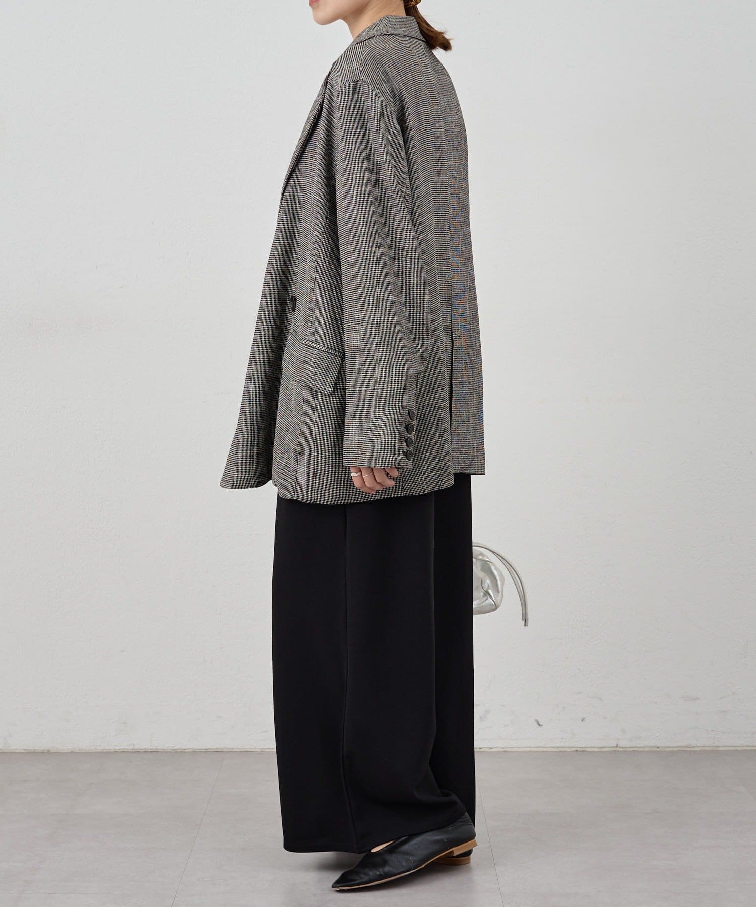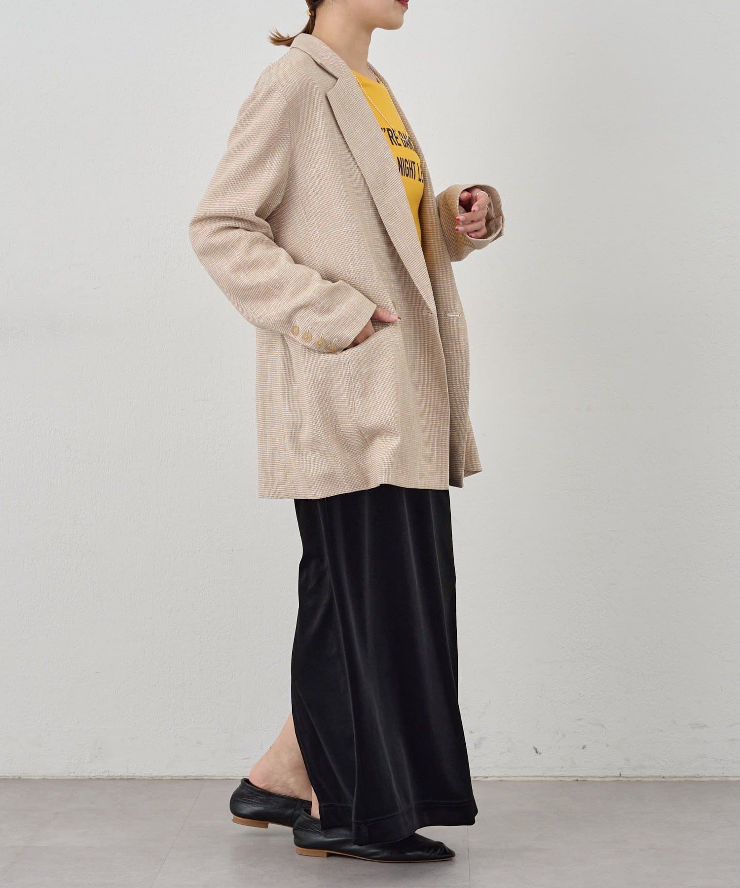 ダブル仕立てでメンズライクな雰囲気もありつつ、素材の落ち感が上品で女性らしく着れます。