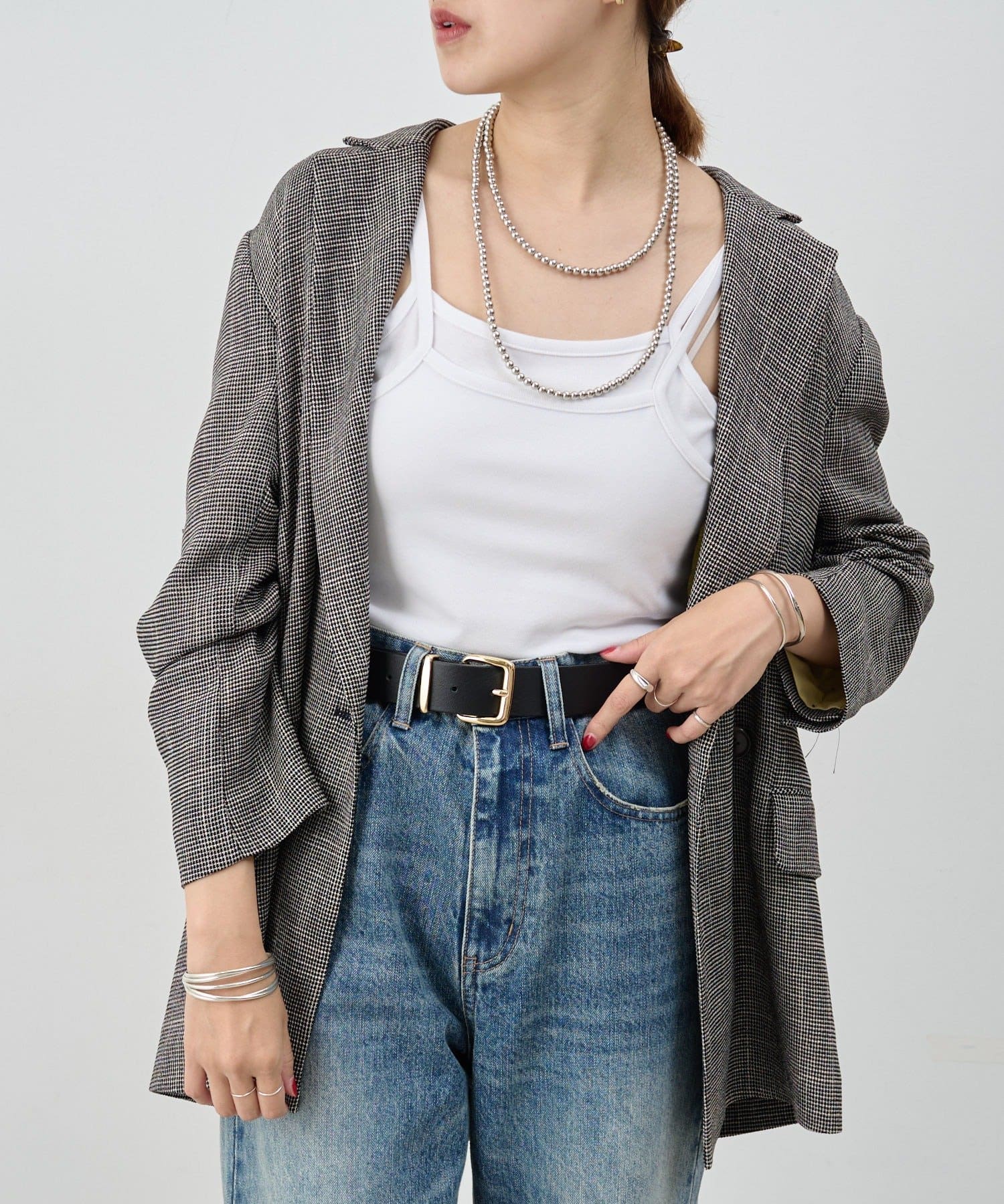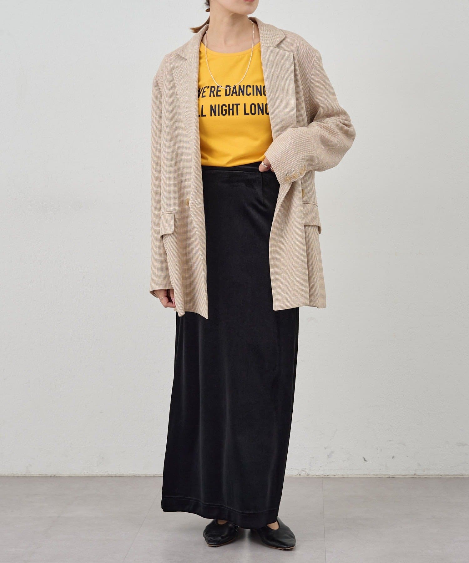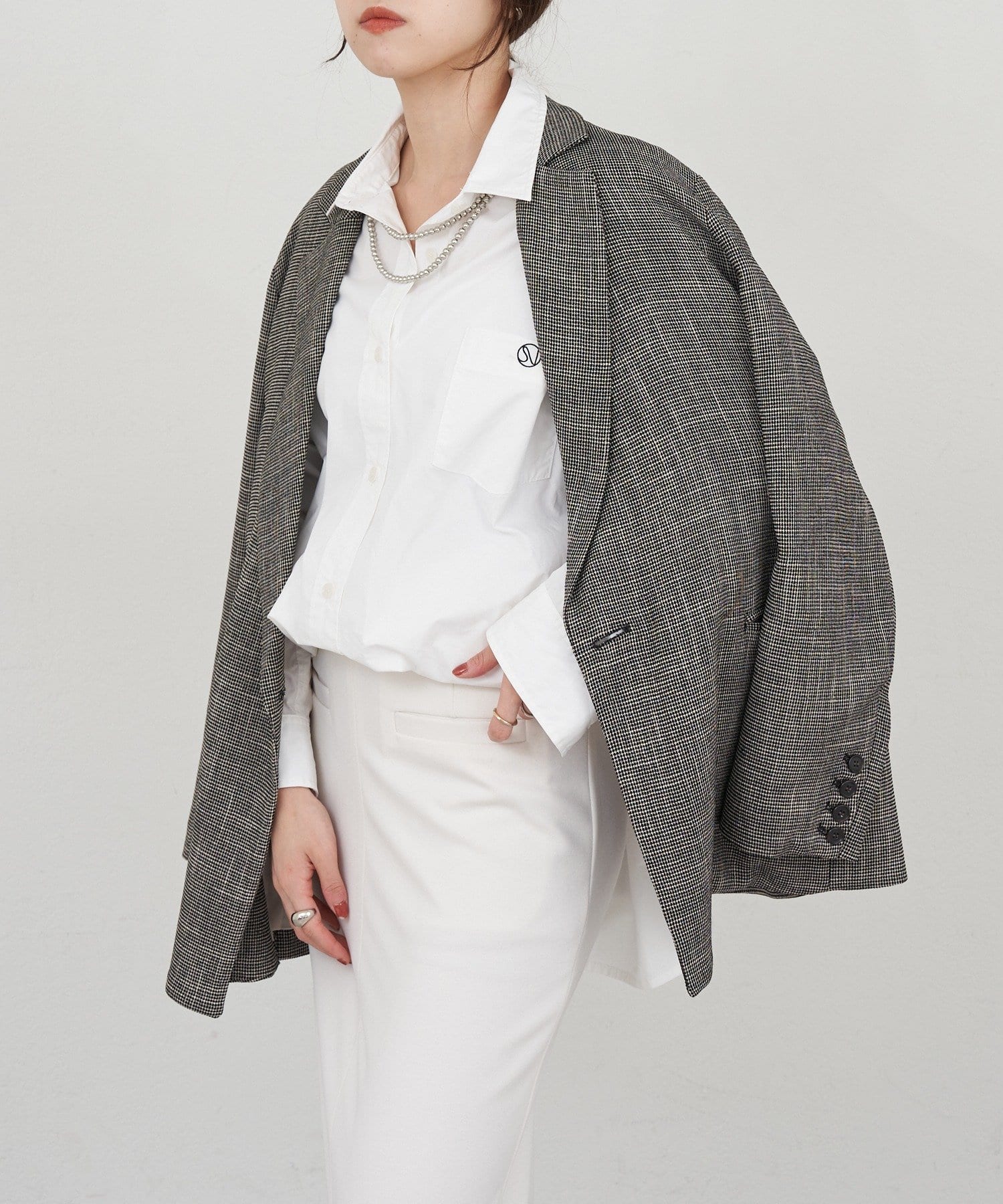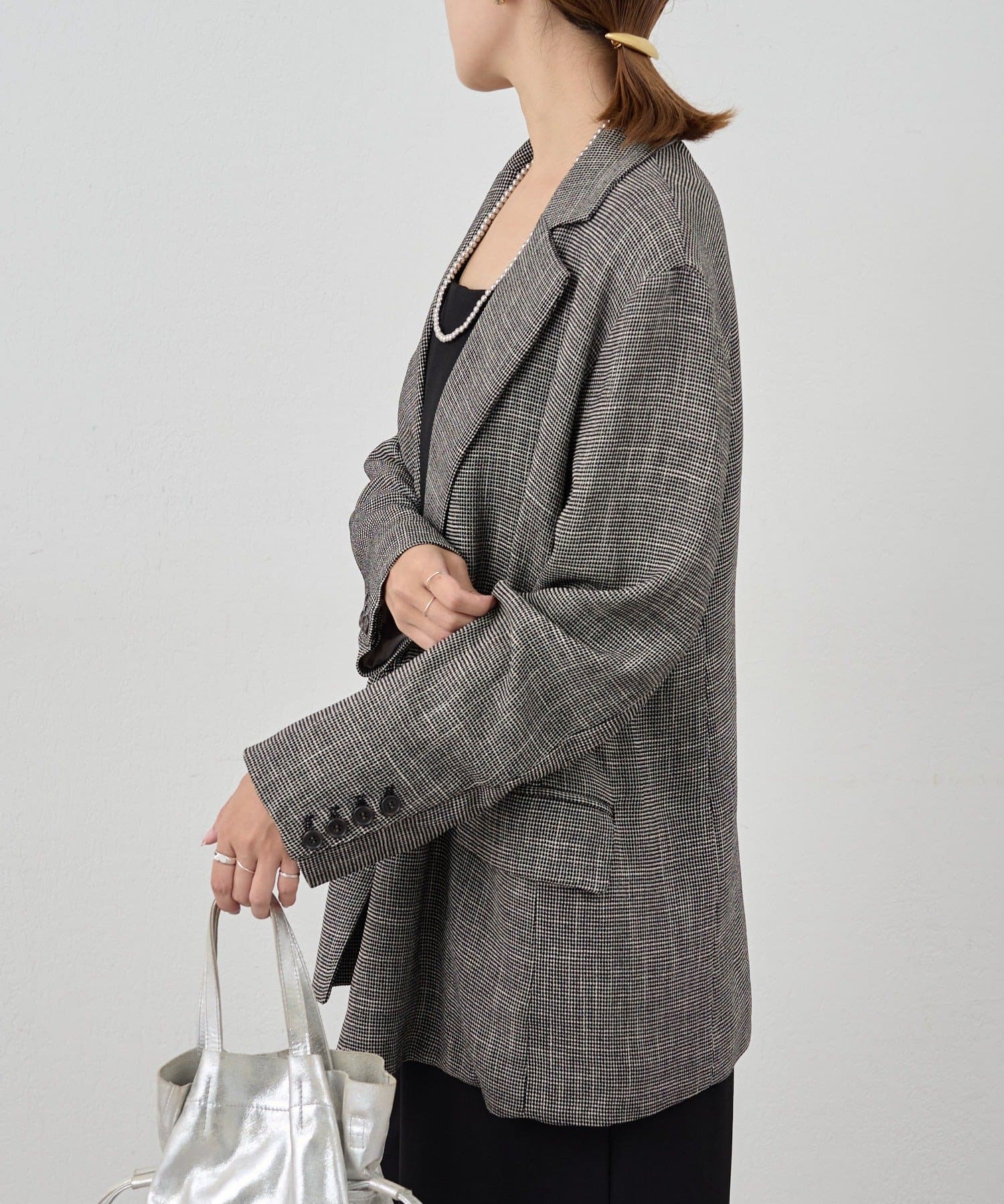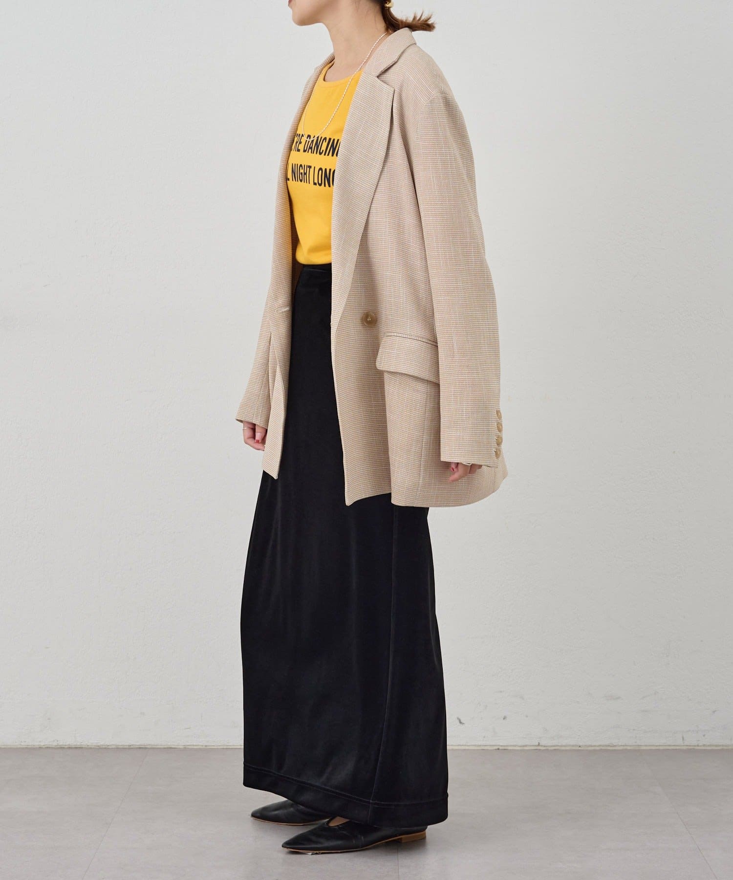 ダブル仕立てでメンズライクな雰囲気もありつつ、素材の落ち感が上品で女性らしく着れます。