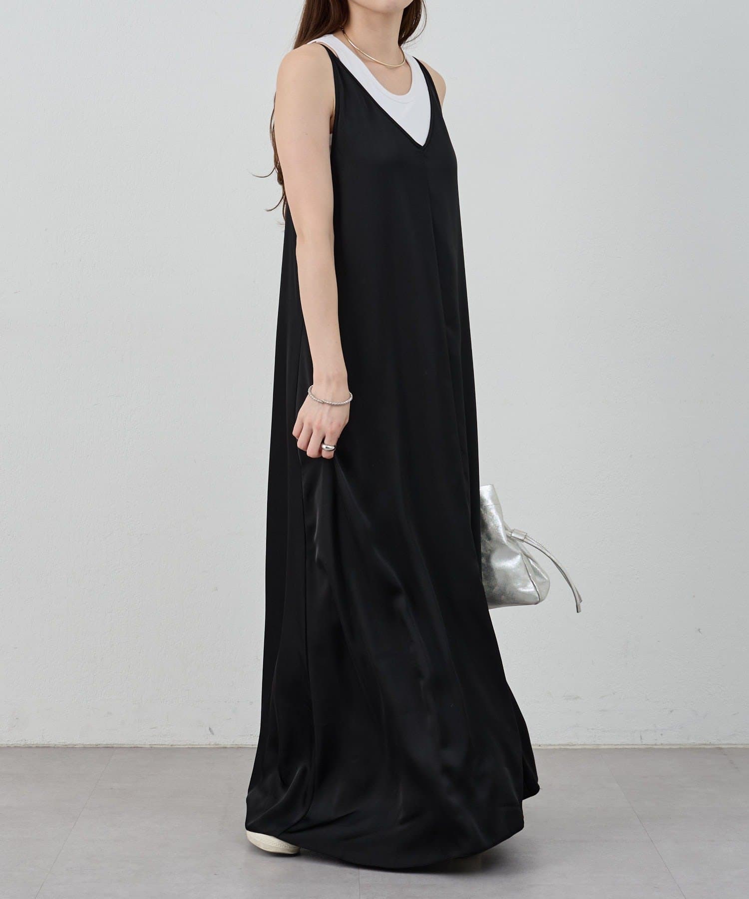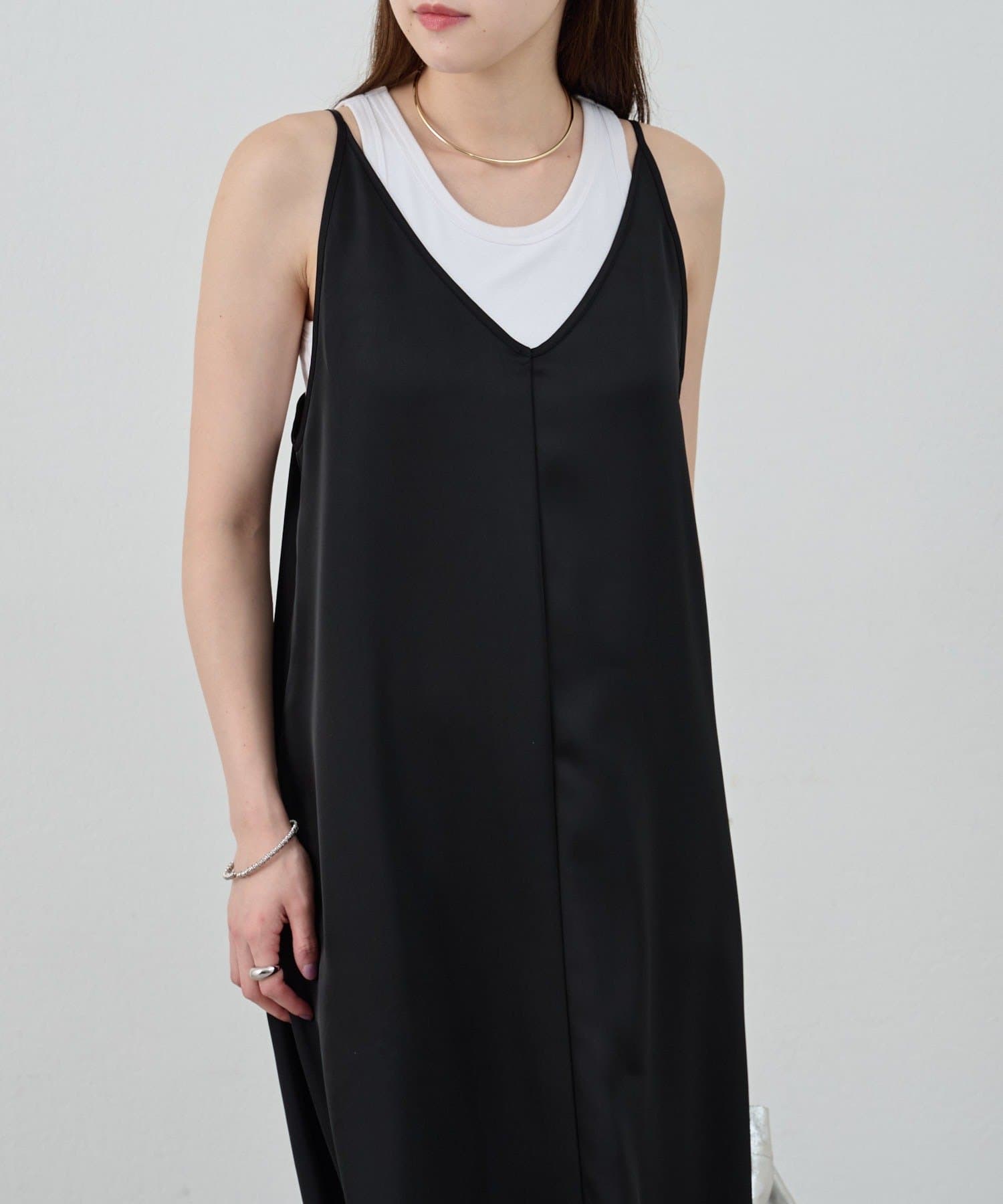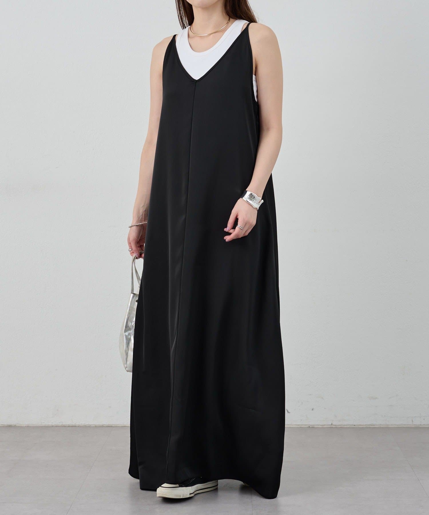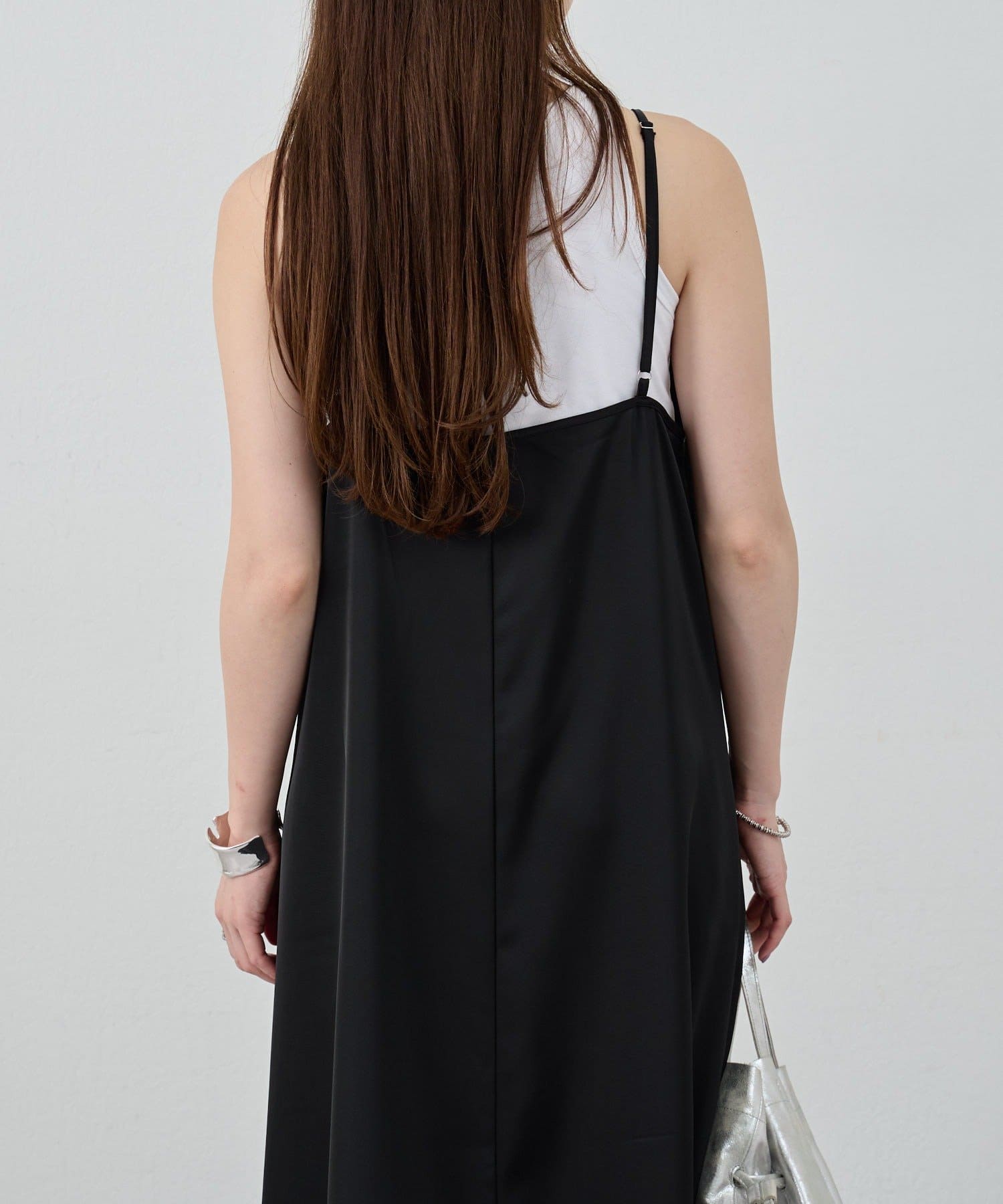 なめらかな肌触りと程よい光沢が魅力のキャミワンピース。