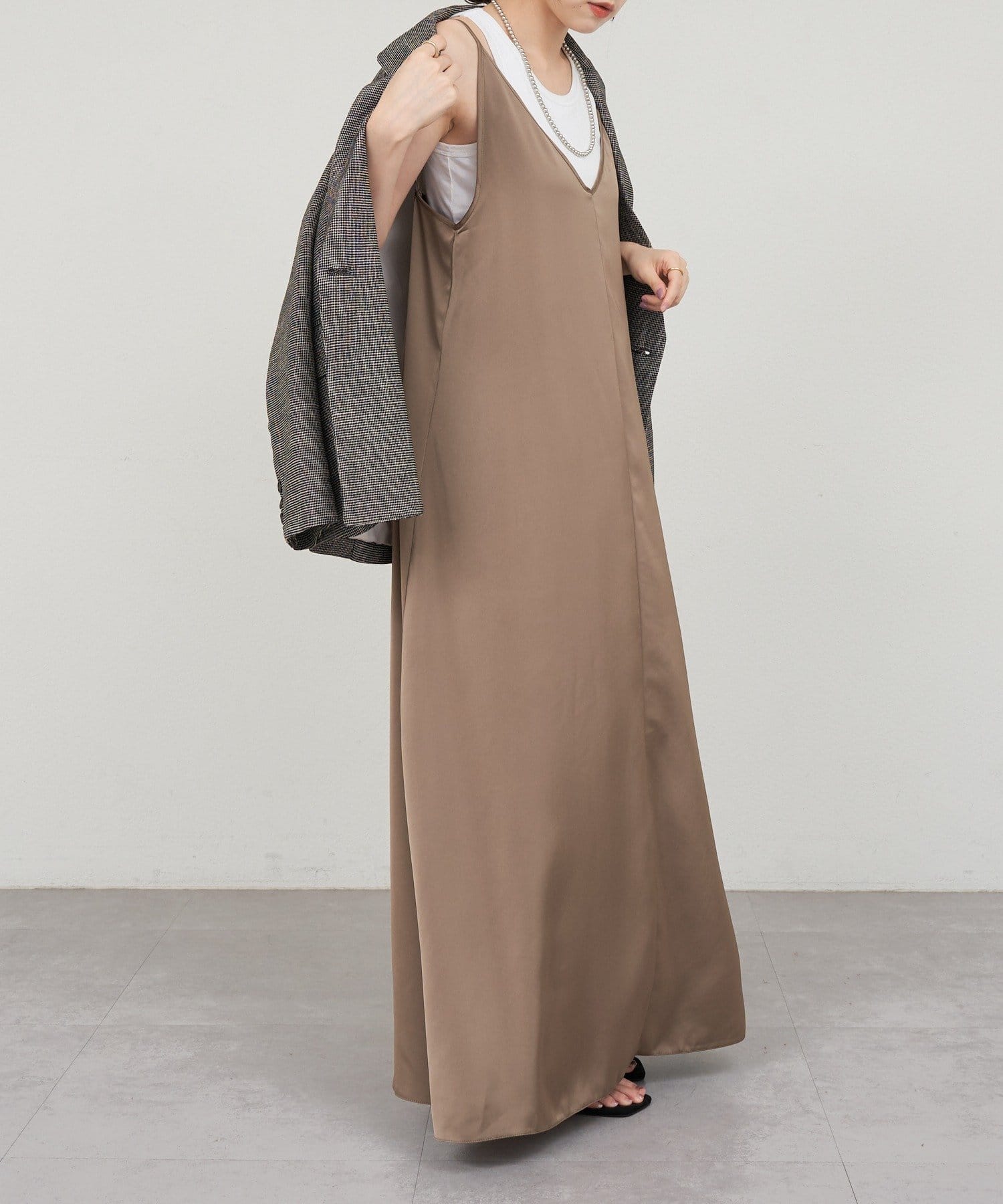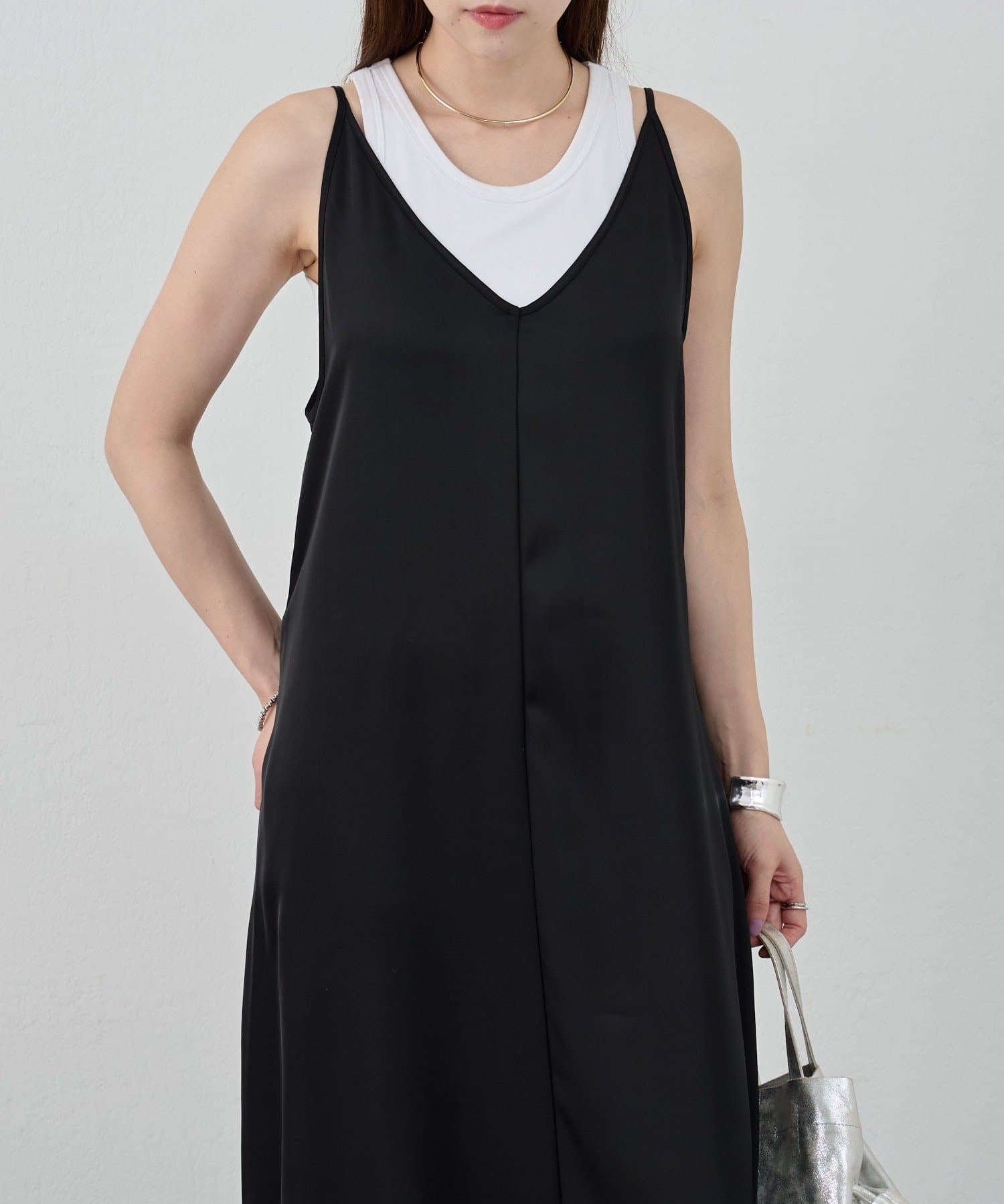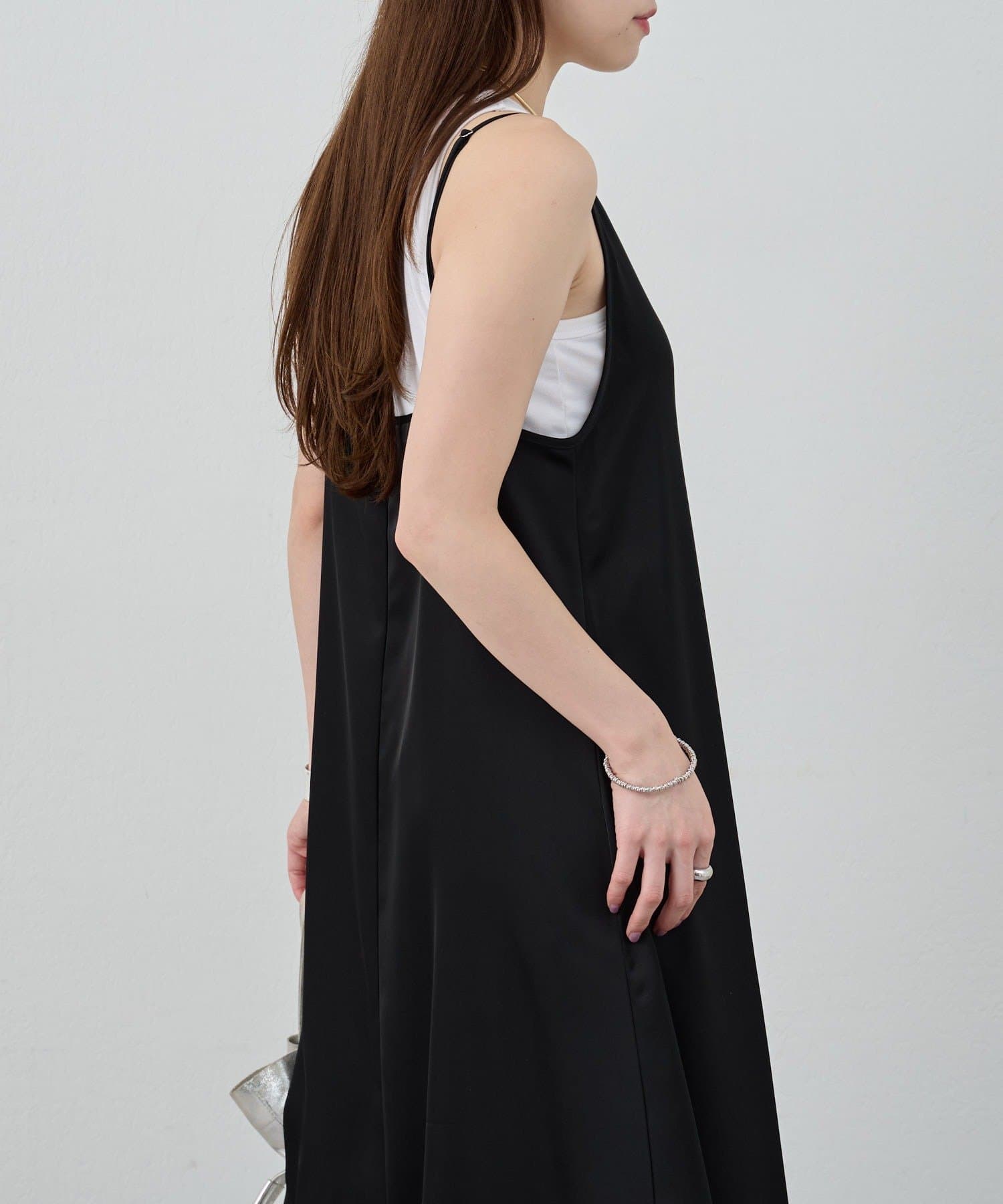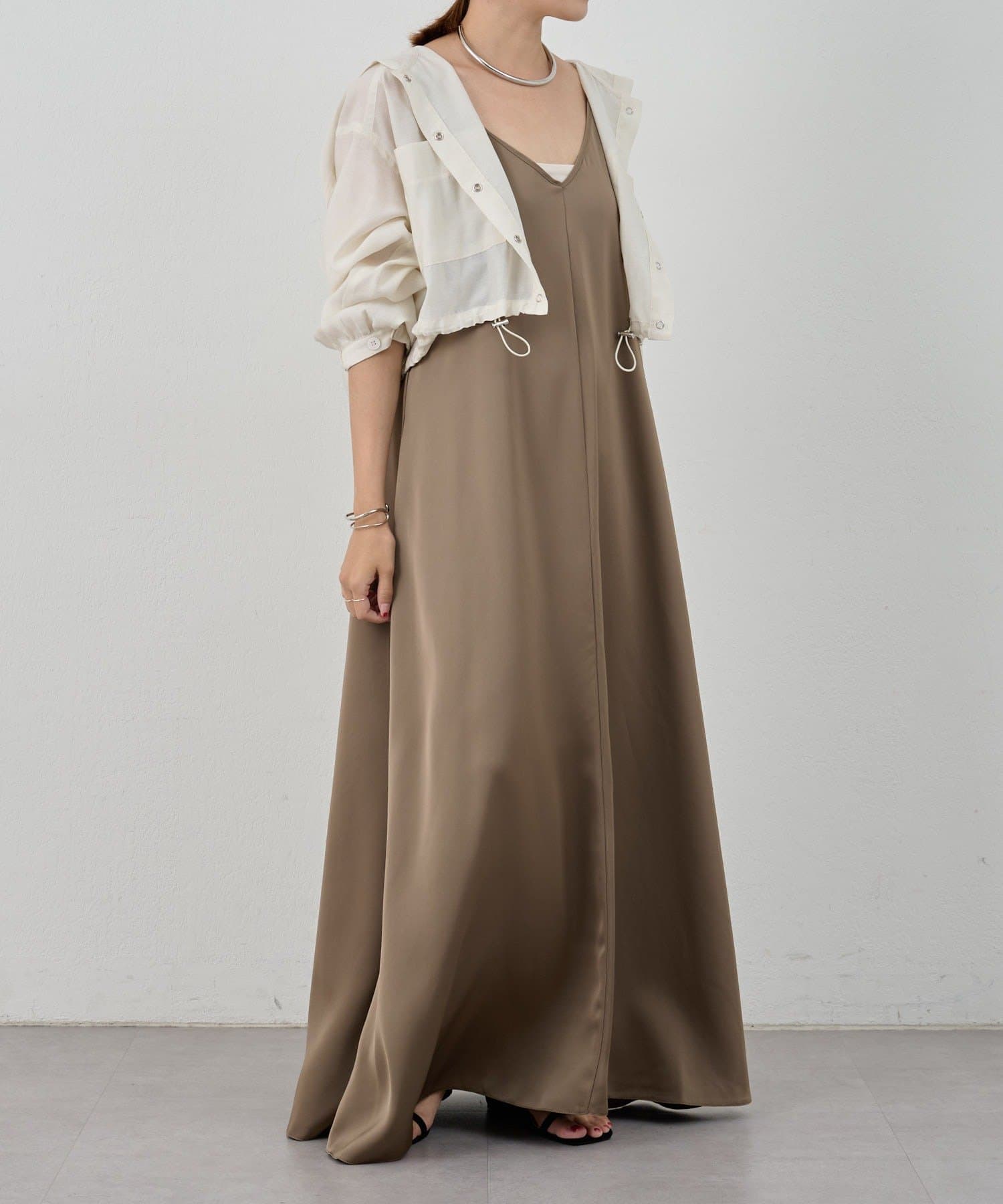 なめらかな肌触りと程よい光沢が魅力のキャミワンピース。