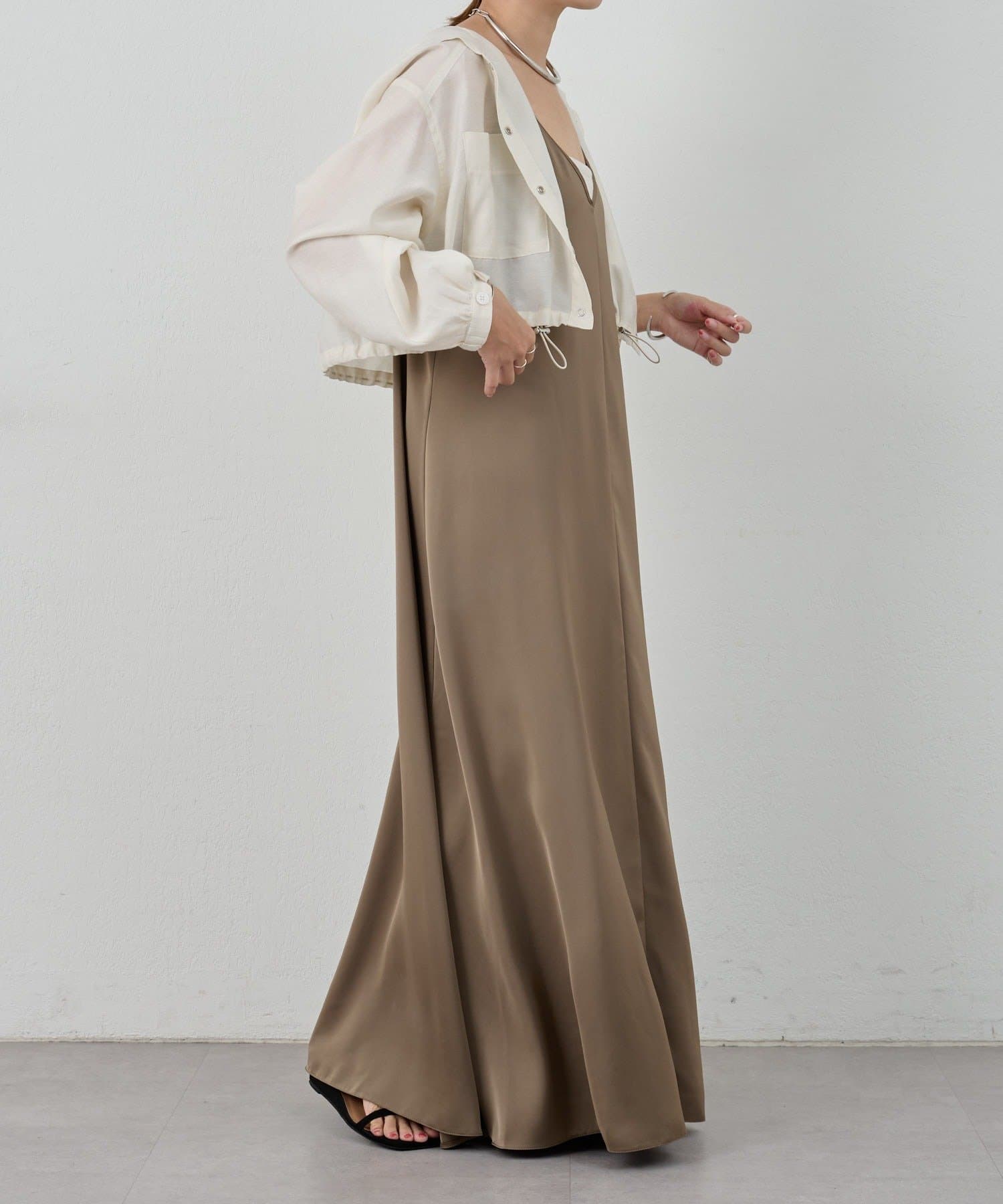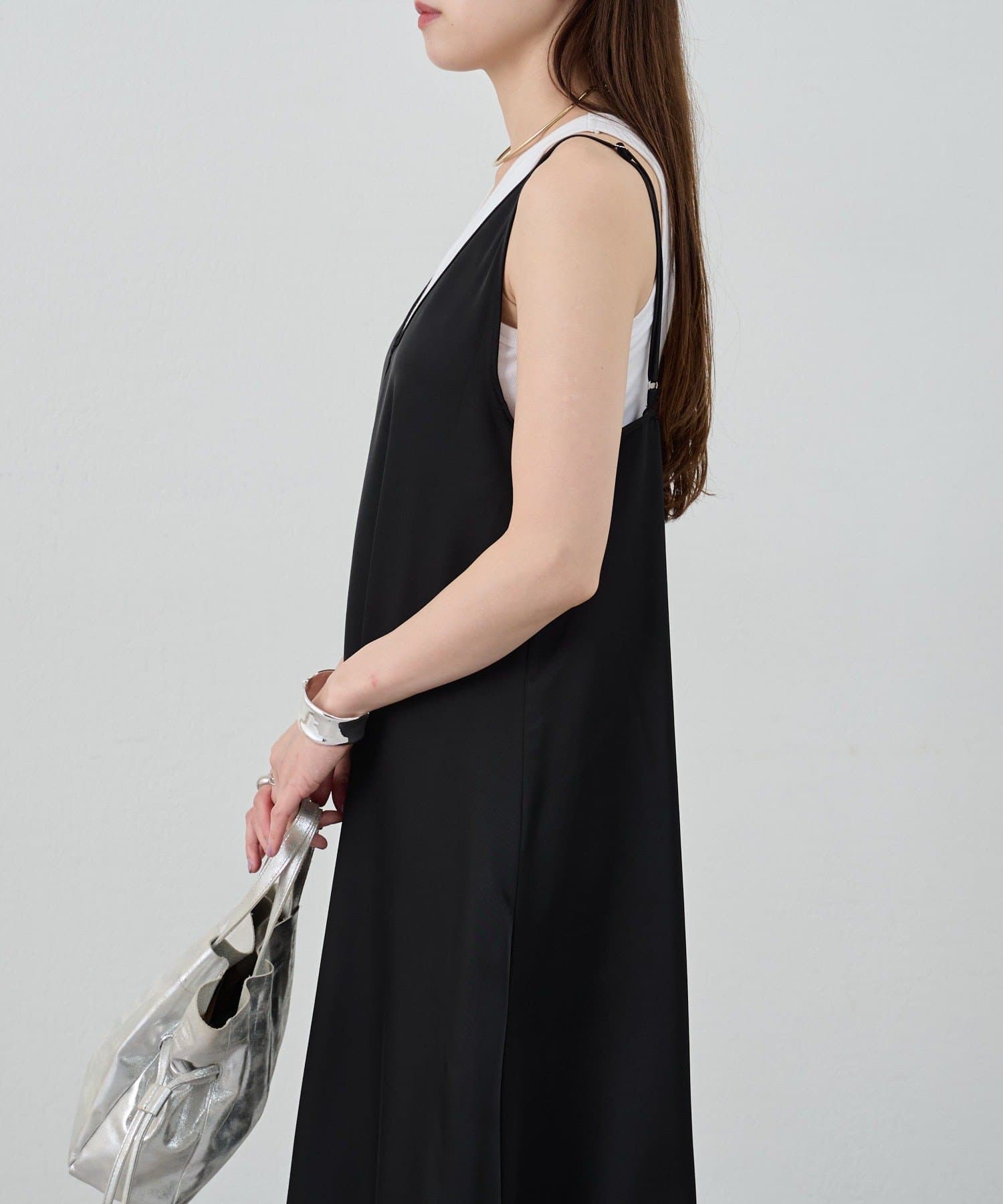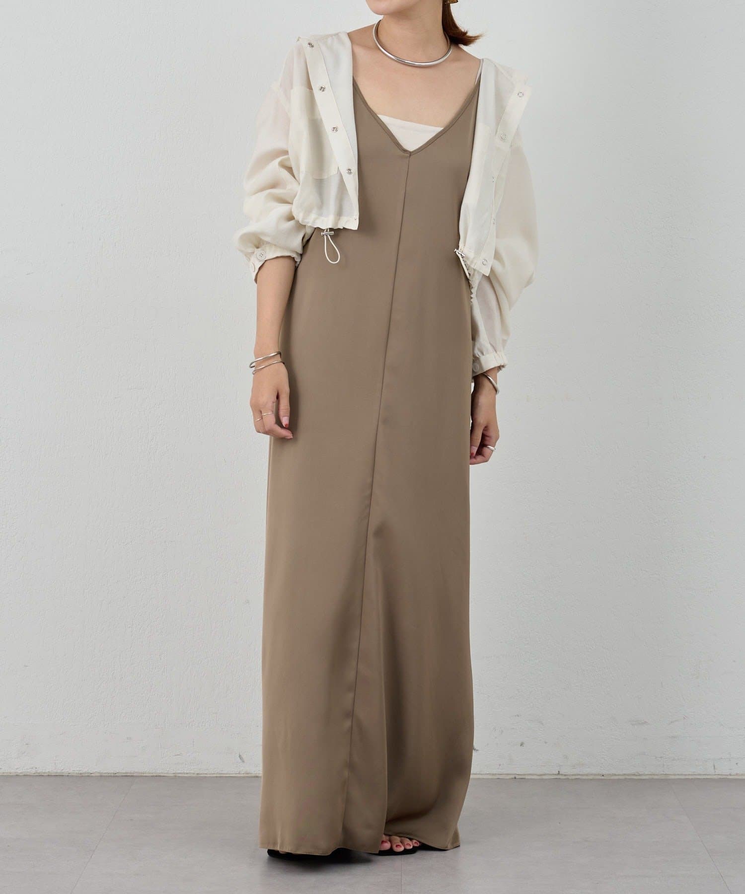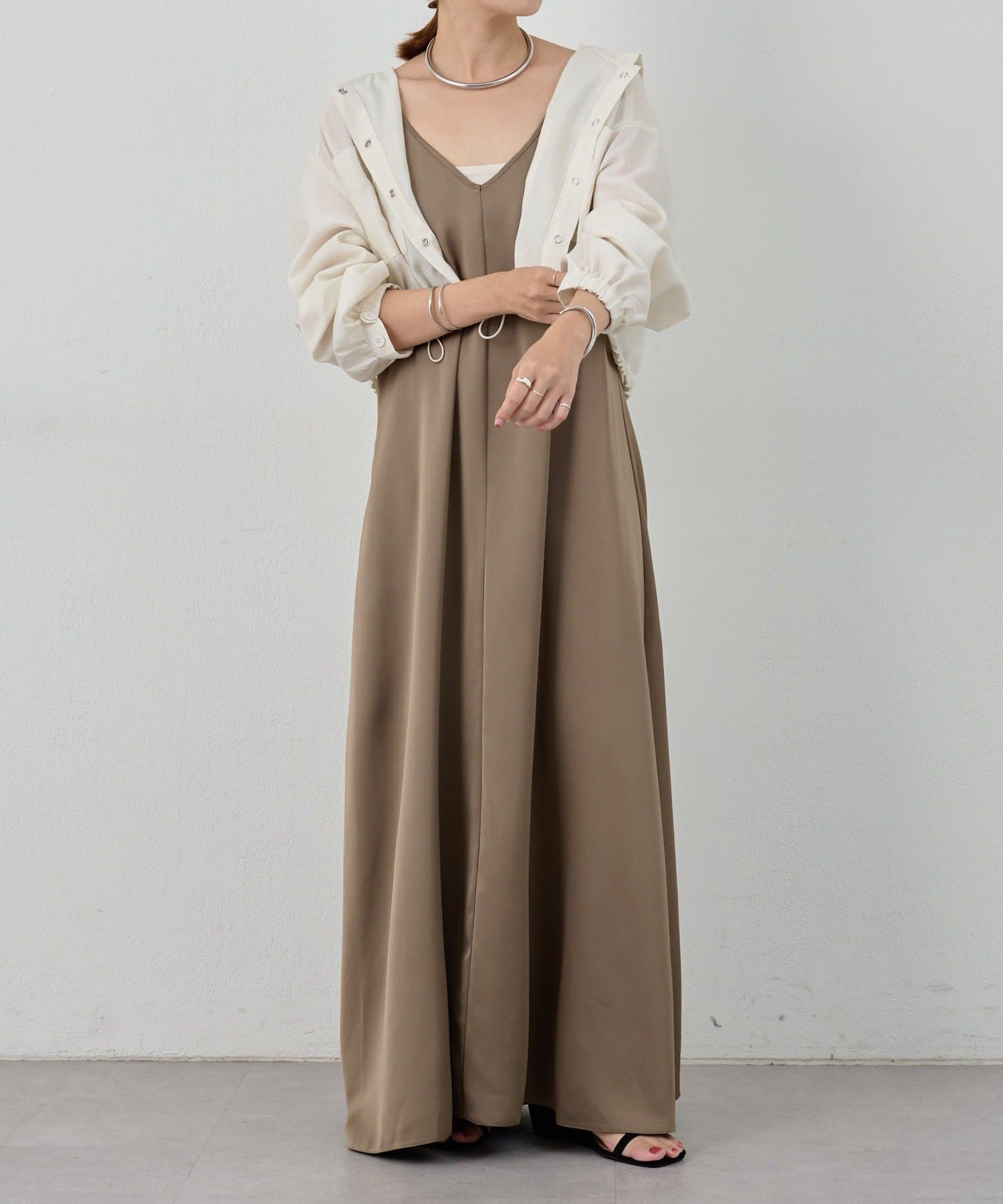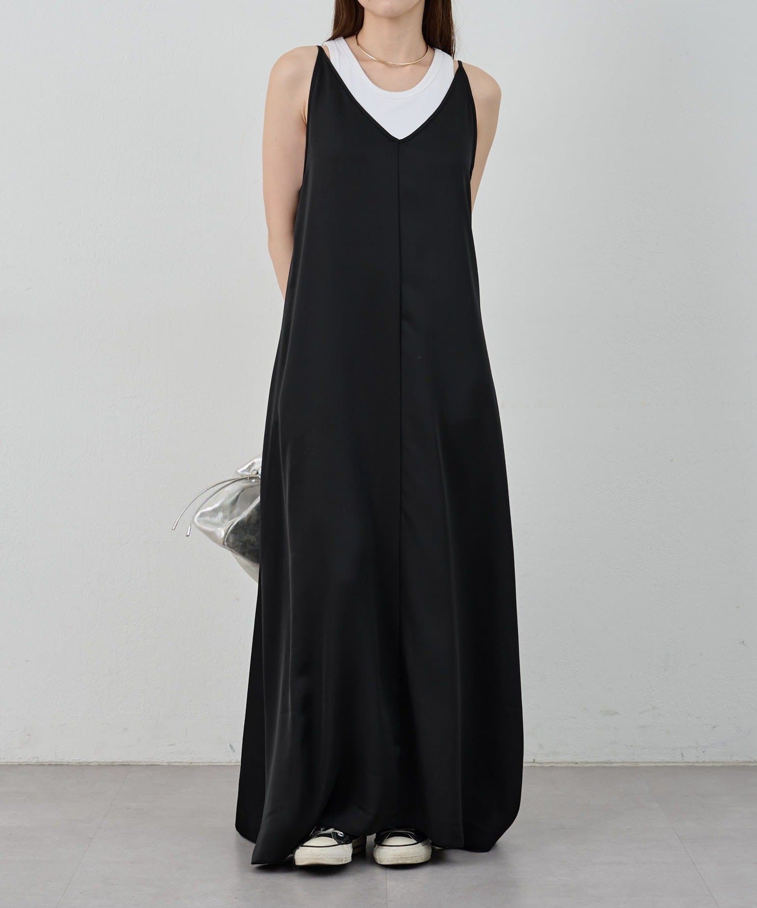 なめらかな肌触りと程よい光沢が魅力のキャミワンピース。