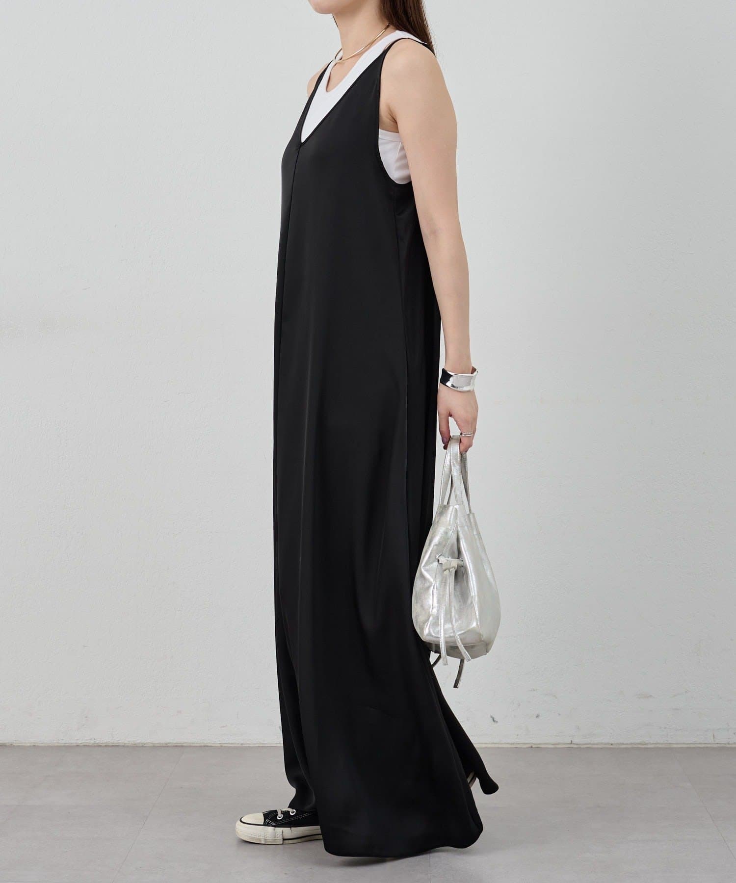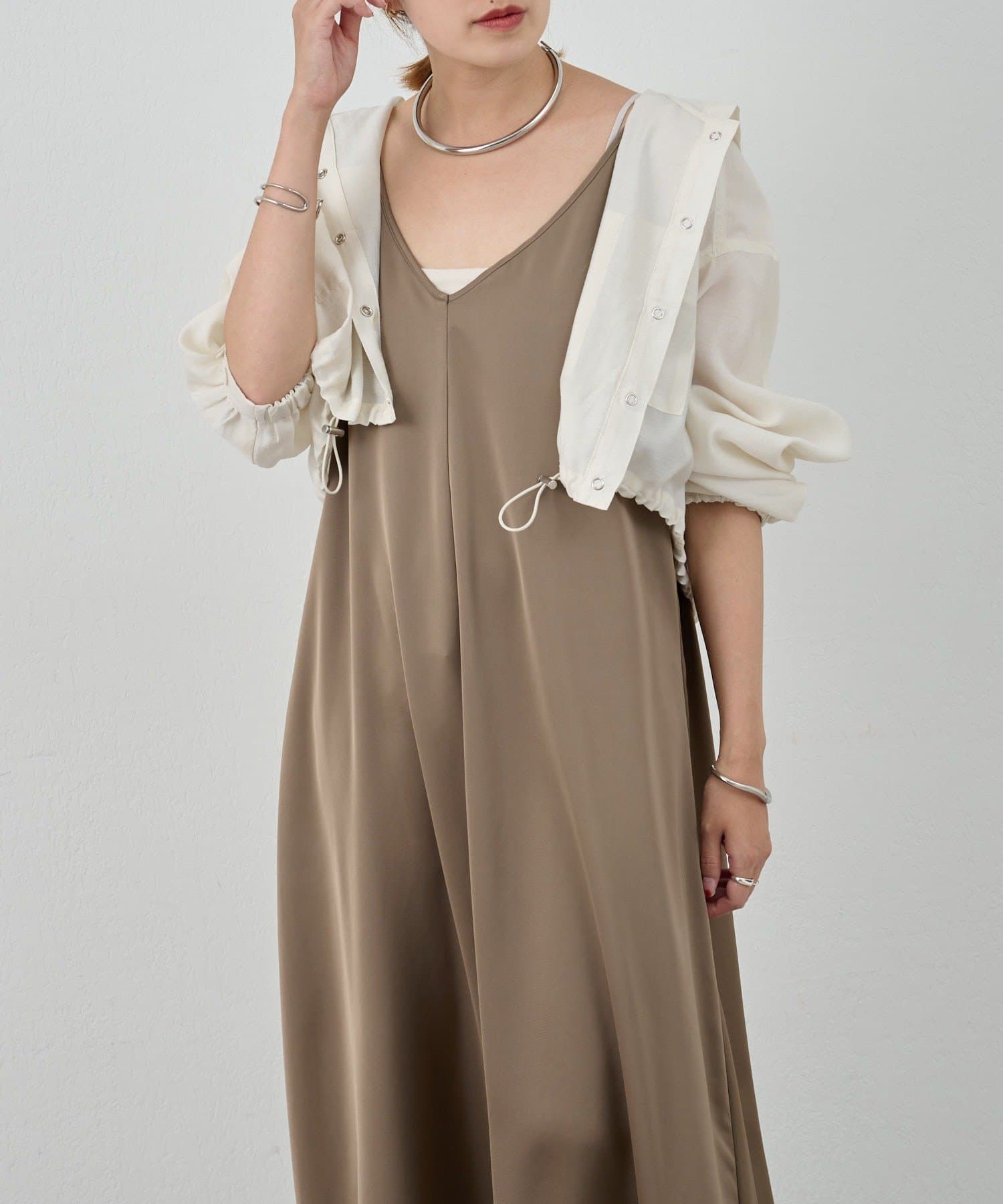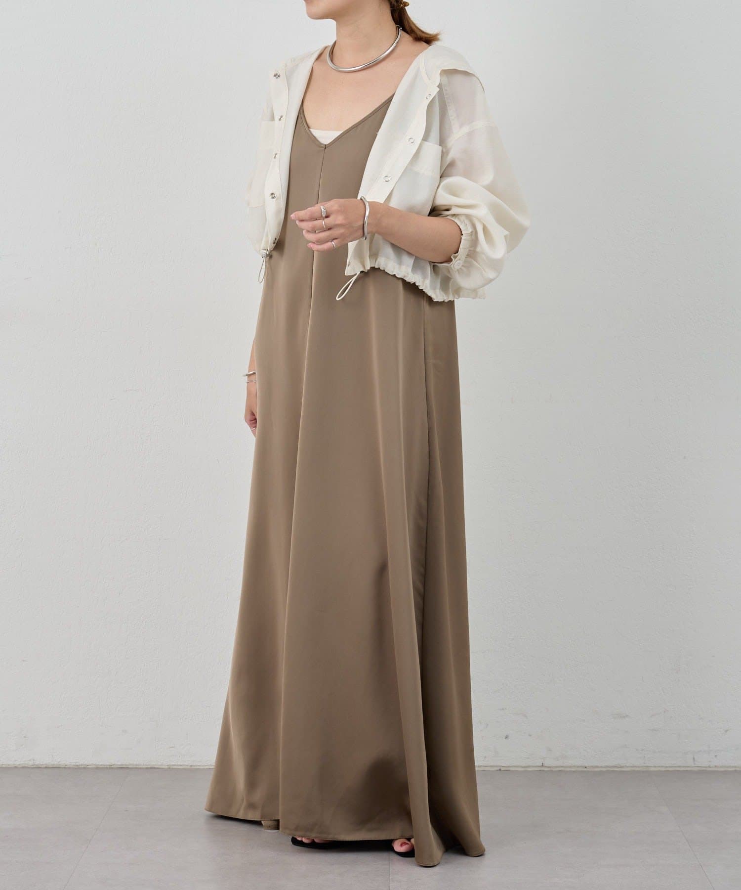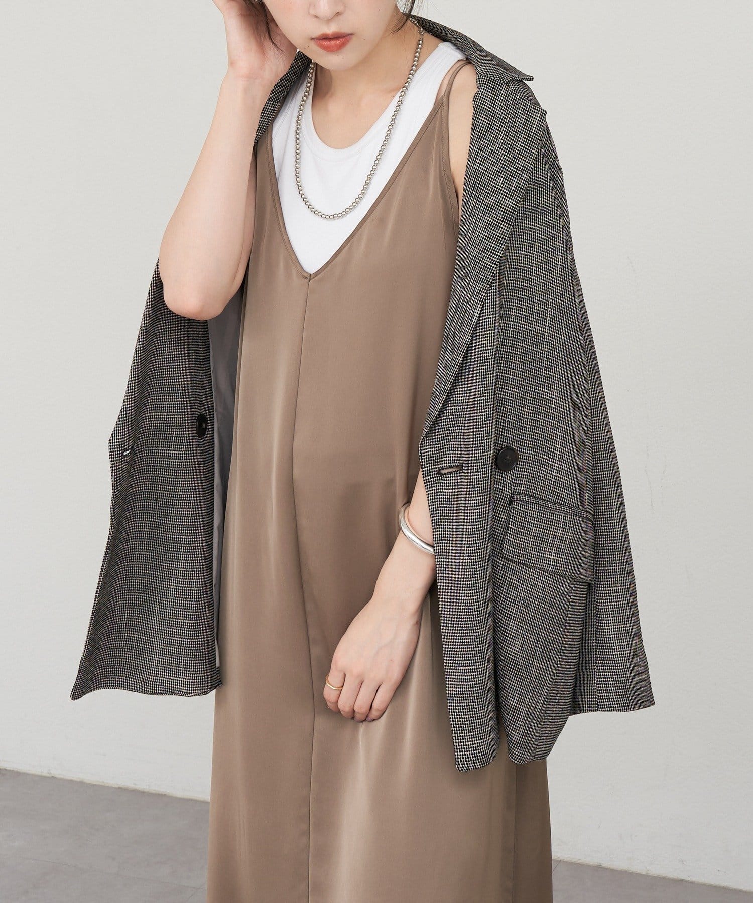 なめらかな肌触りと程よい光沢が魅力のキャミワンピース。