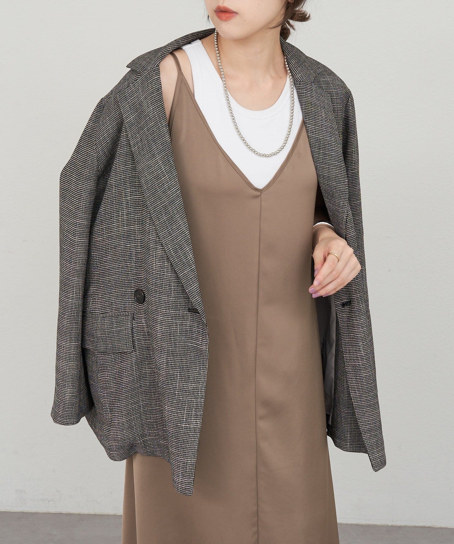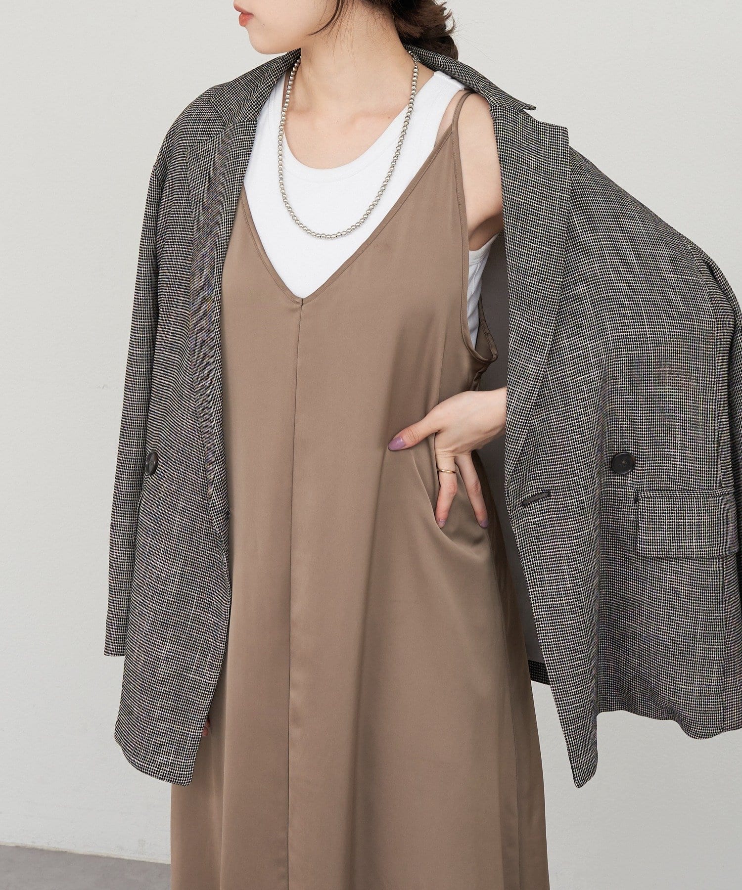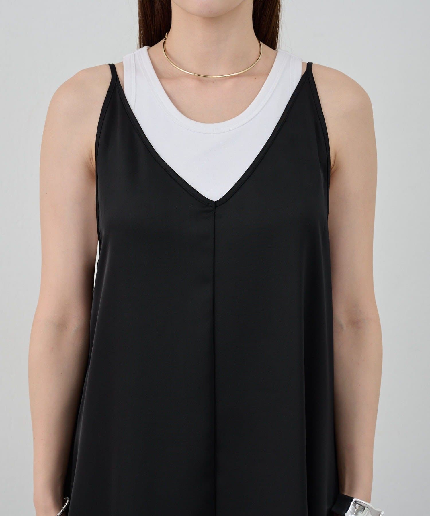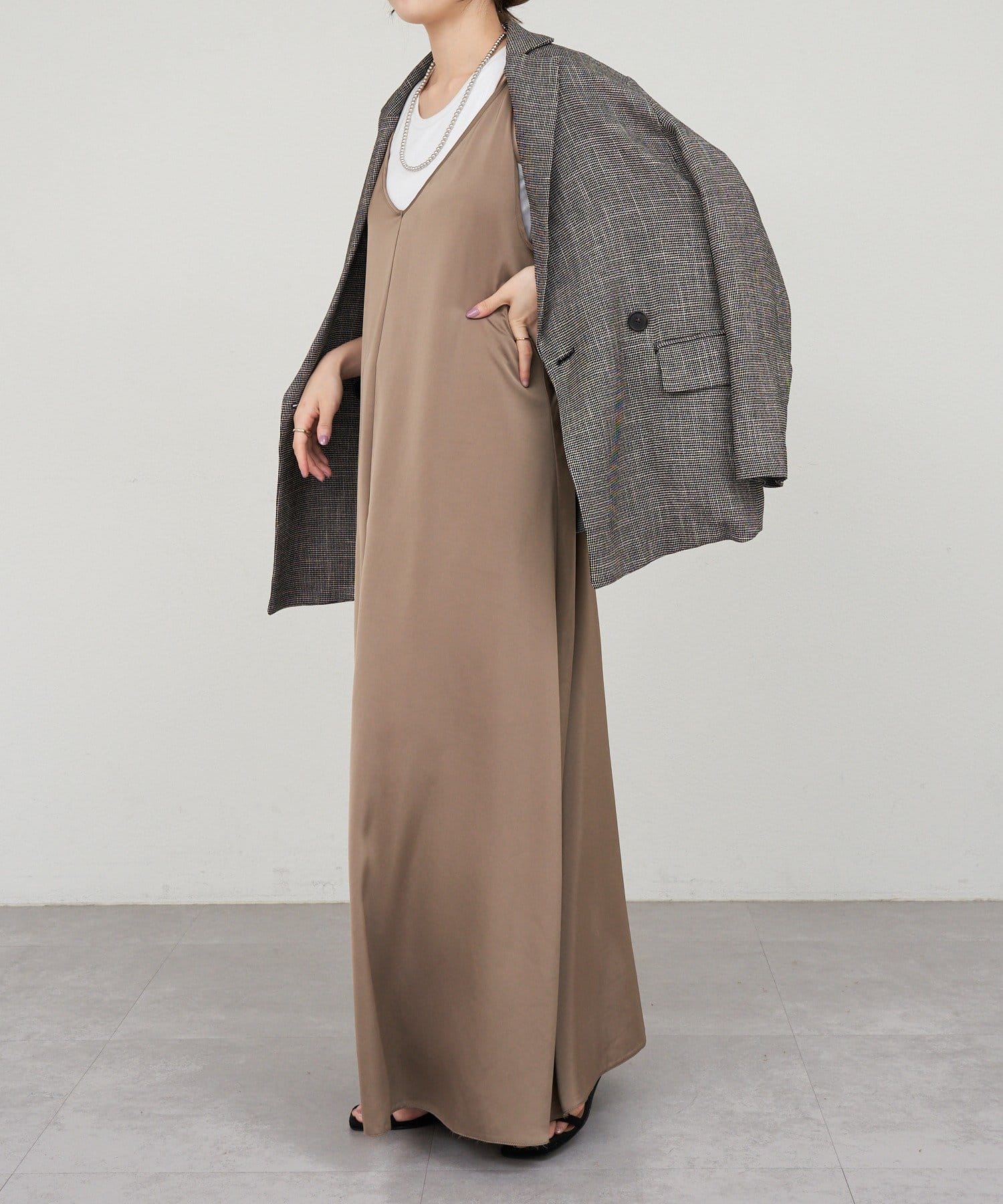 なめらかな肌触りと程よい光沢が魅力のキャミワンピース。