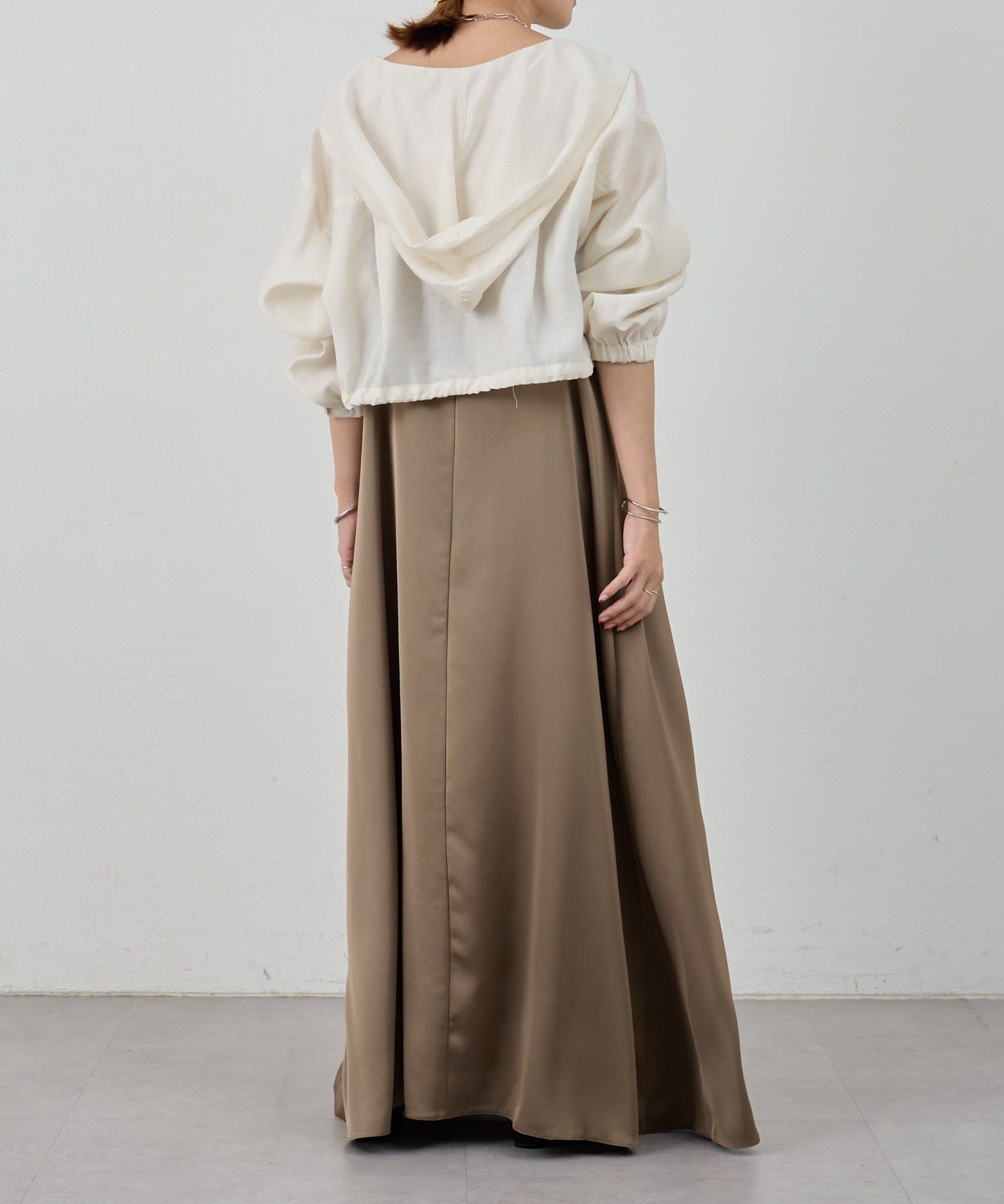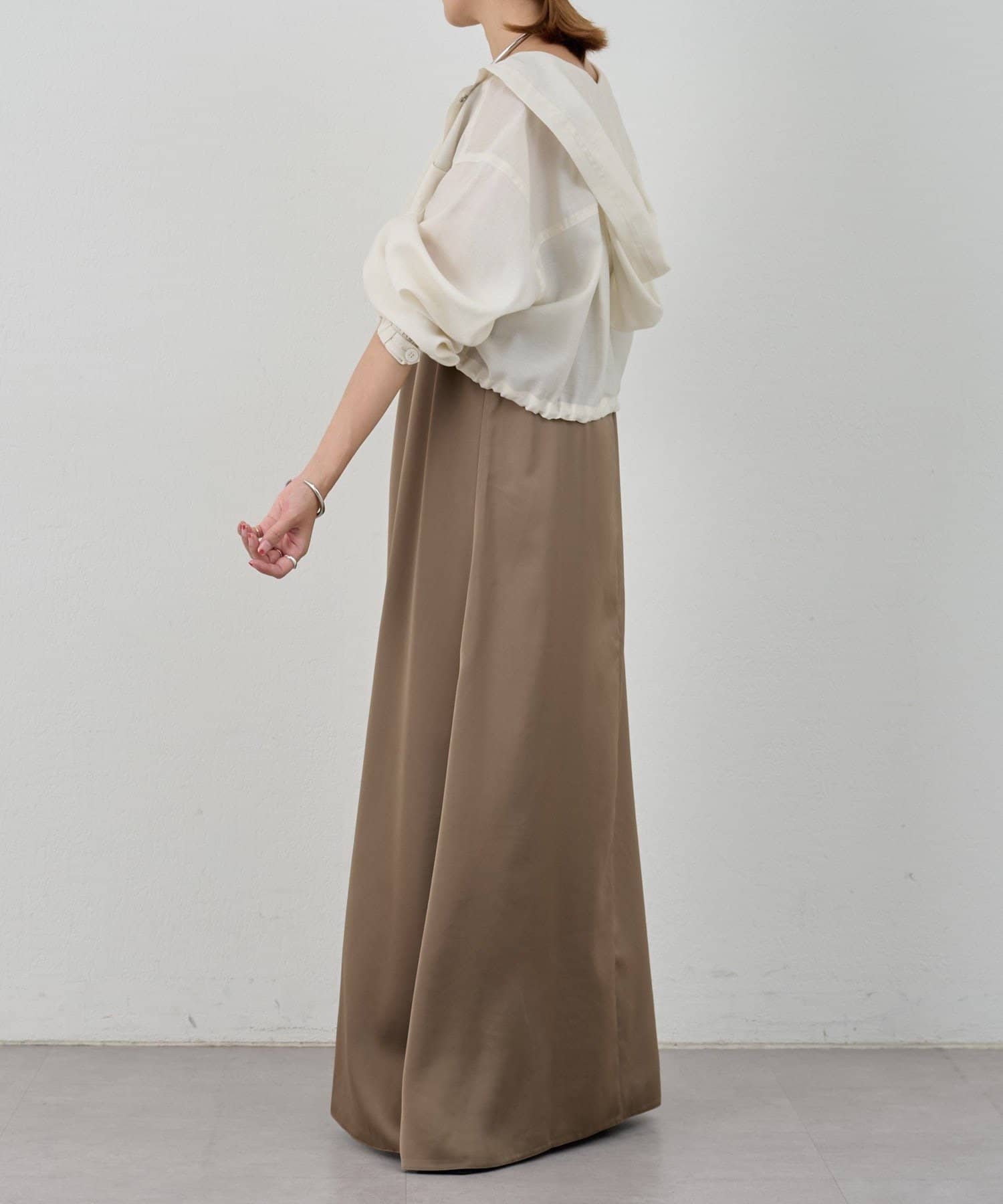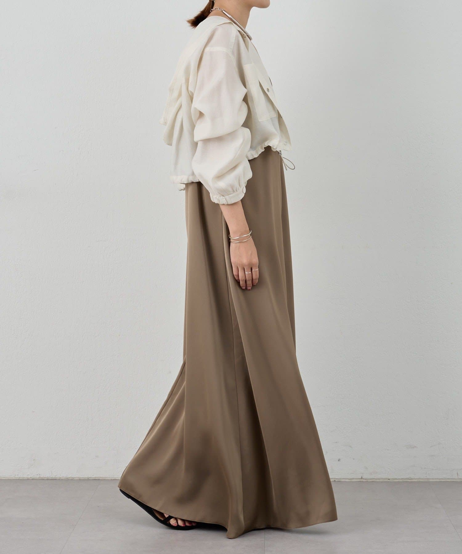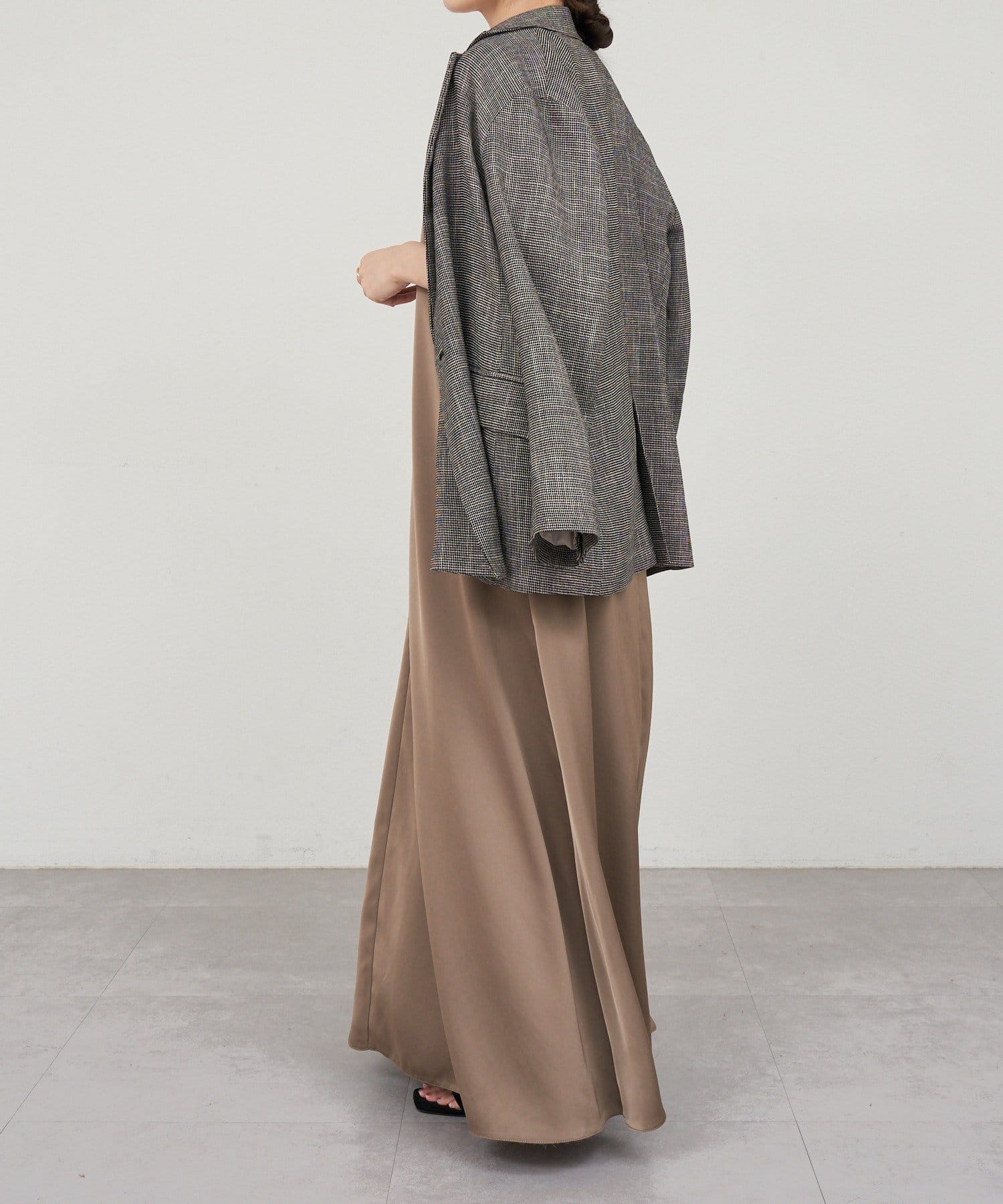揺れ動くシルエットで女性らしさが際立つサテンワンピース。