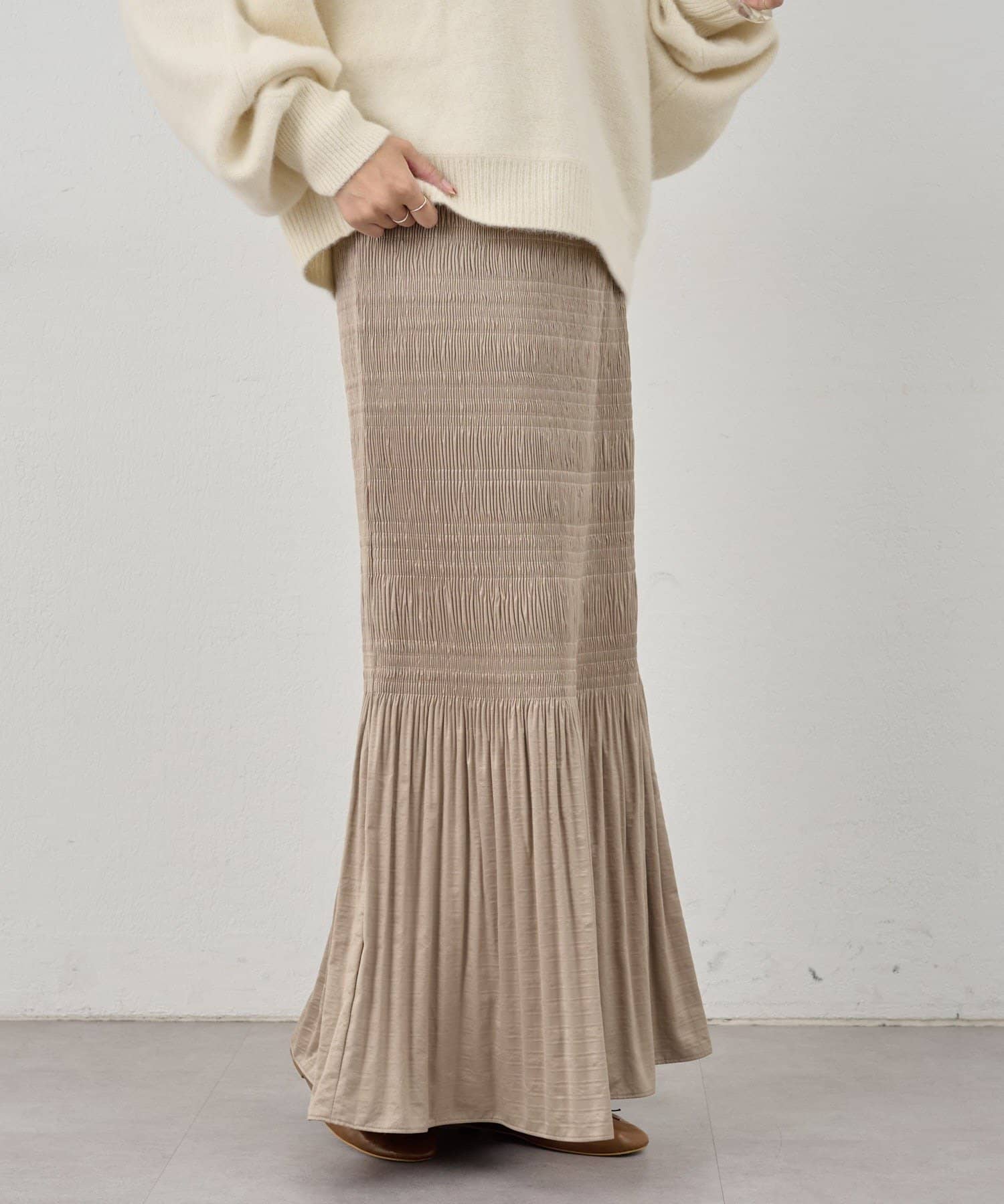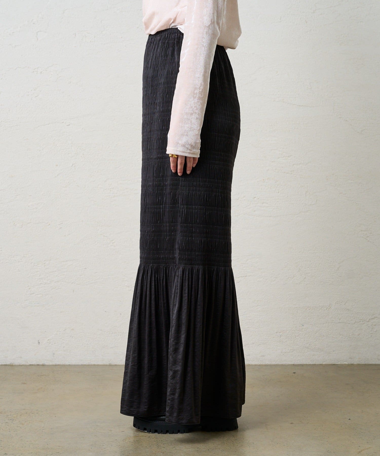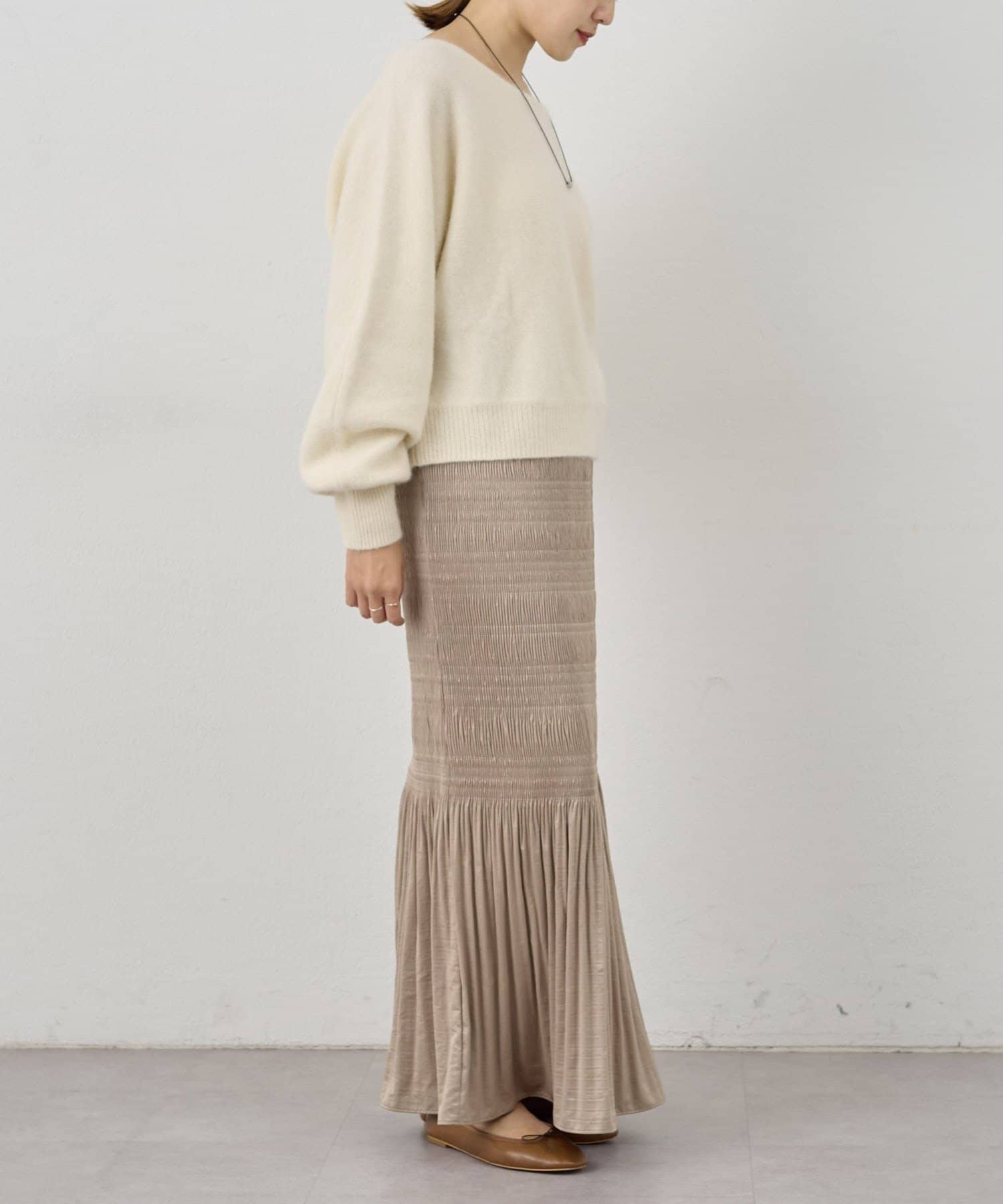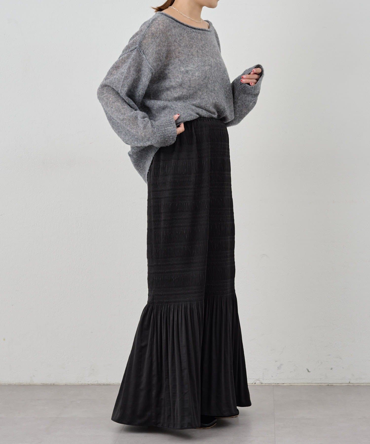 マーメイドスカートが定番でしたが、AWは細かいプリーツにしコーディネートにメリハリがでるようにしております。