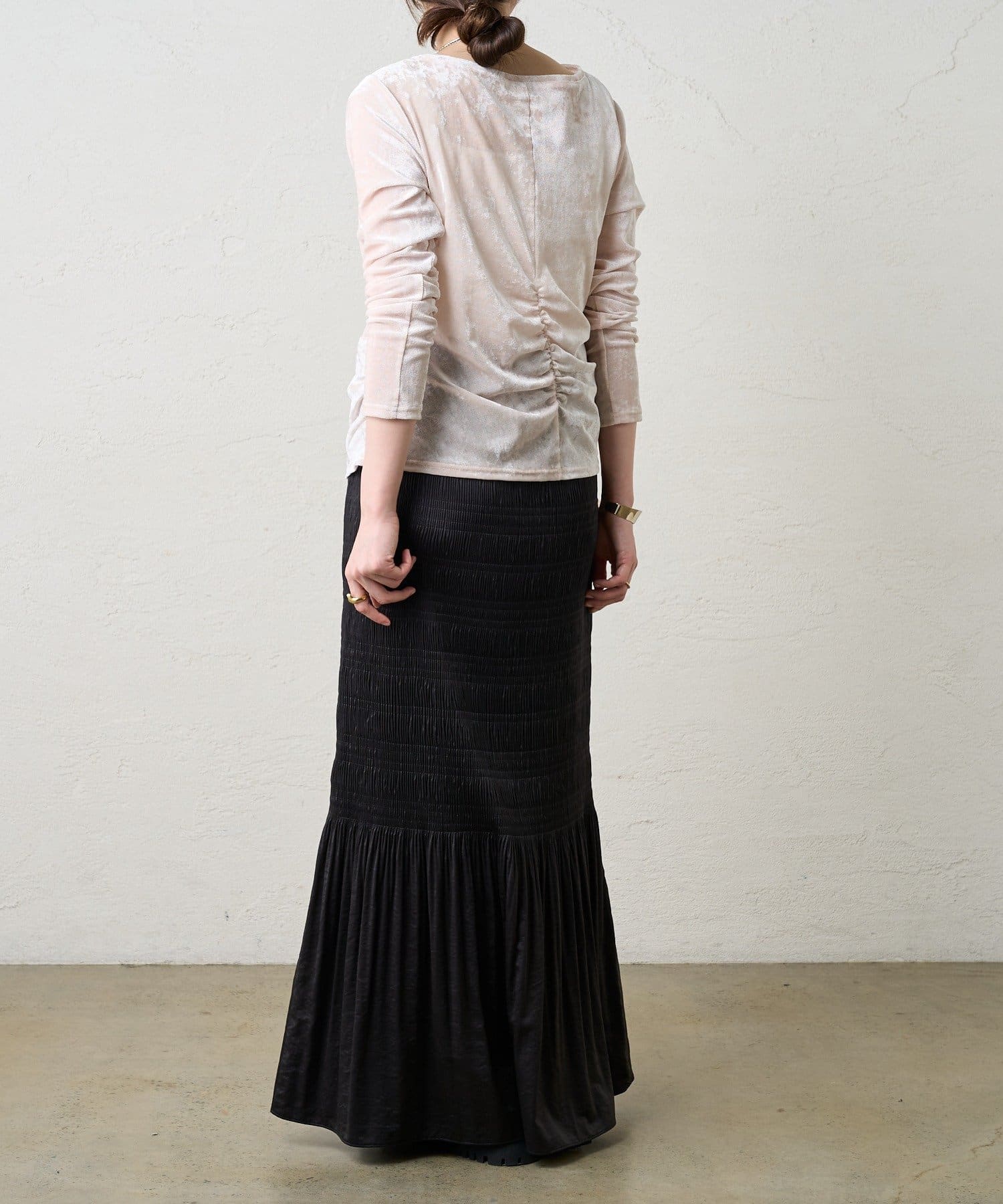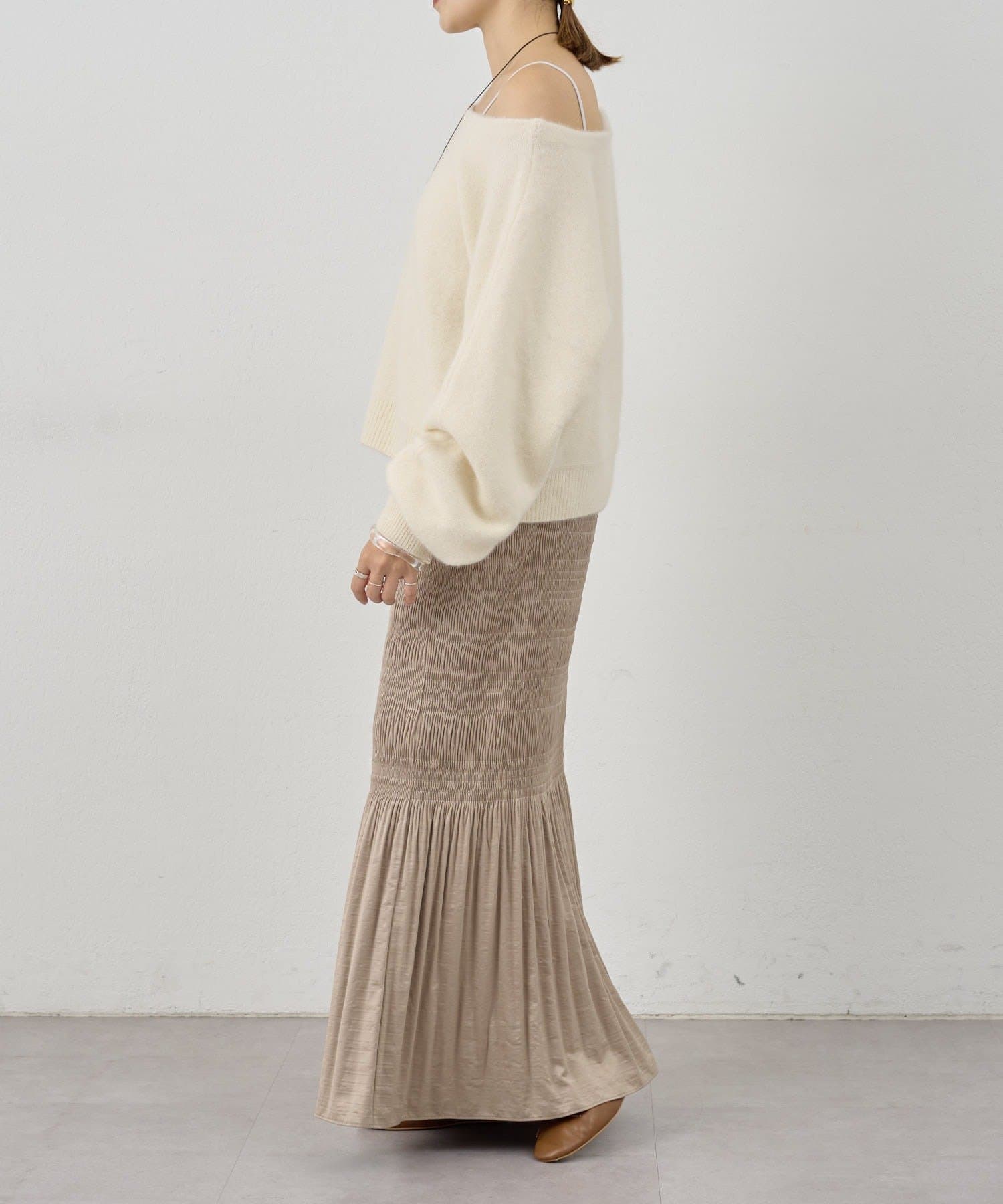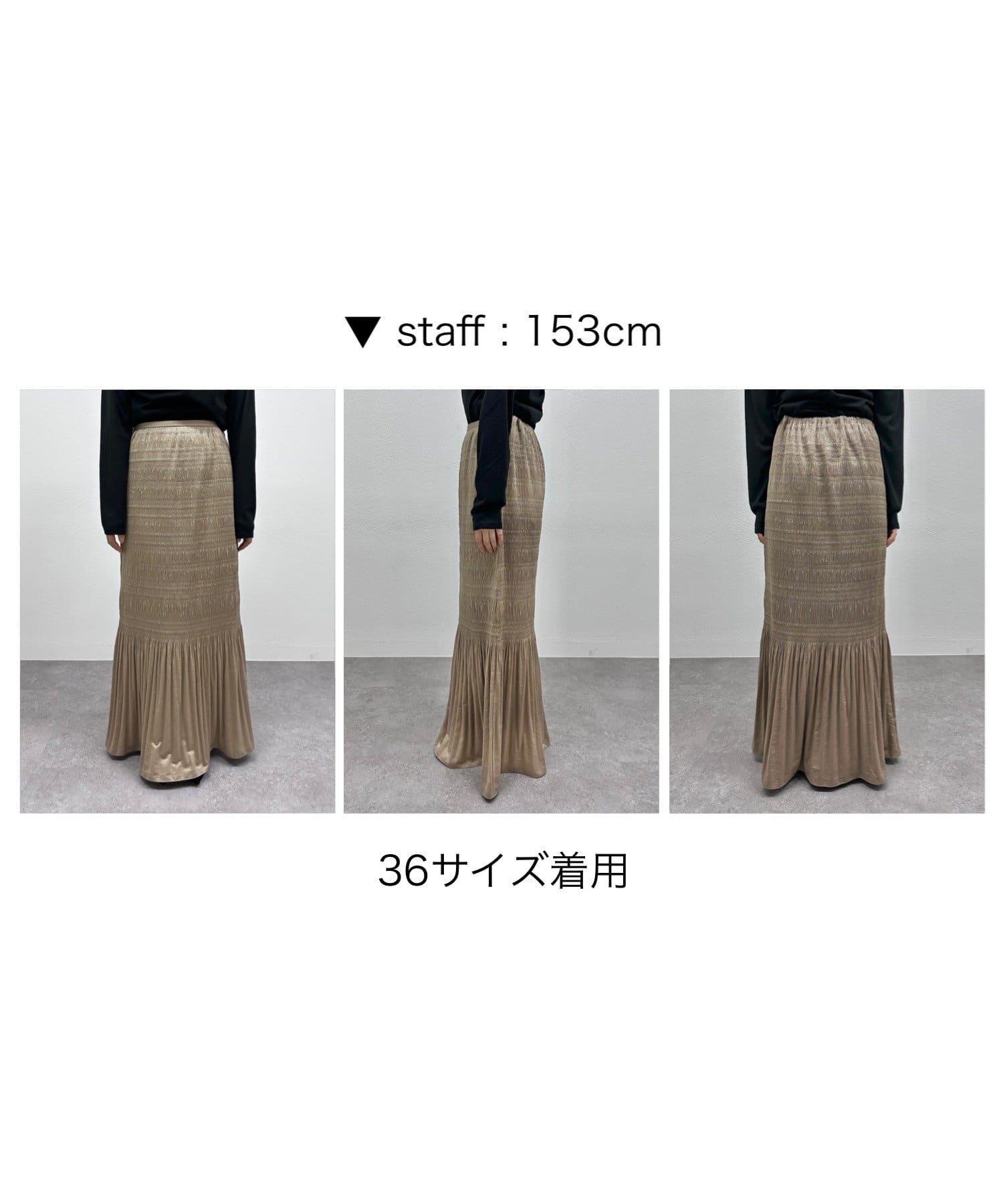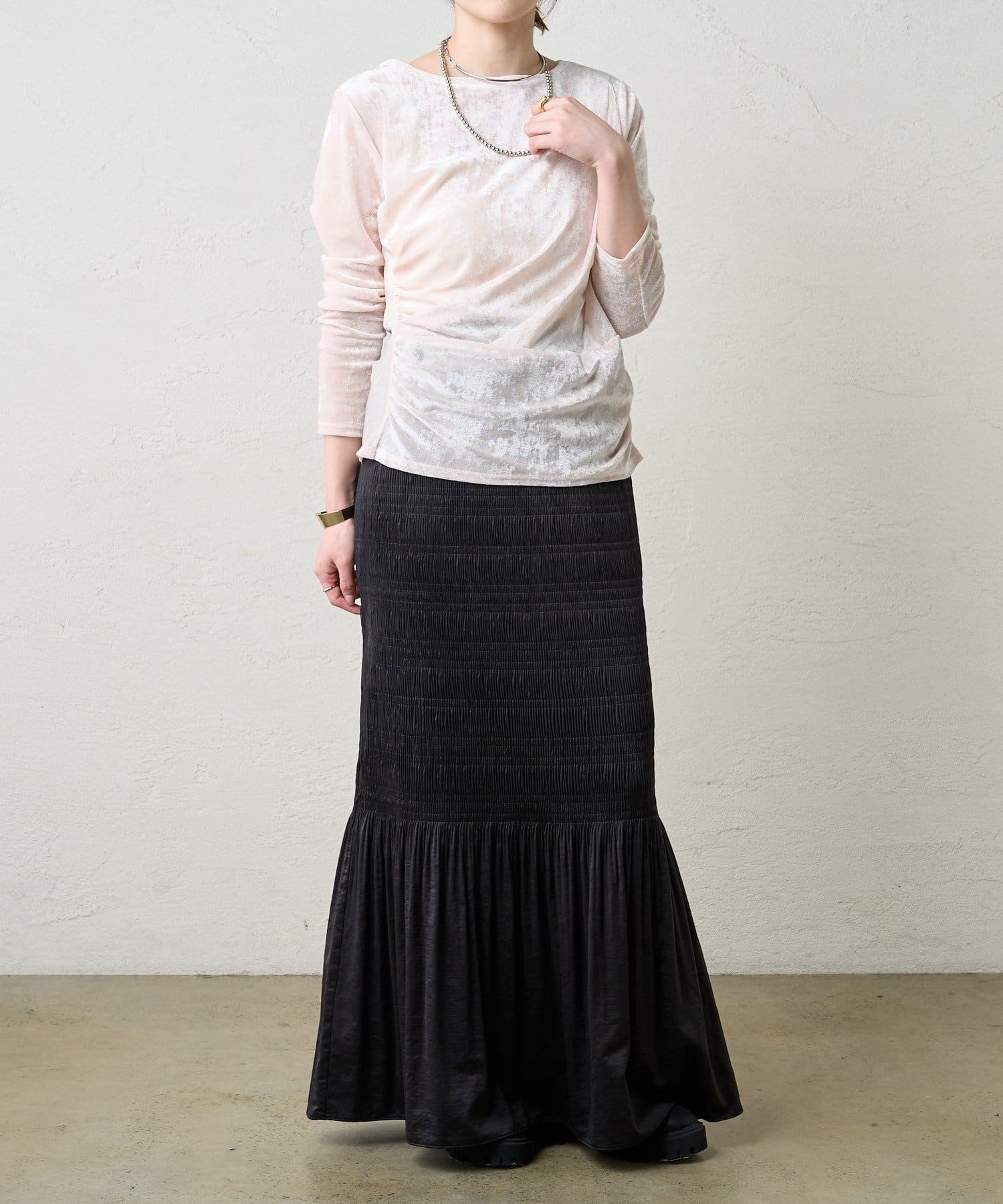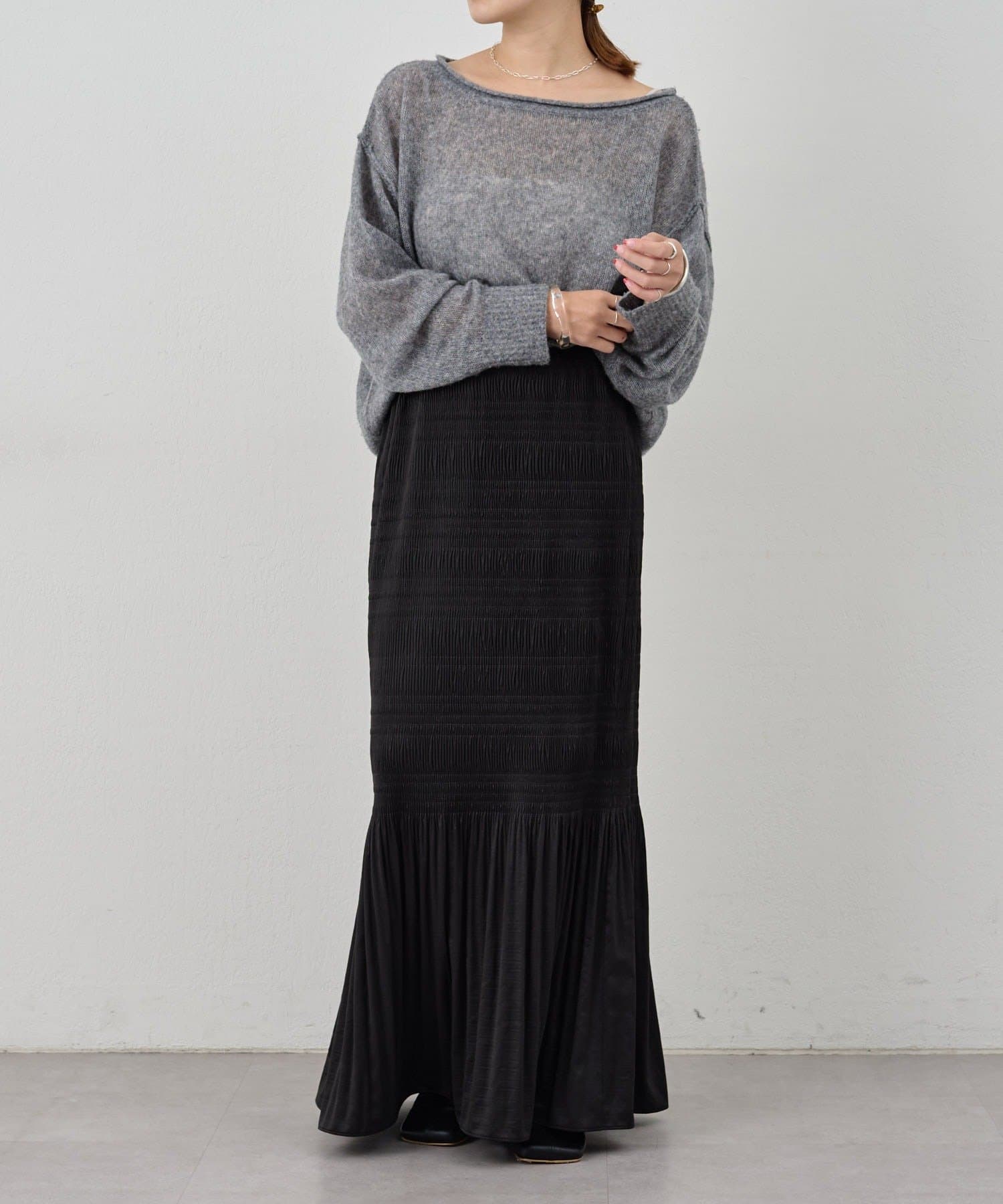 マーメイドスカートが定番でしたが、AWは細かいプリーツにしコーディネートにメリハリがでるようにしております。