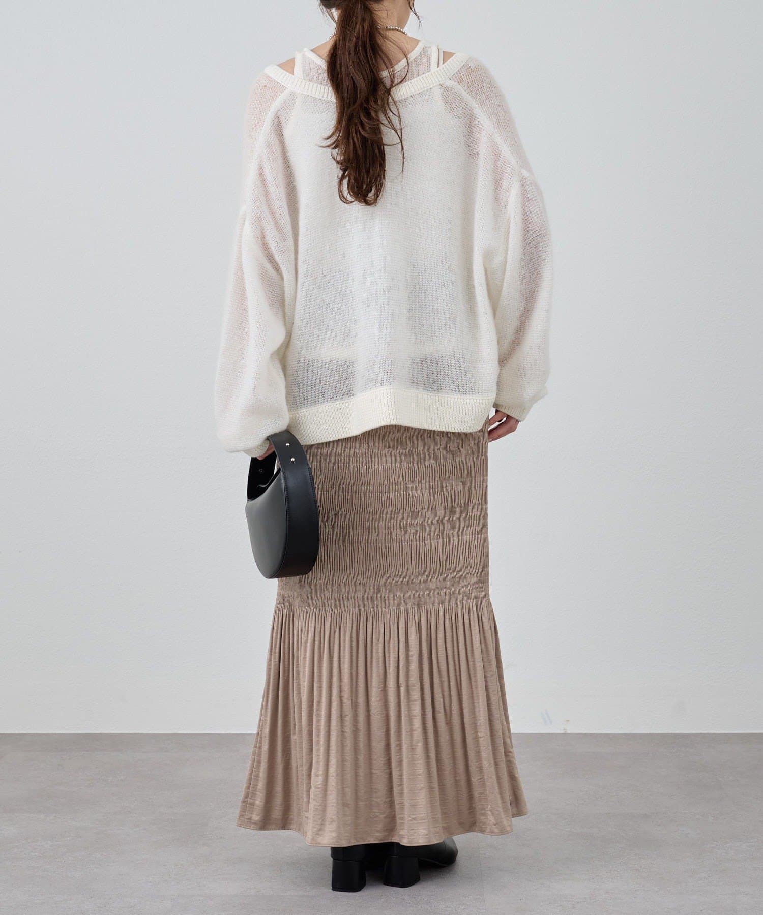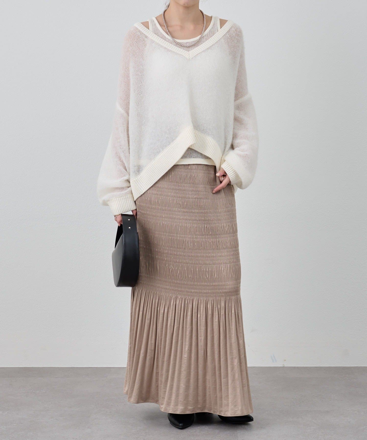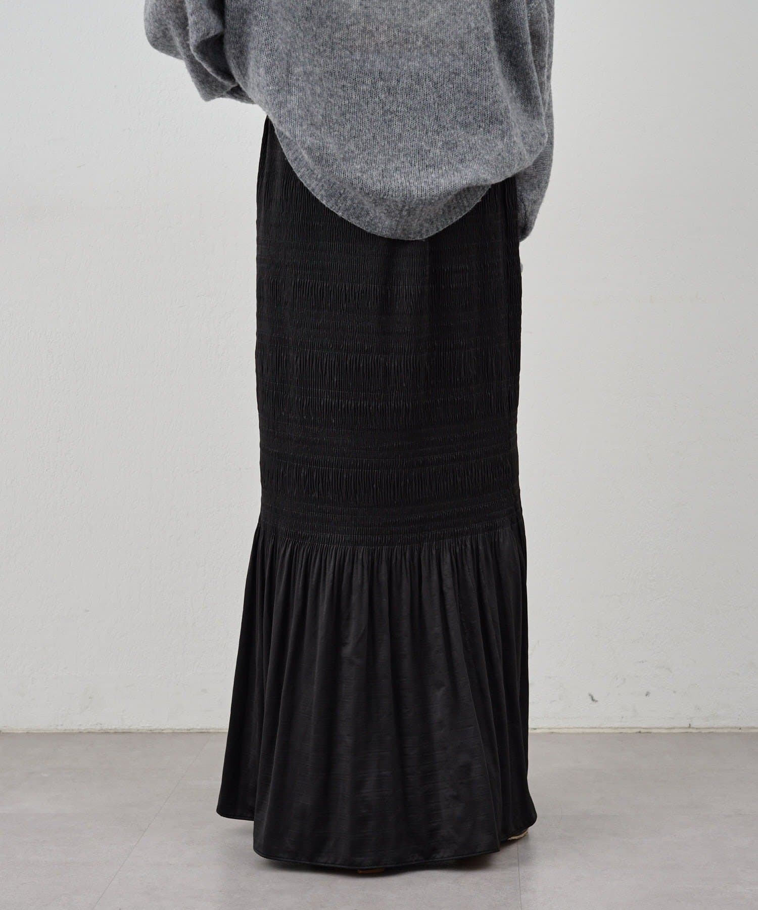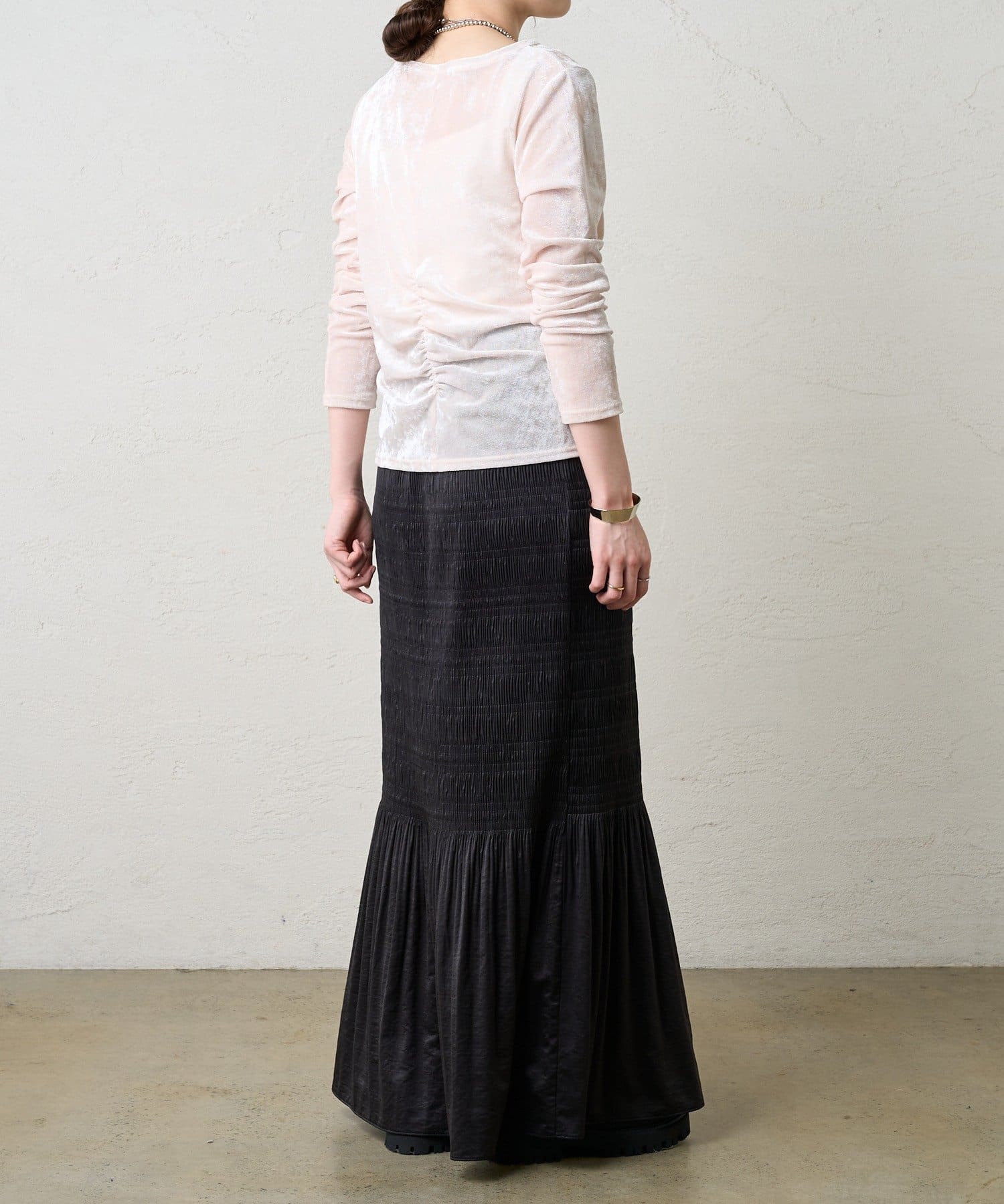 マーメイドスカートが定番でしたが、AWは細かいプリーツにしコーディネートにメリハリがでるようにしております。