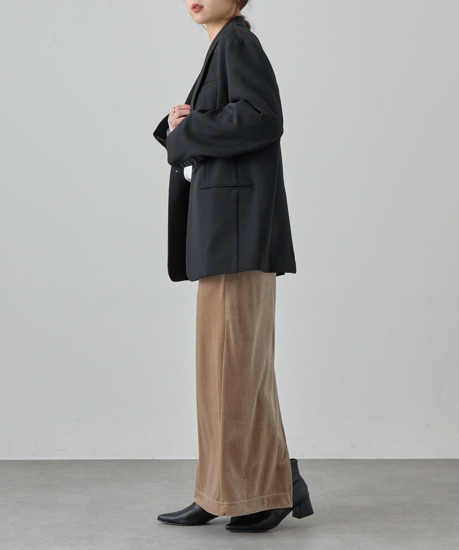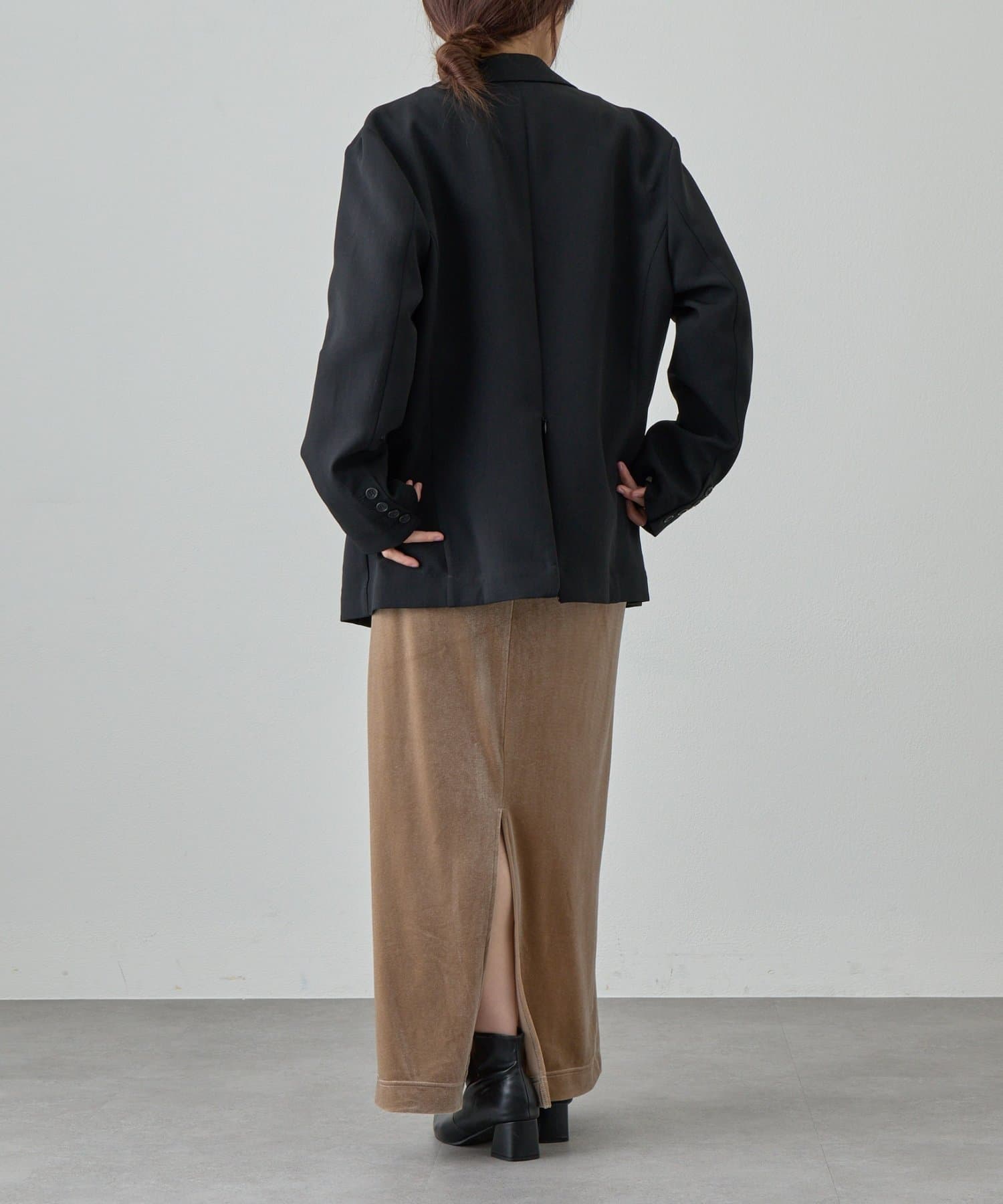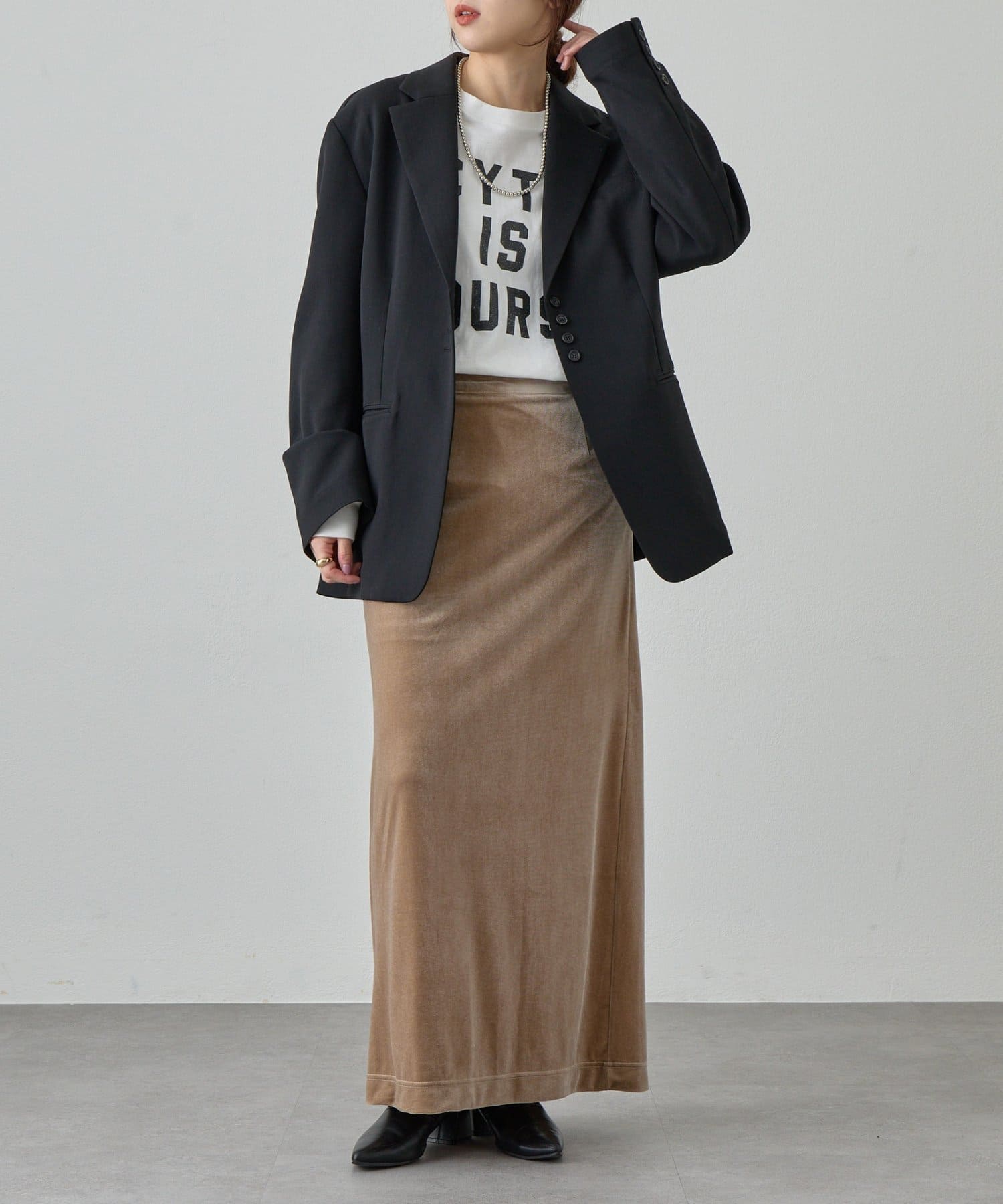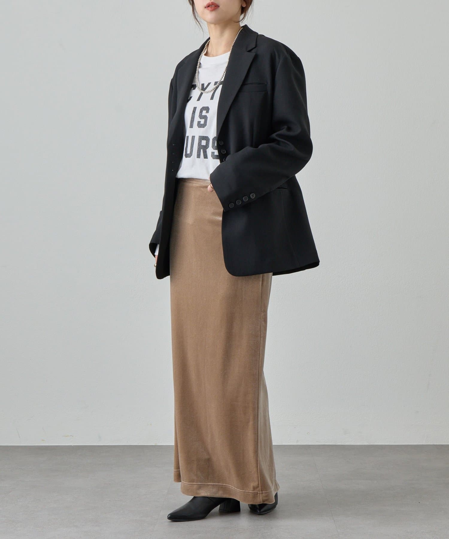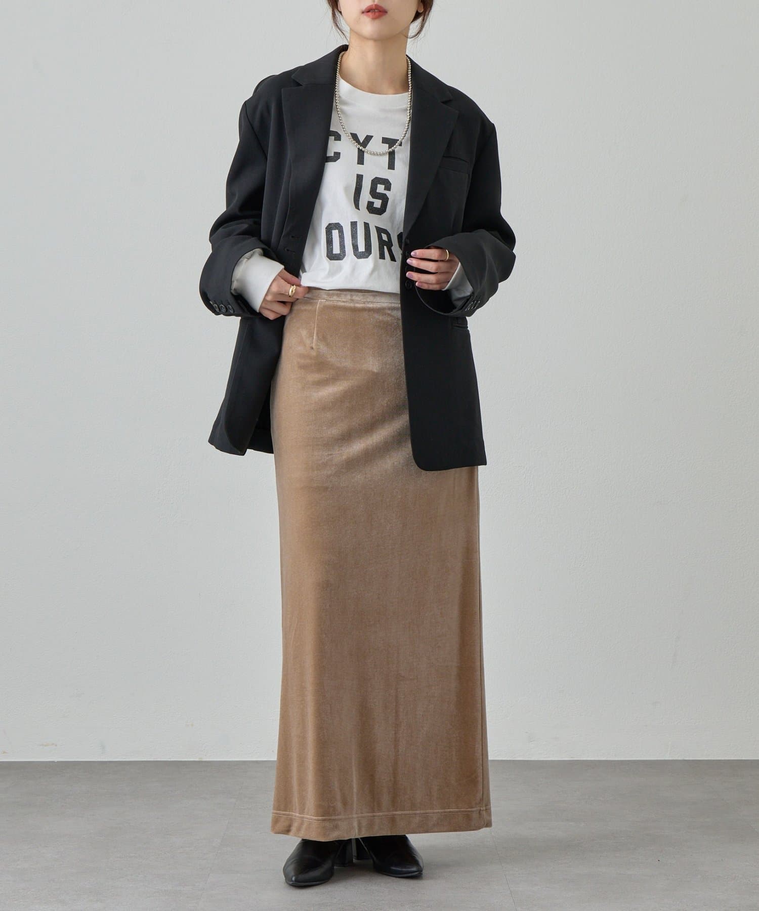 注目のベロア素材。光沢感が上品なタイトロングスカート。