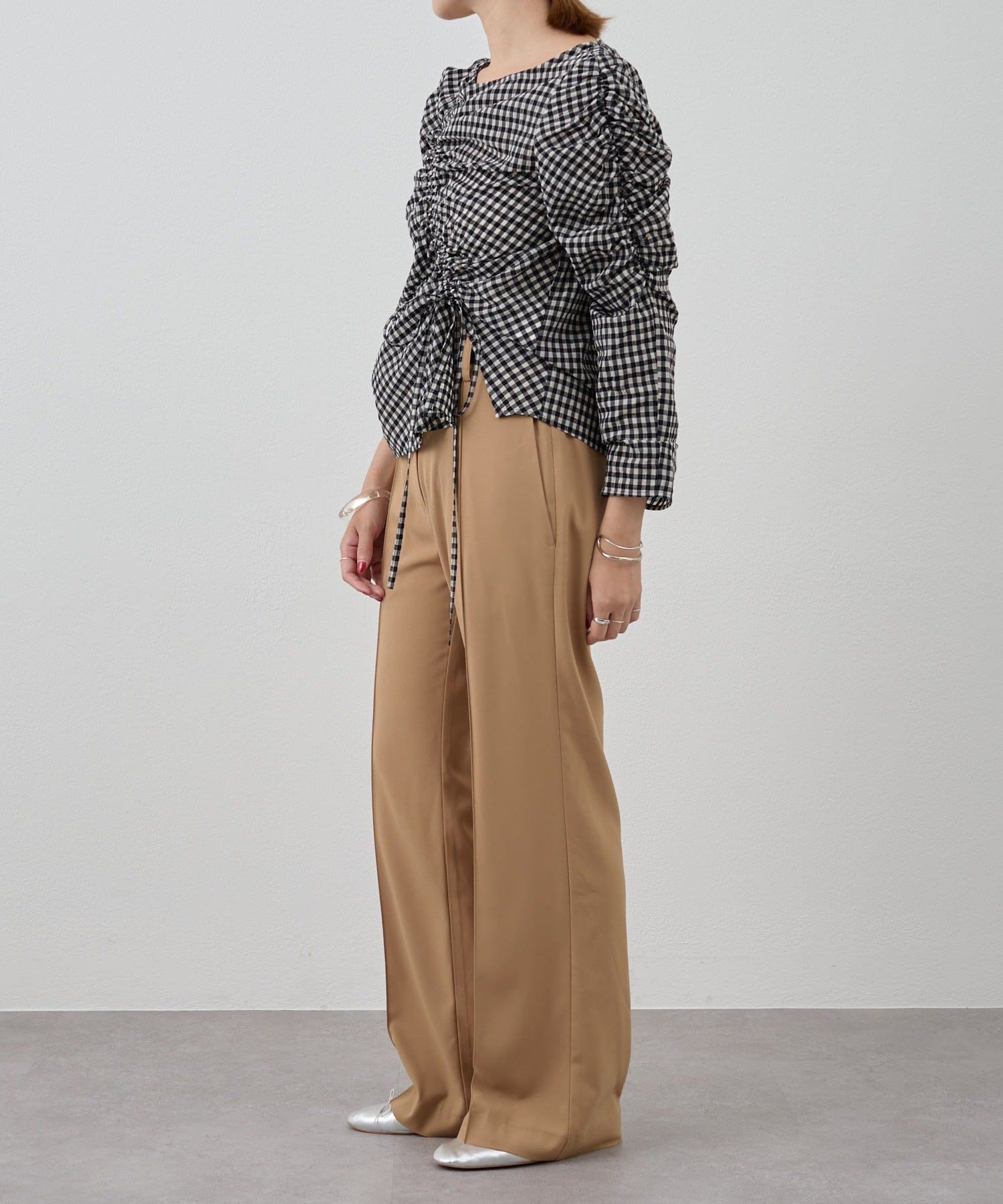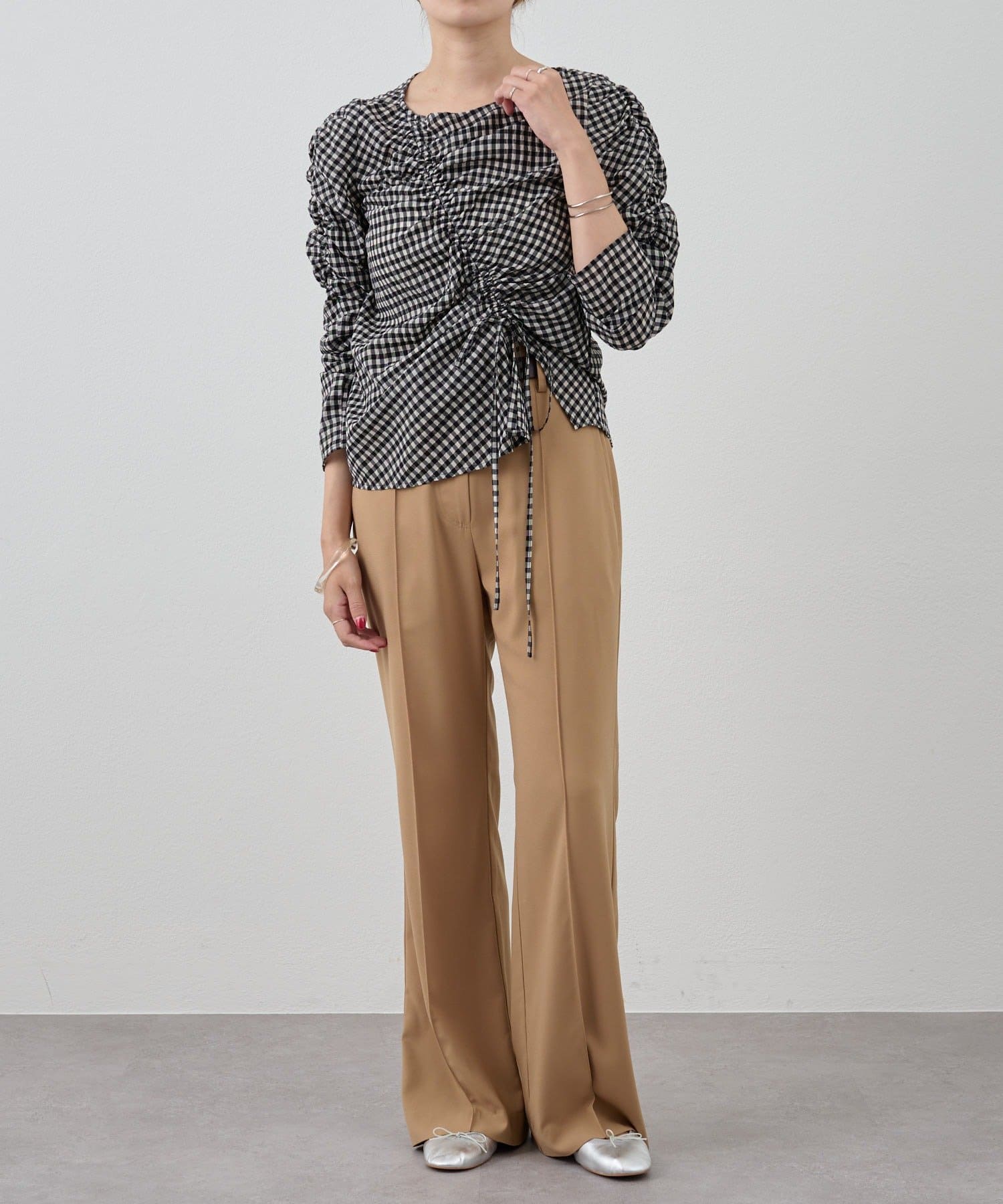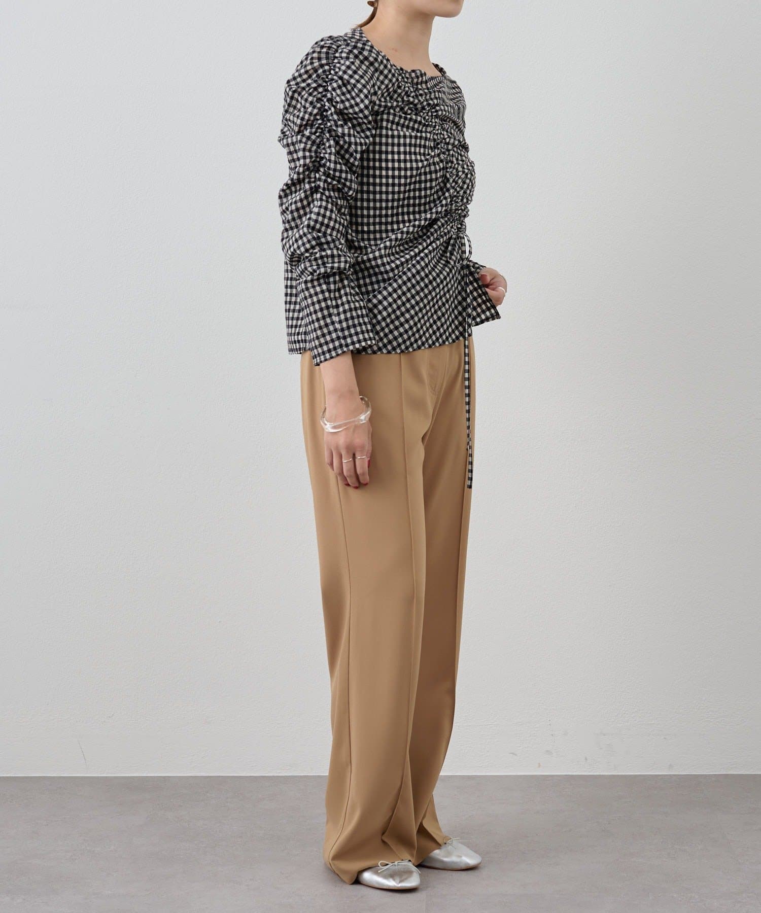 センターステッチを施しており、すっきりとスタイルアップ効果もあるデザインです。