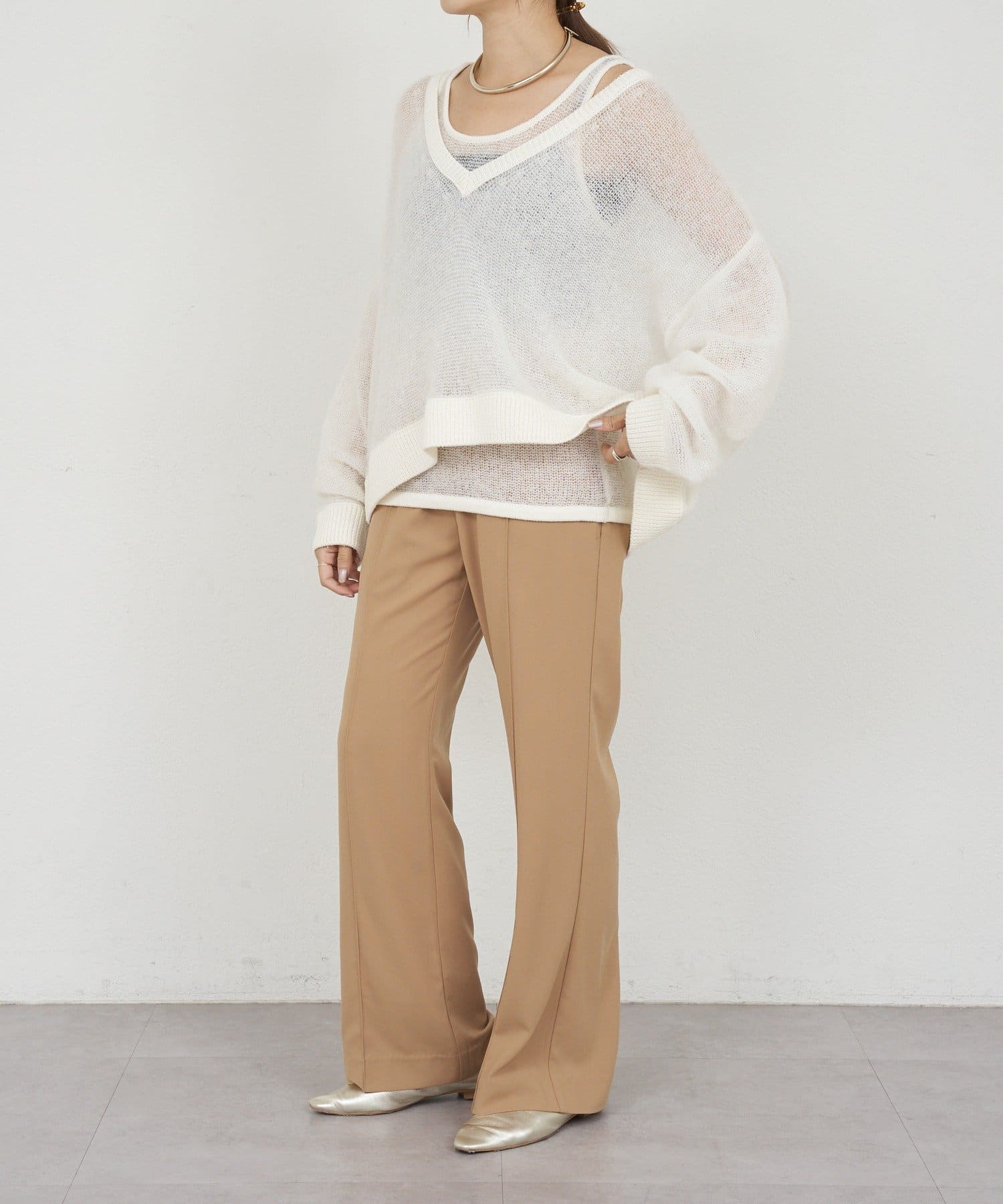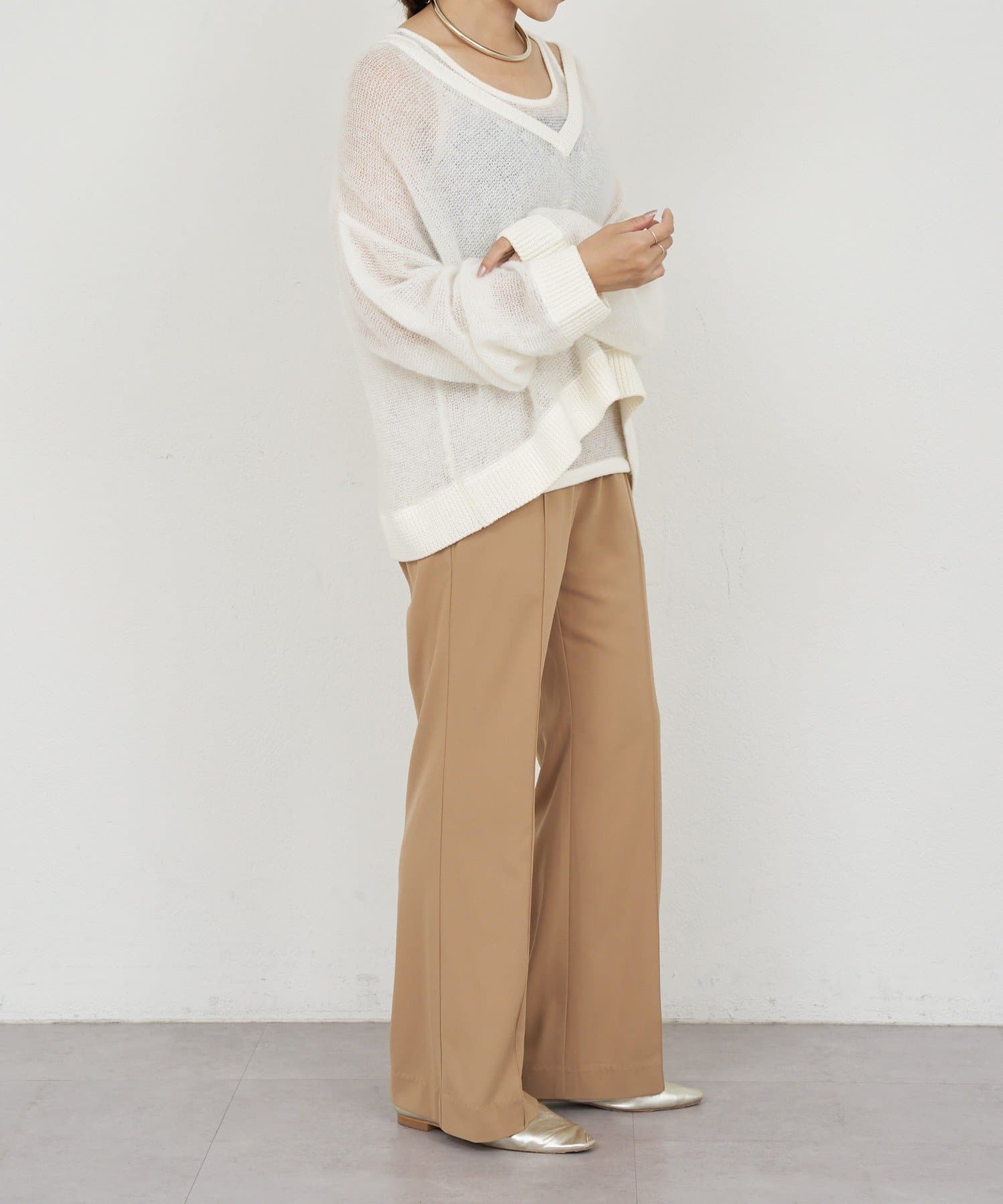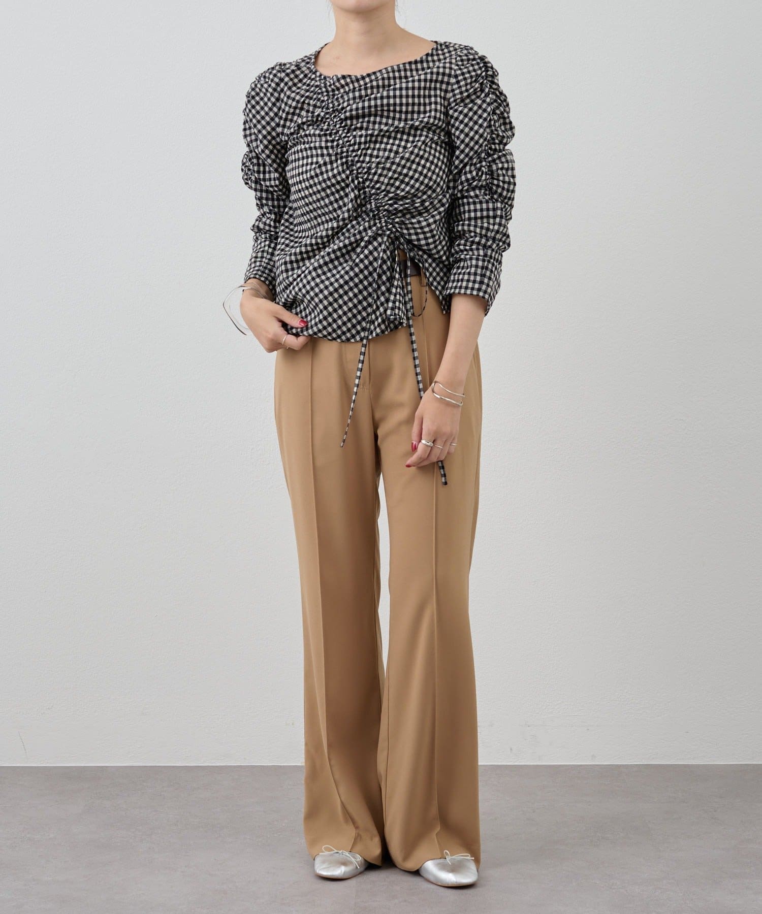 センターステッチを施しており、すっきりとスタイルアップ効果もあるデザインです。