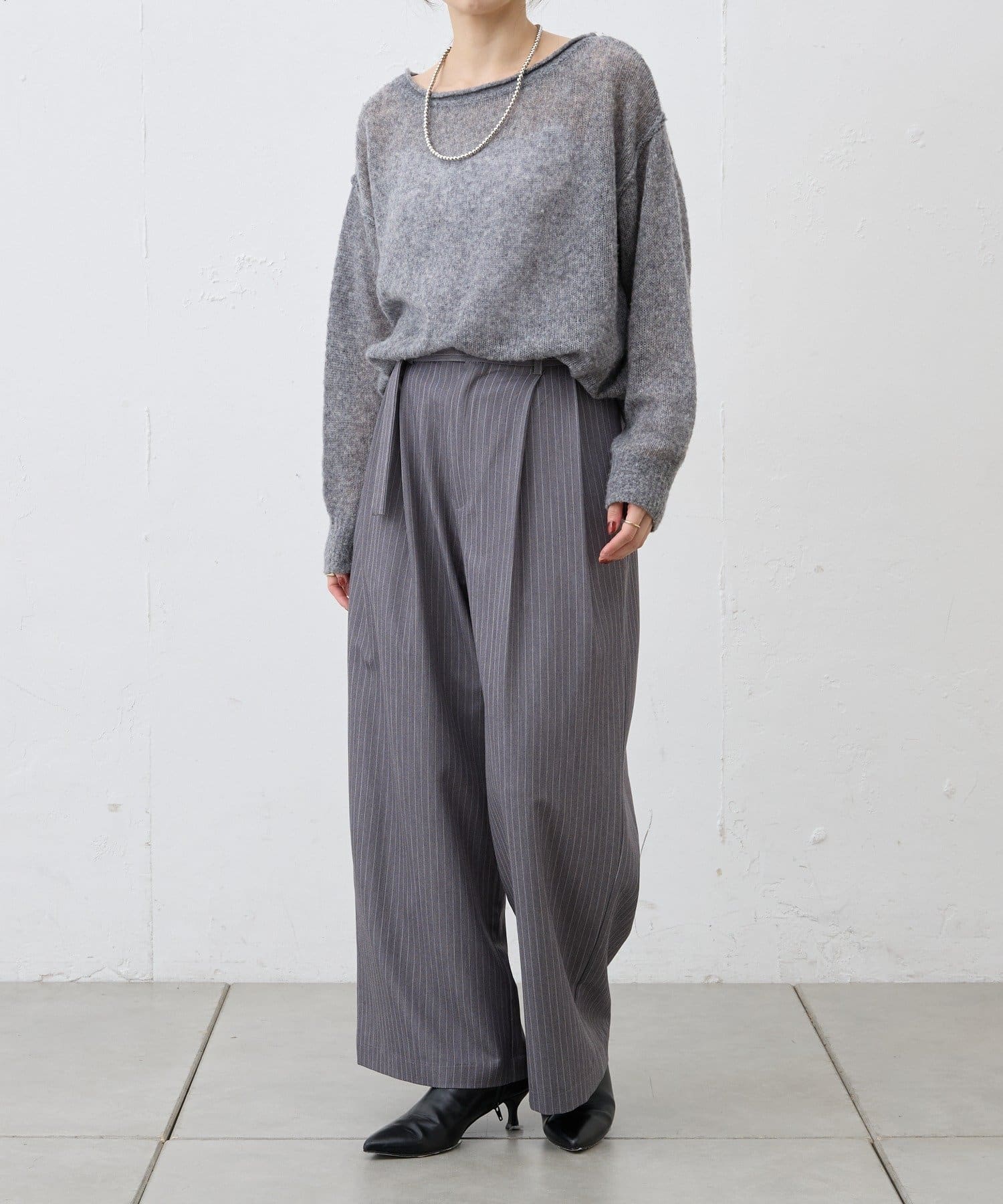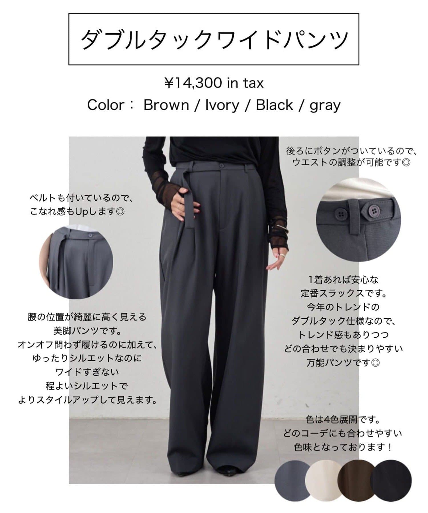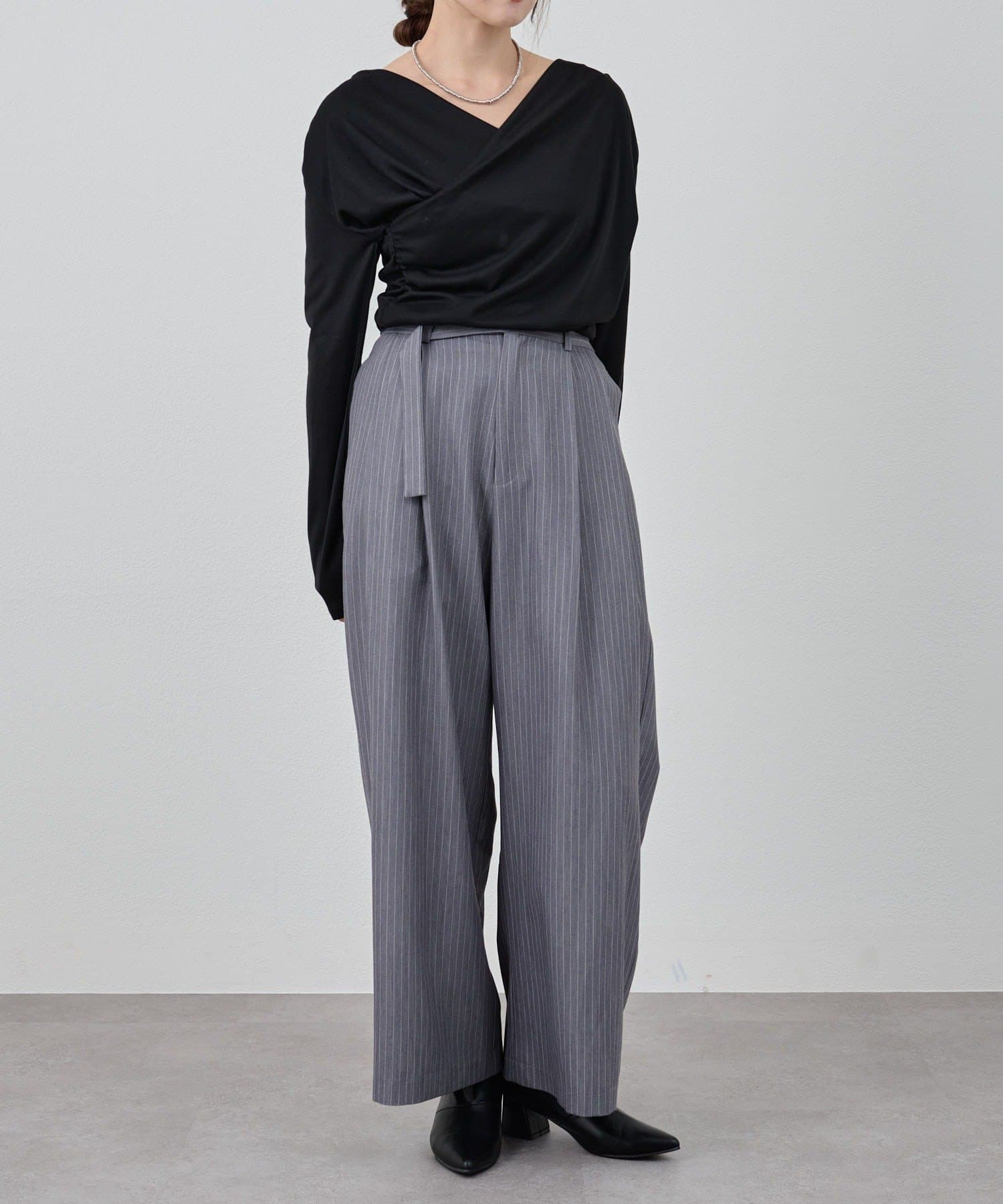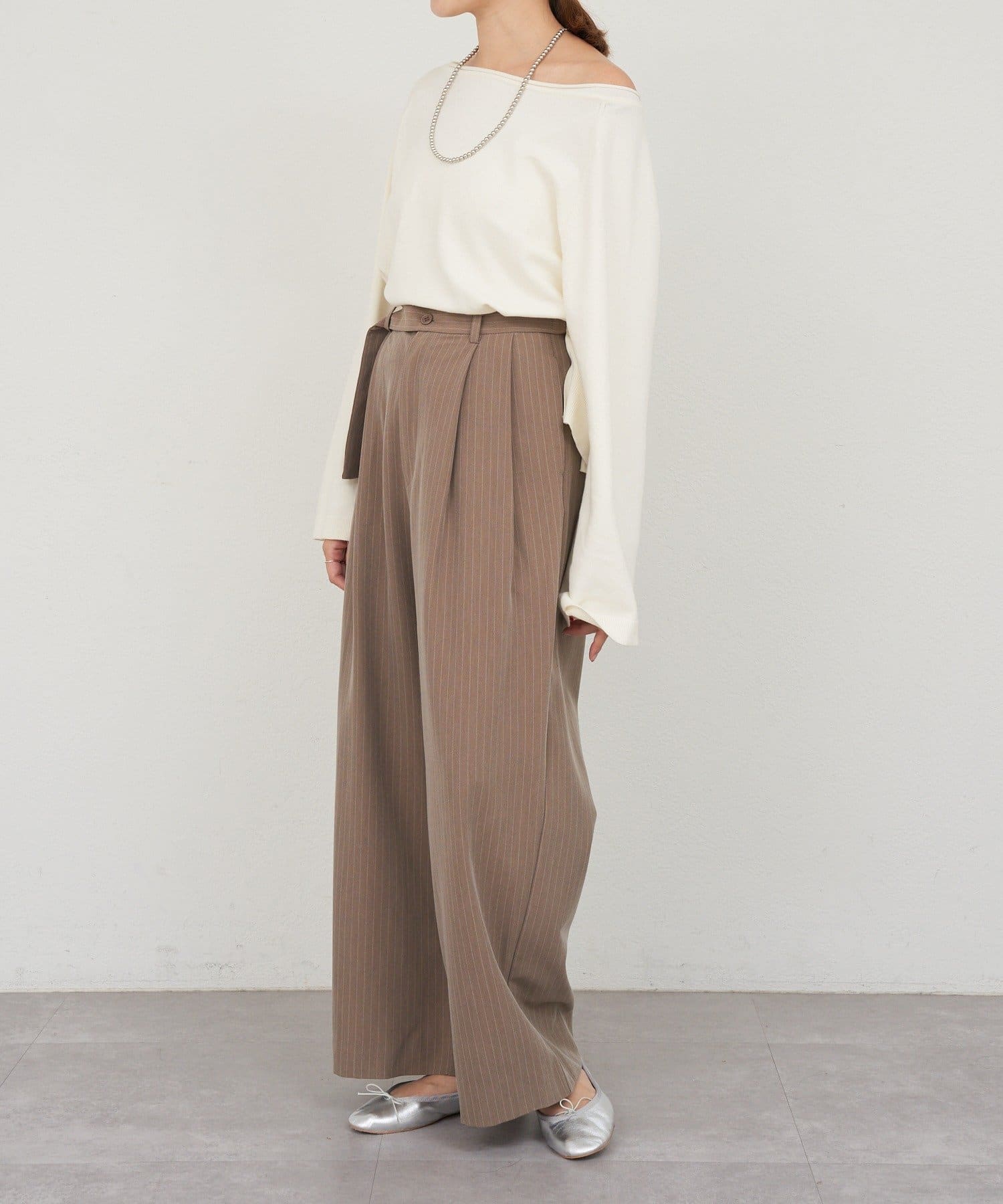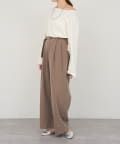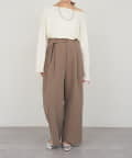 ウエストにタックが入っていることにより、腰回りから裾にかけてワイドにストンと落ちるシルエットが綺麗で脚長効果を演出。