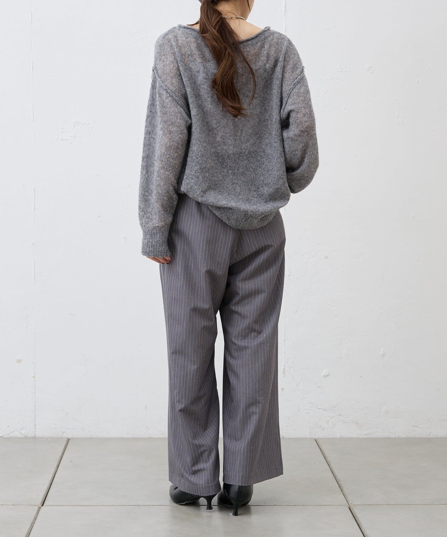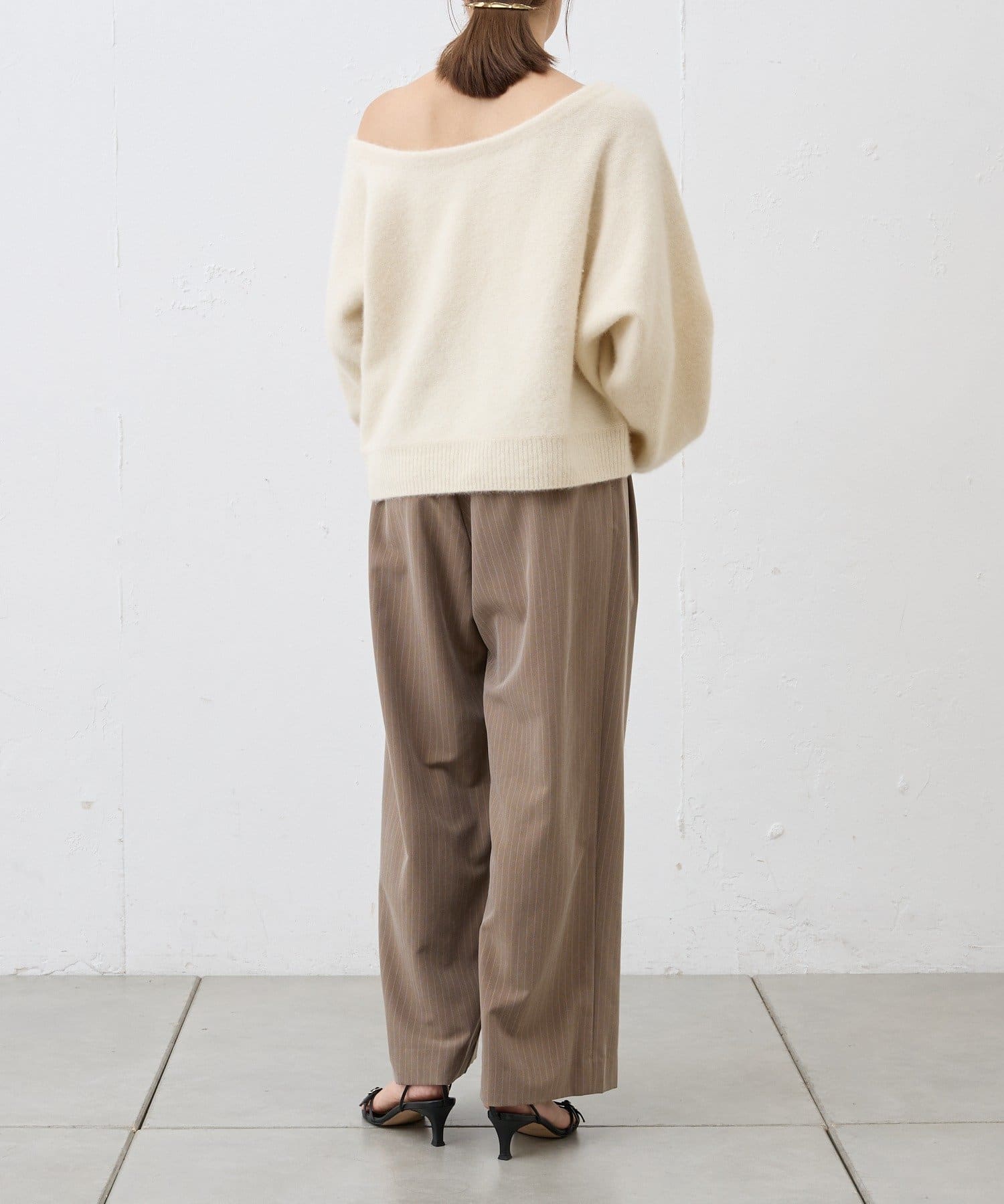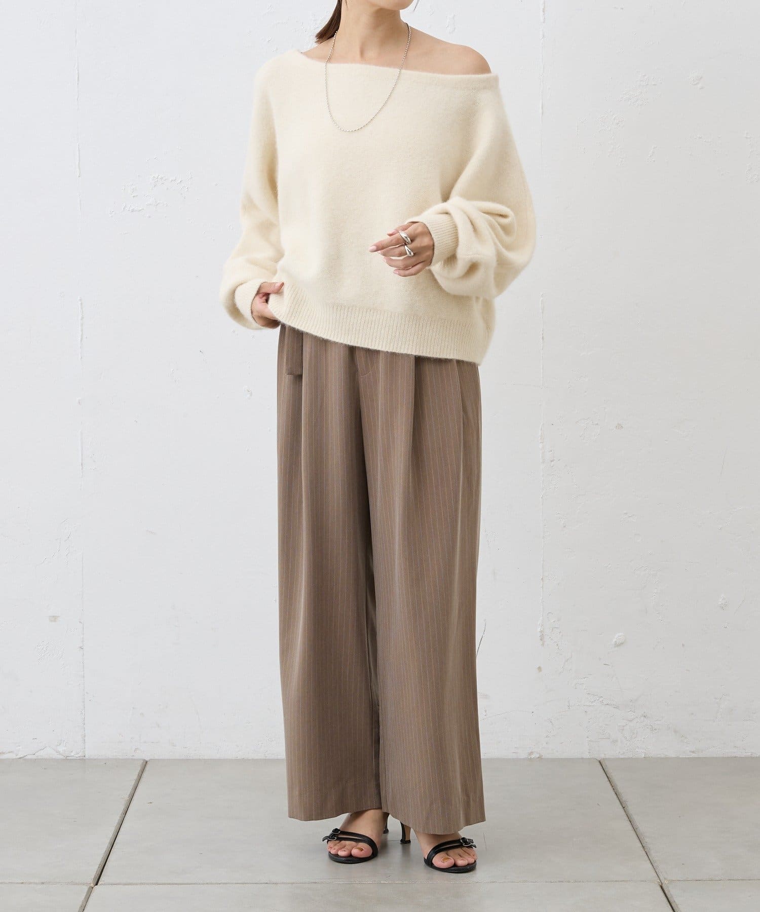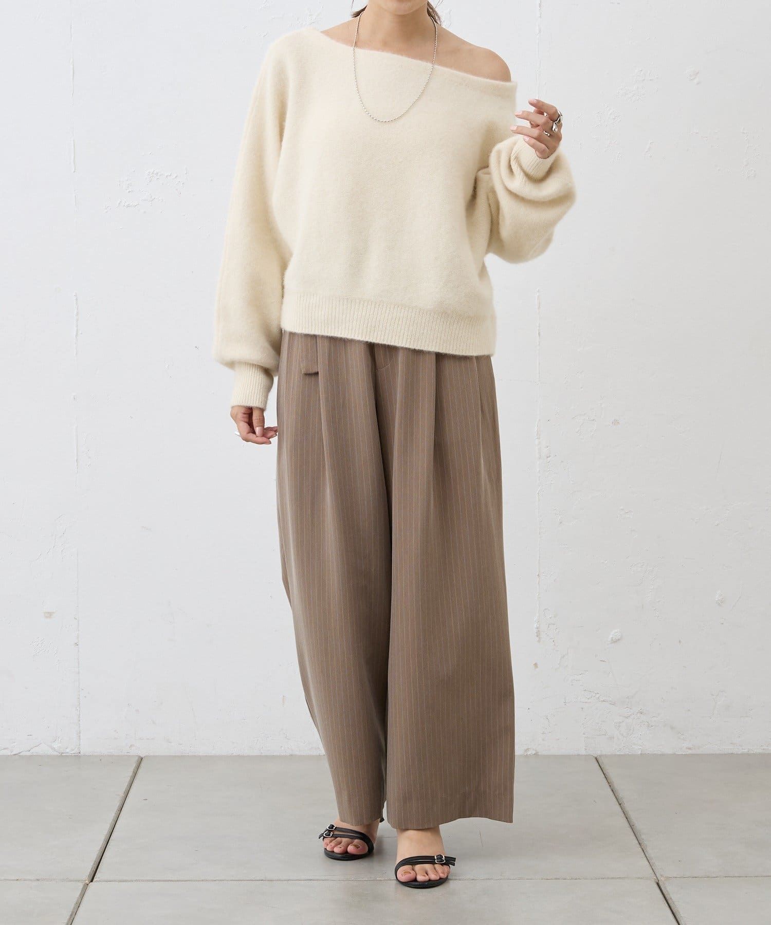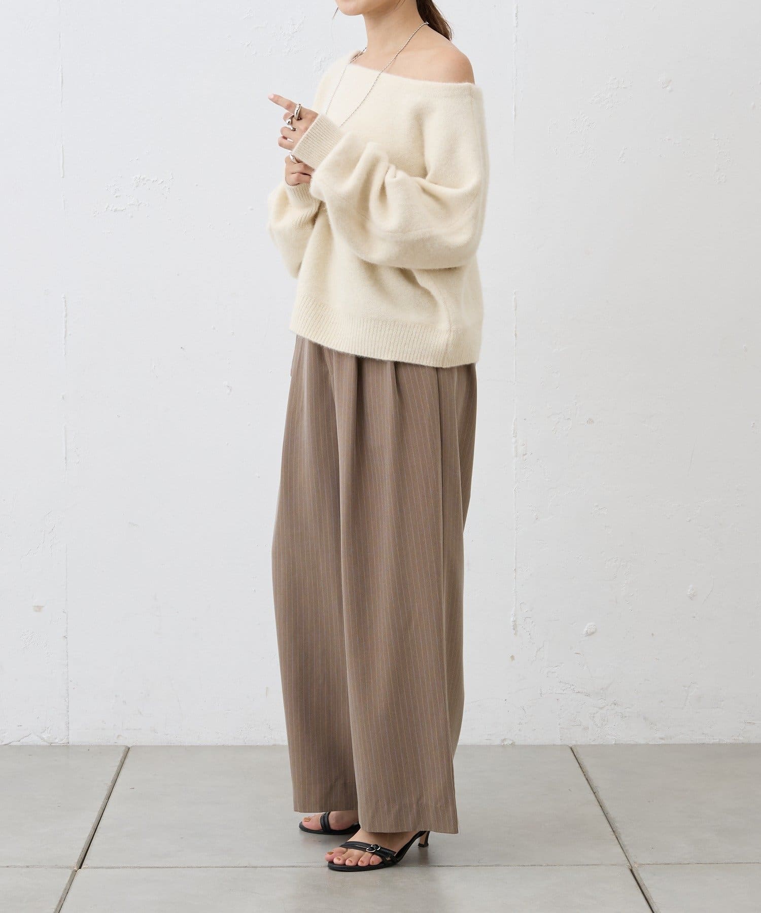 ウエストにタックが入っていることにより、腰回りから裾にかけてワイドにストンと落ちるシルエットが綺麗で脚長効果を演出。