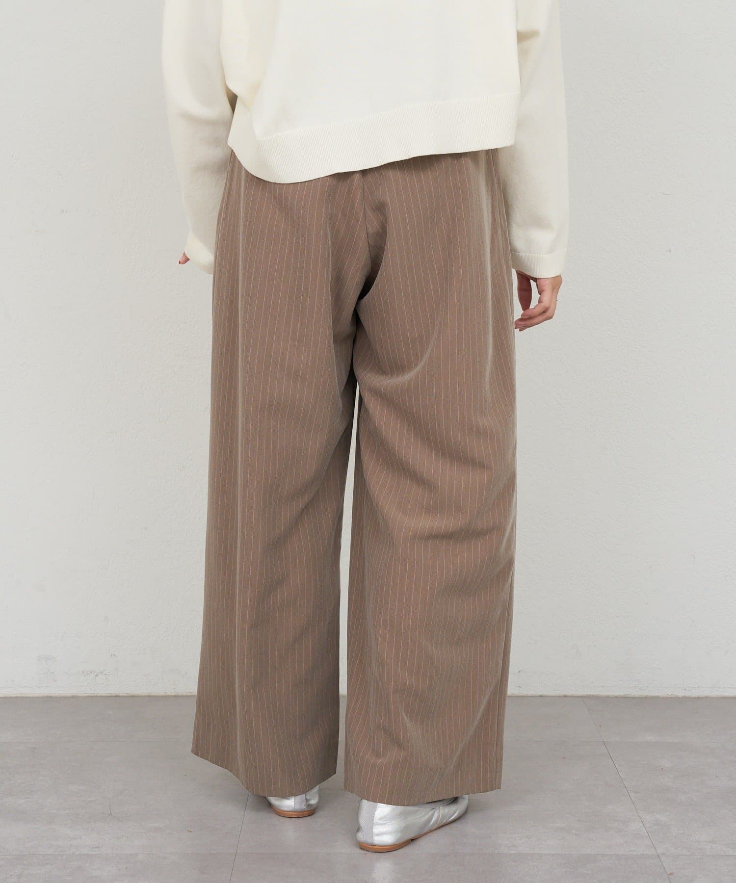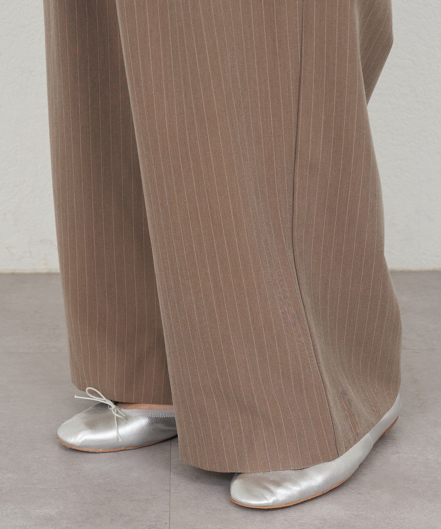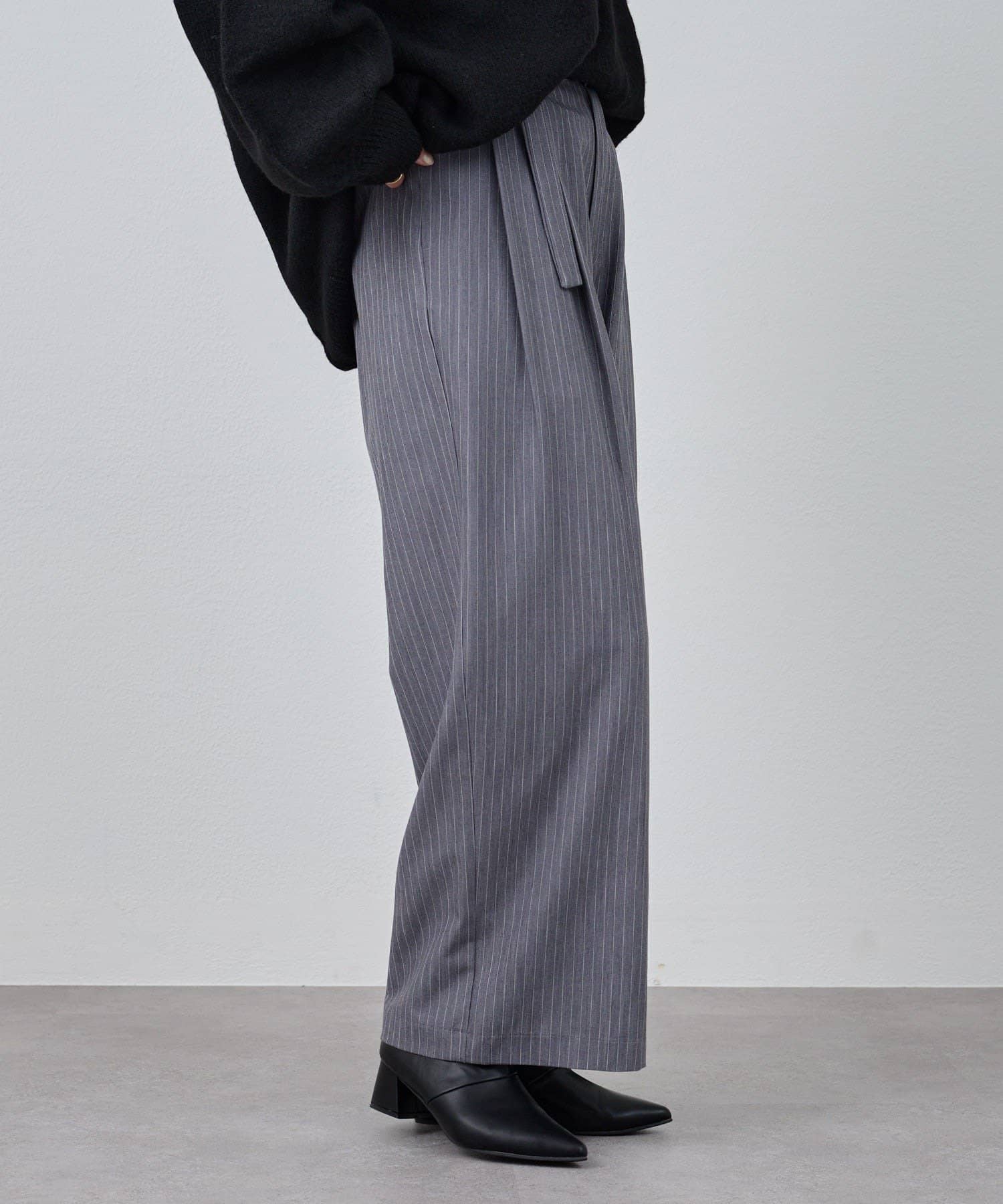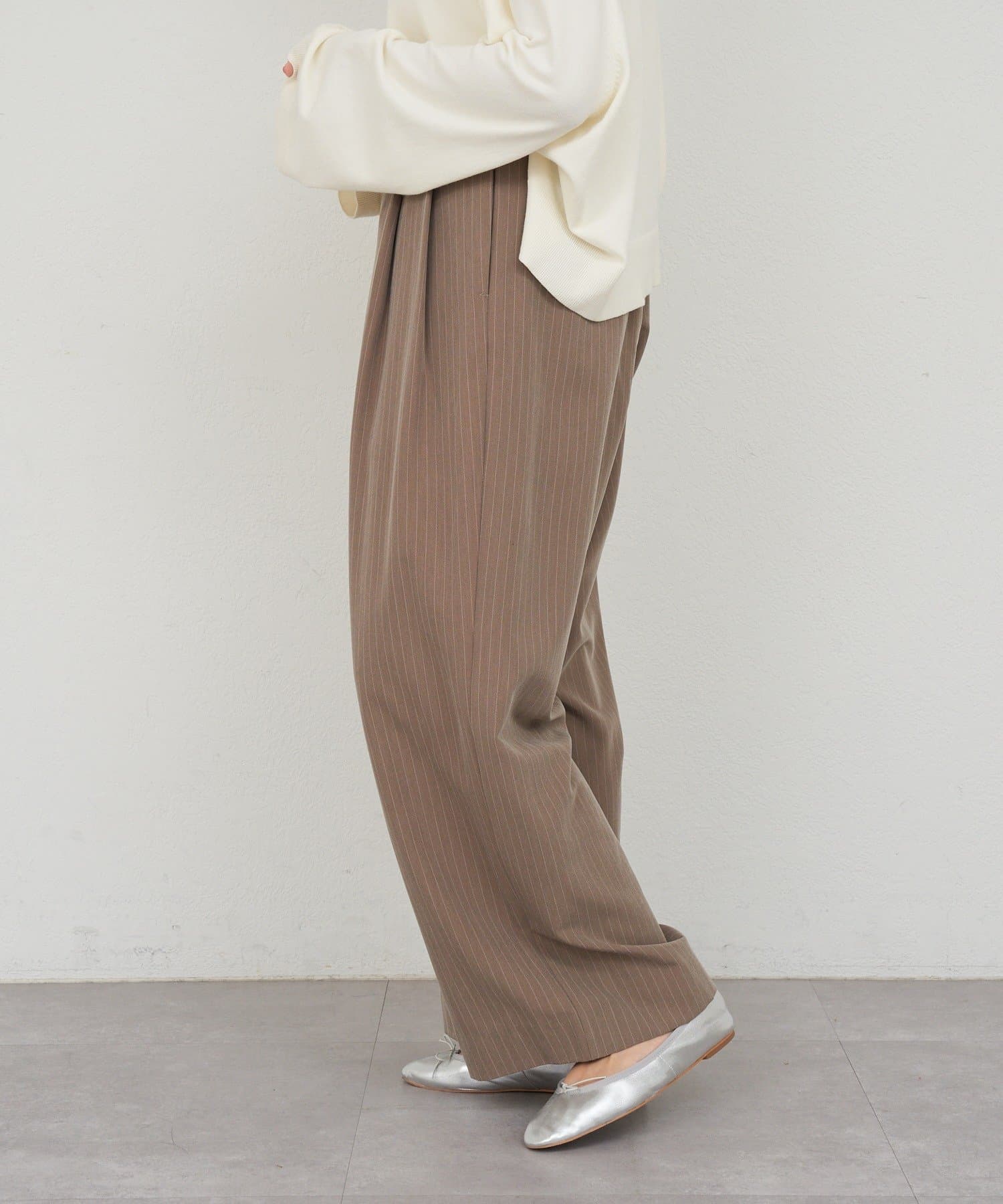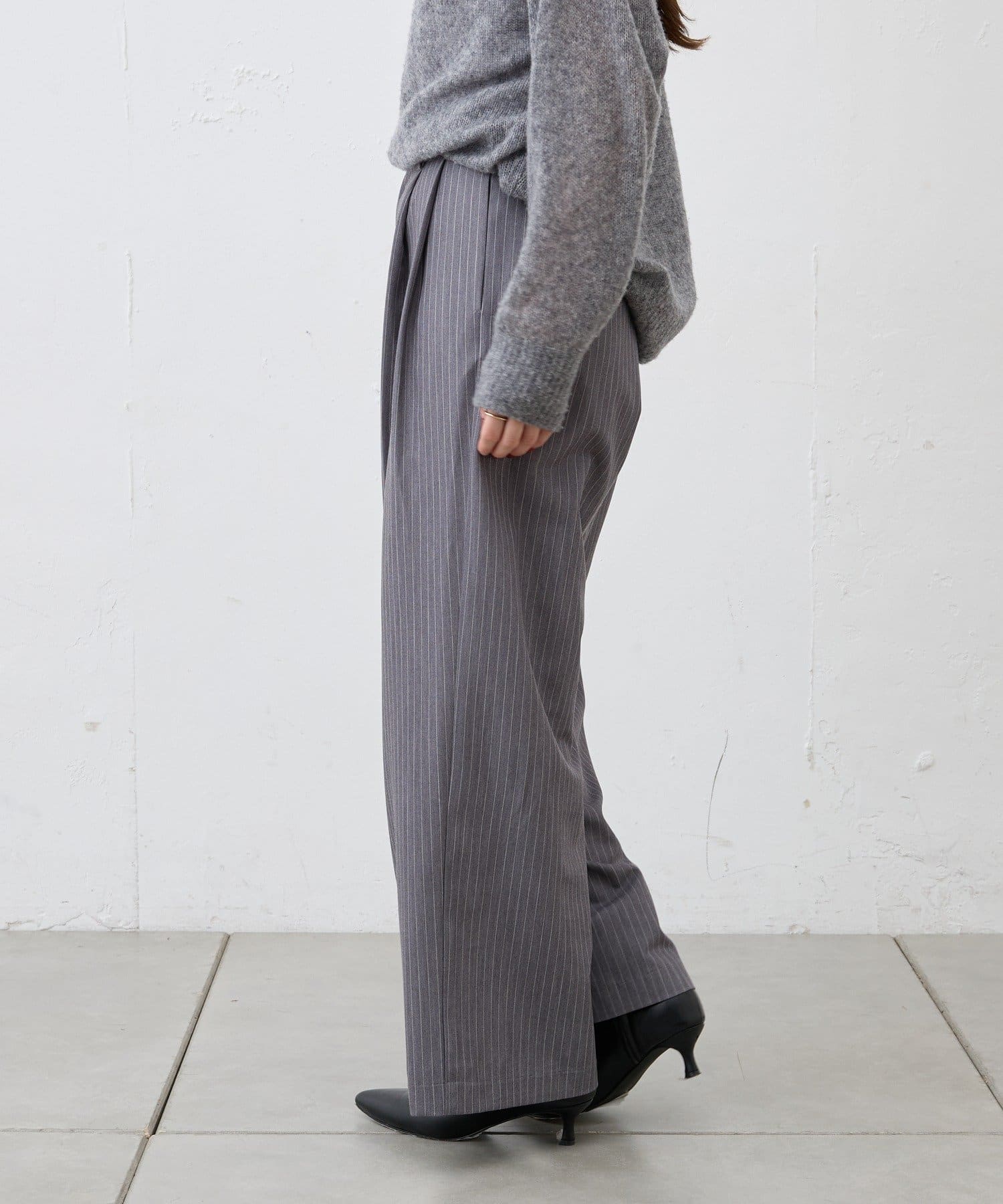 【期間限定10%OFF!タイムセール10/28(火)まで】【腰高美人パンツ】ダブルタックストライプワイドパンツ