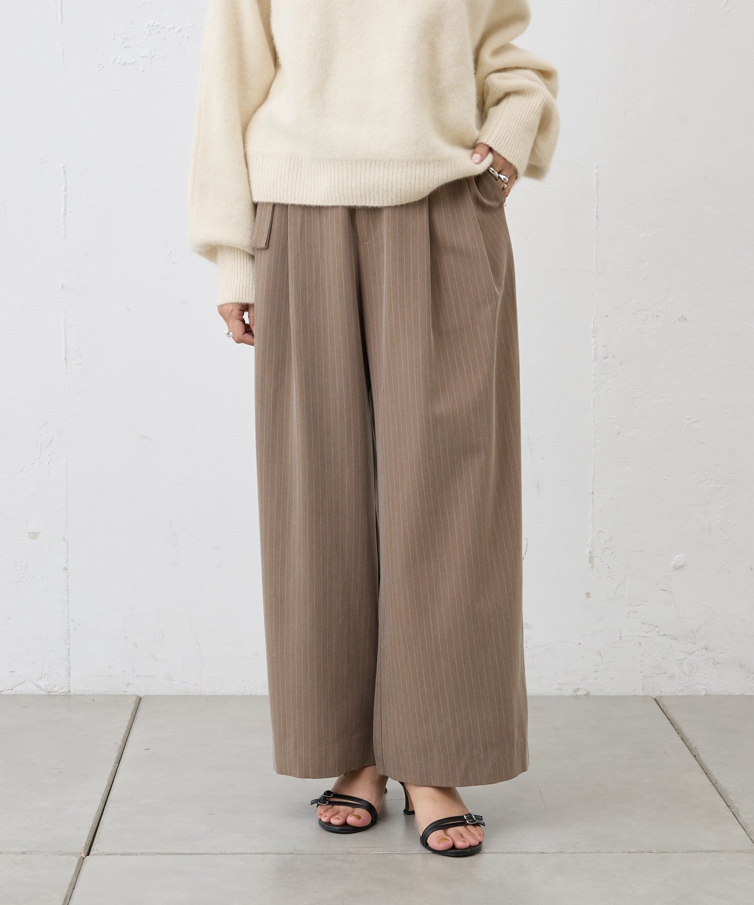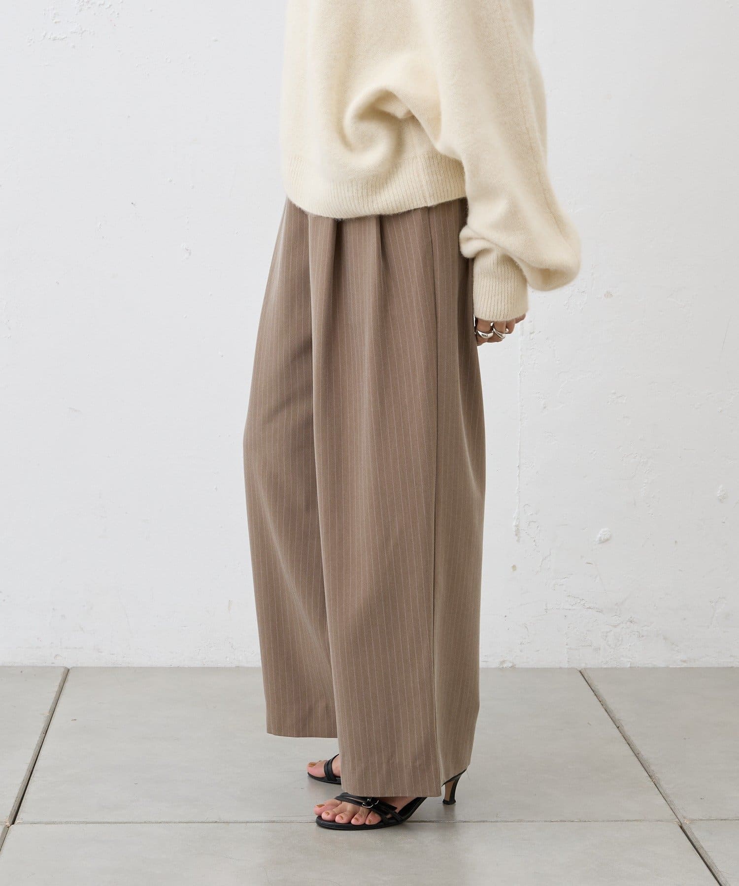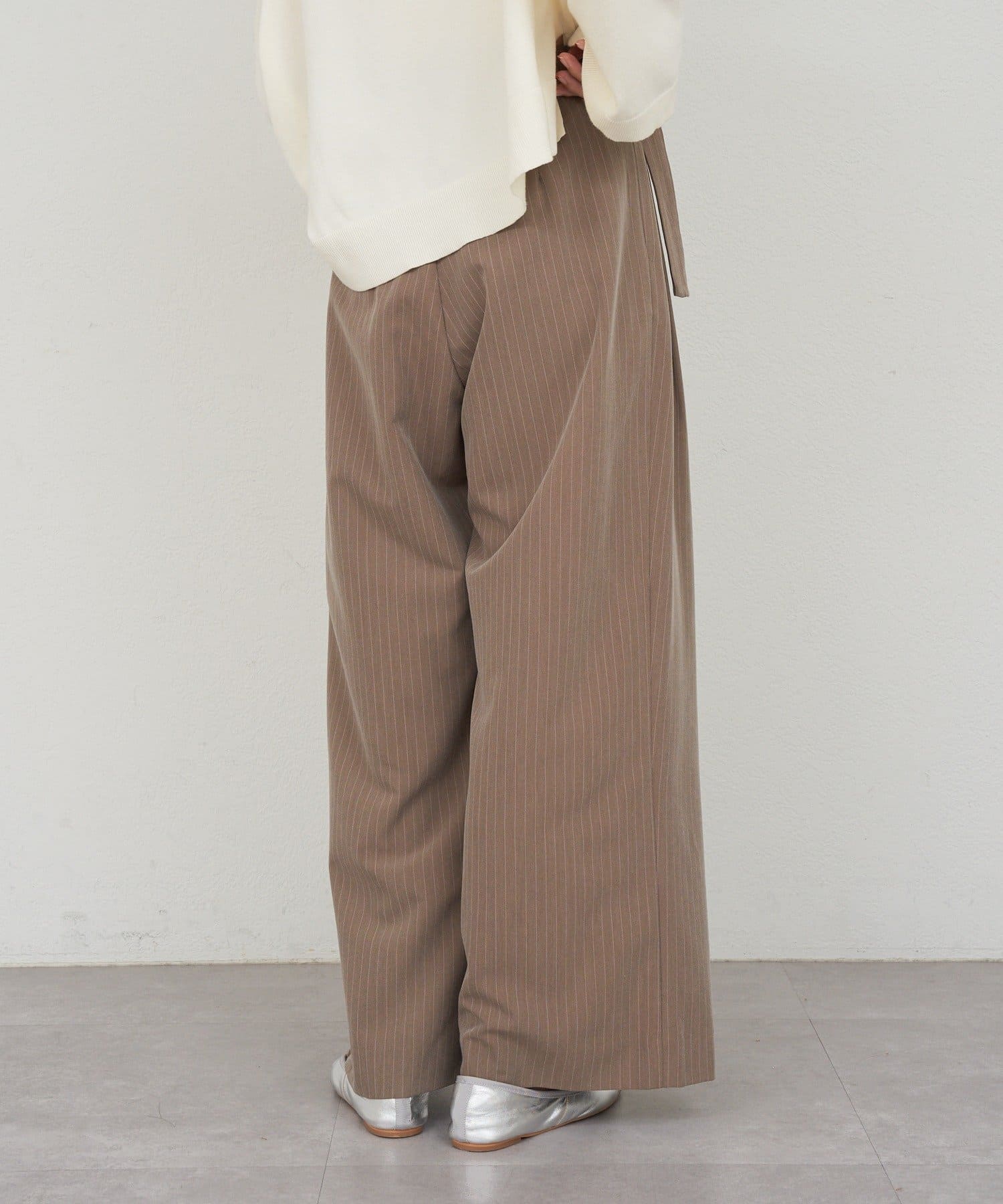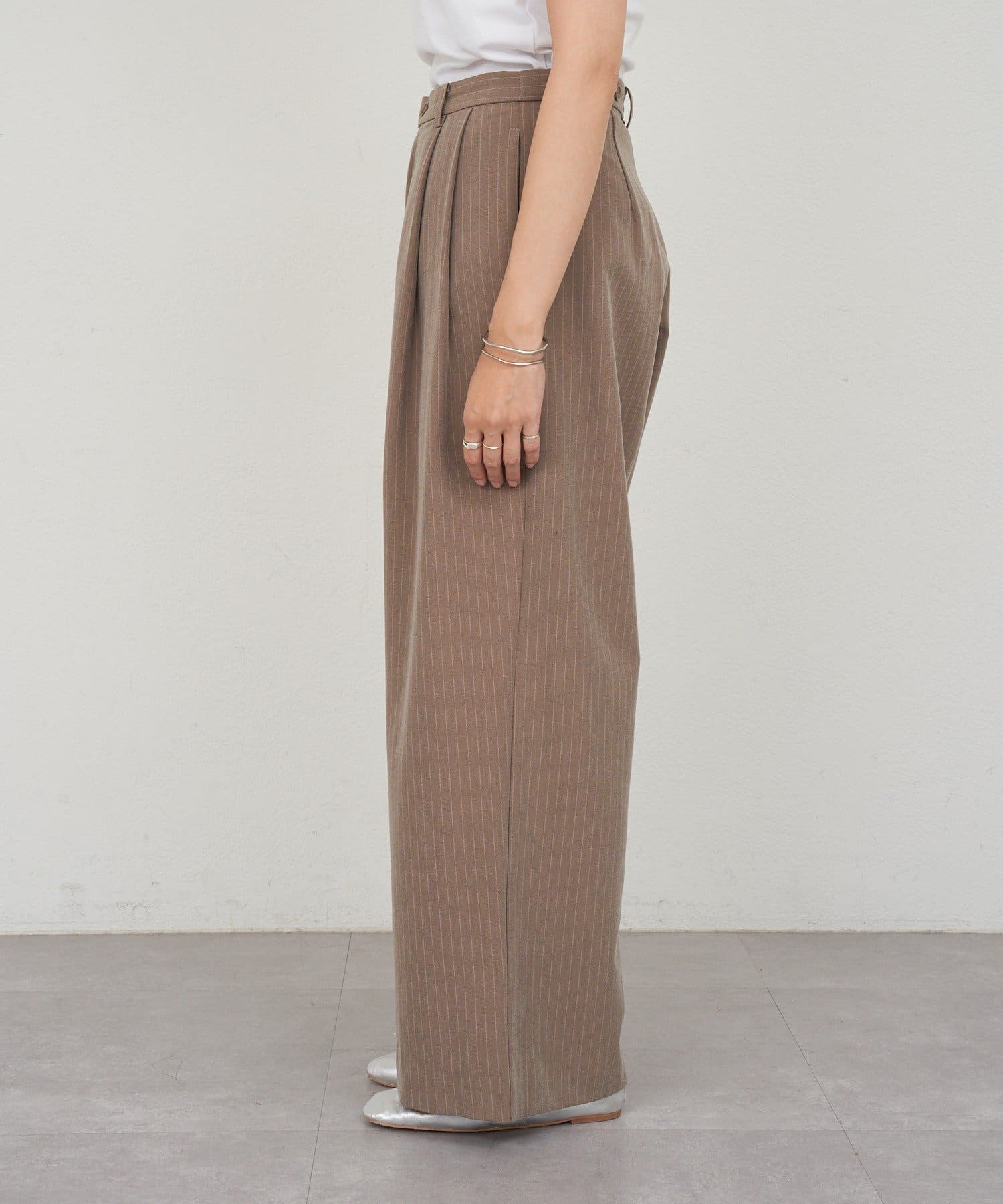 【期間限定10%OFF!タイムセール10/28(火)まで】【腰高美人パンツ】ダブルタックストライプワイドパンツ