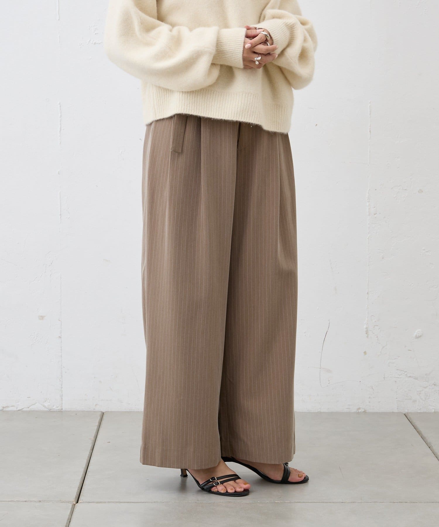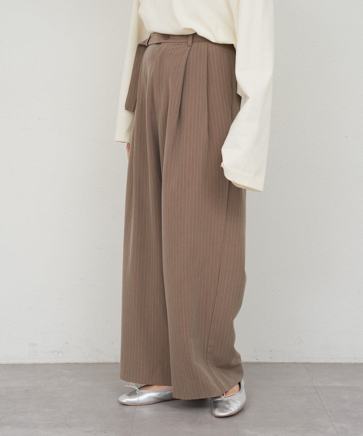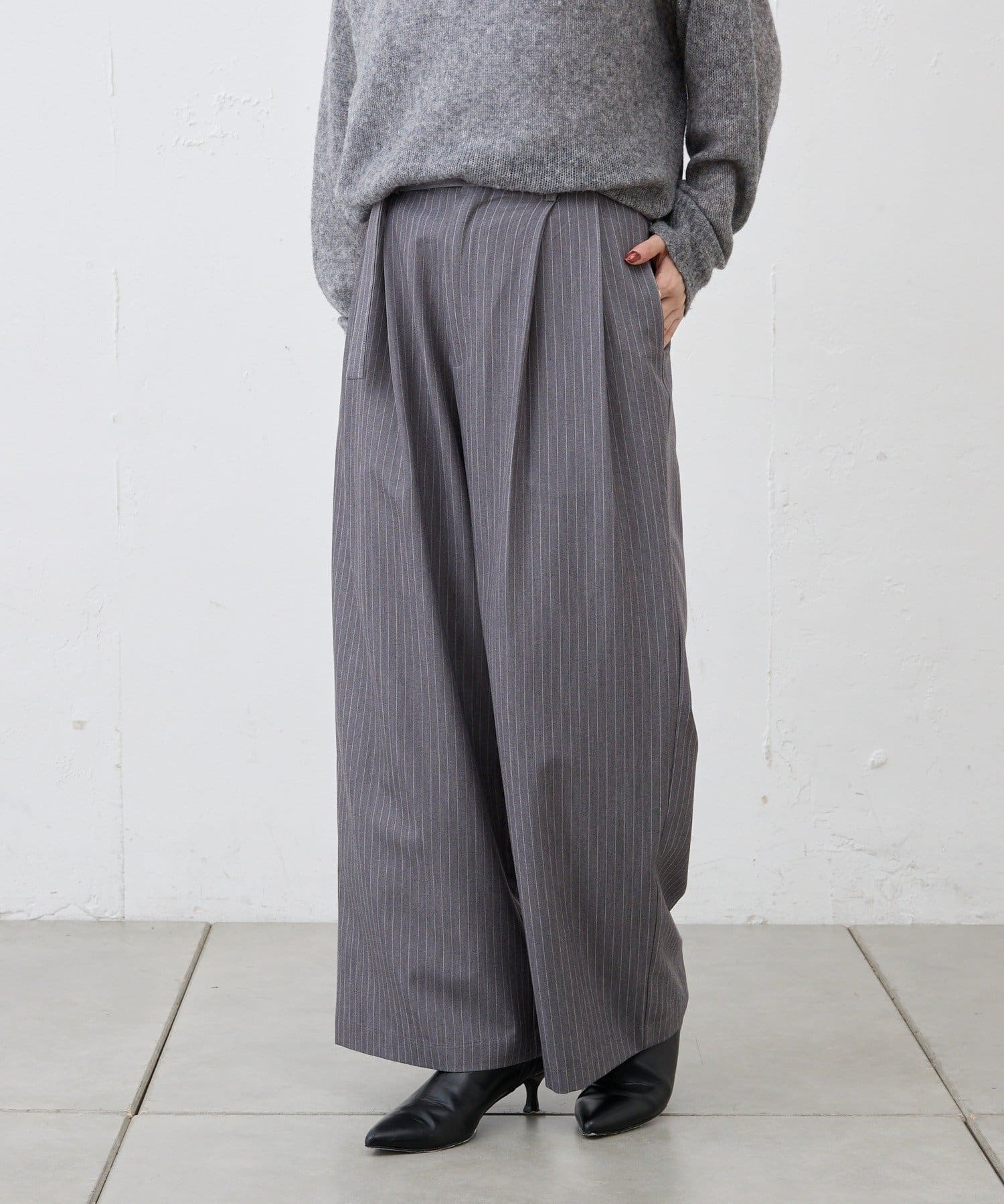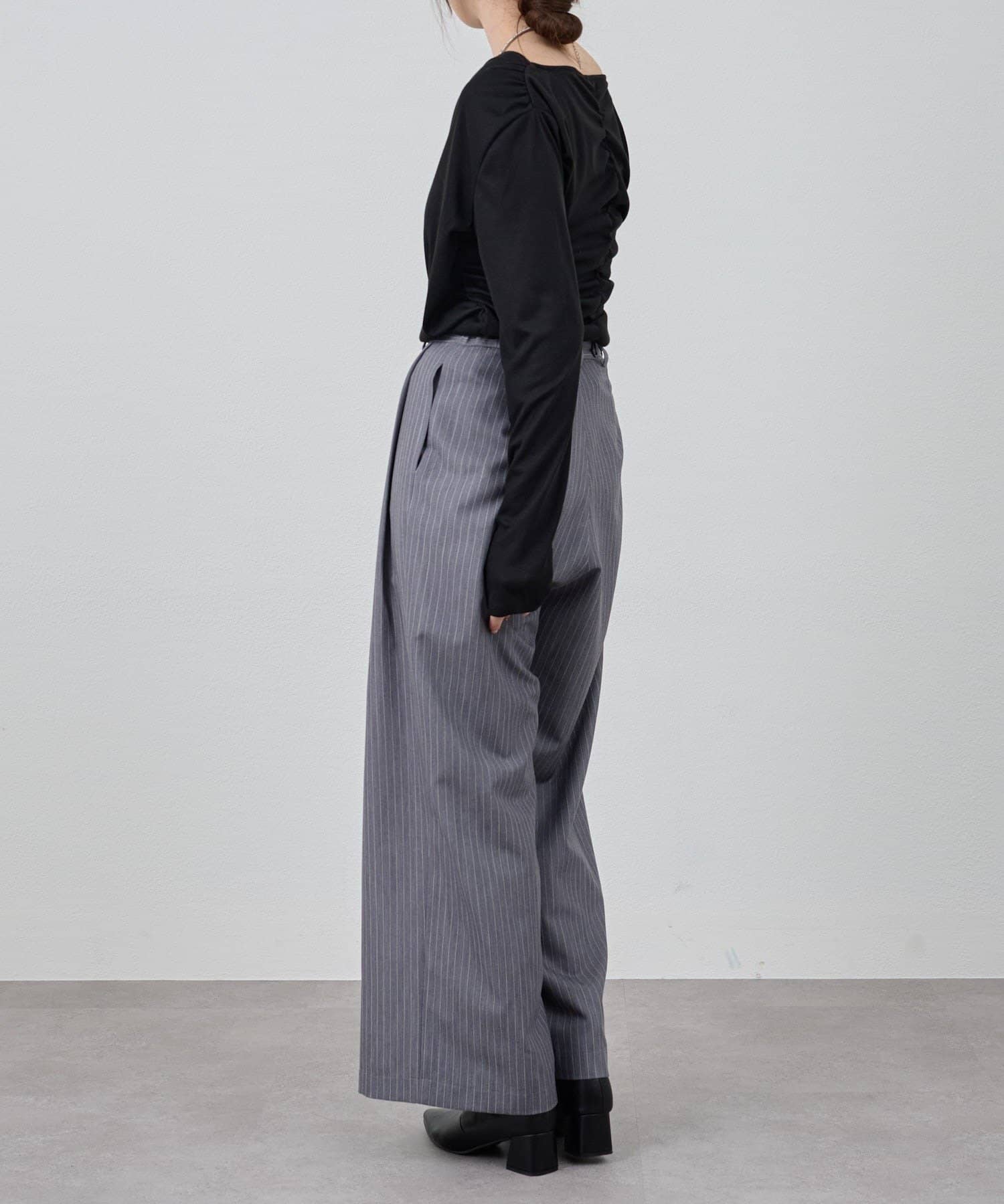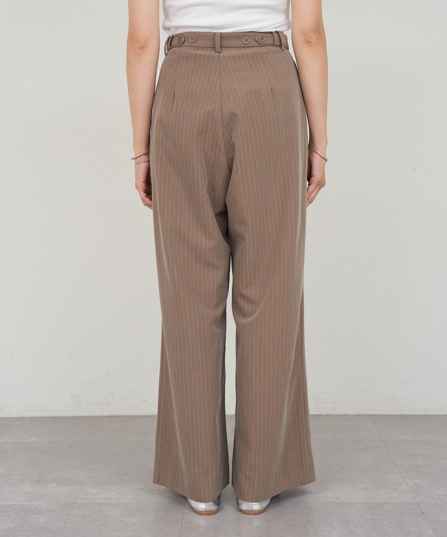 【期間限定10%OFF!タイムセール10/28(火)まで】【腰高美人パンツ】ダブルタックストライプワイドパンツ