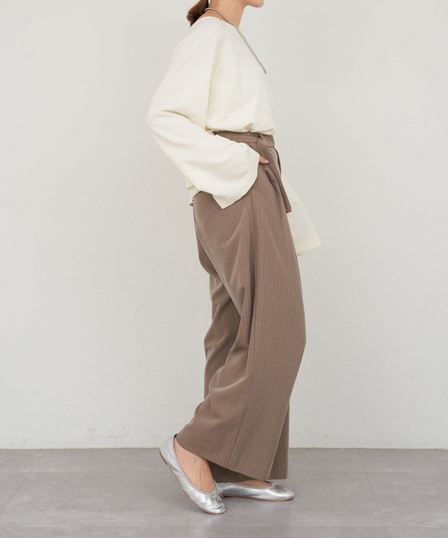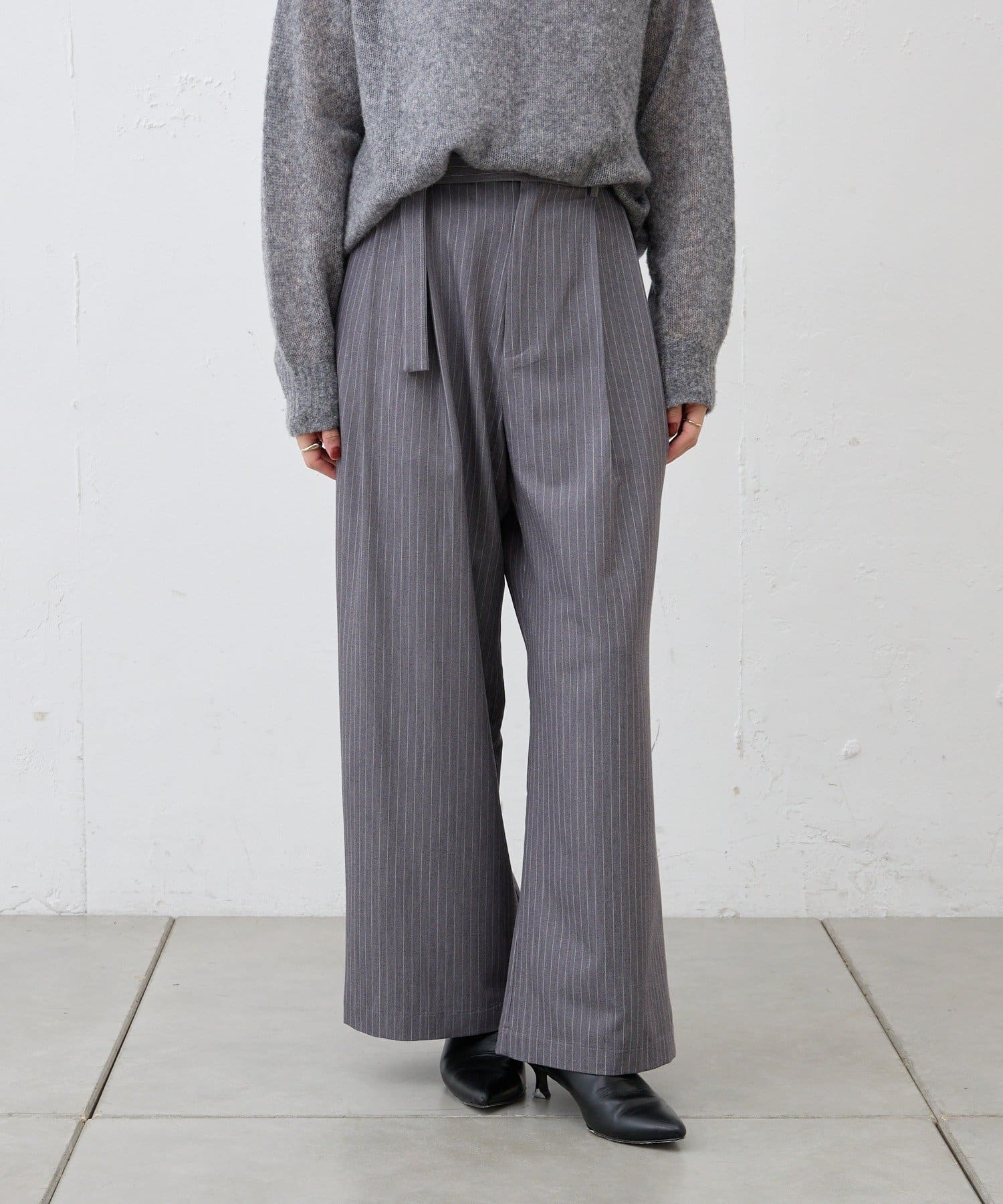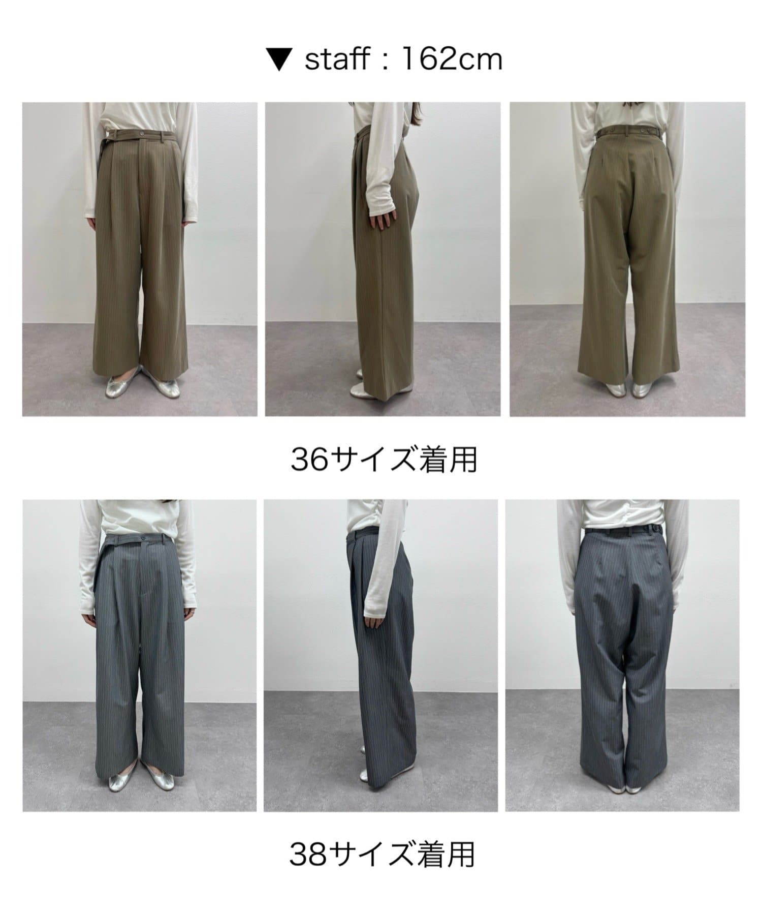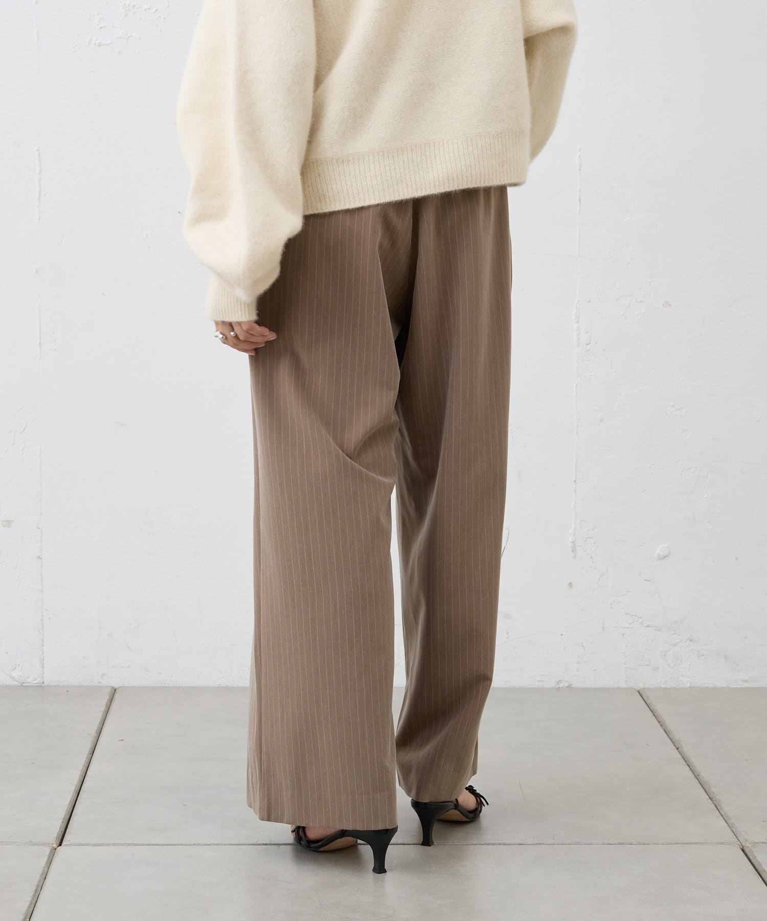 【期間限定10%OFF!タイムセール10/28(火)まで】【腰高美人パンツ】ダブルタックストライプワイドパンツ