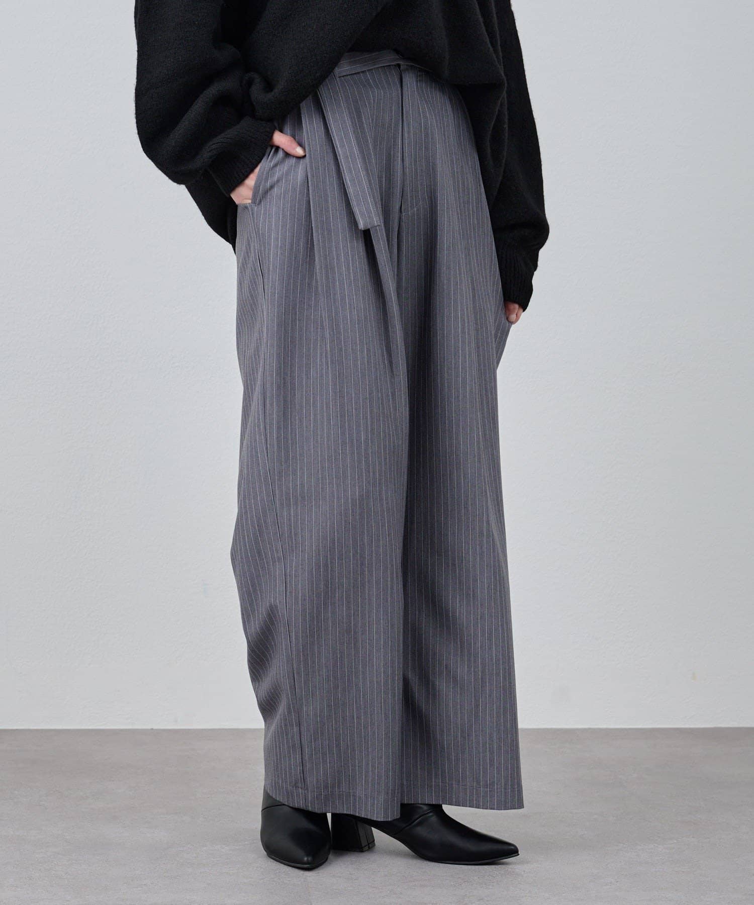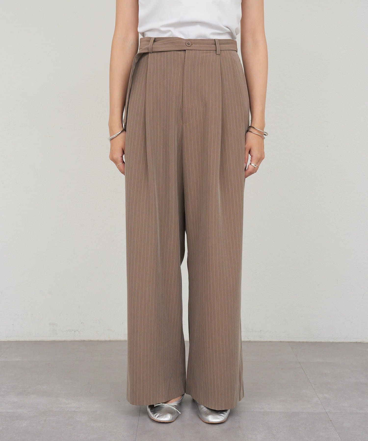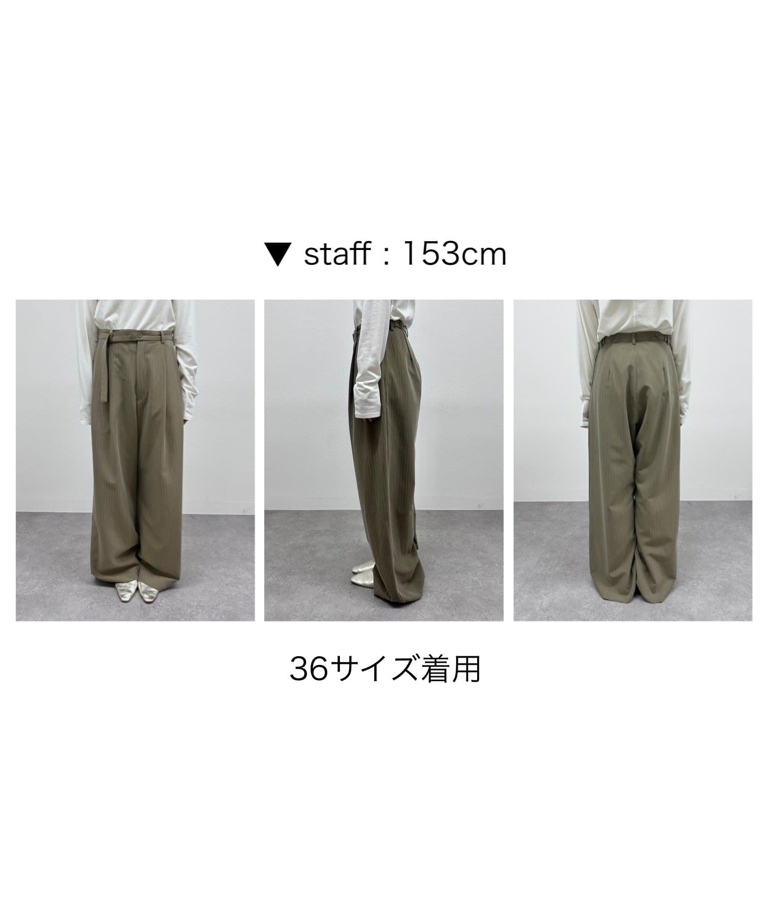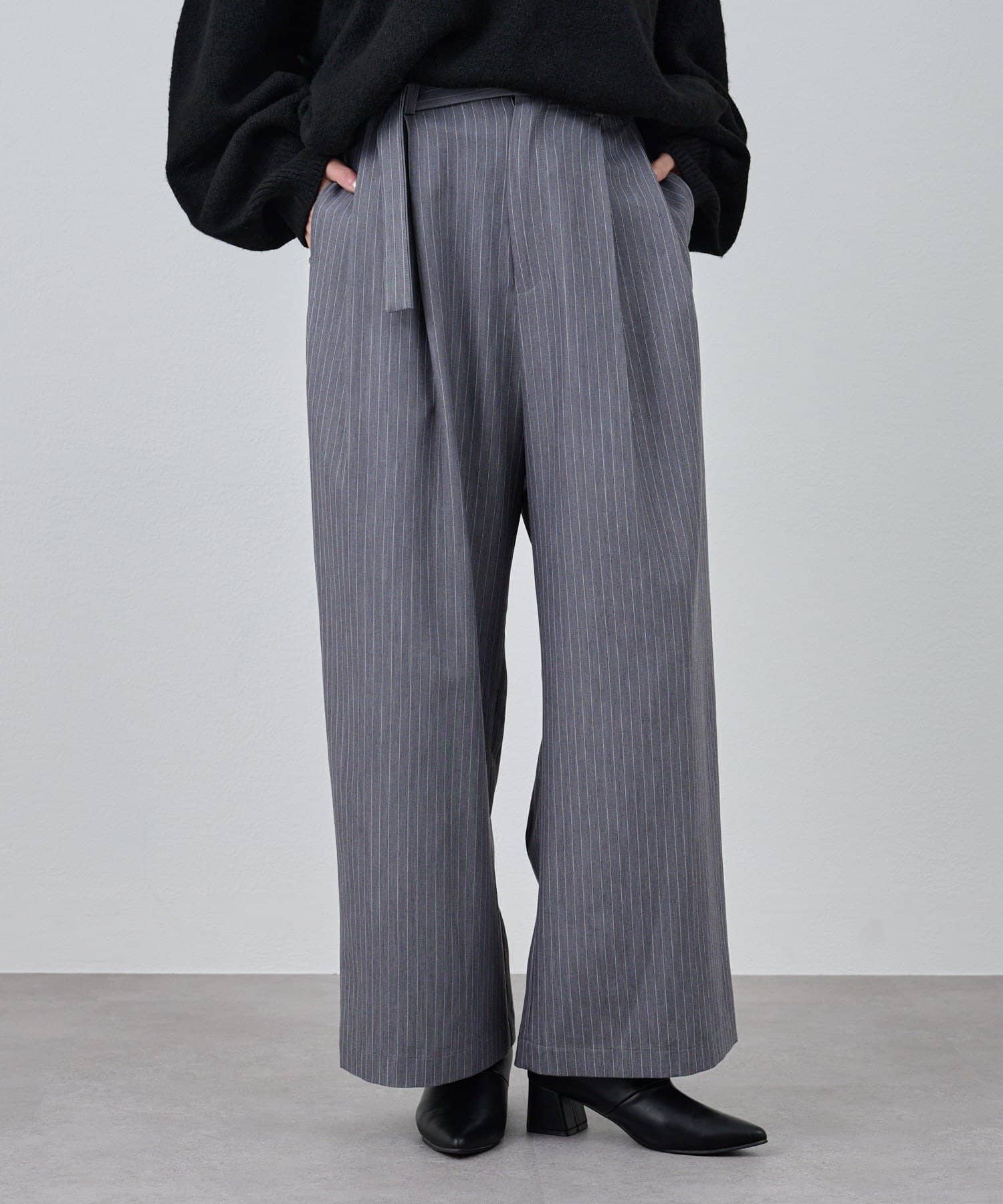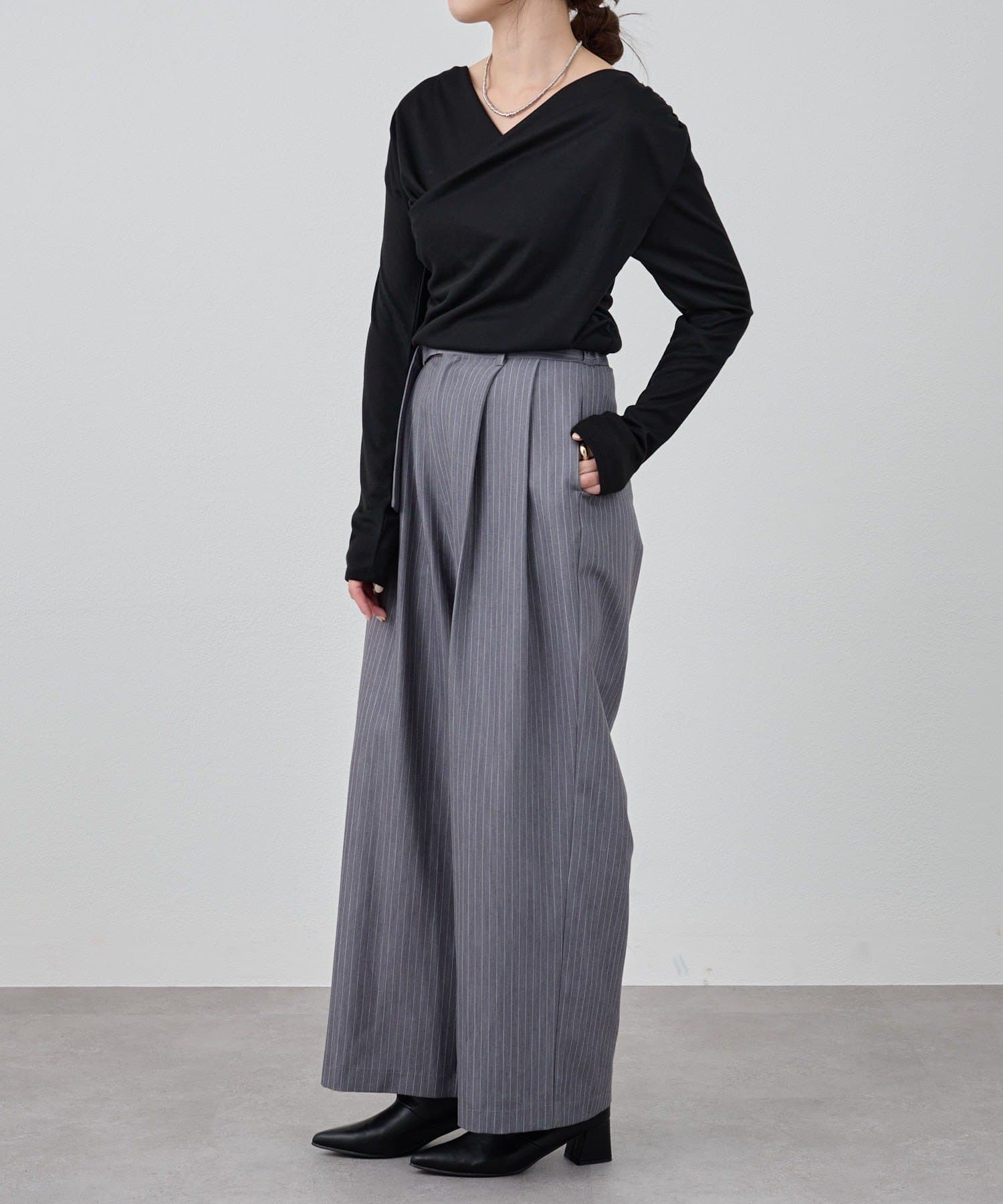 【期間限定10%OFF!タイムセール10/28(火)まで】【腰高美人パンツ】ダブルタックストライプワイドパンツ