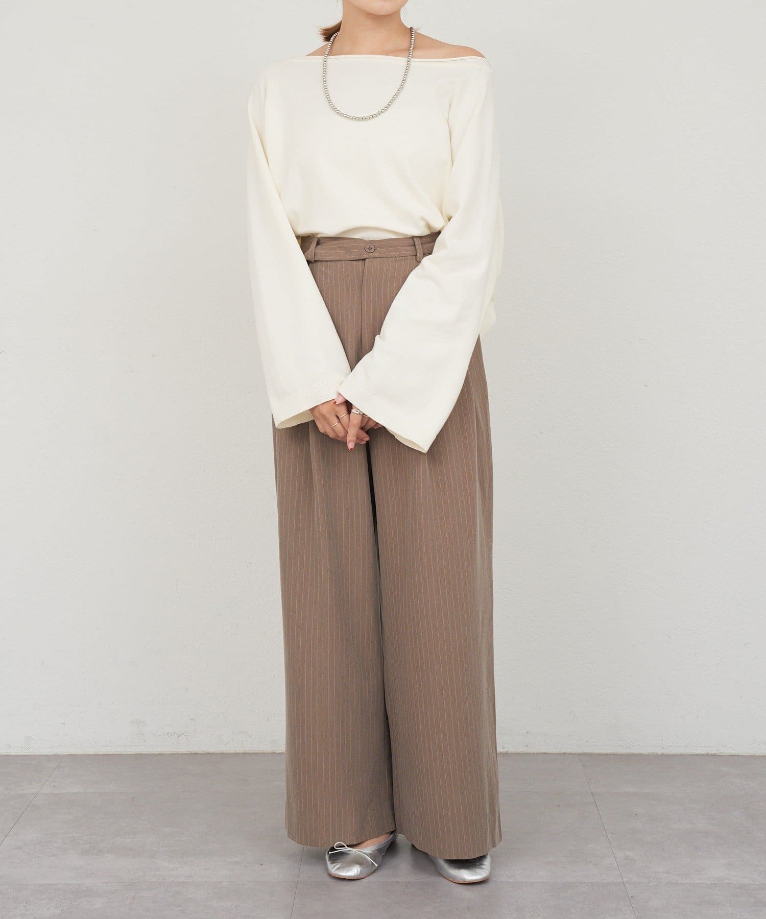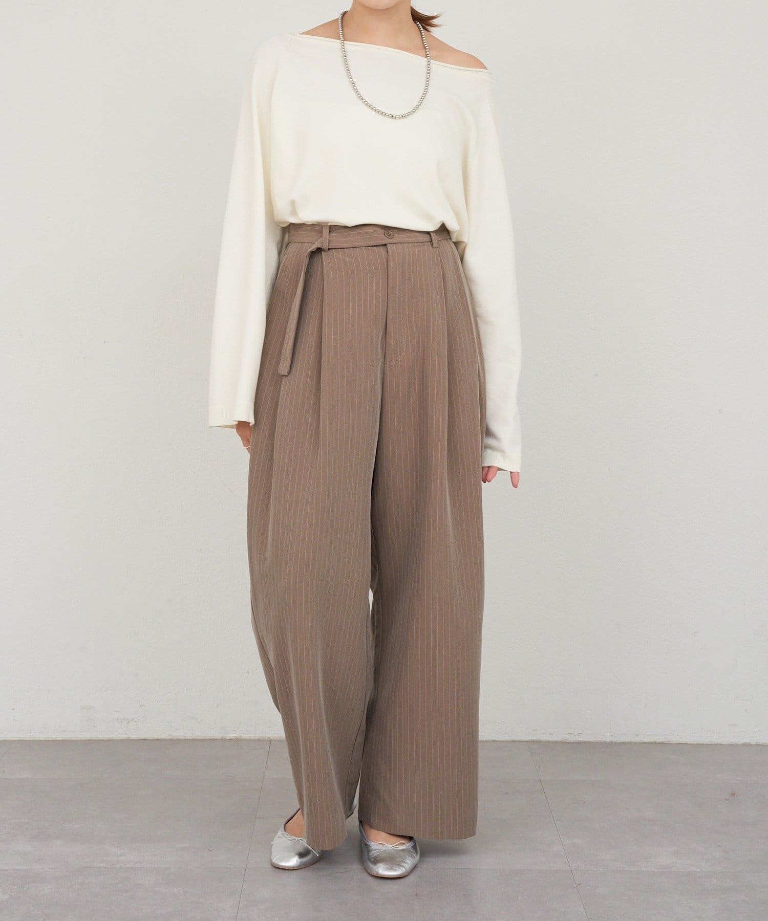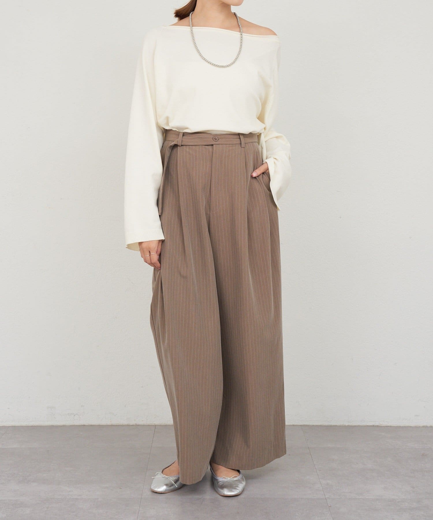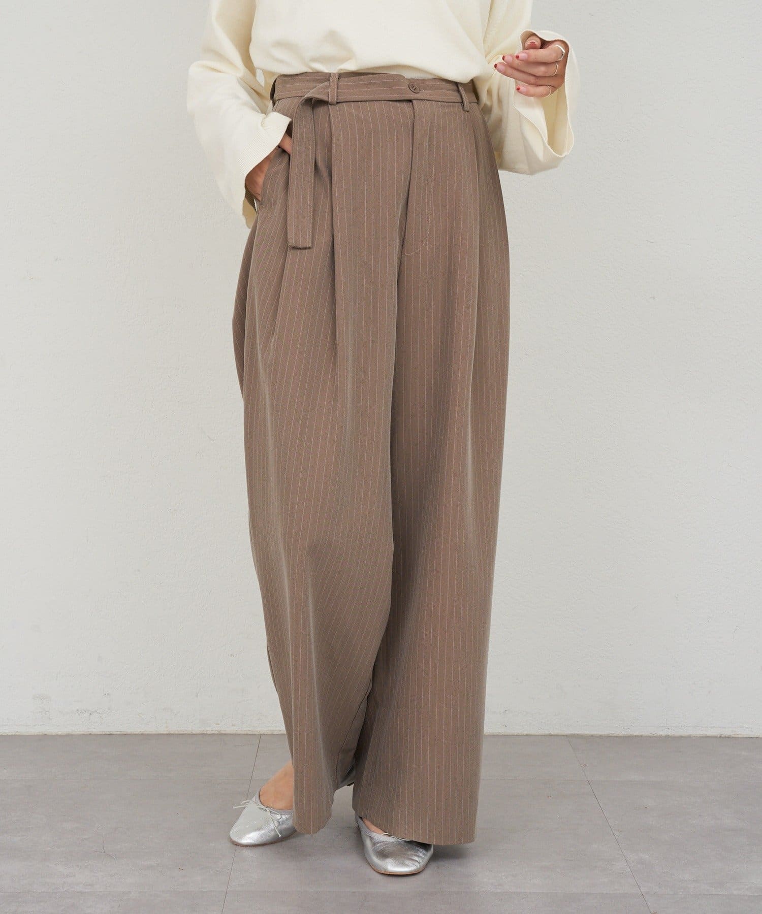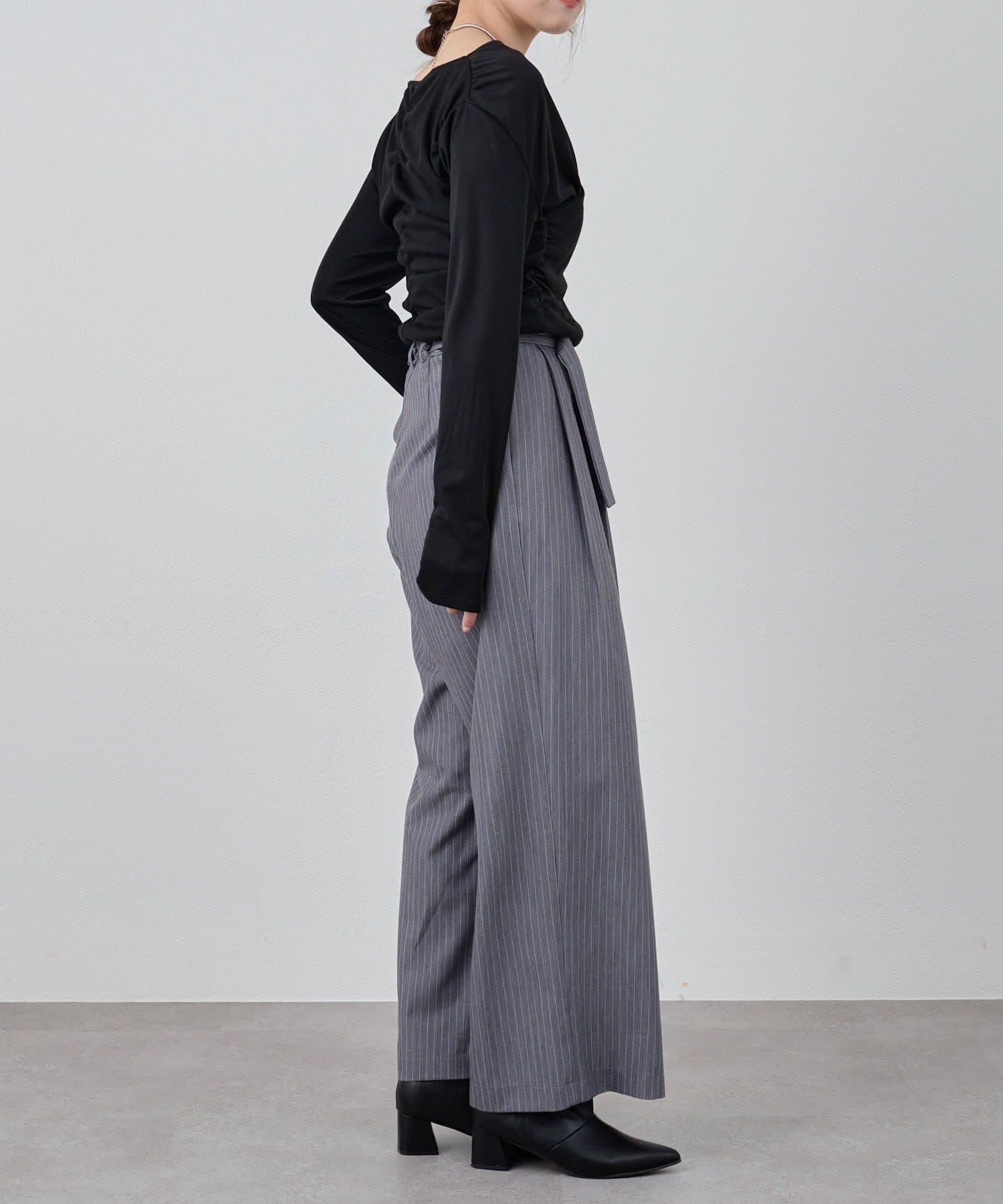 【期間限定10%OFF!タイムセール10/28(火)まで】【腰高美人パンツ】ダブルタックストライプワイドパンツ