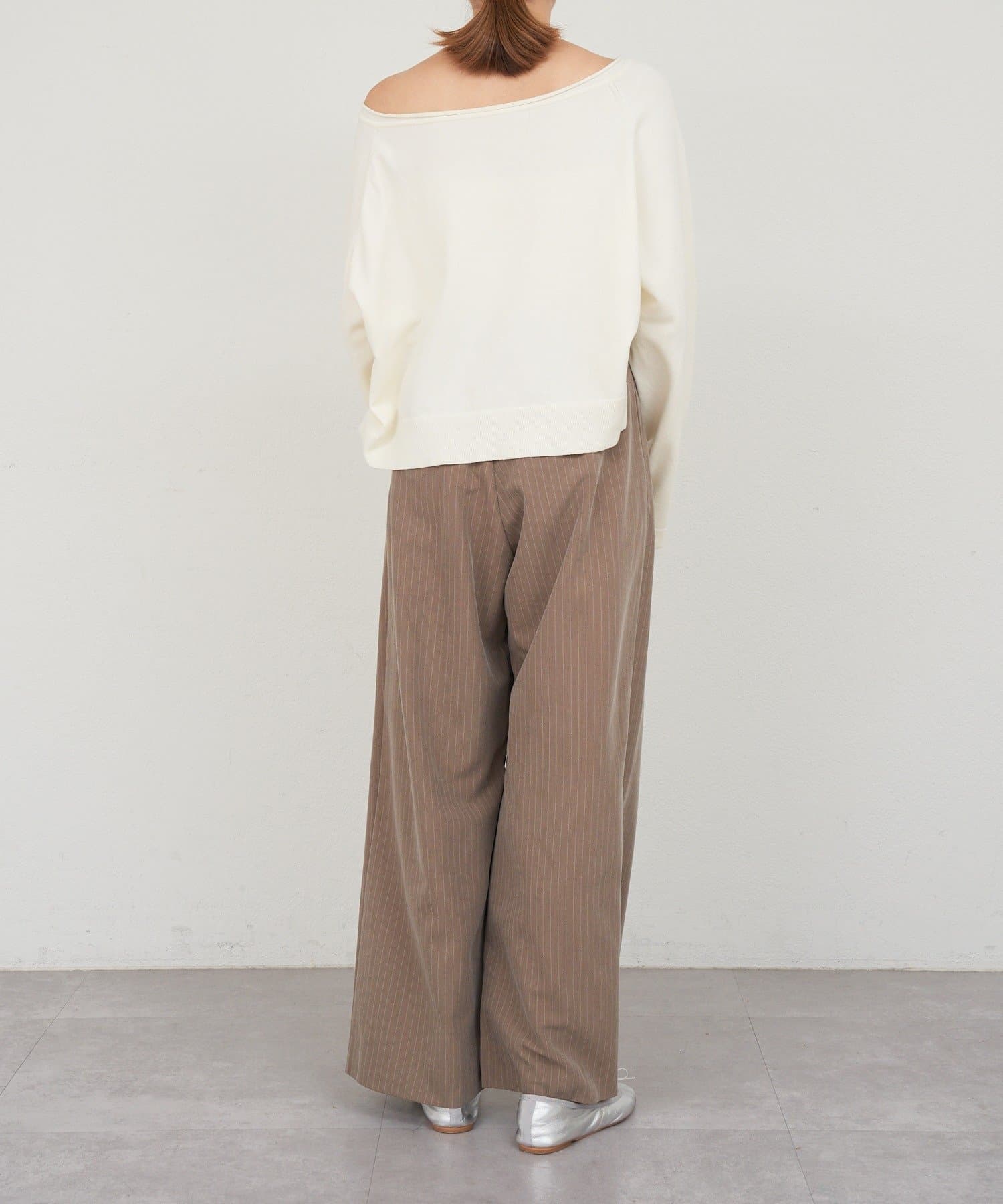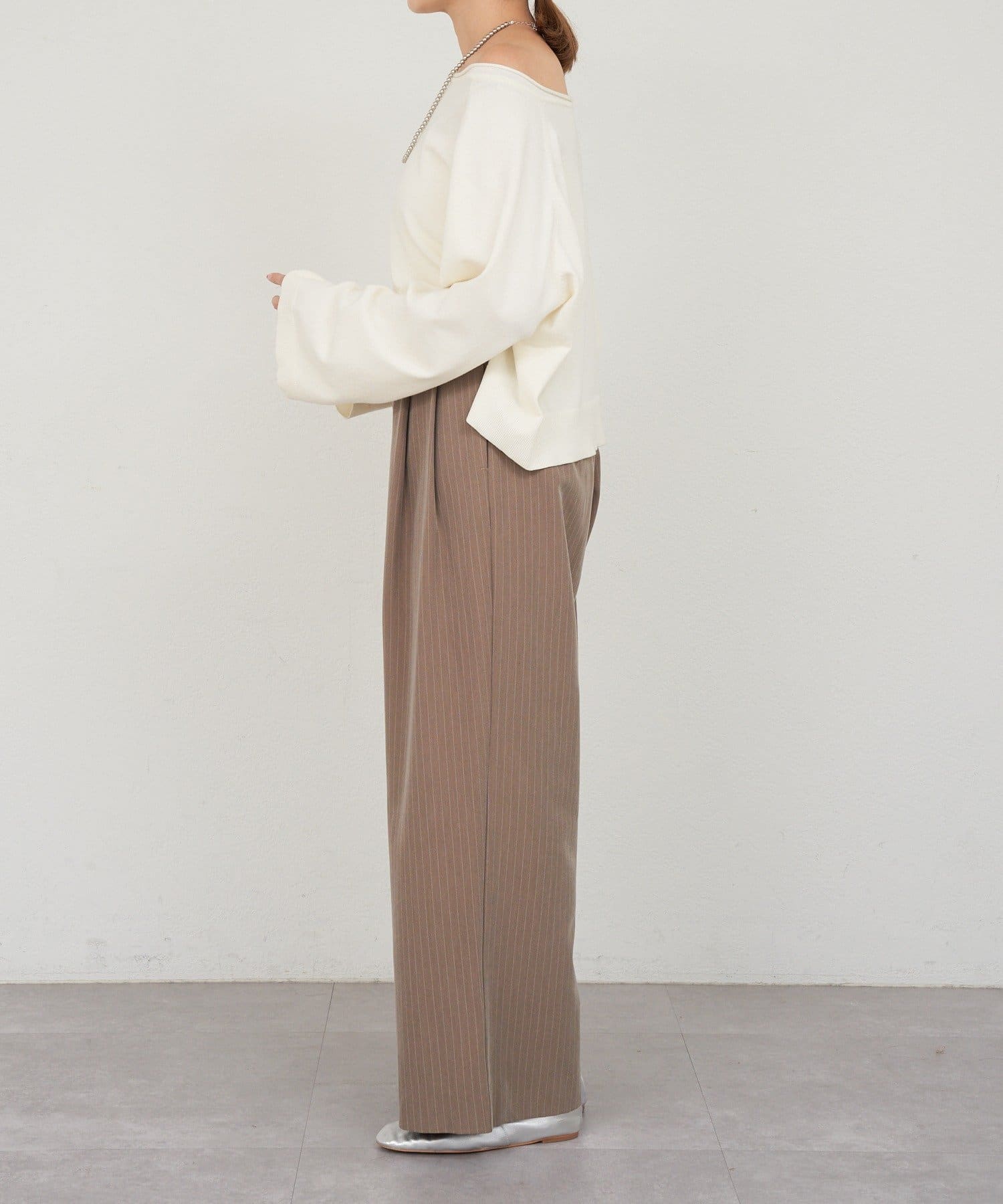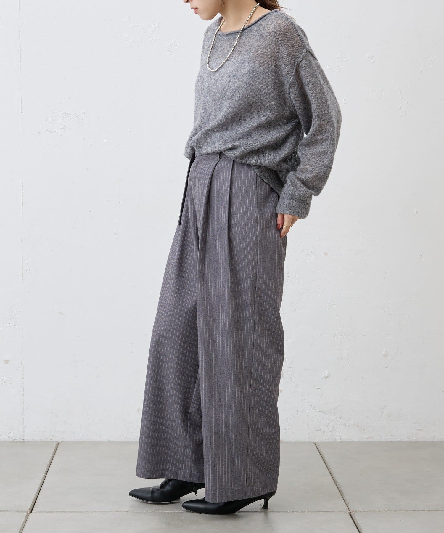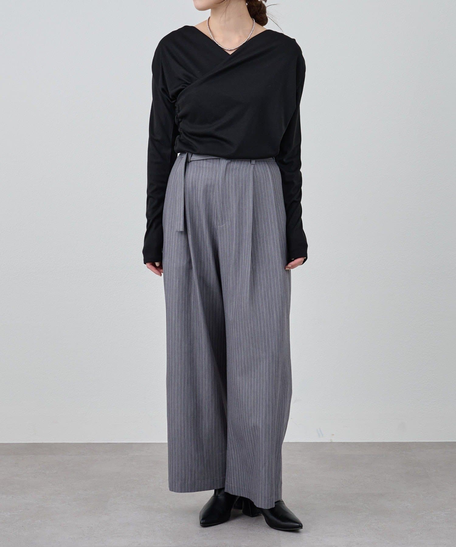 【期間限定10%OFF!タイムセール10/28(火)まで】【腰高美人パンツ】ダブルタックストライプワイドパンツ