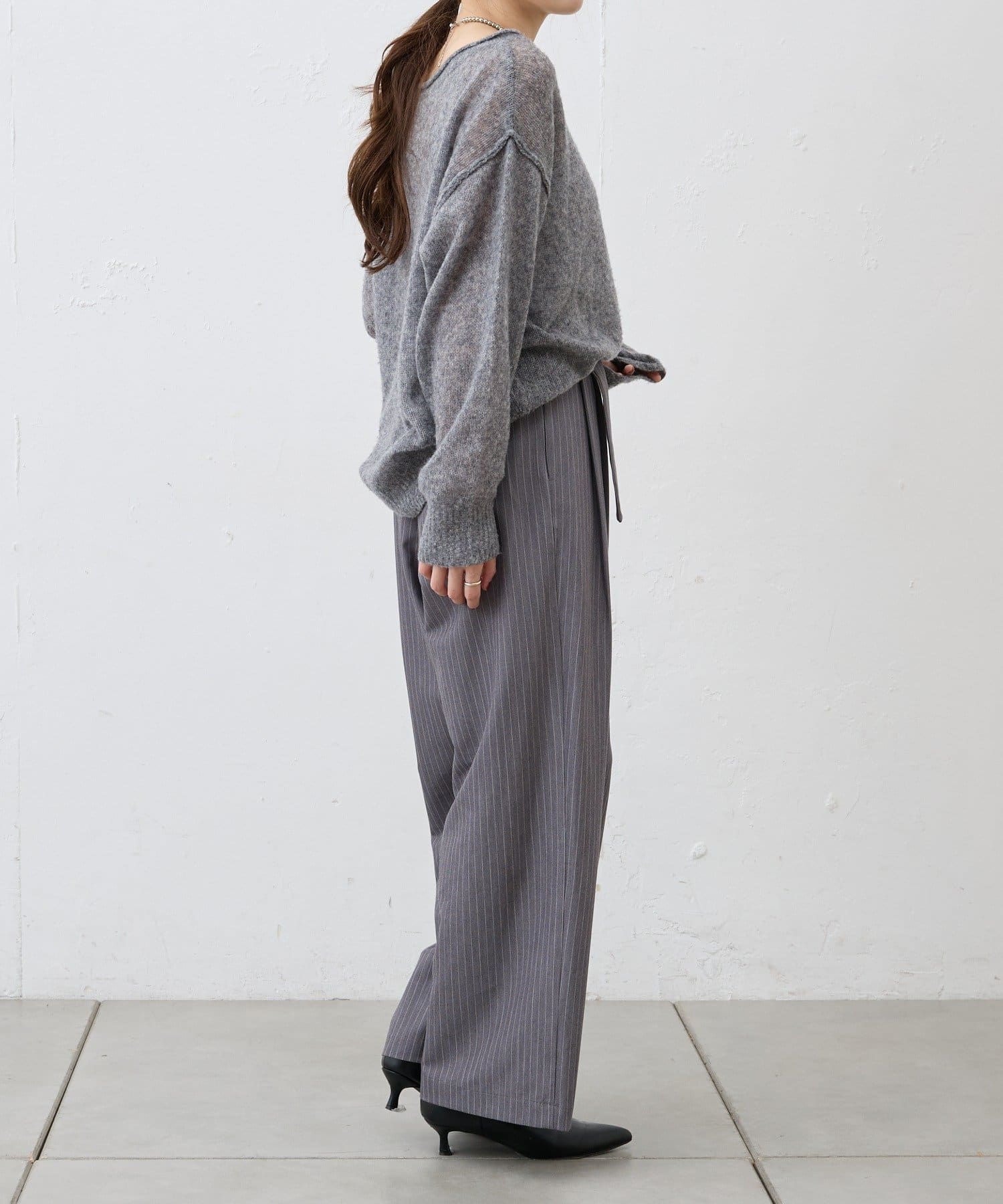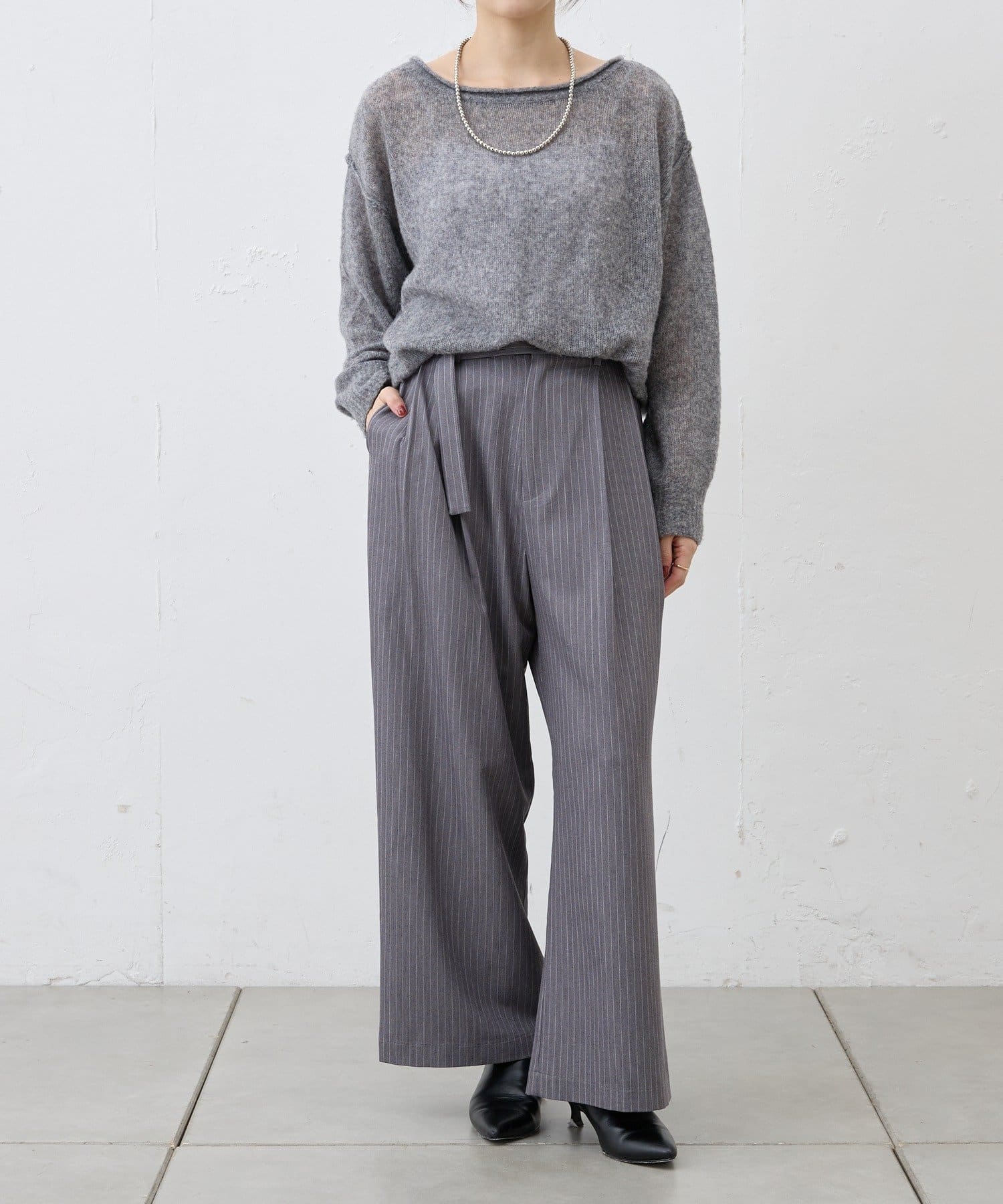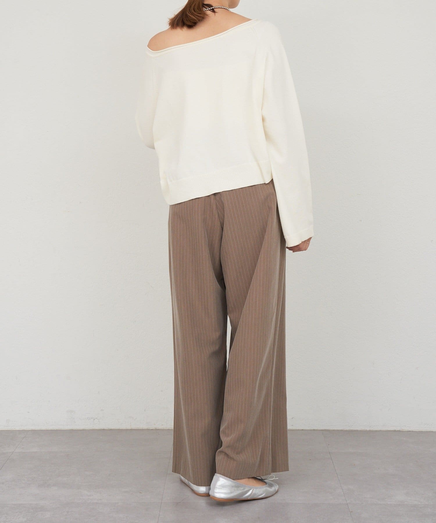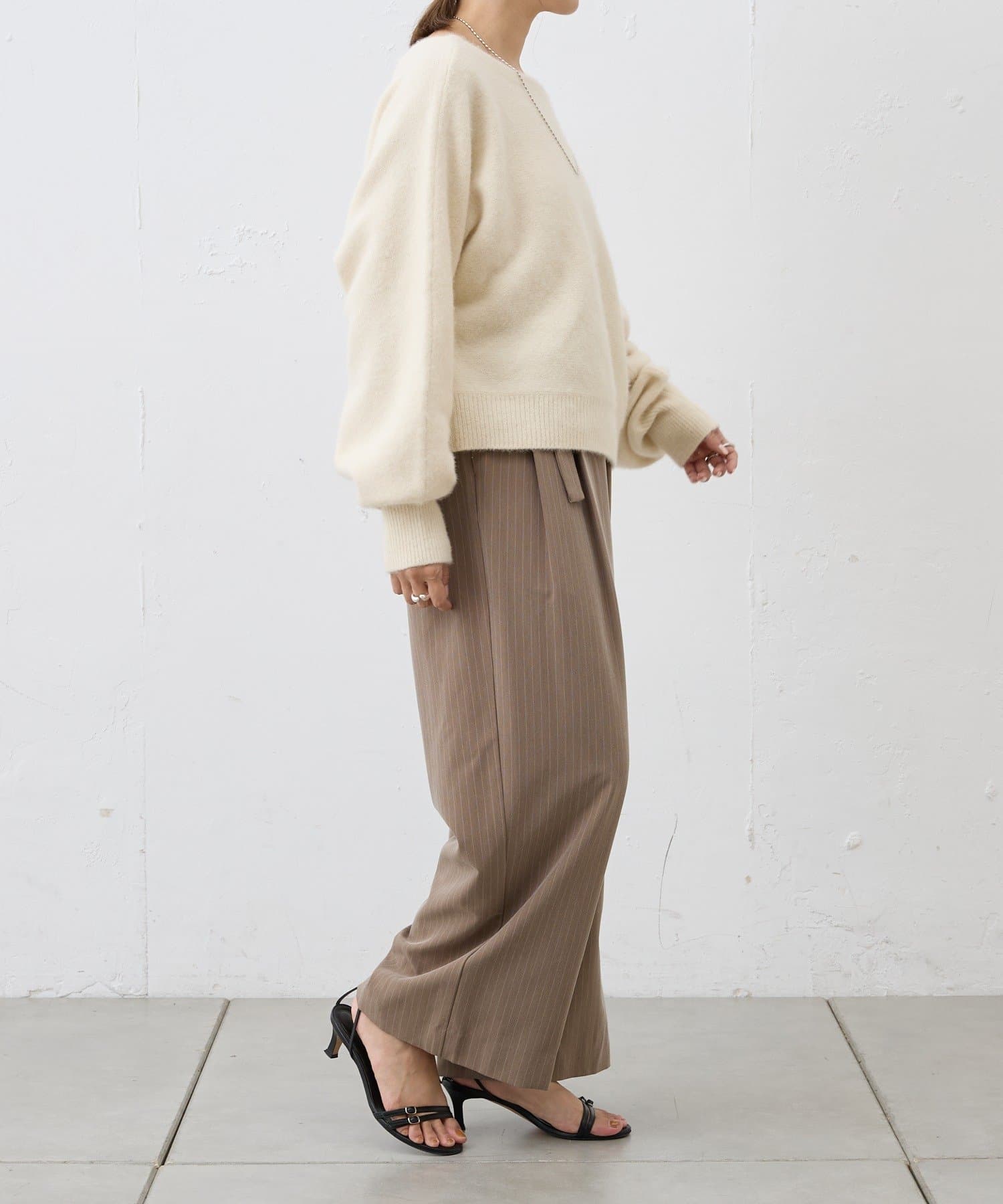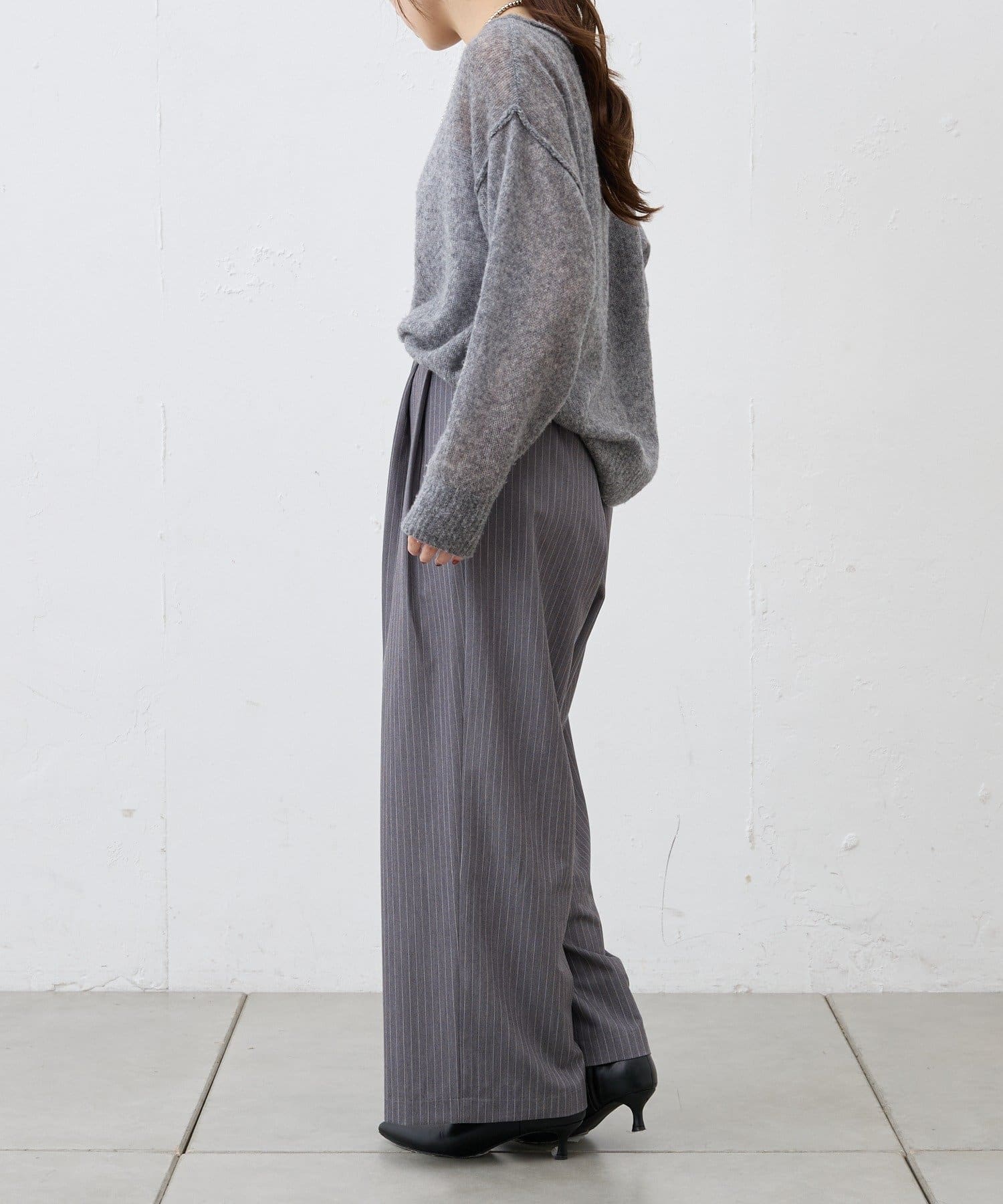 【期間限定10%OFF!タイムセール10/28(火)まで】【腰高美人パンツ】ダブルタックストライプワイドパンツ
