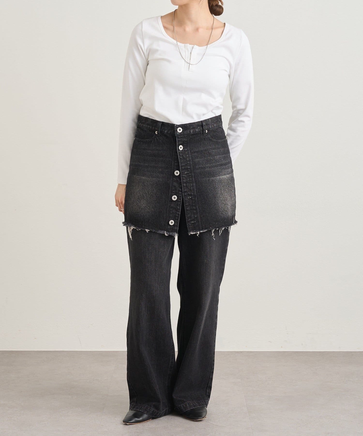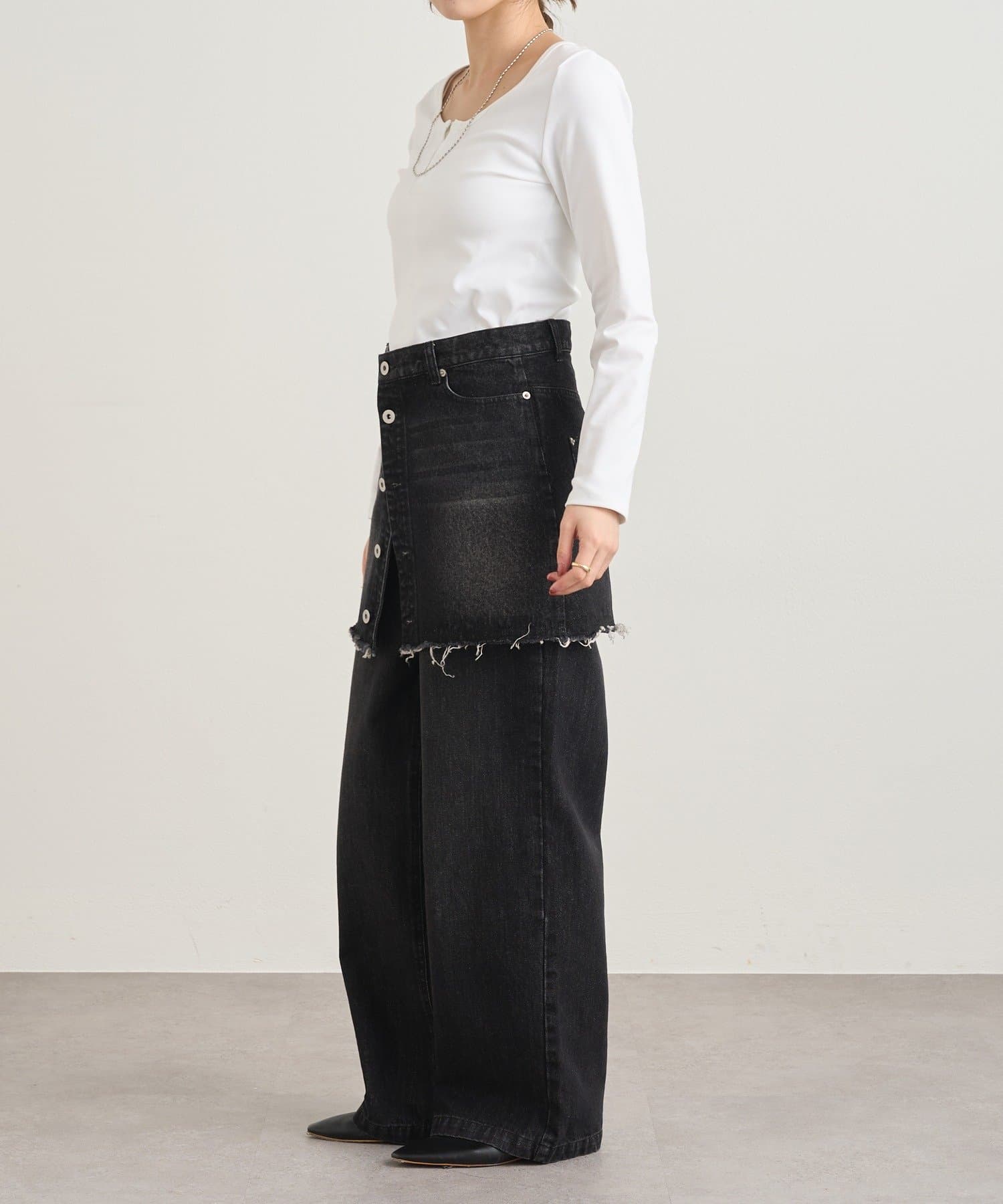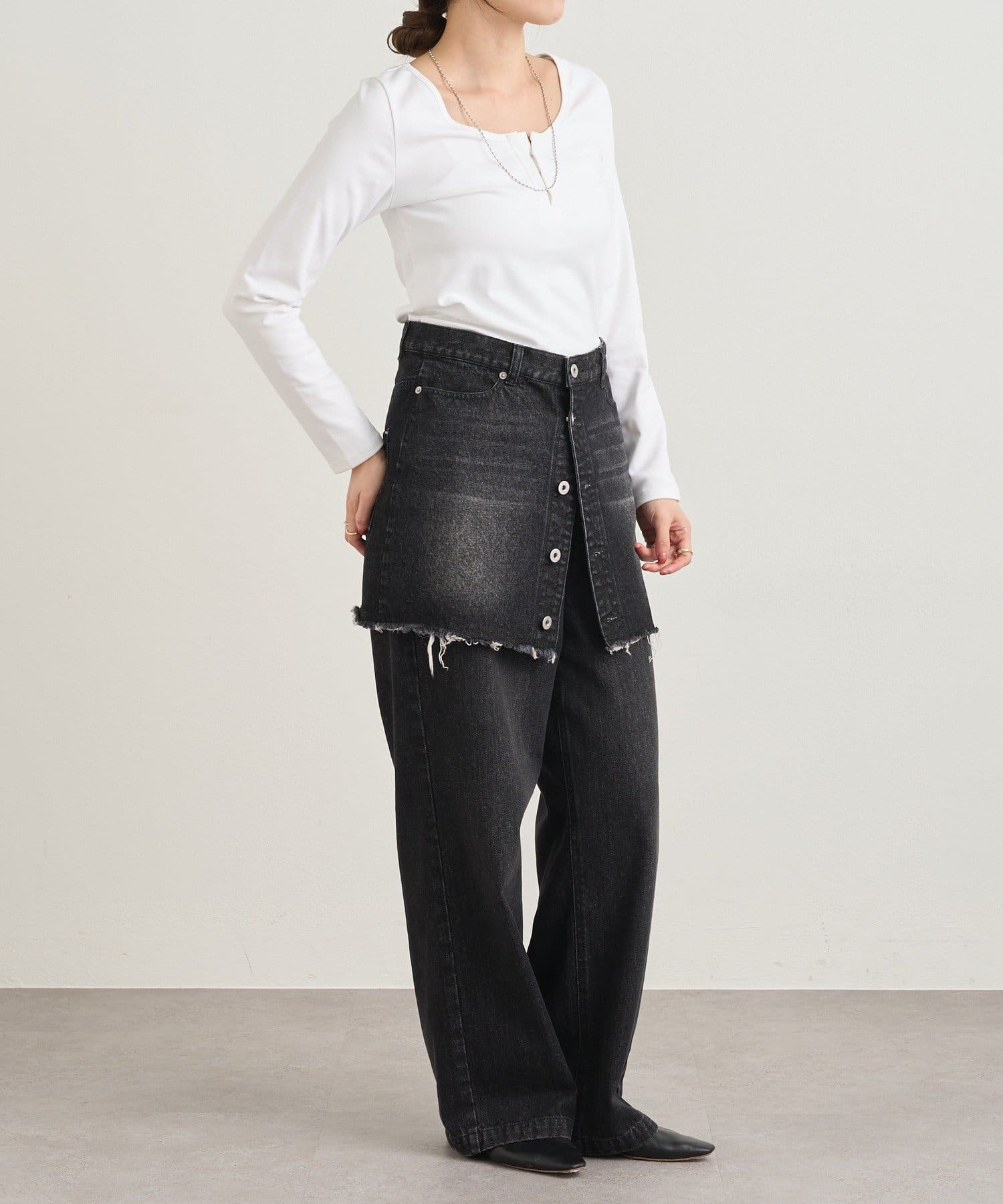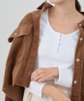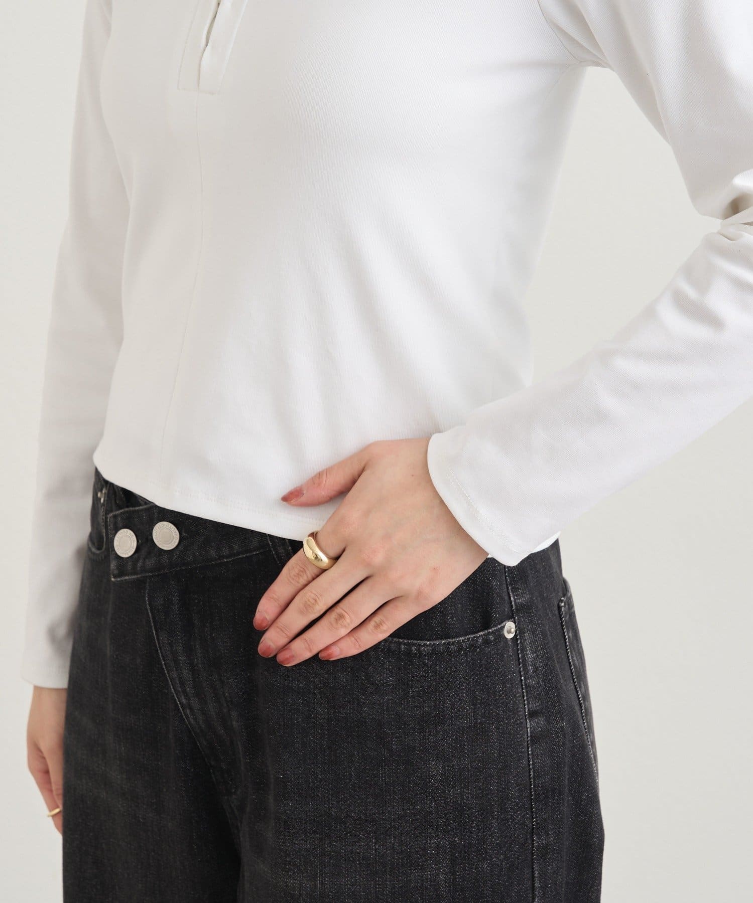 フロントのホックがアクセントになり、カジュアルな中にも大人っぽい雰囲気をプラスしてくれます。