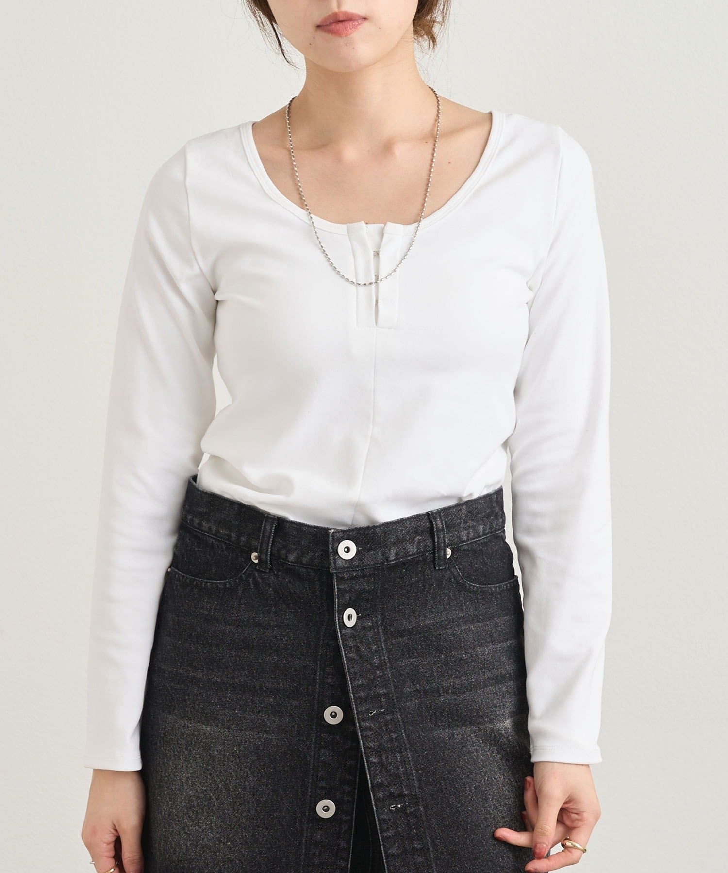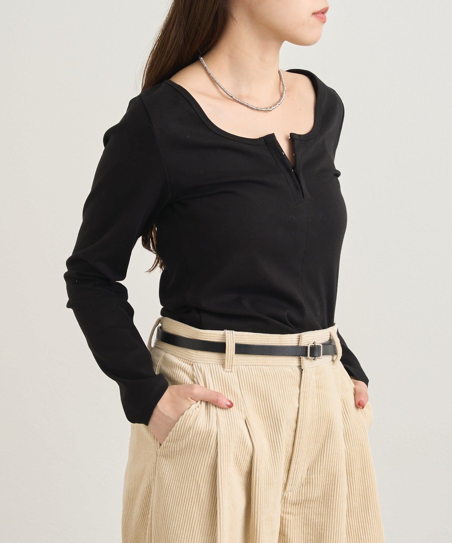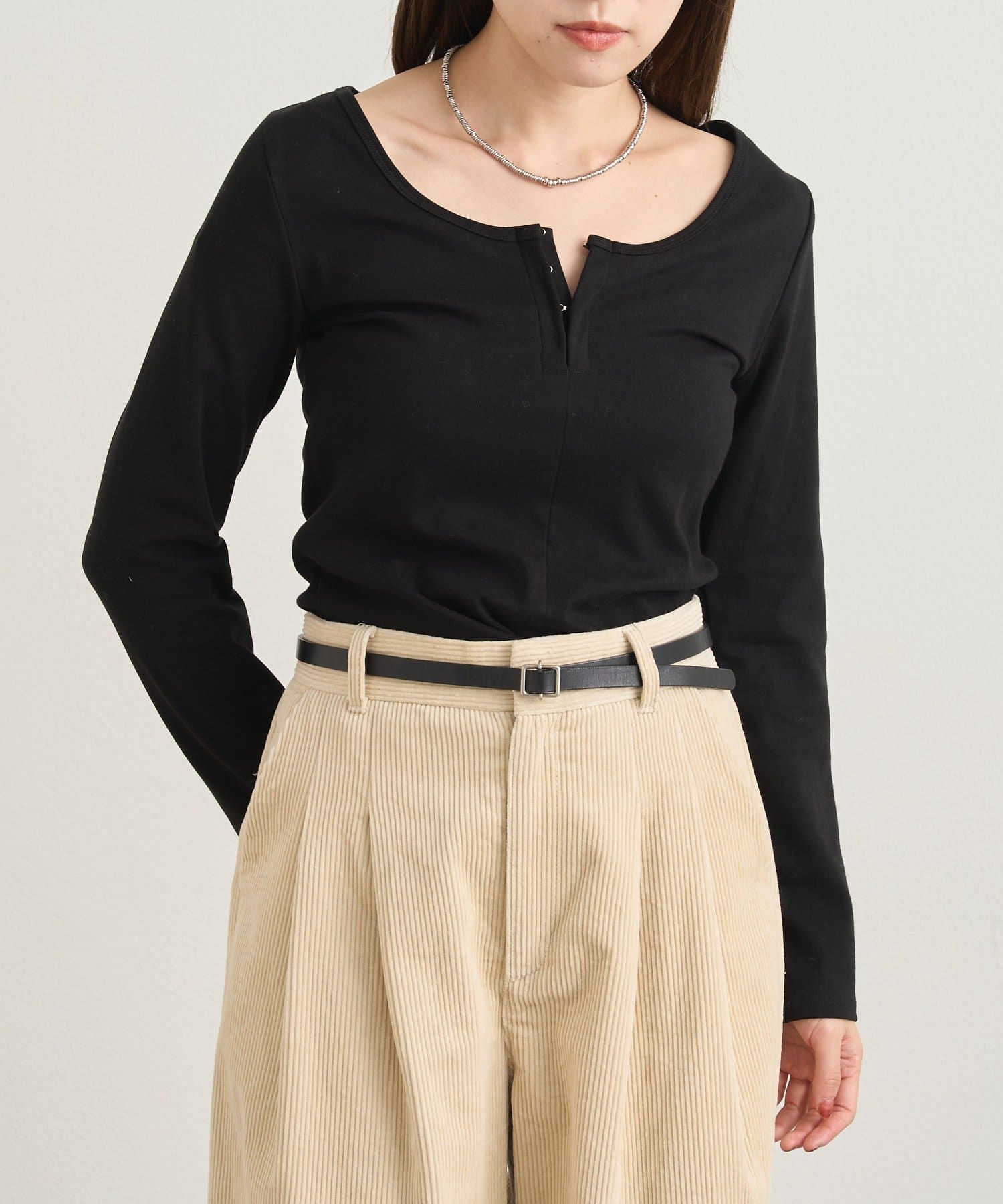 一枚で着るのはもちろん、ジャケットやカーディガンのインナーとしても活躍します。