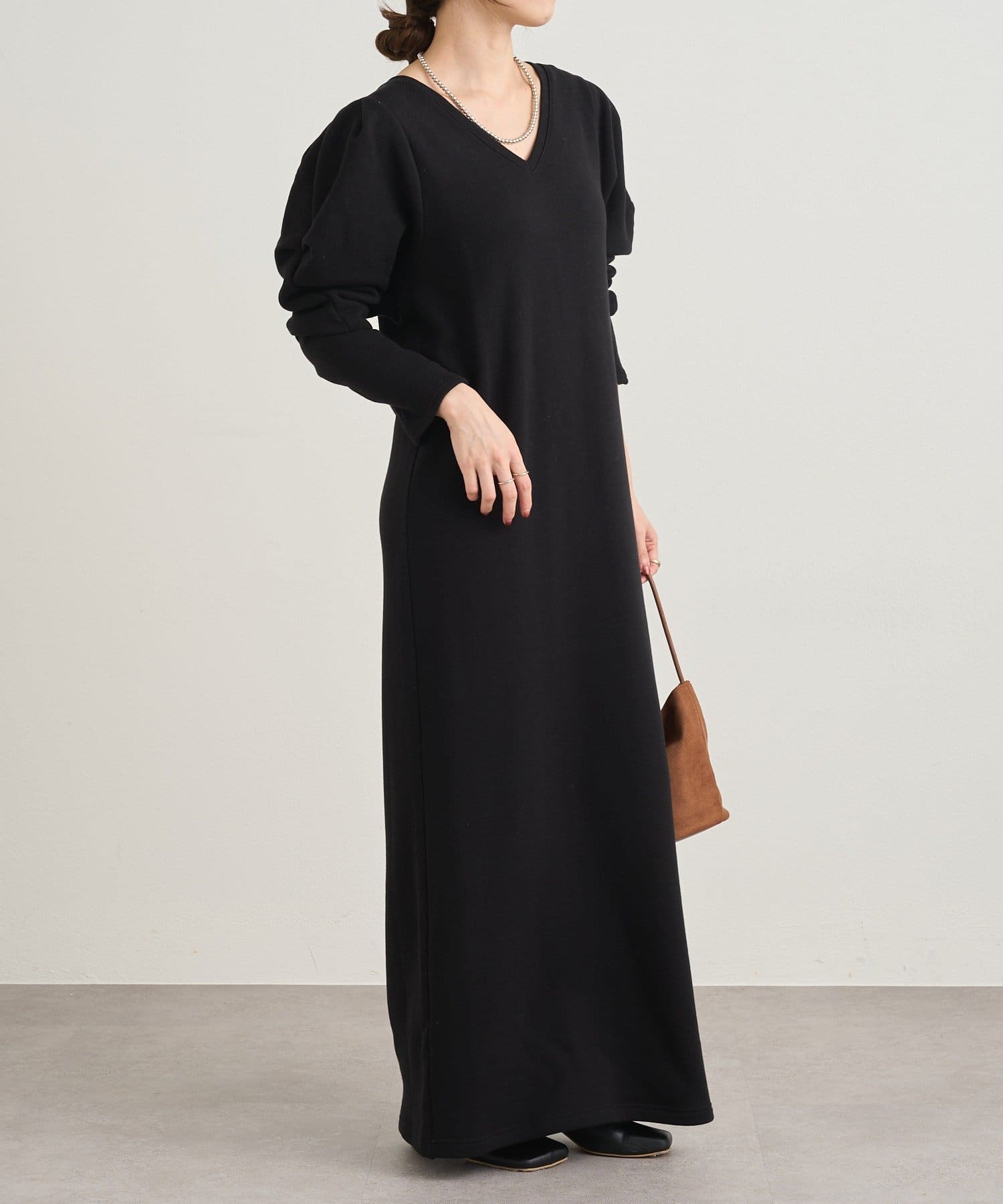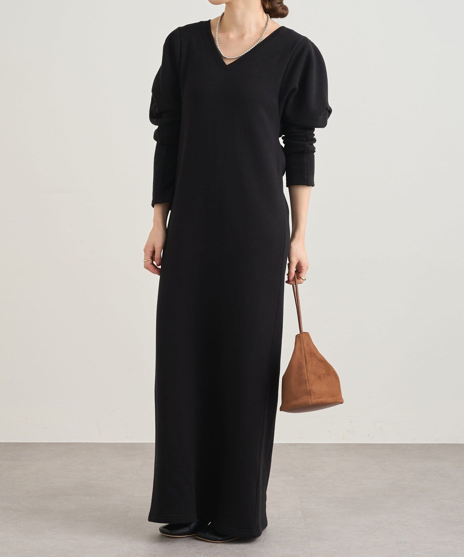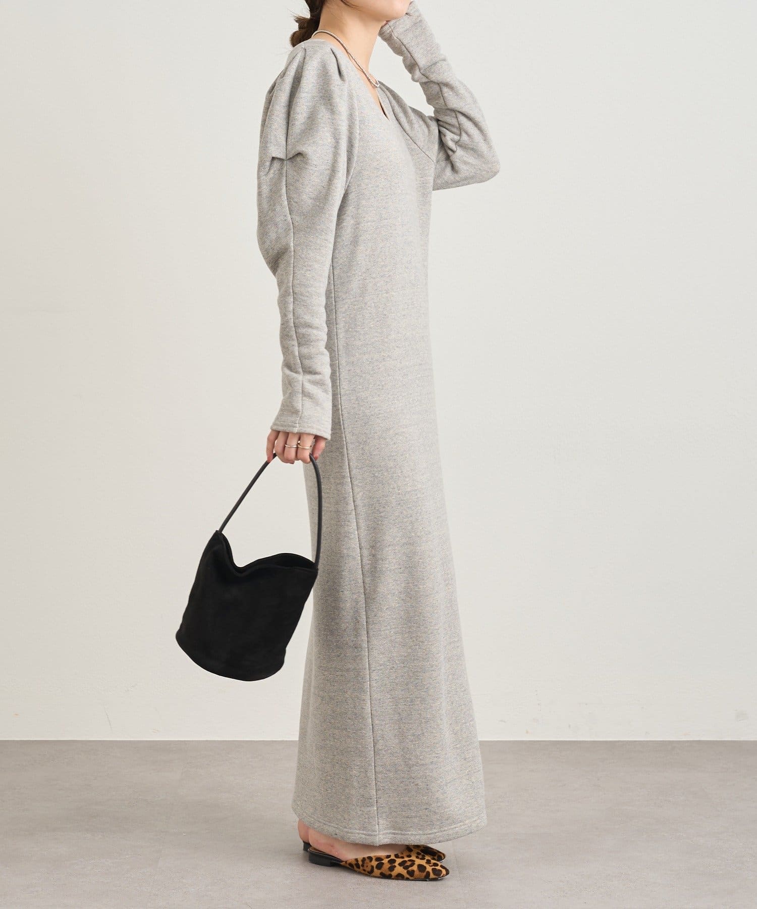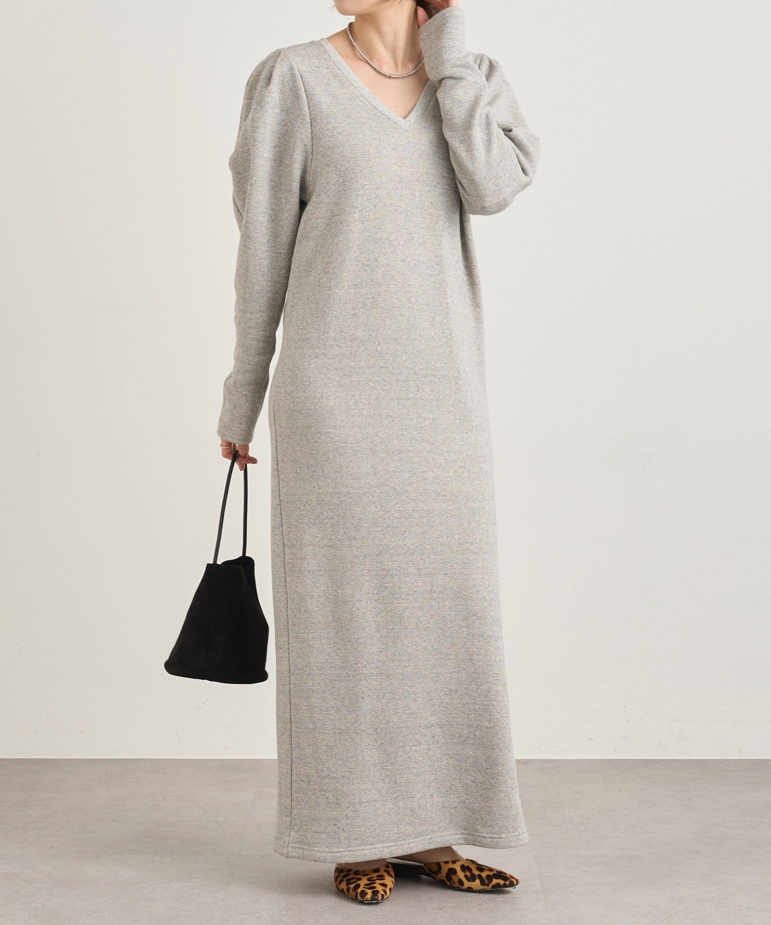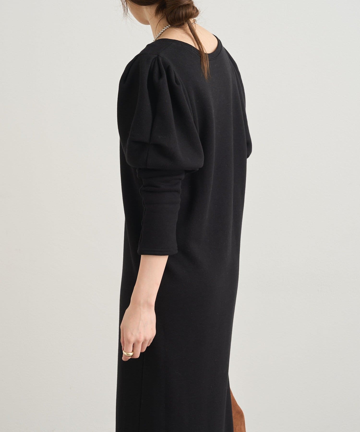 ボリュームスリーブがポイント!1枚で着映えするスウェットワンピース。