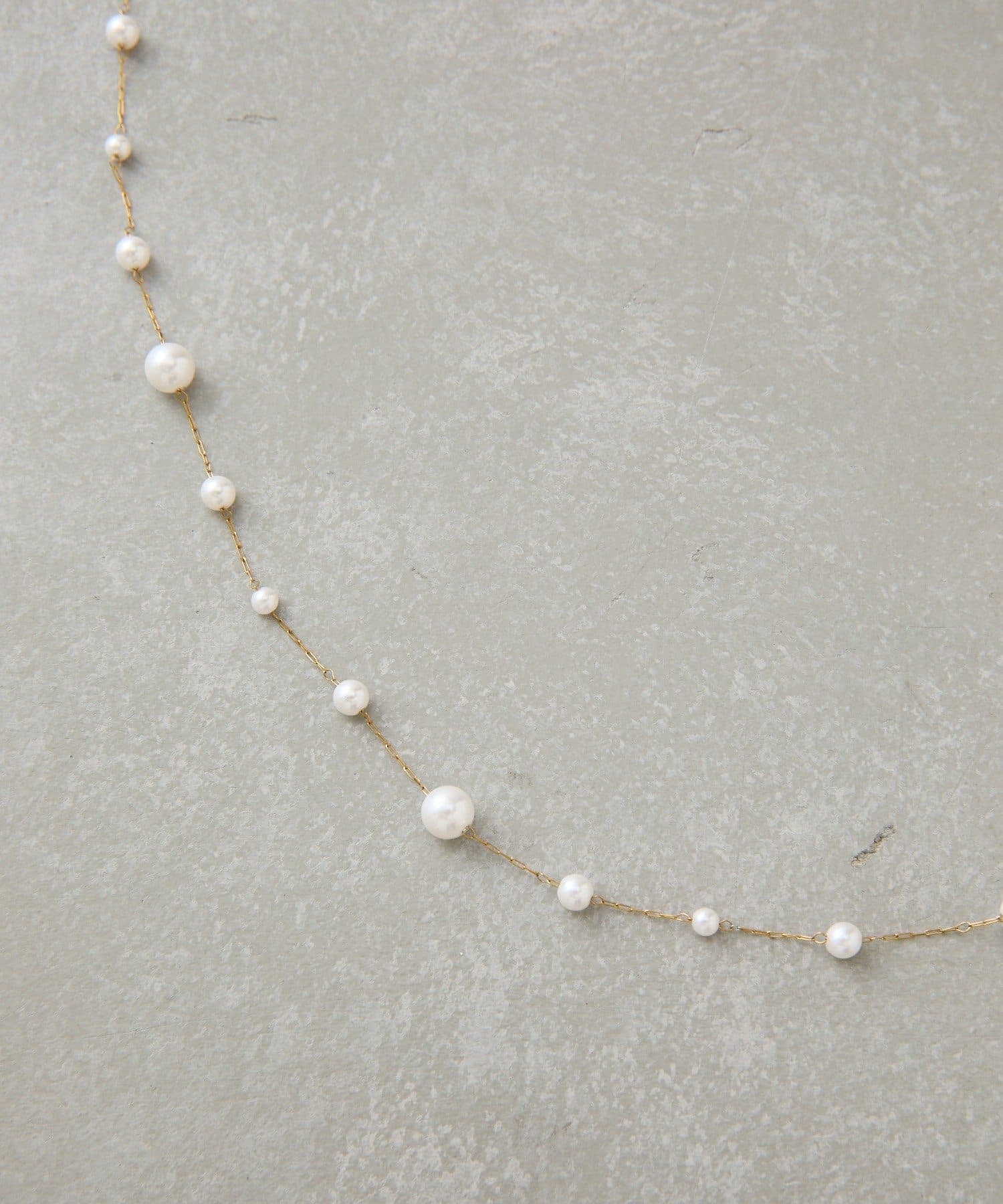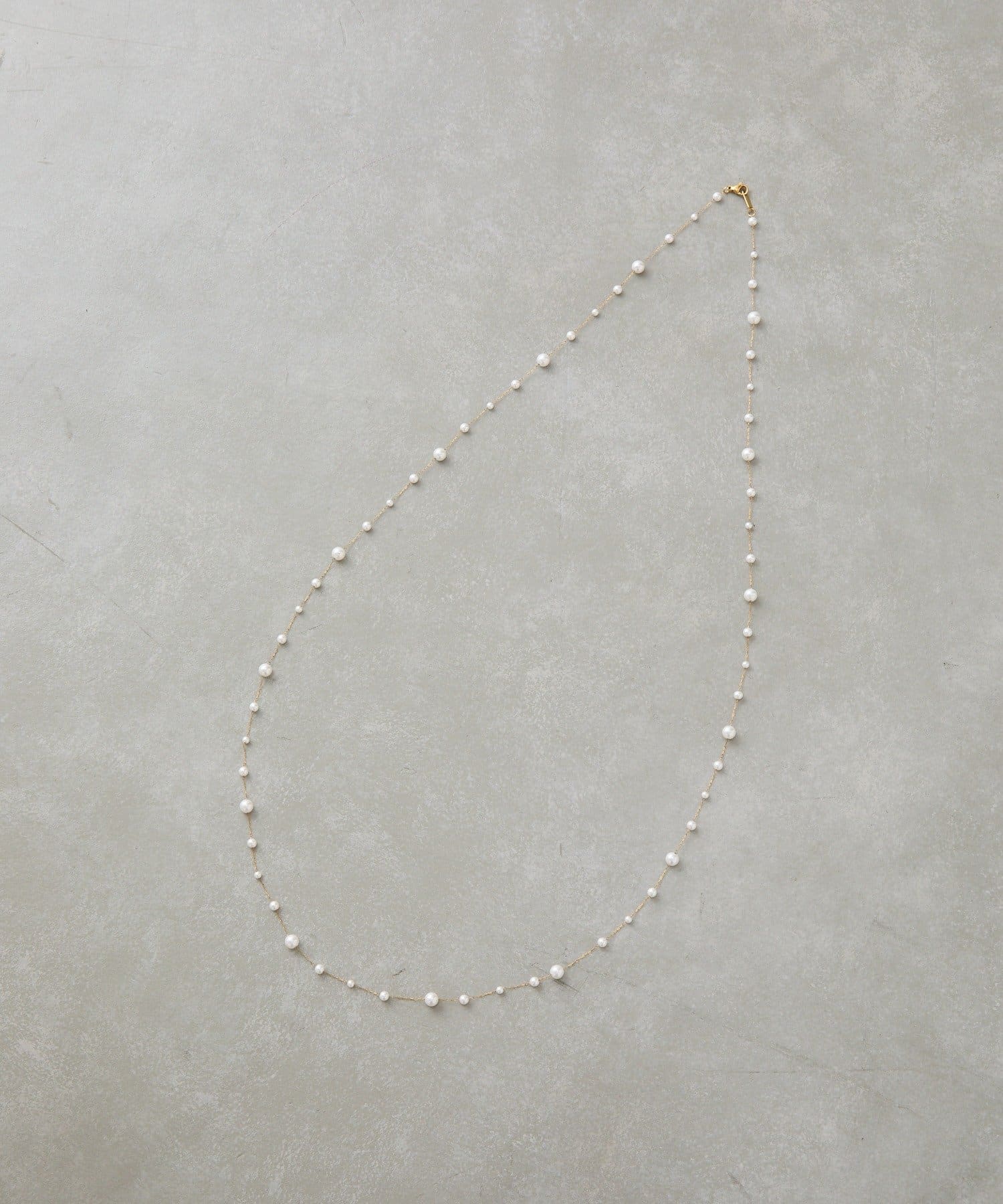 繊細な細いチェーンに小さなパールが散りばめられたデザインのネックレス。