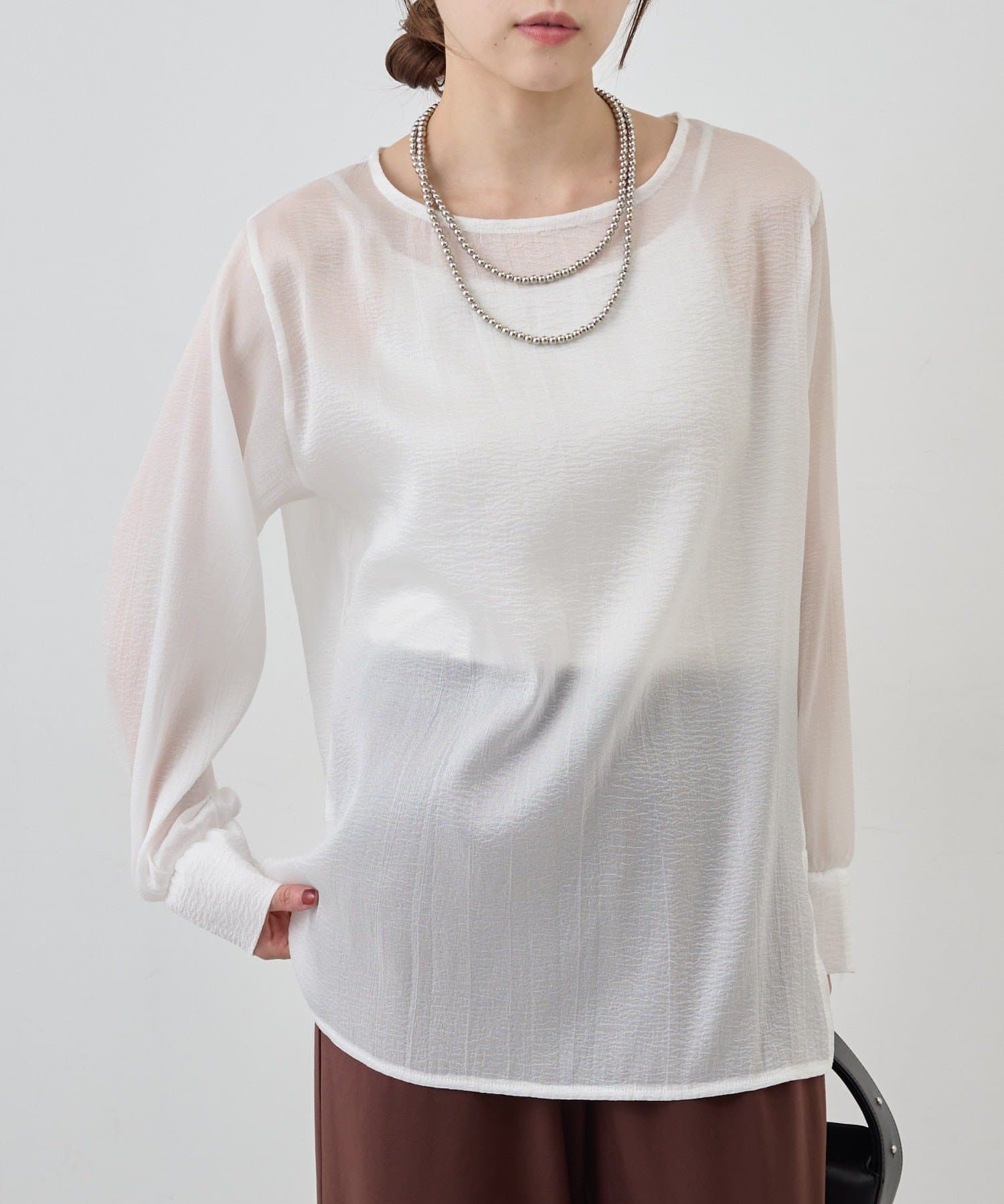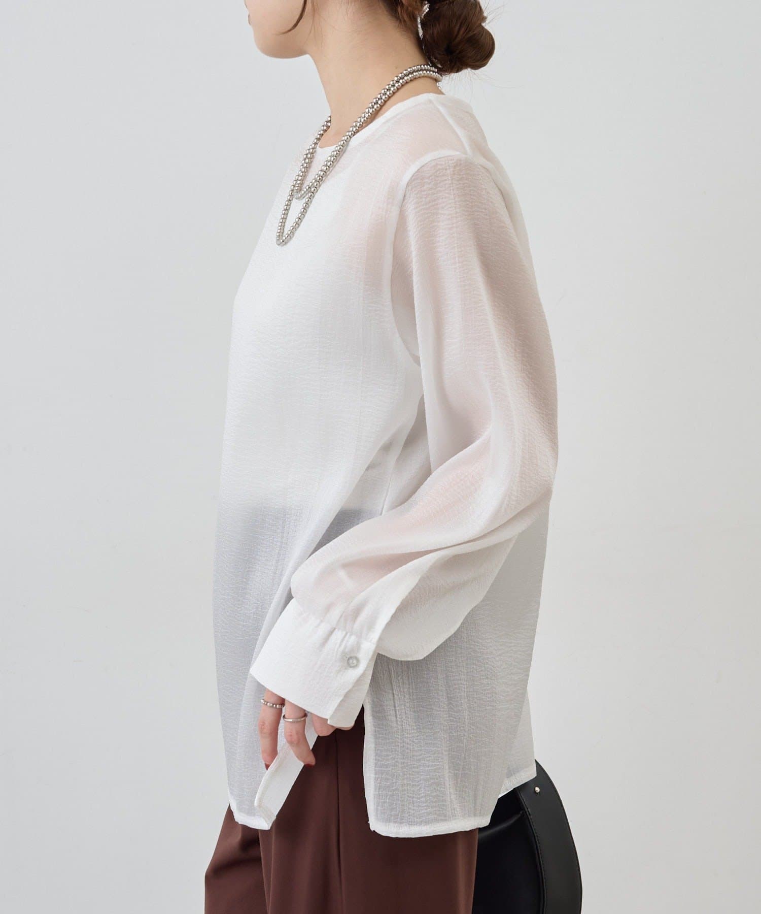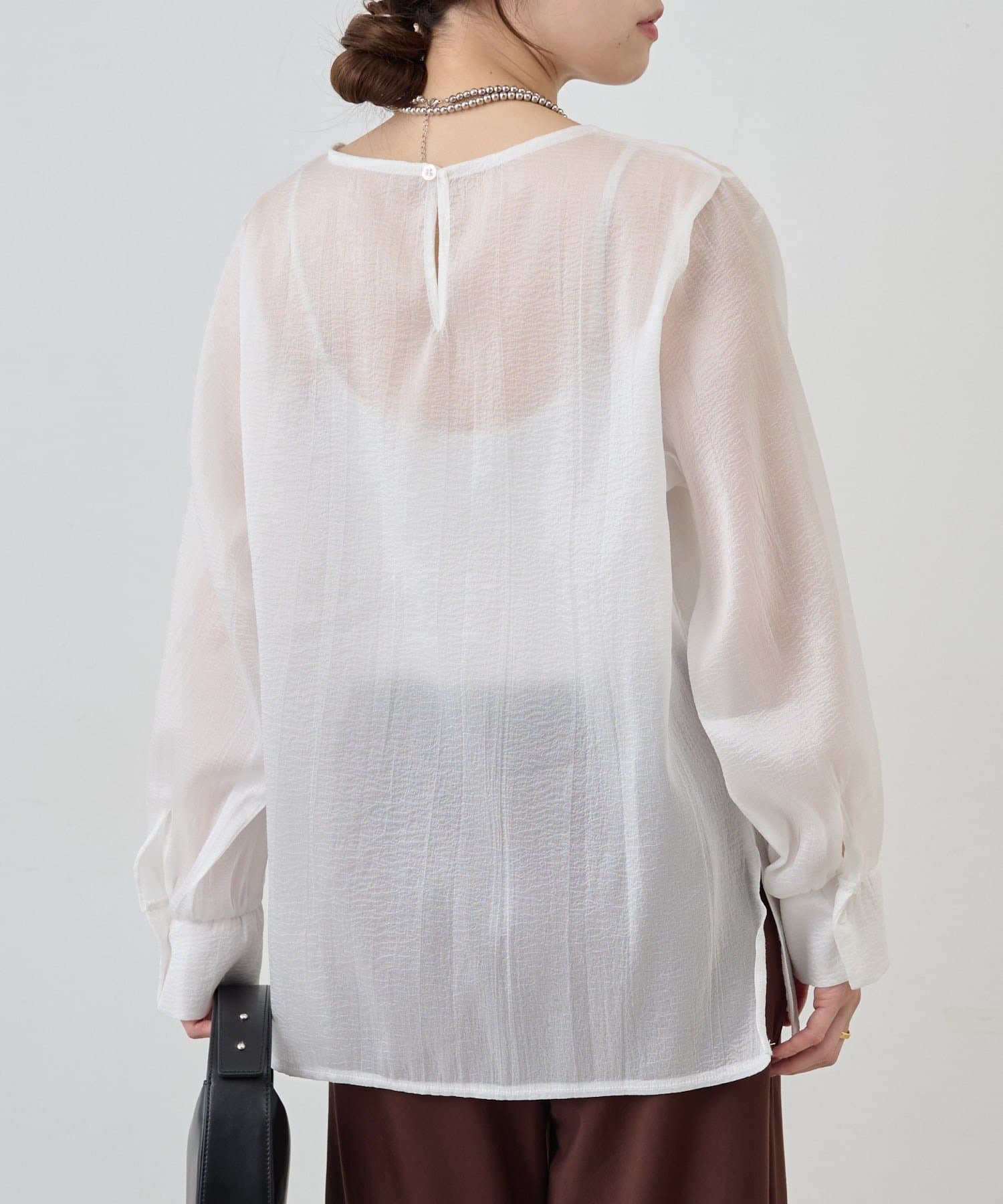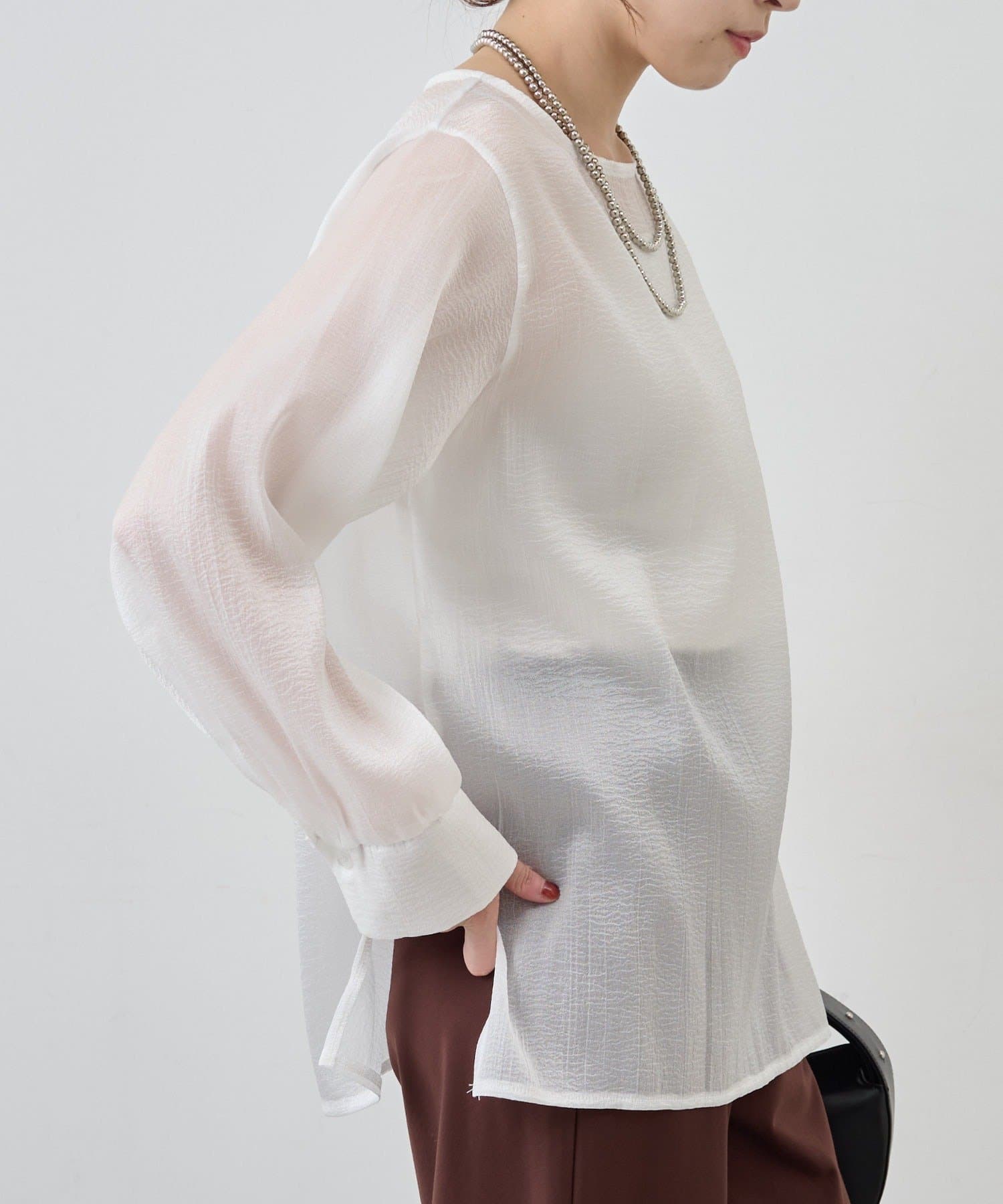 軽やかなシアー素材が魅力のチュニックブラウス。