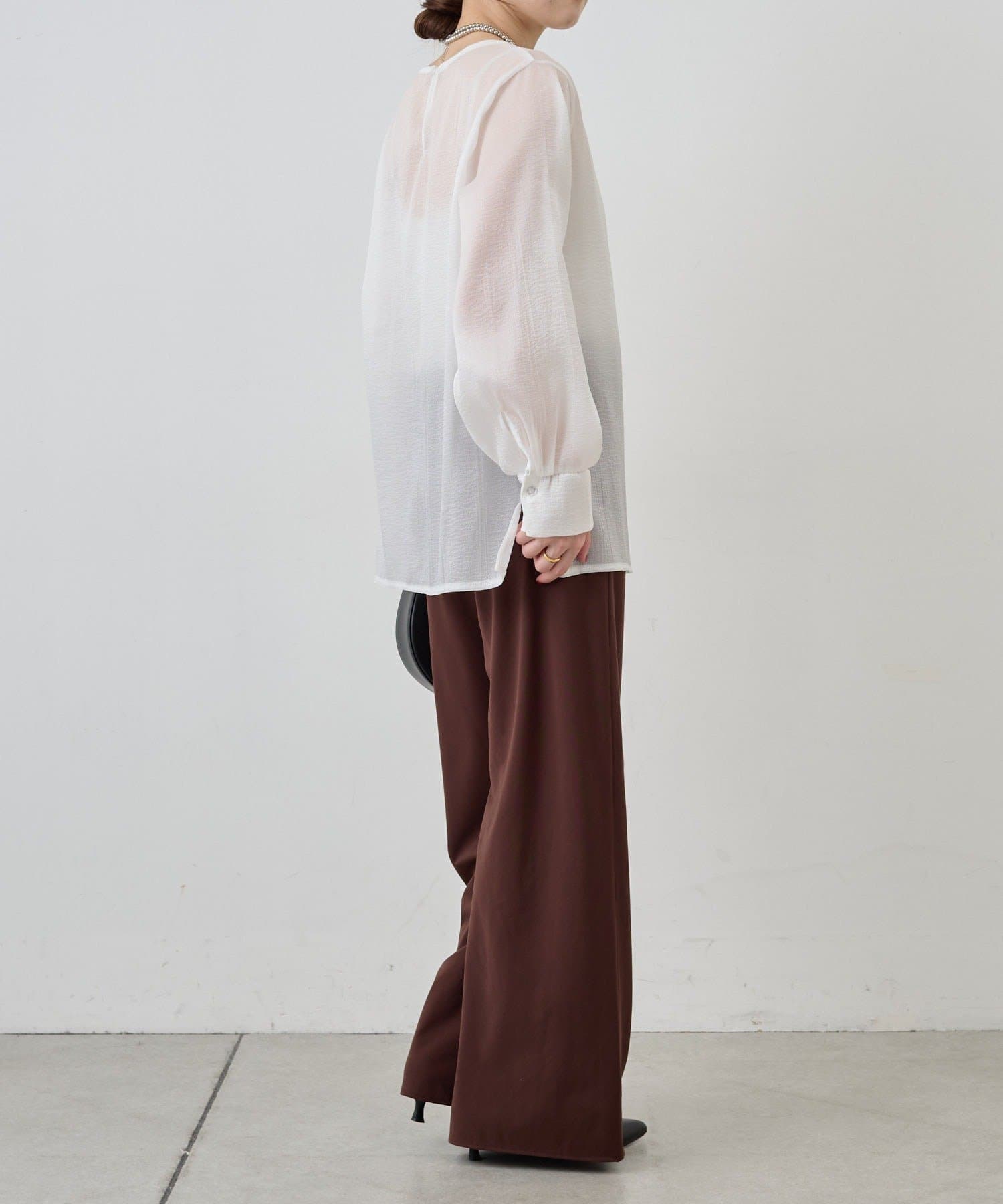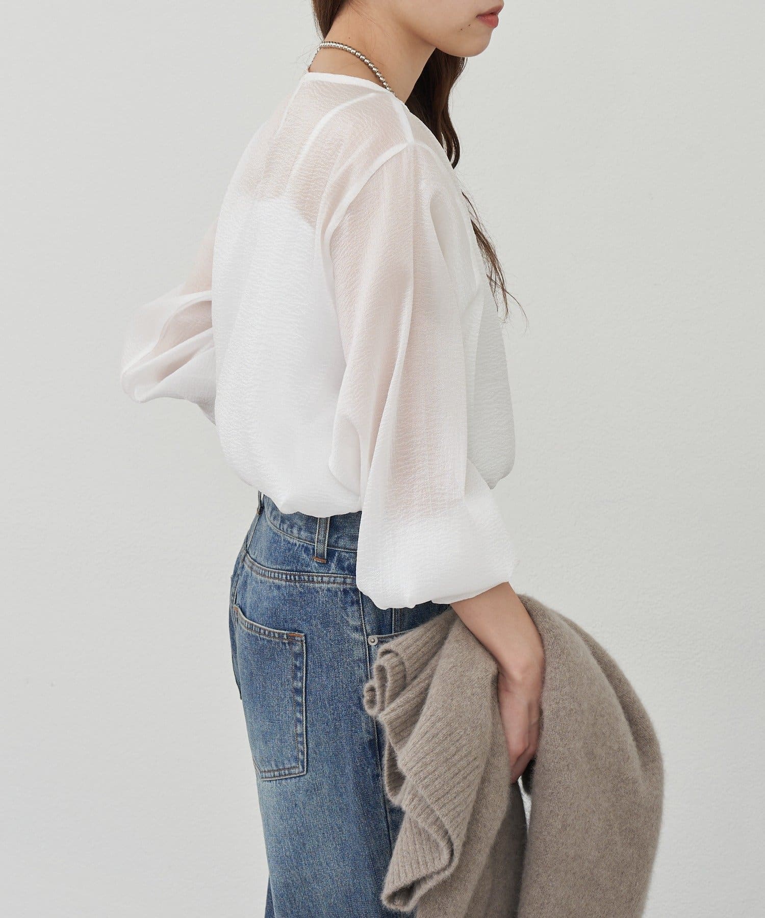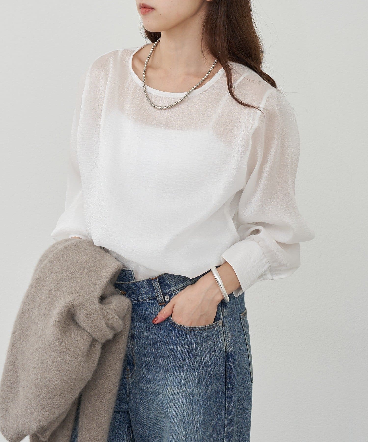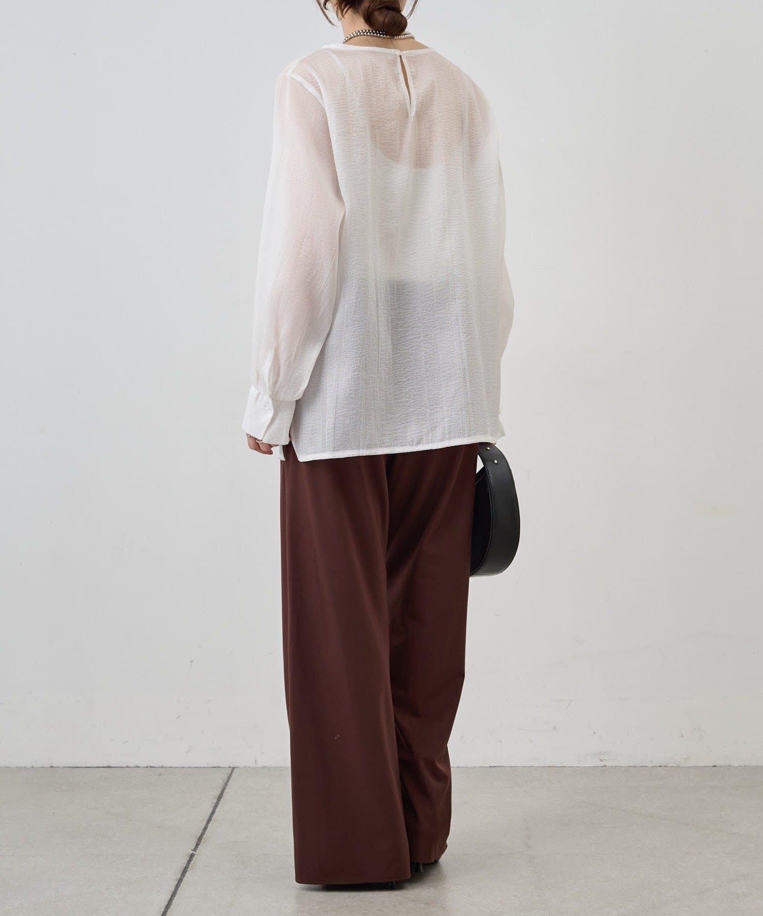 軽やかなシアー素材が魅力のチュニックブラウス。