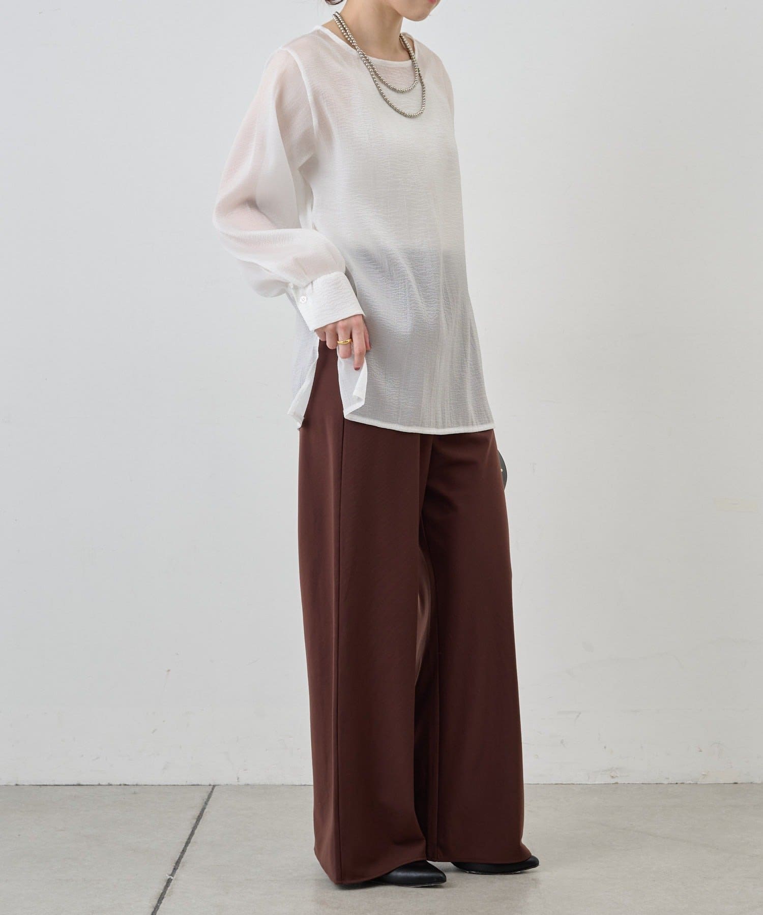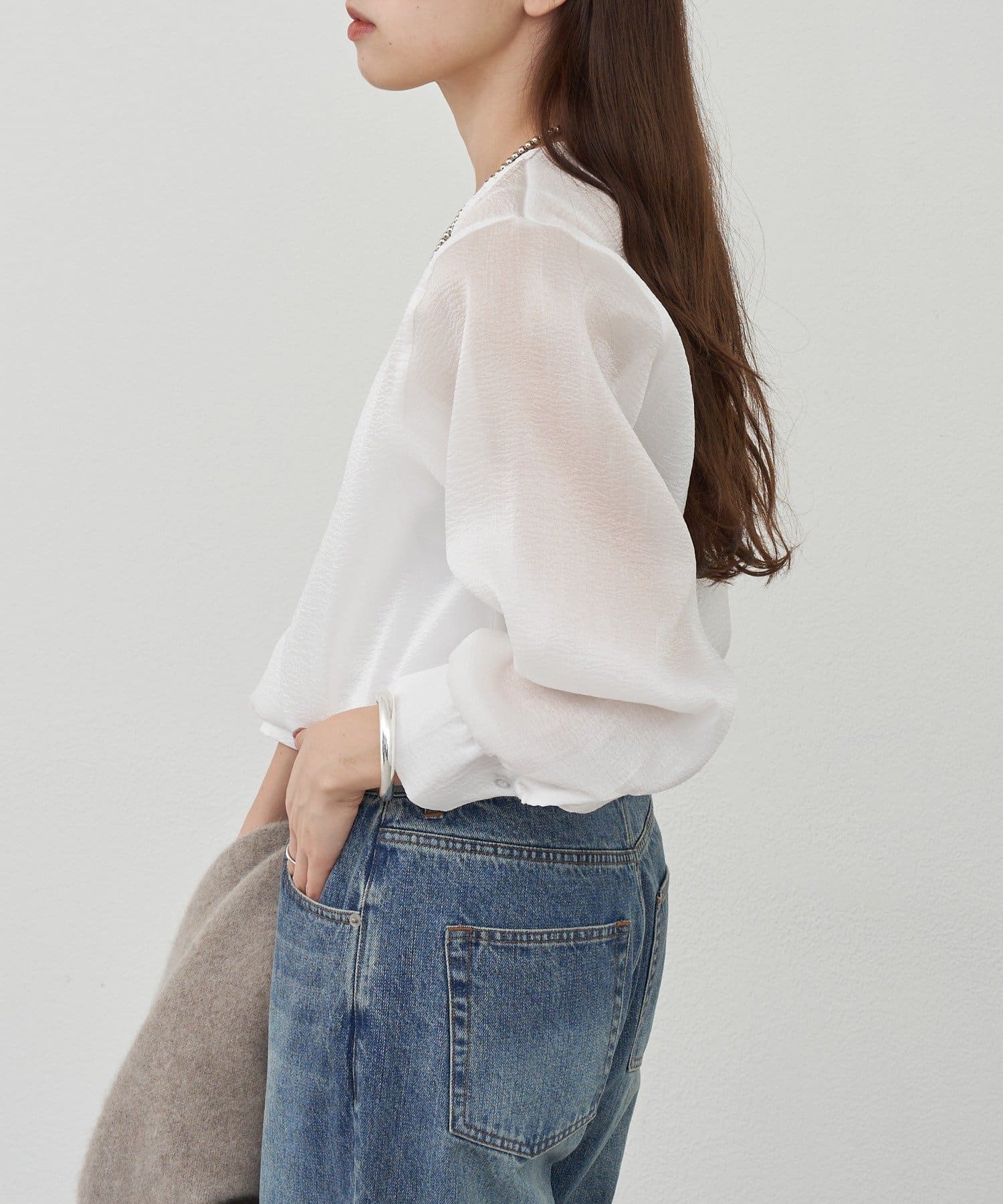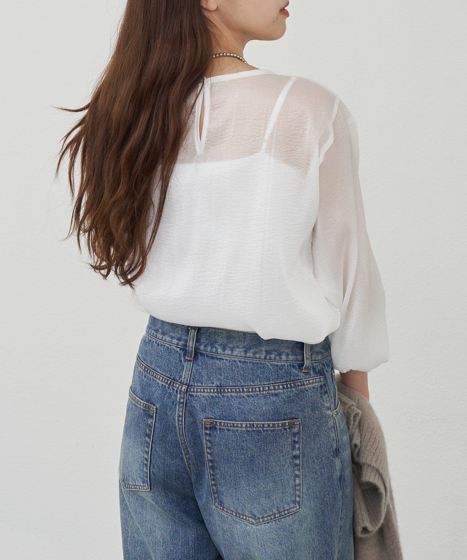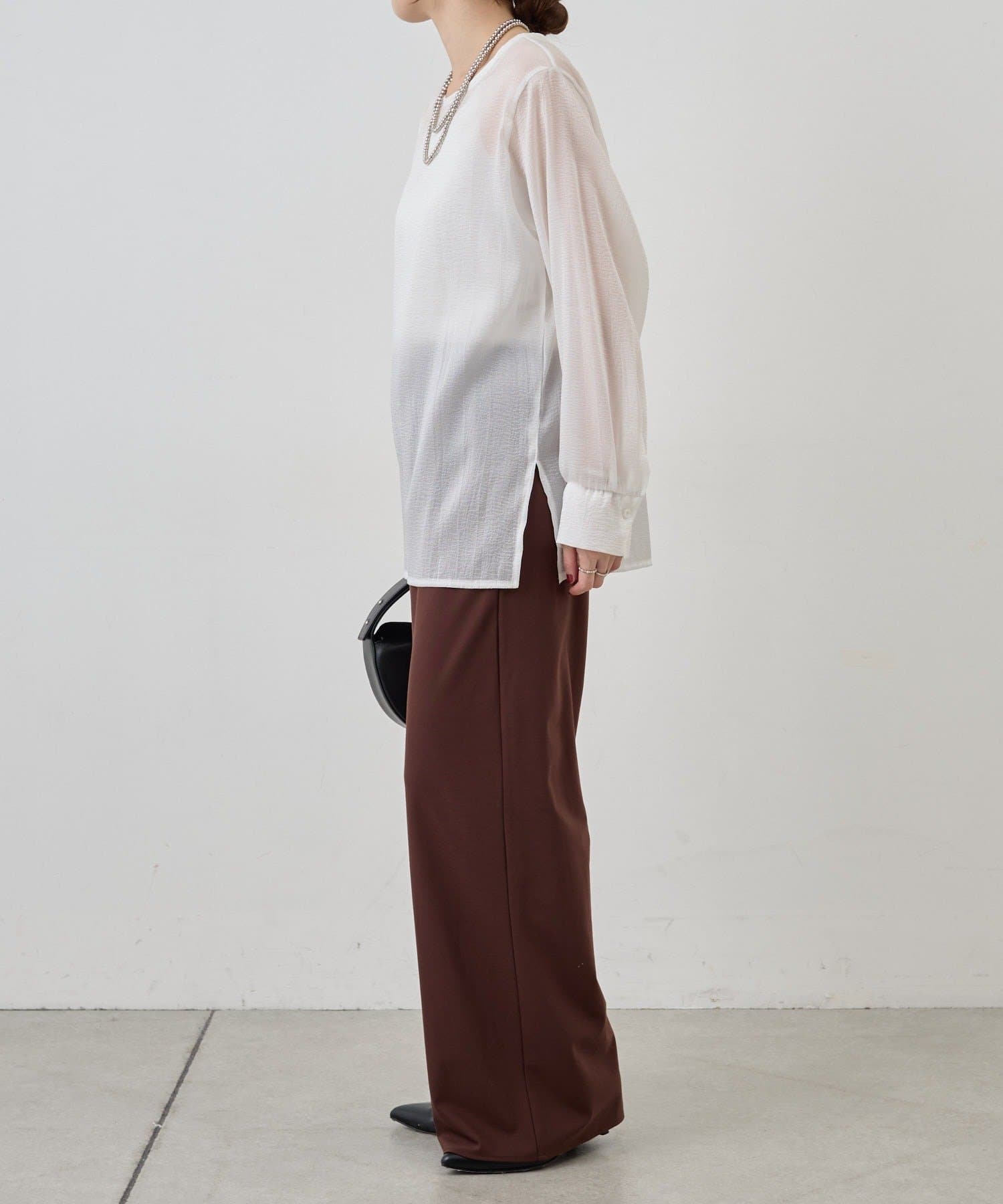 軽やかなシアー素材が魅力のチュニックブラウス。