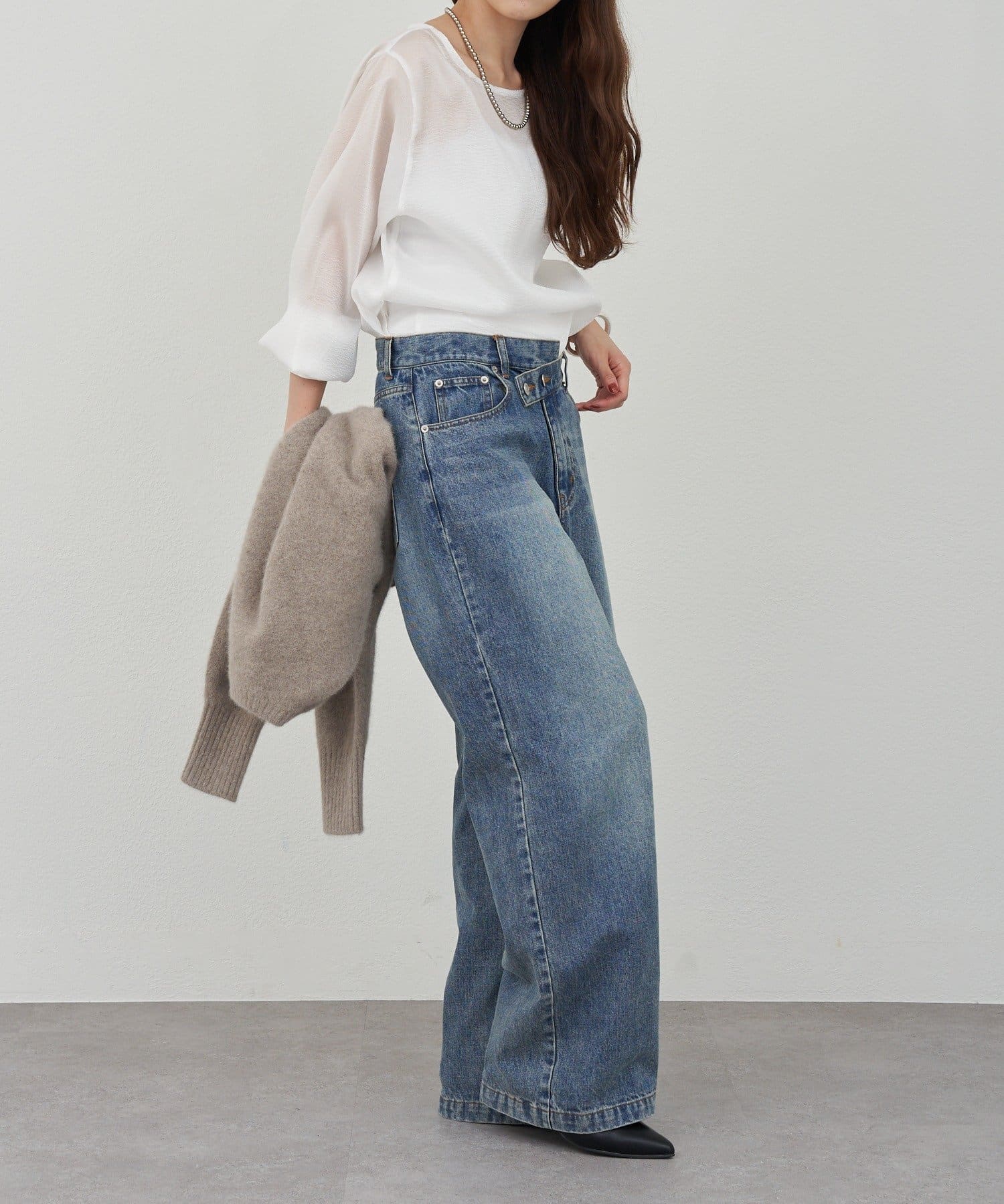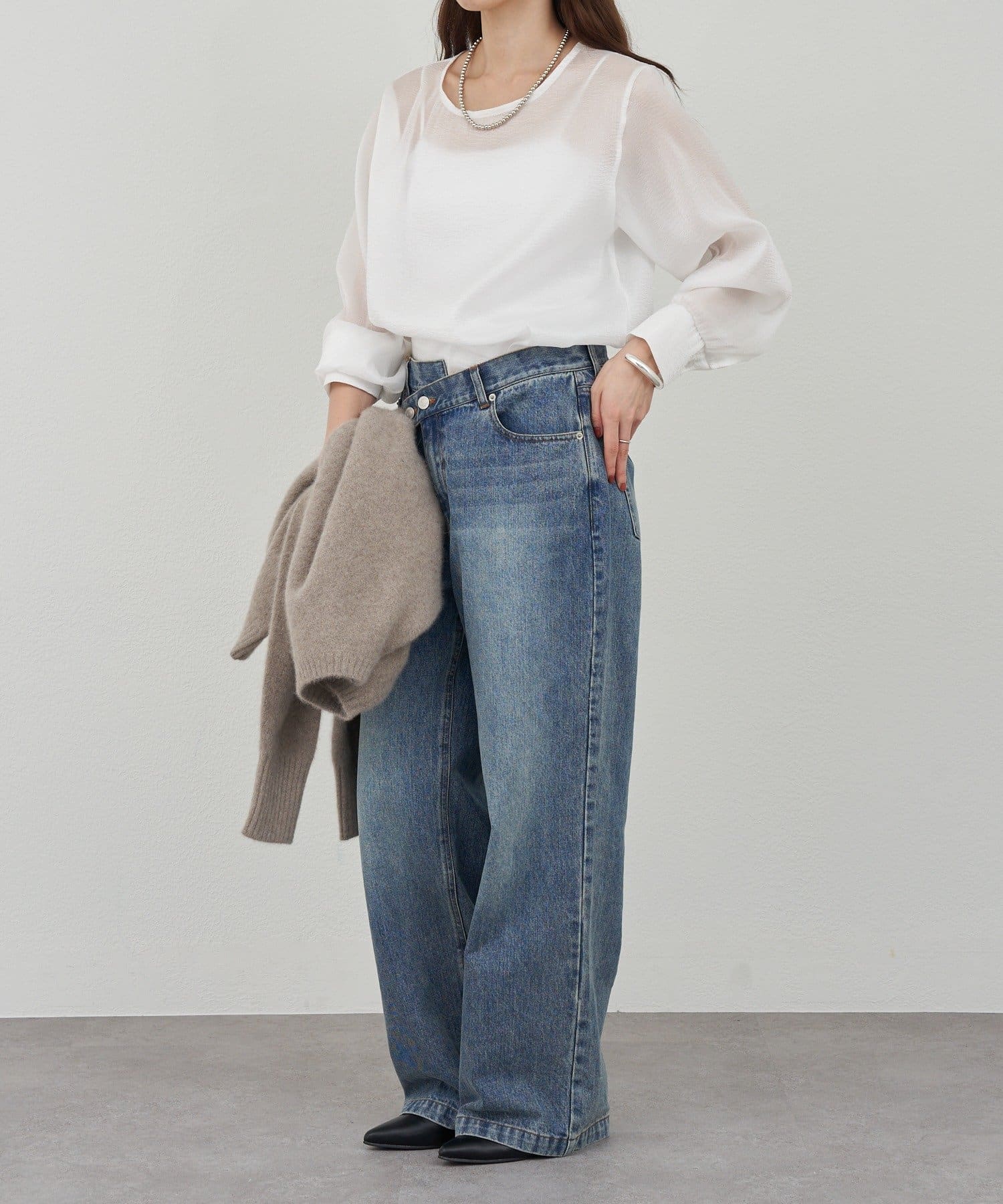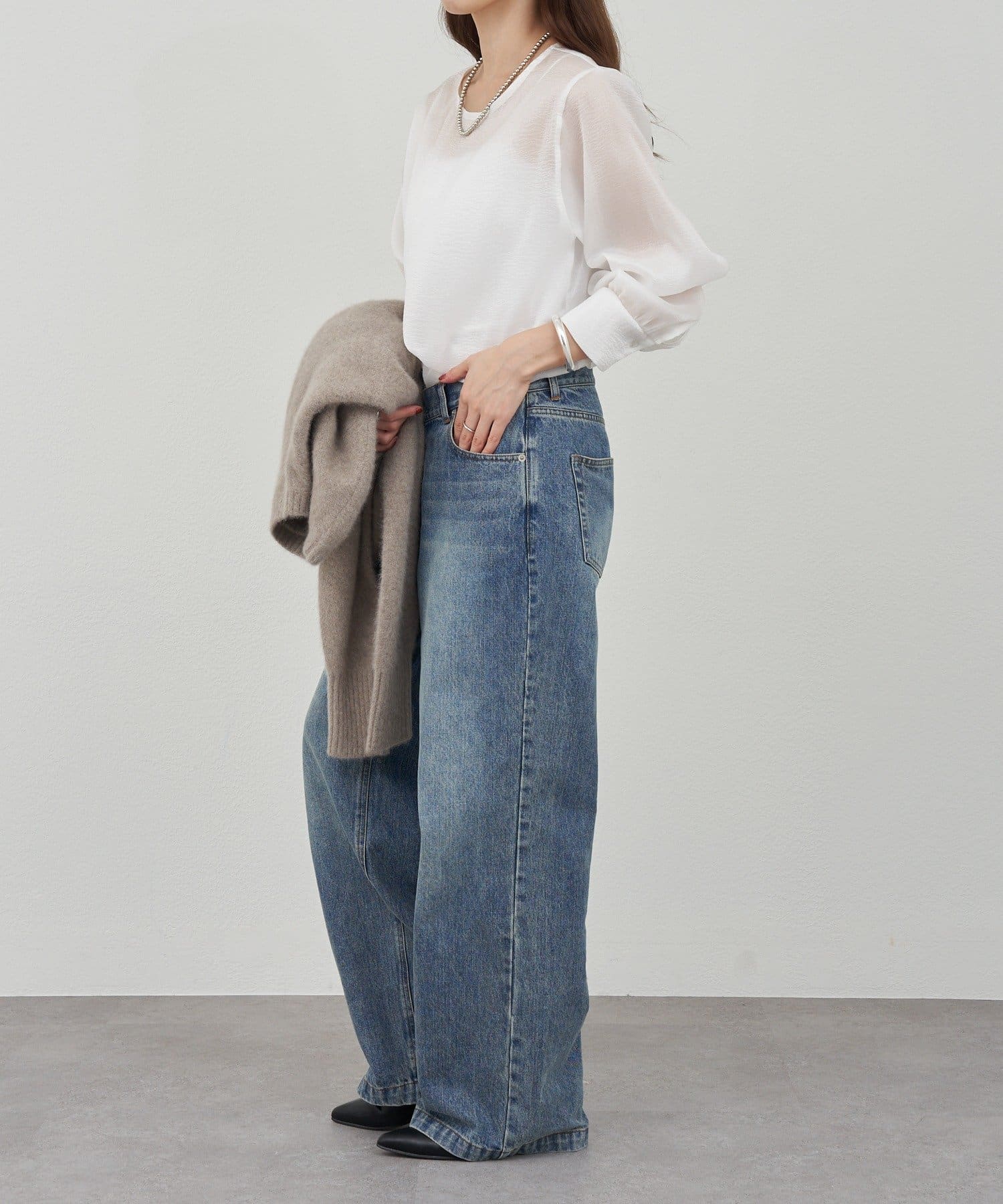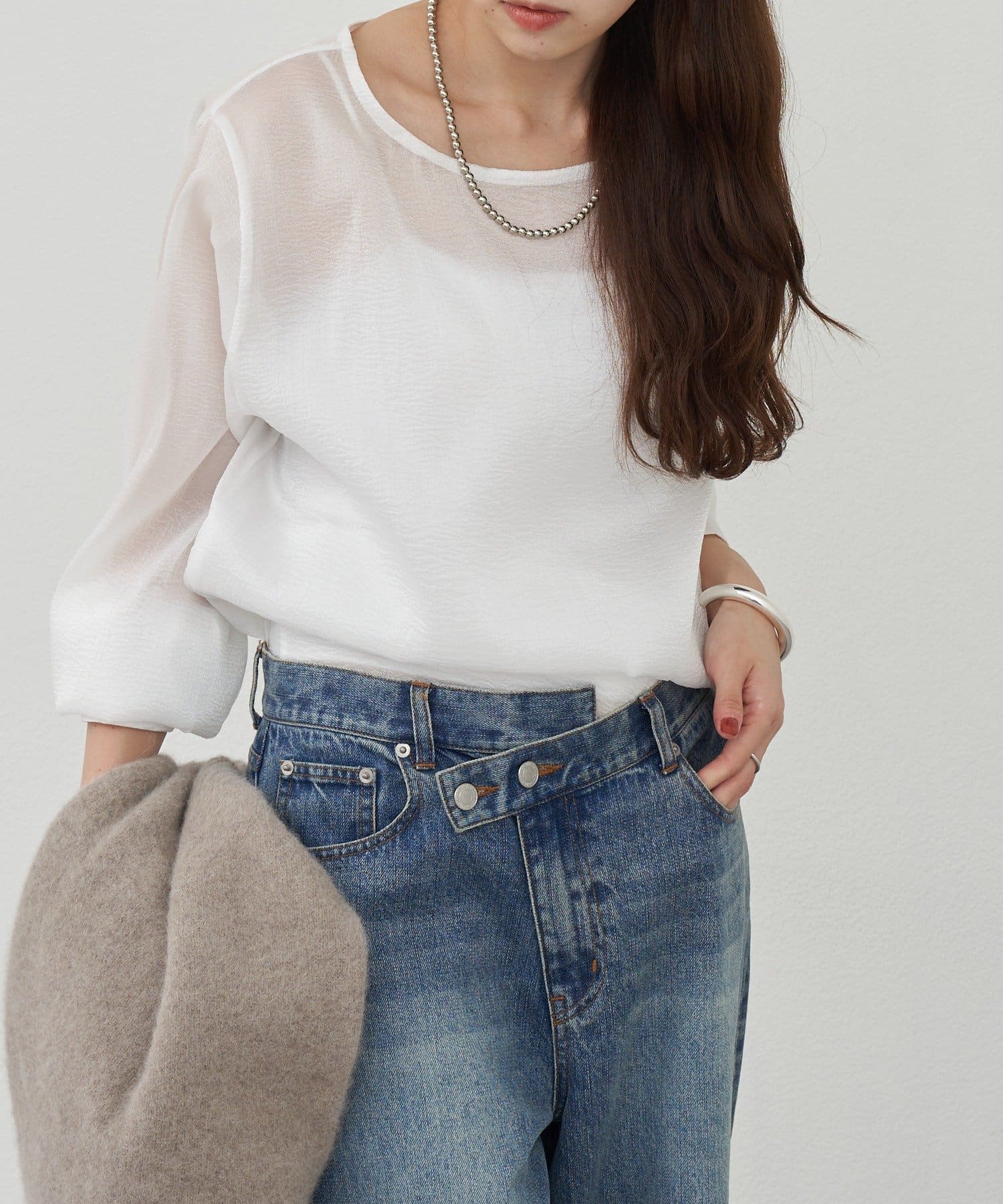 軽やかなシアー素材が魅力のチュニックブラウス。