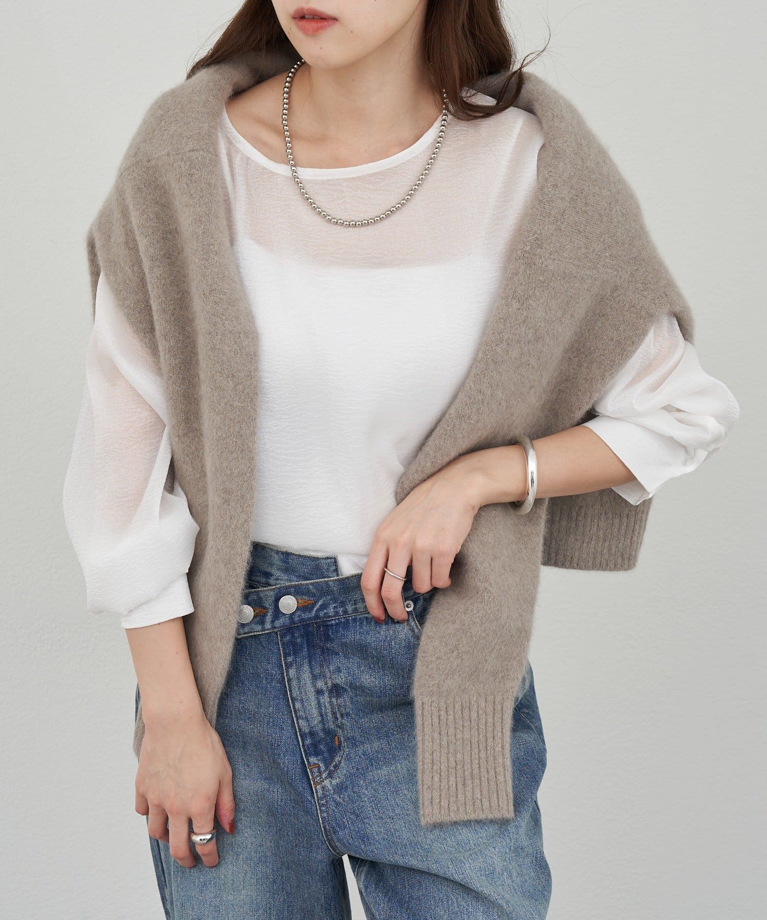秋口のレイヤードの着こなしにも映えること間違いなしの一枚です。