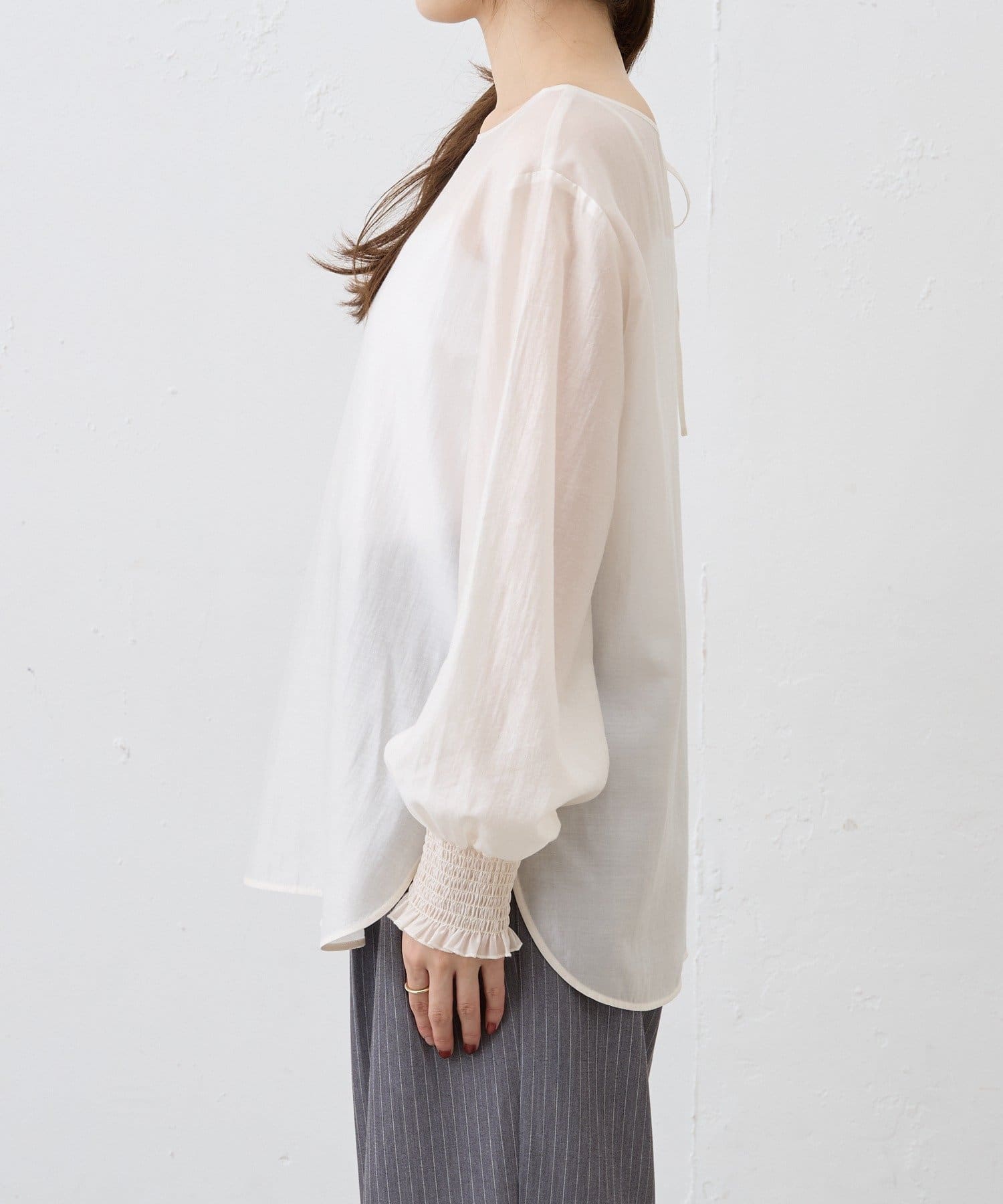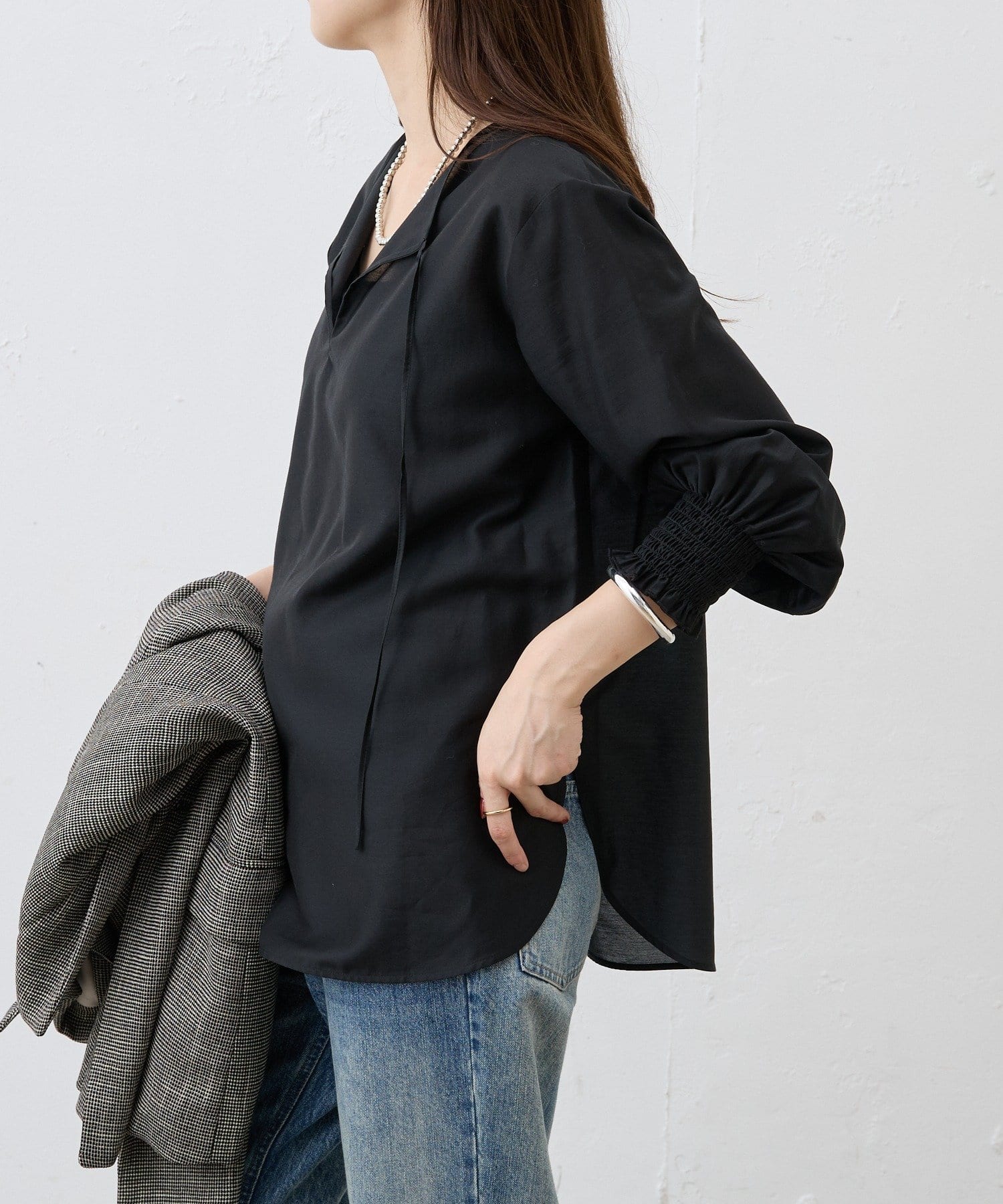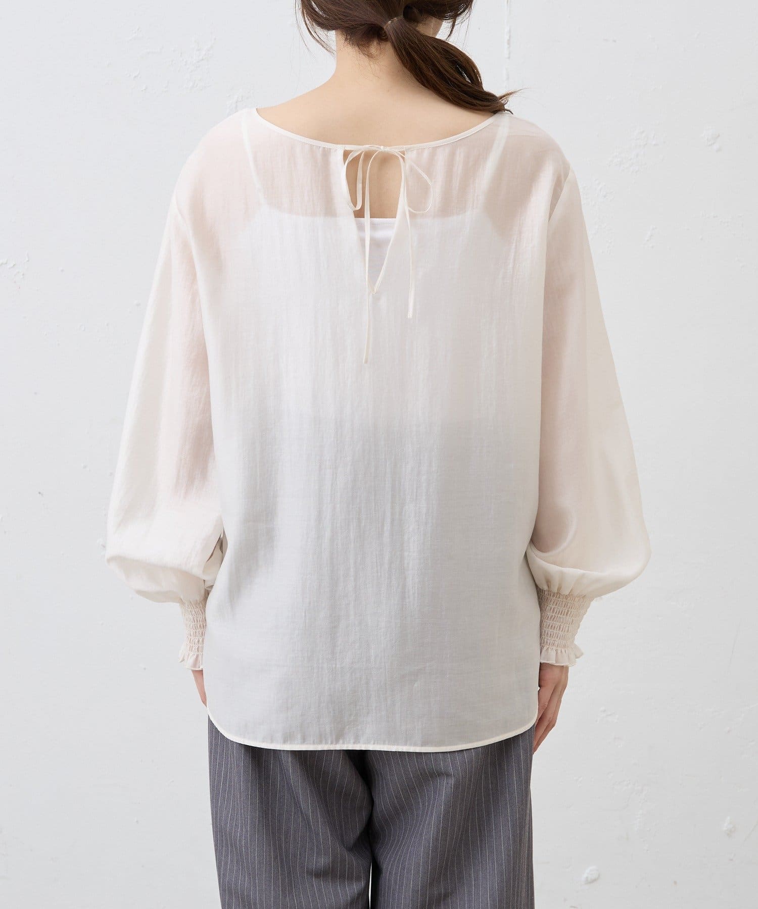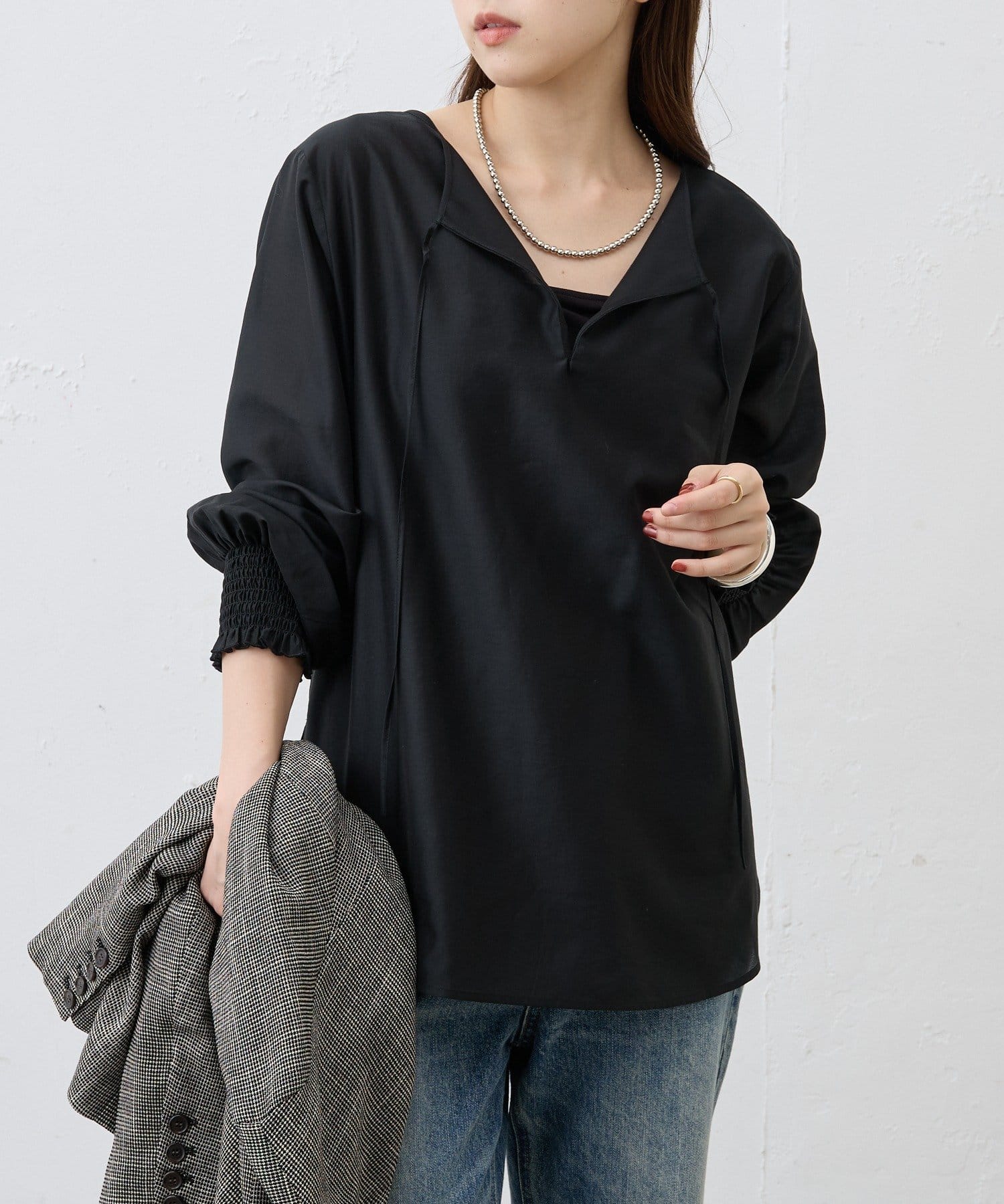ネックのデザインを変えていて、前後2WAYで着れるブラウス。