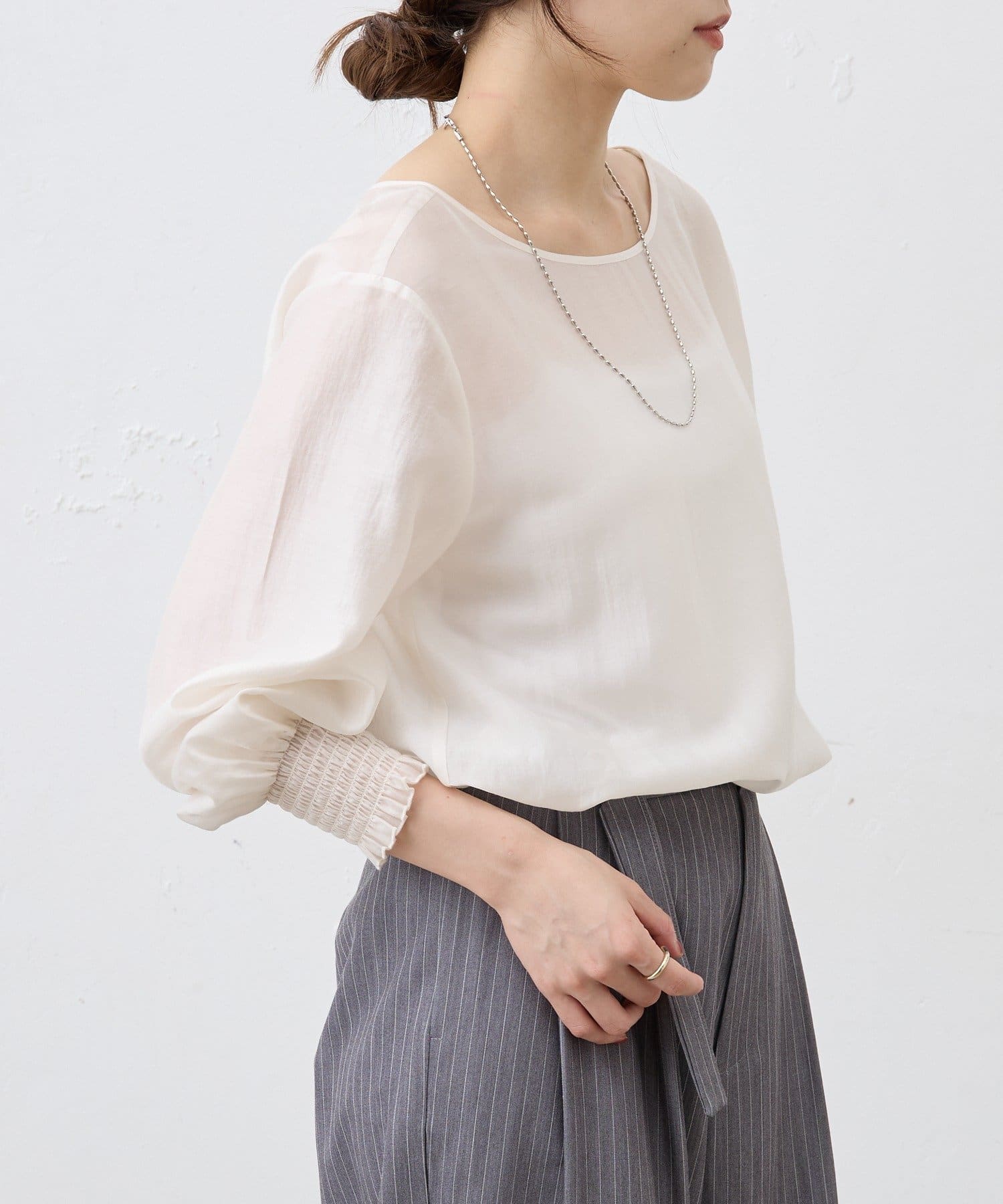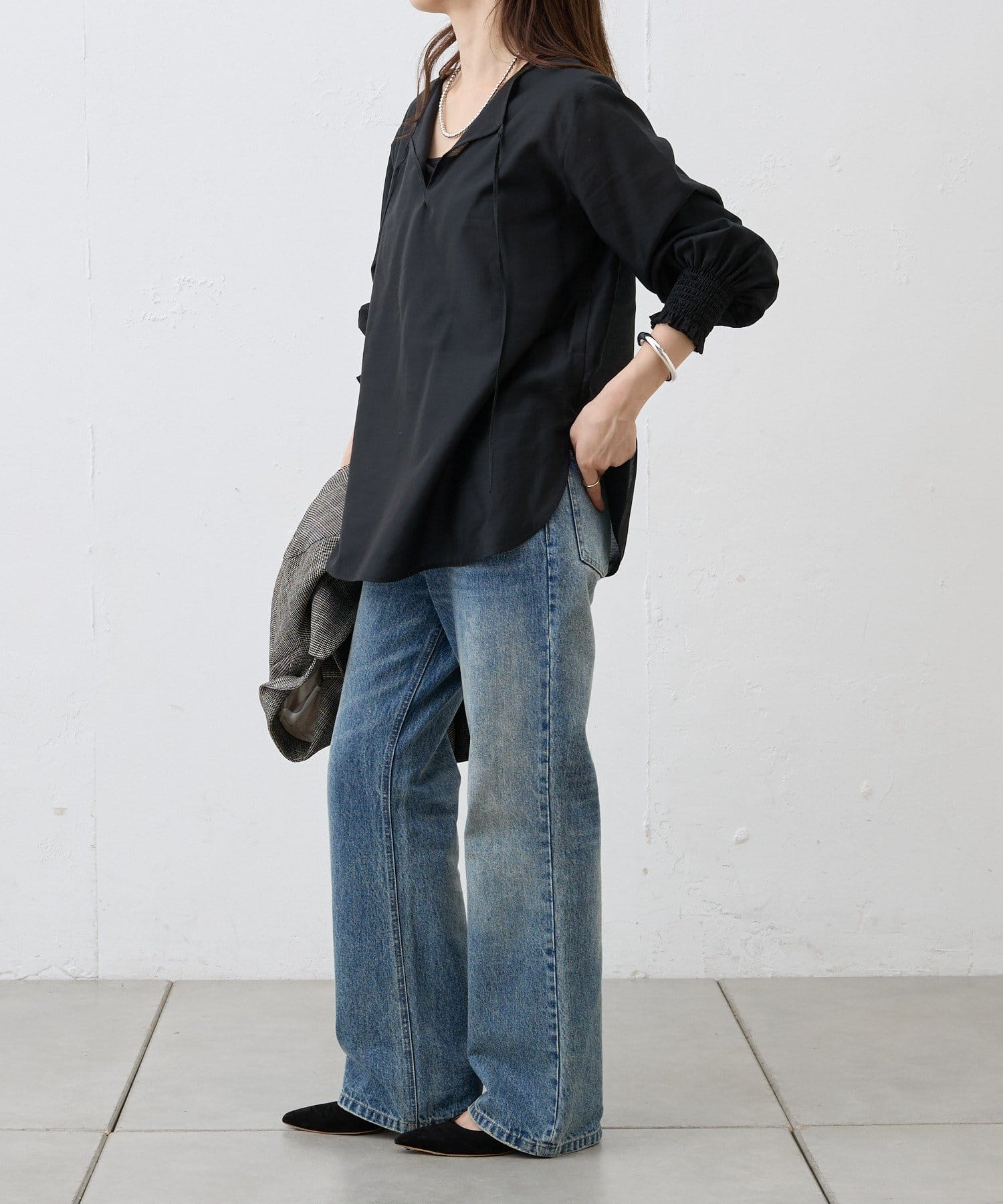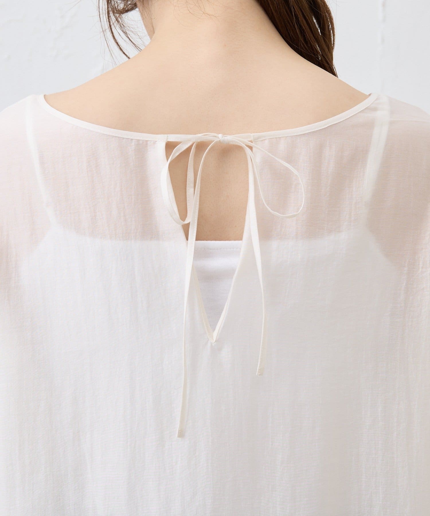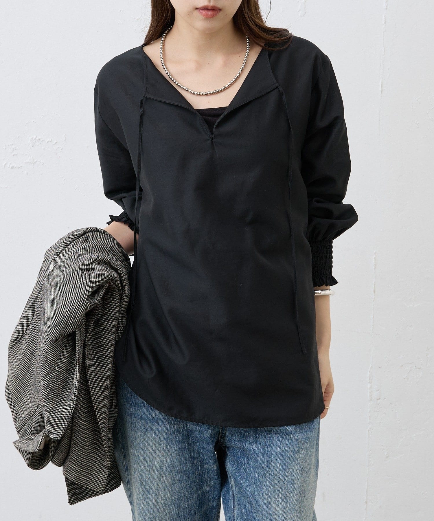 ネックのデザインを変えていて、前後2WAYで着れるブラウス。