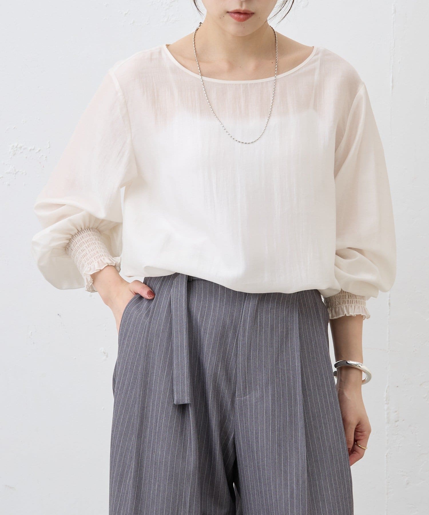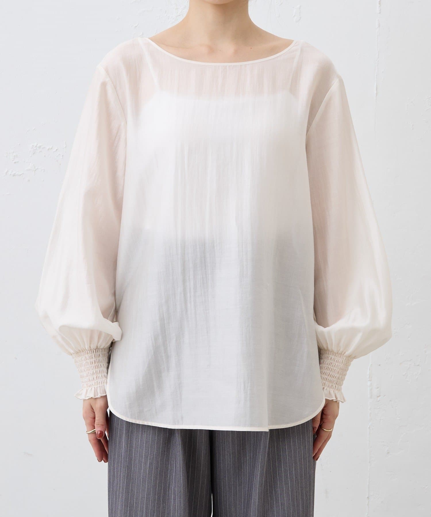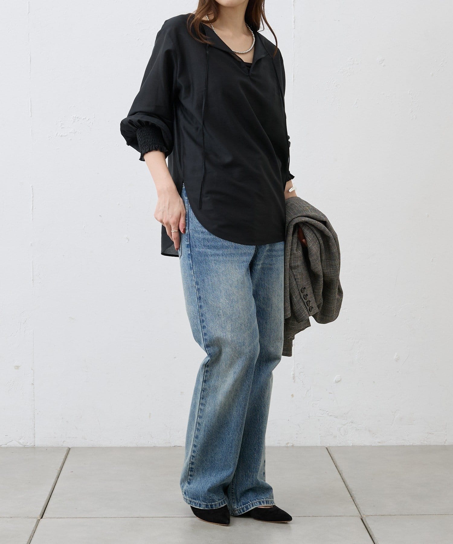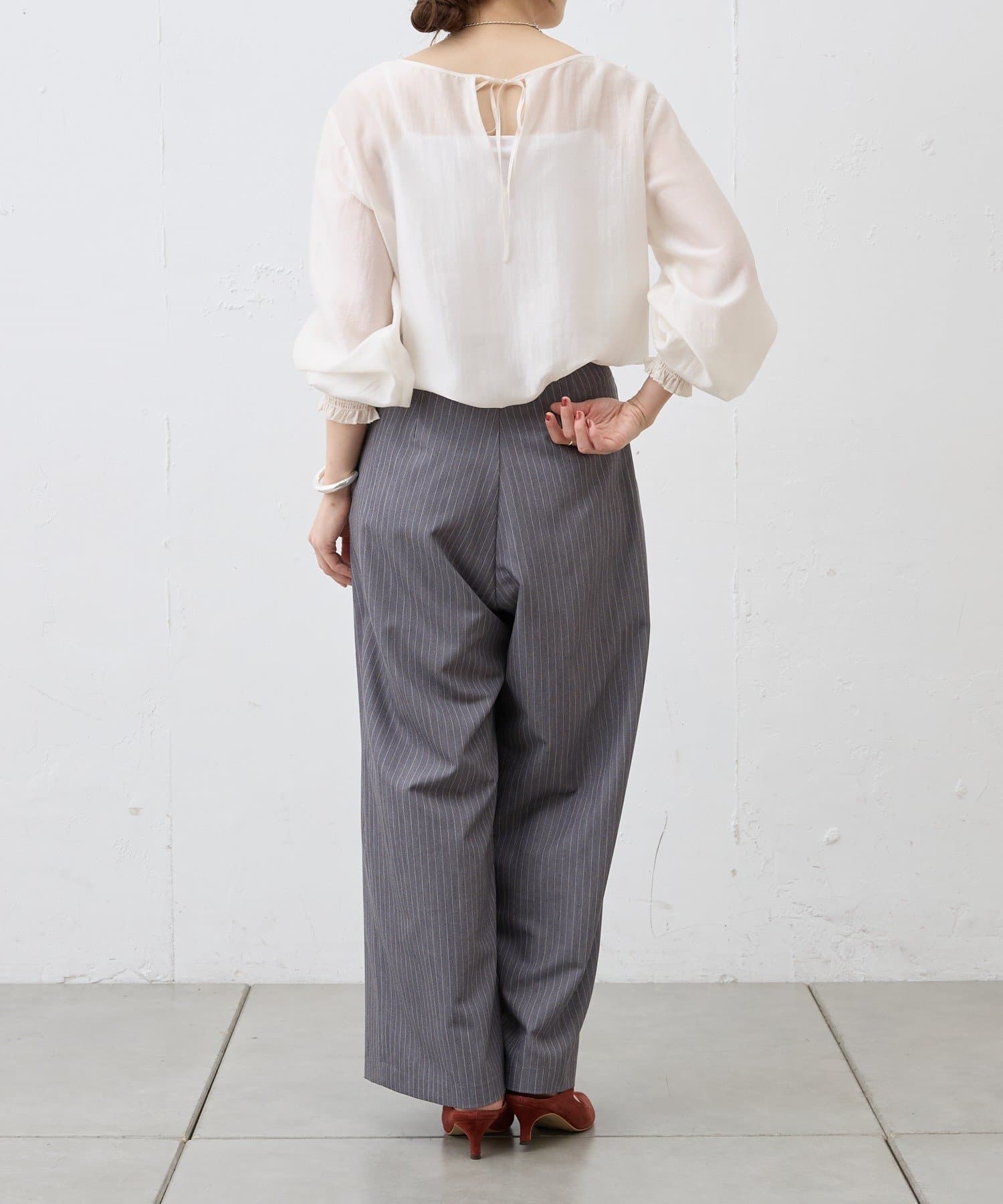 ネックのデザインを変えていて、前後2WAYで着れるブラウス。