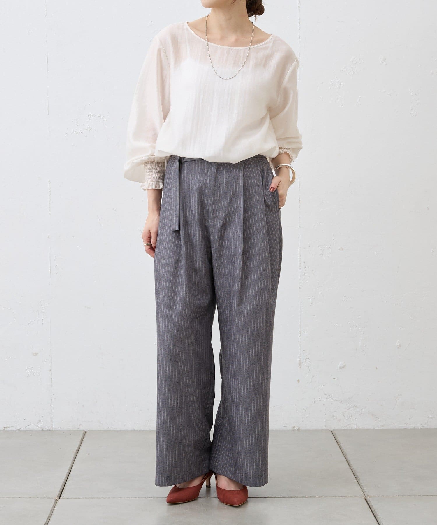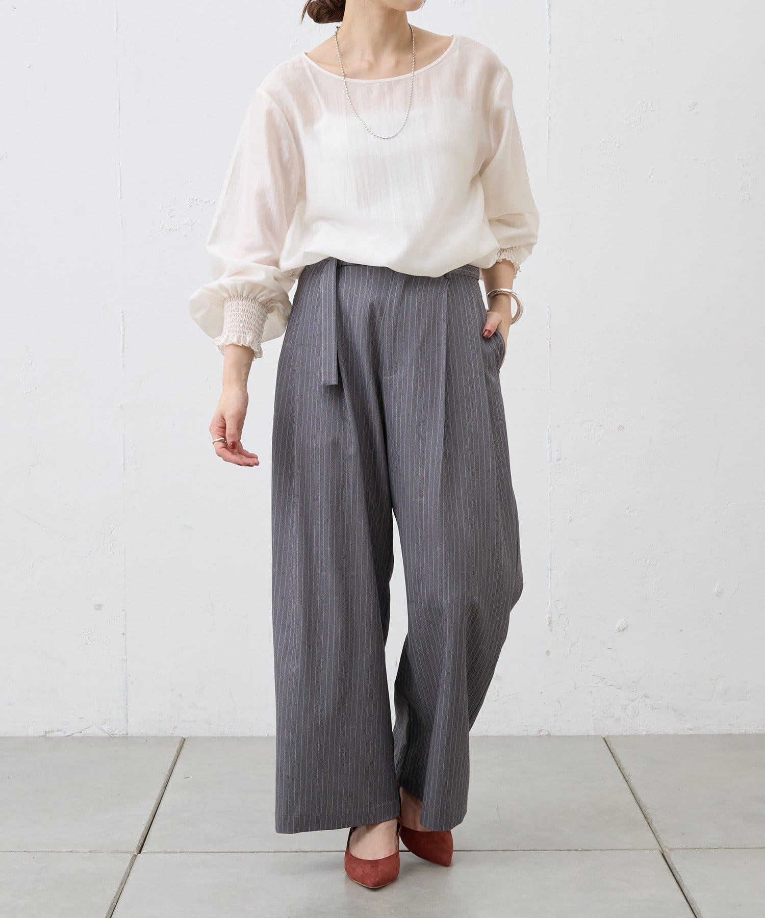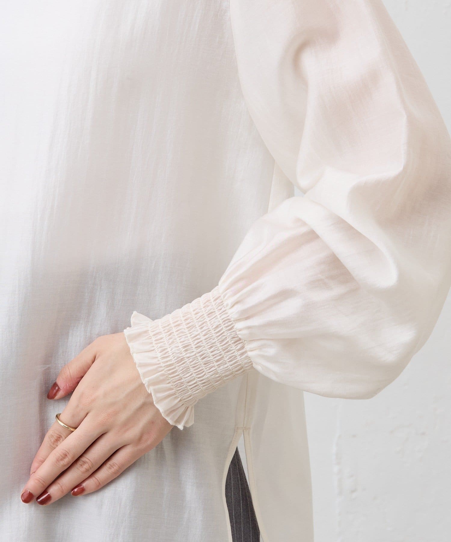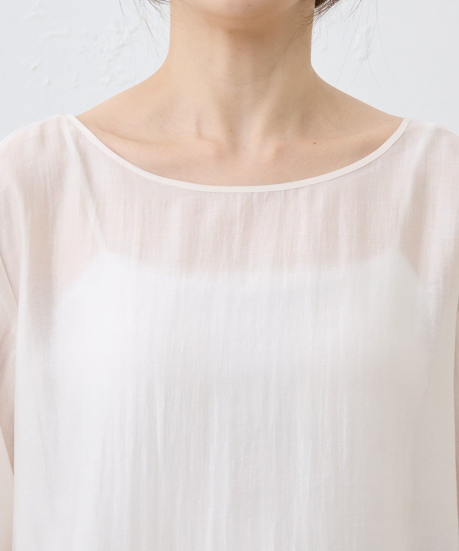 ネックのデザインを変えていて、前後2WAYで着れるブラウス。