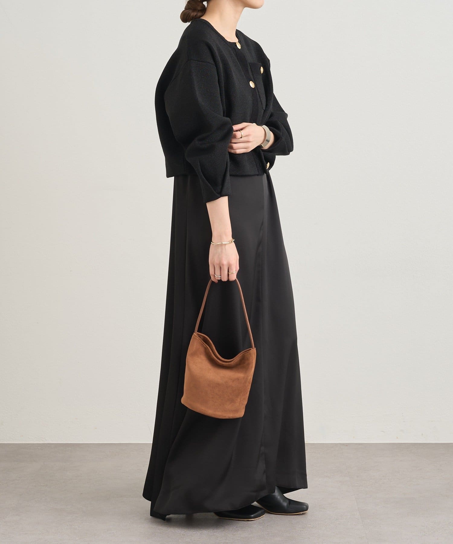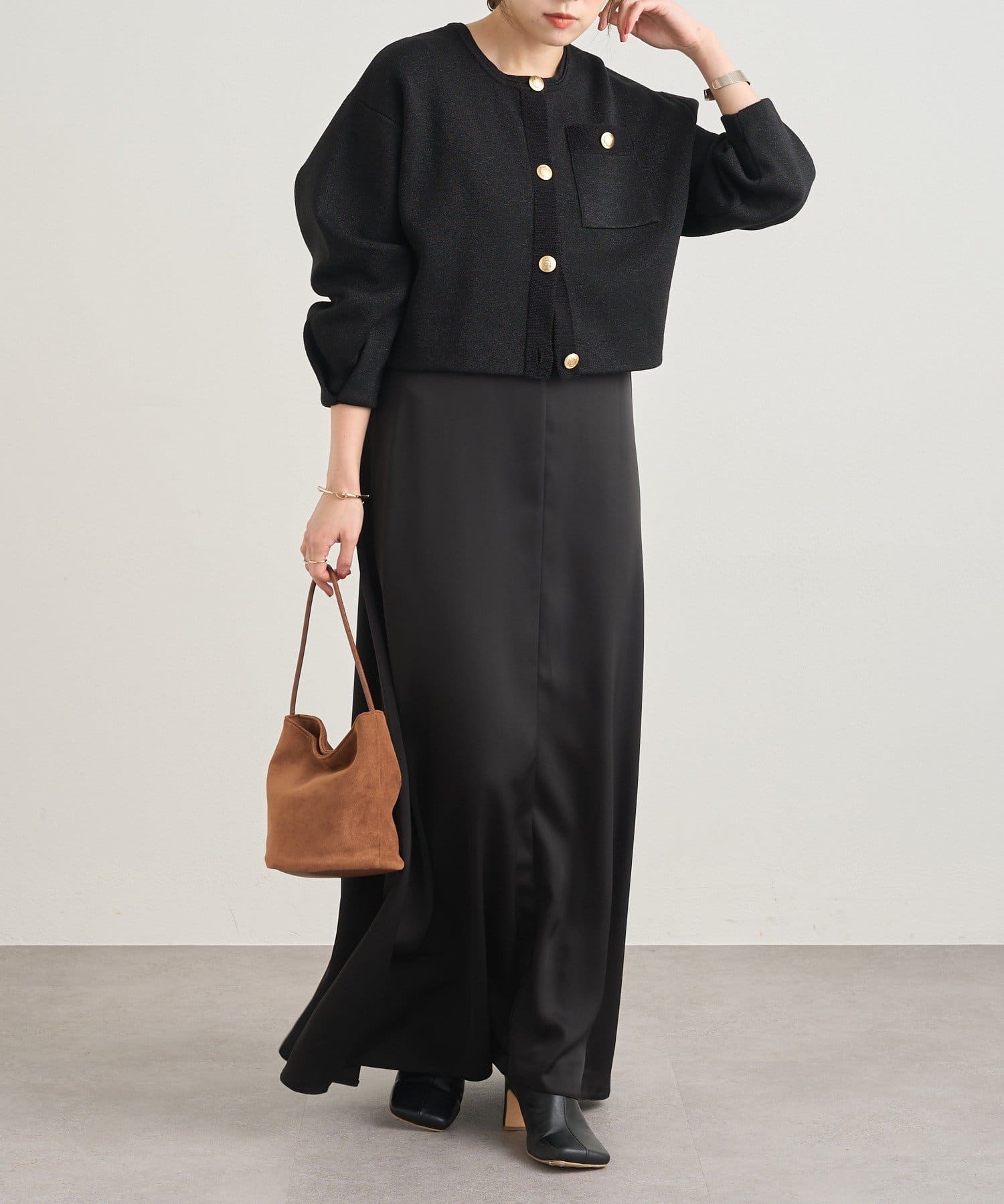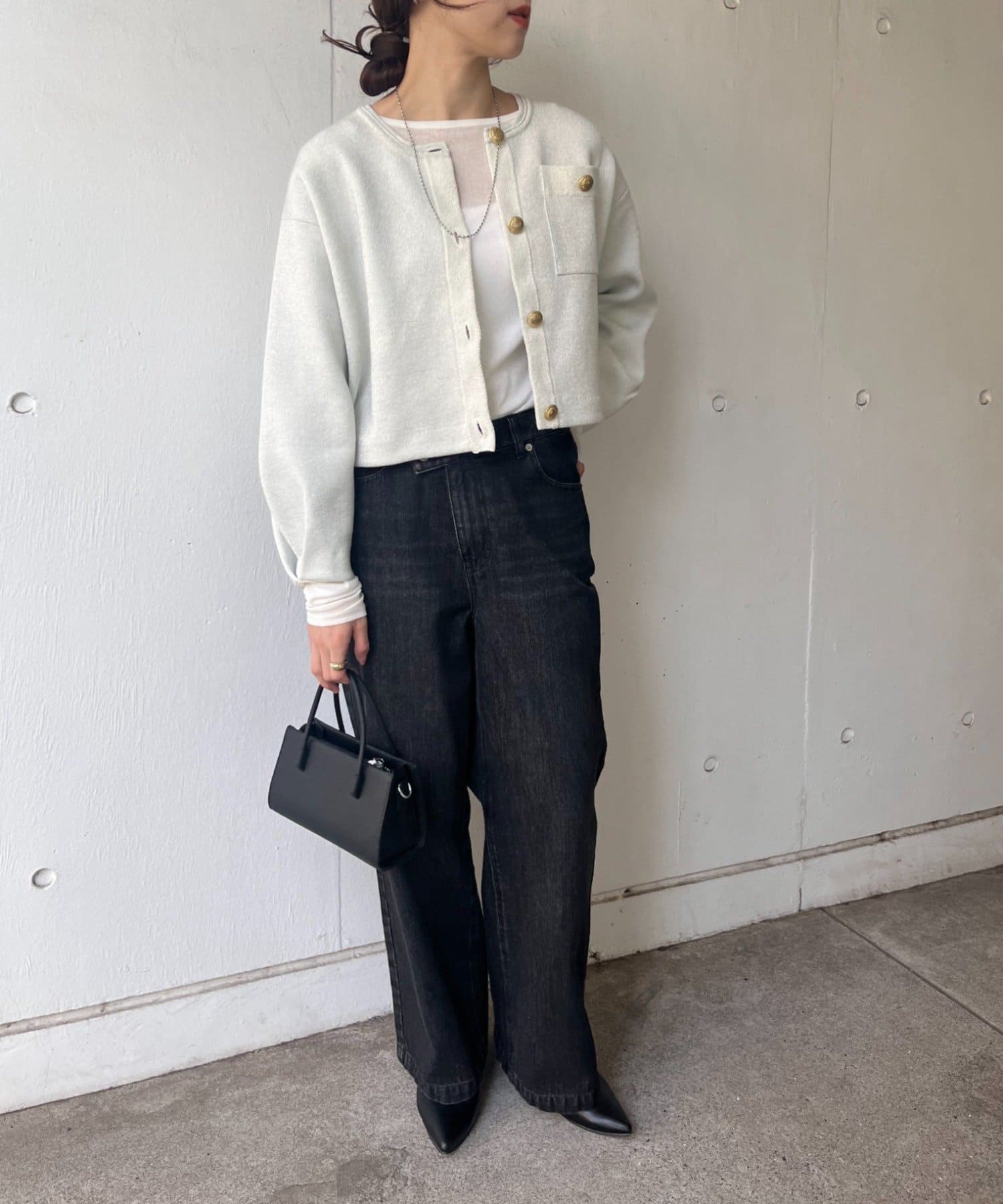 ボトムを選ばず、ワンピースやハイウエストパンツとも好相性◎