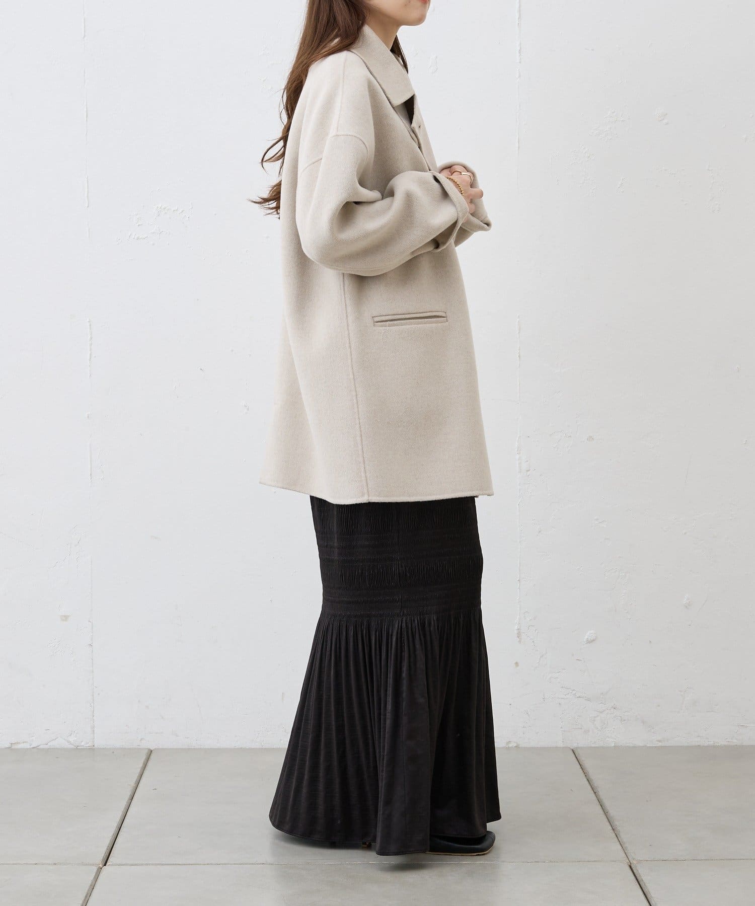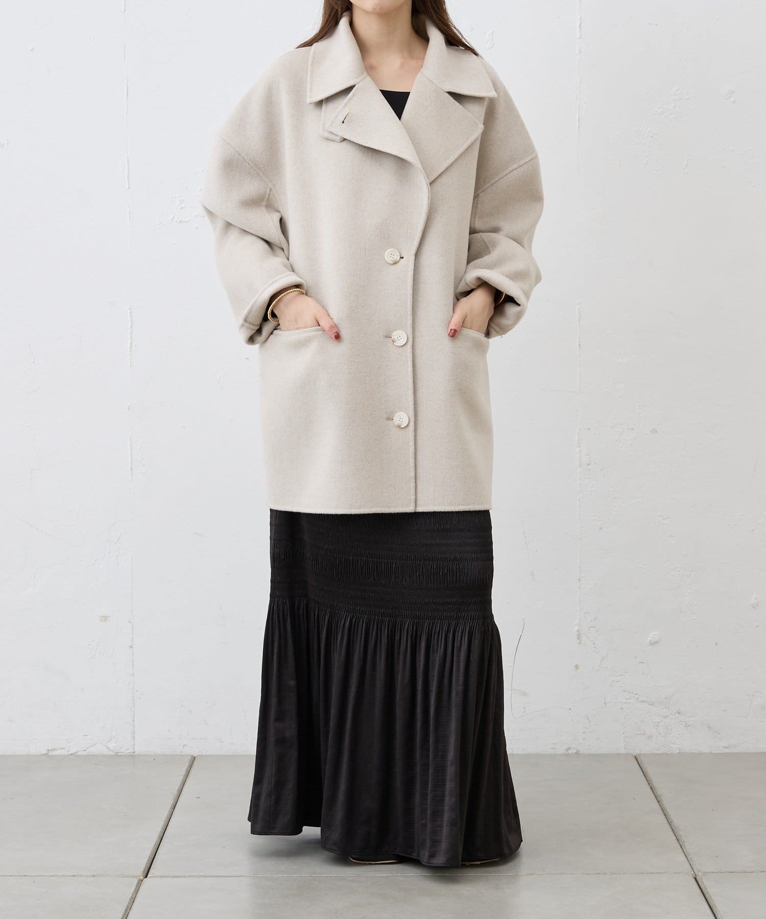 スタンダードとこなれ感を兼ね備えたミディアムコート。