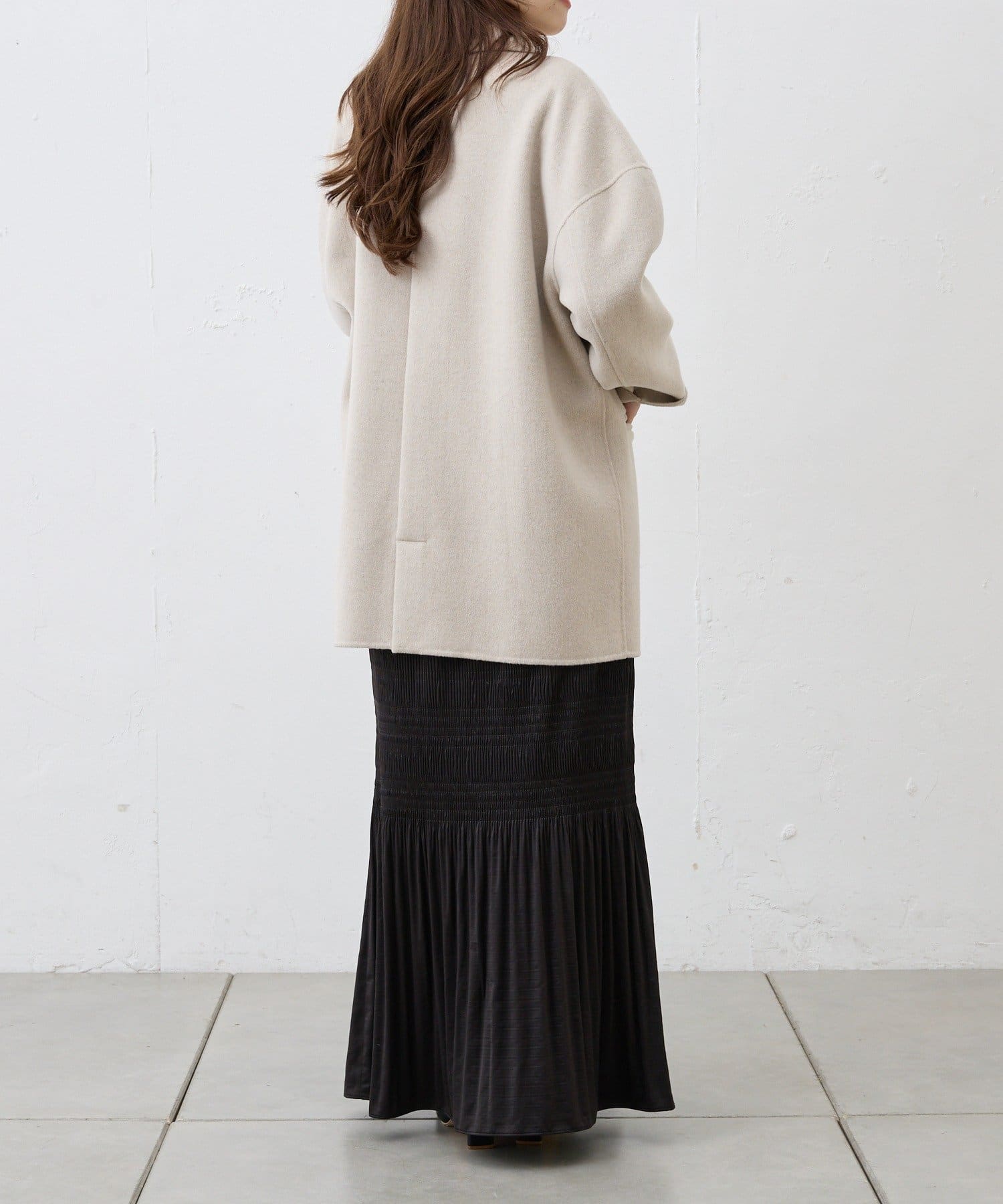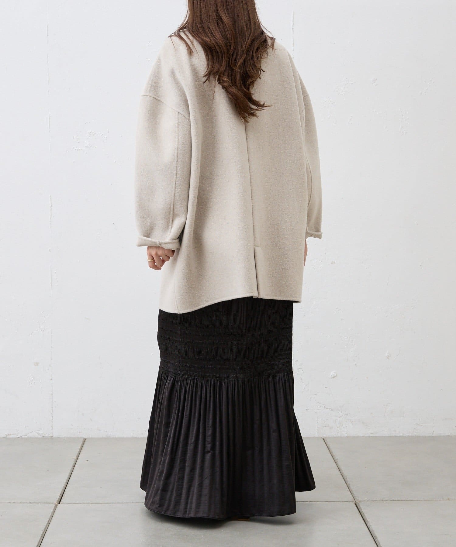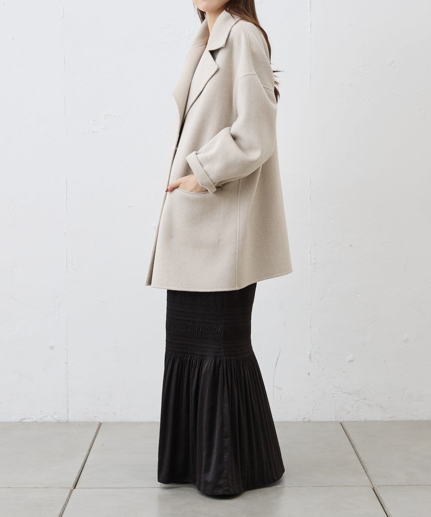 ミドル丈なのでスッキリとした印象で着ていただけます。