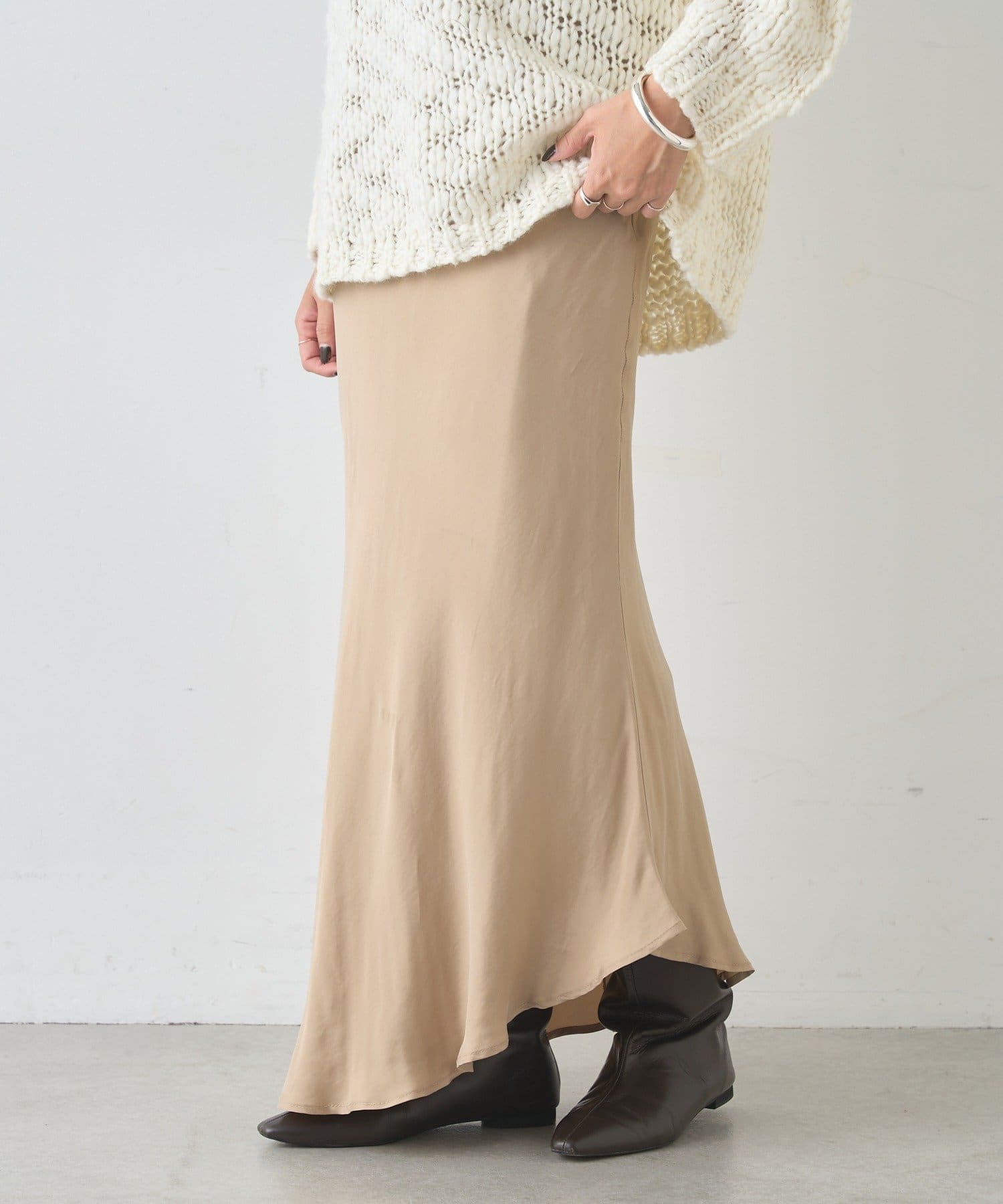 歩くたびにふわっと揺れる、アシンメトリーなイレヘムラインが魅力のスカート。